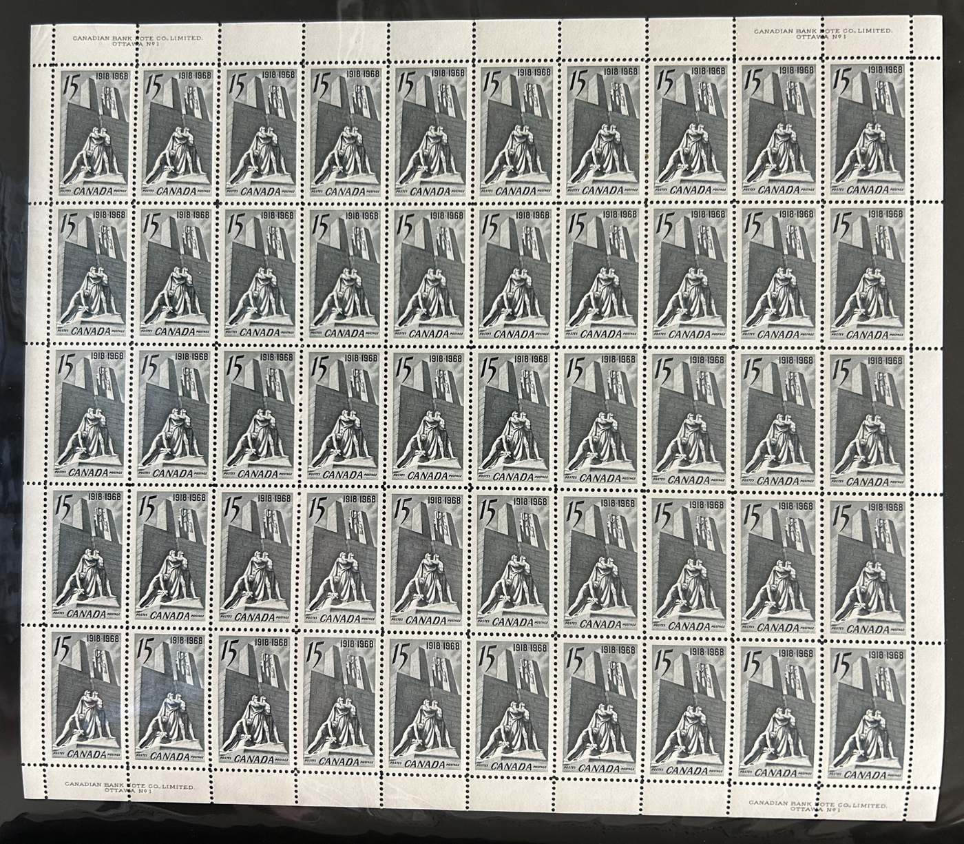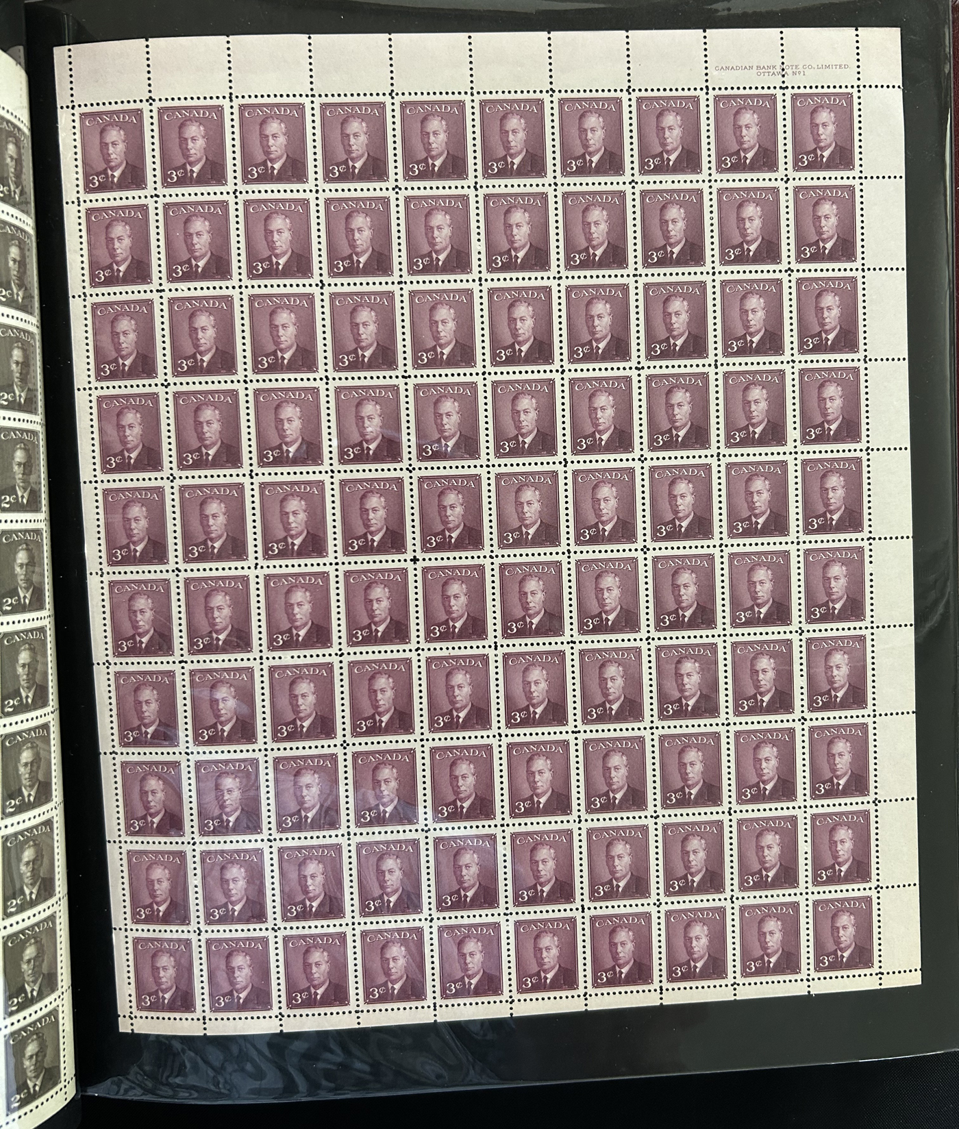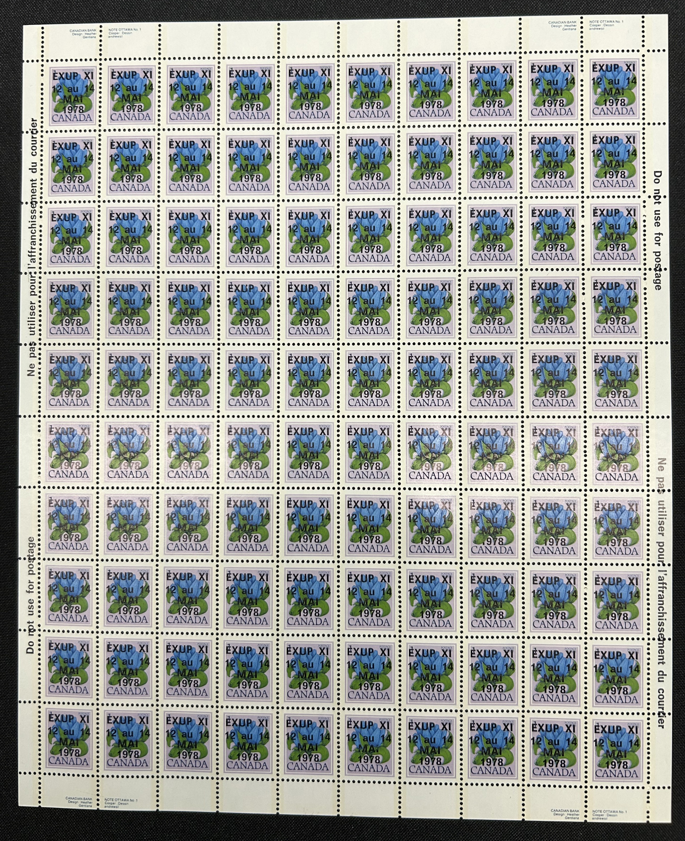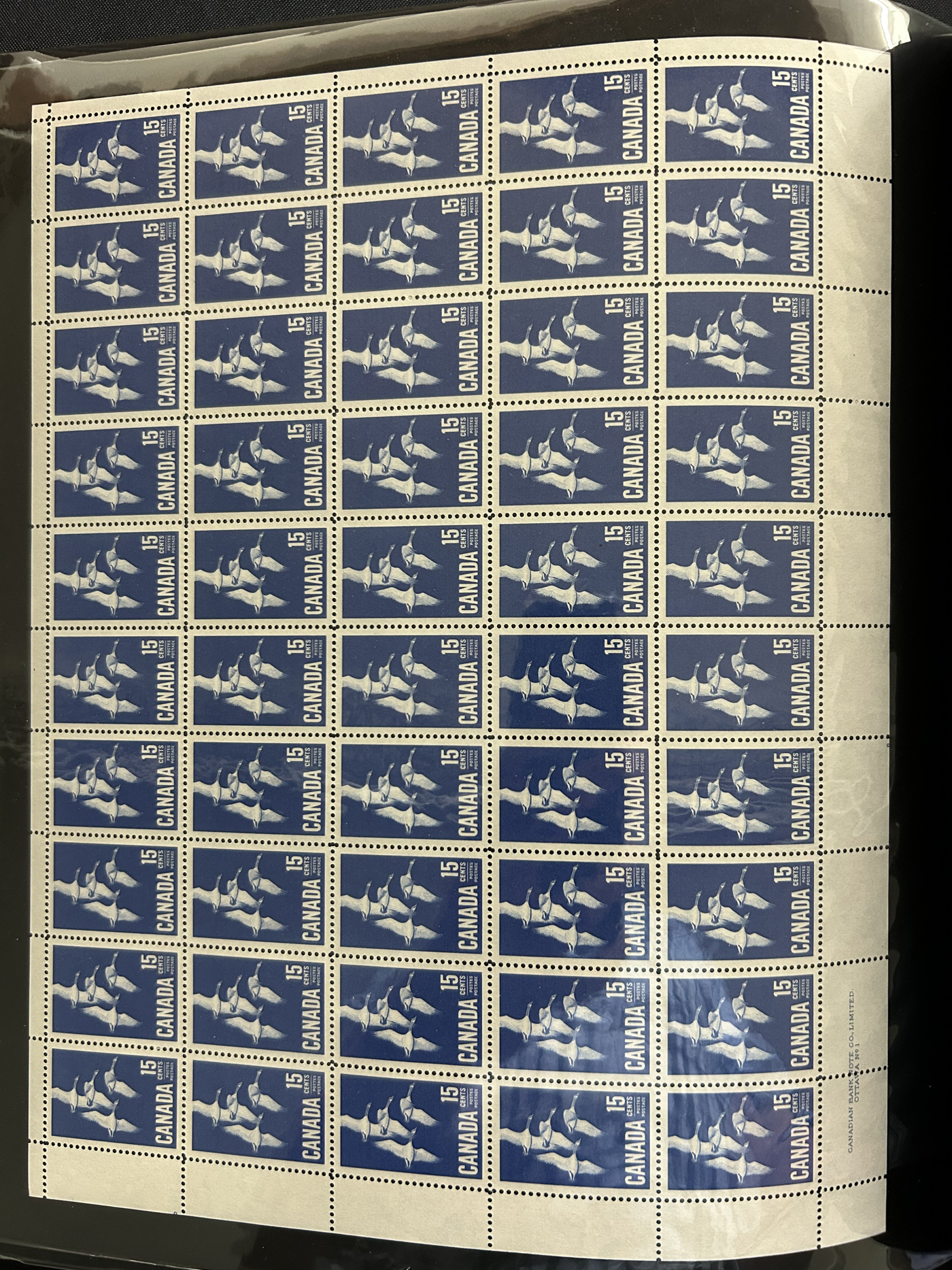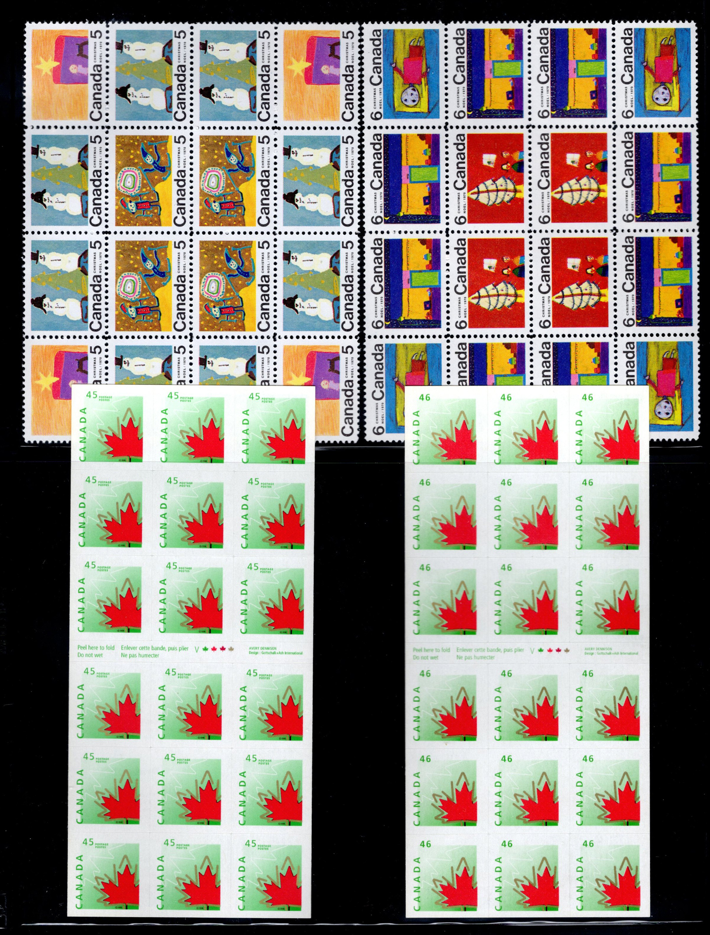 1446 nh 268/977 imageCollection of 43 Different Complete Mint Sheets, (56 sheets in all) in a sheet folder, mostly from the 5c era but includes others such as #268 ($150), 977 ($362), 372 ($150), a sheet of #781 with "EXUP 78" show overprint, 5 sheets of #700-703 (10c Ships, including #s 701i-703i), 10 sheets of #610 (Kreighoff, loaded with possibilities for varieties) as well as a sheet of Newfoundland #270, their last stamp. We note the odd separation, still an overall very fine lot. (Scan 1) (Scan 2) (Scan 3) (Scan 4) (All Scans)