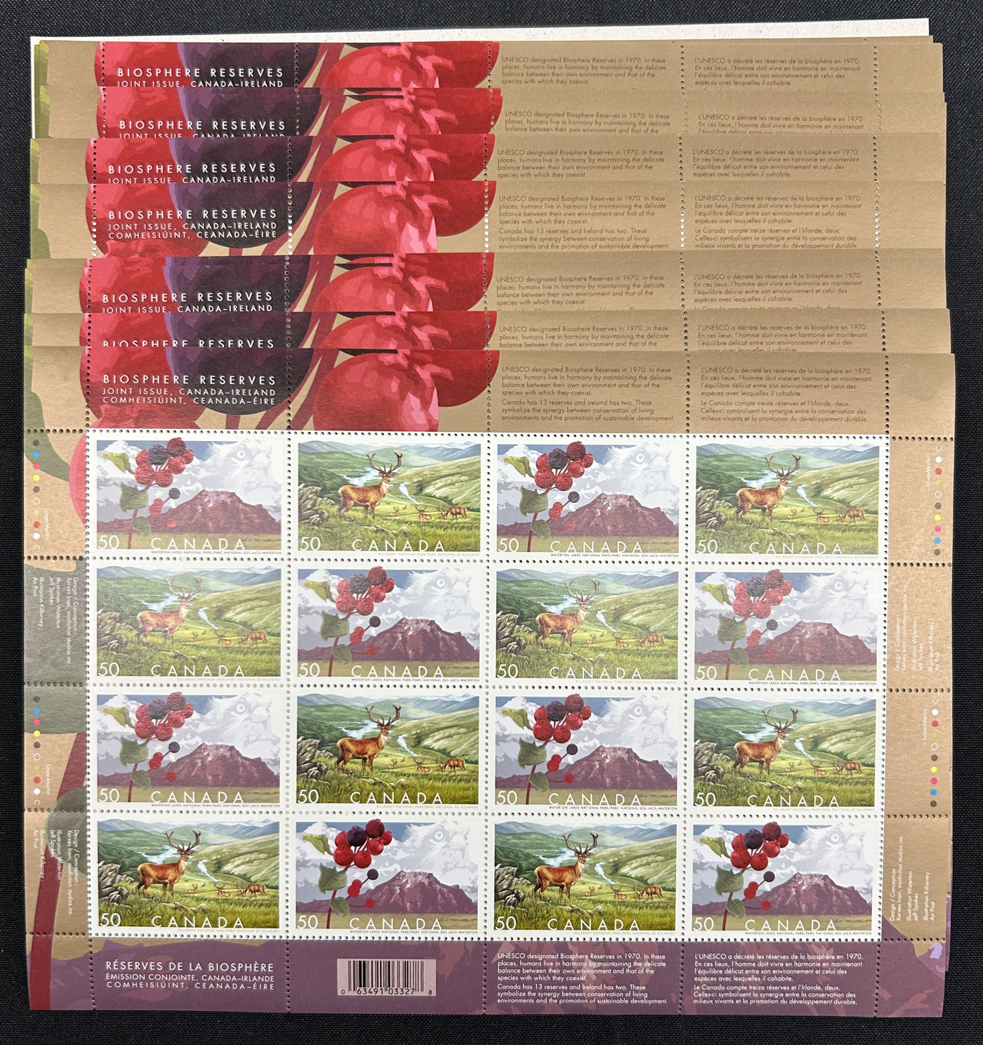 1453 nh   imageGroup of 784x 50c Stamps, consisting of Unitrade #2106A "Biosphere Reserves" 50c stamps in 49 sheets of 16. Mint never hinged and very fine.