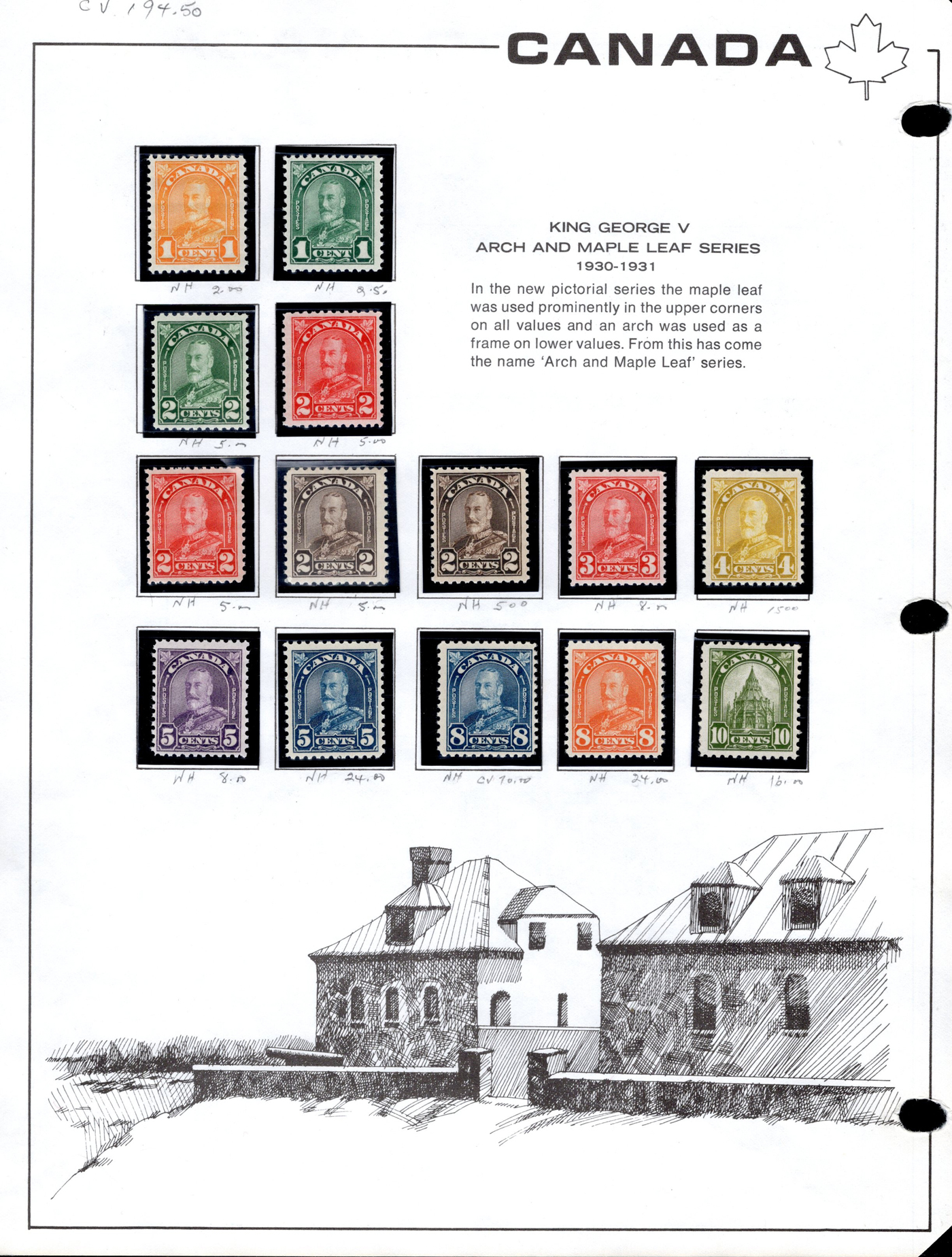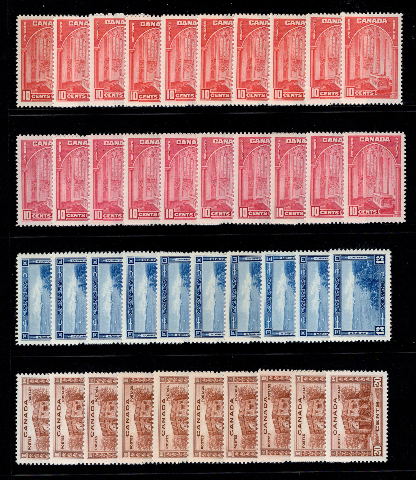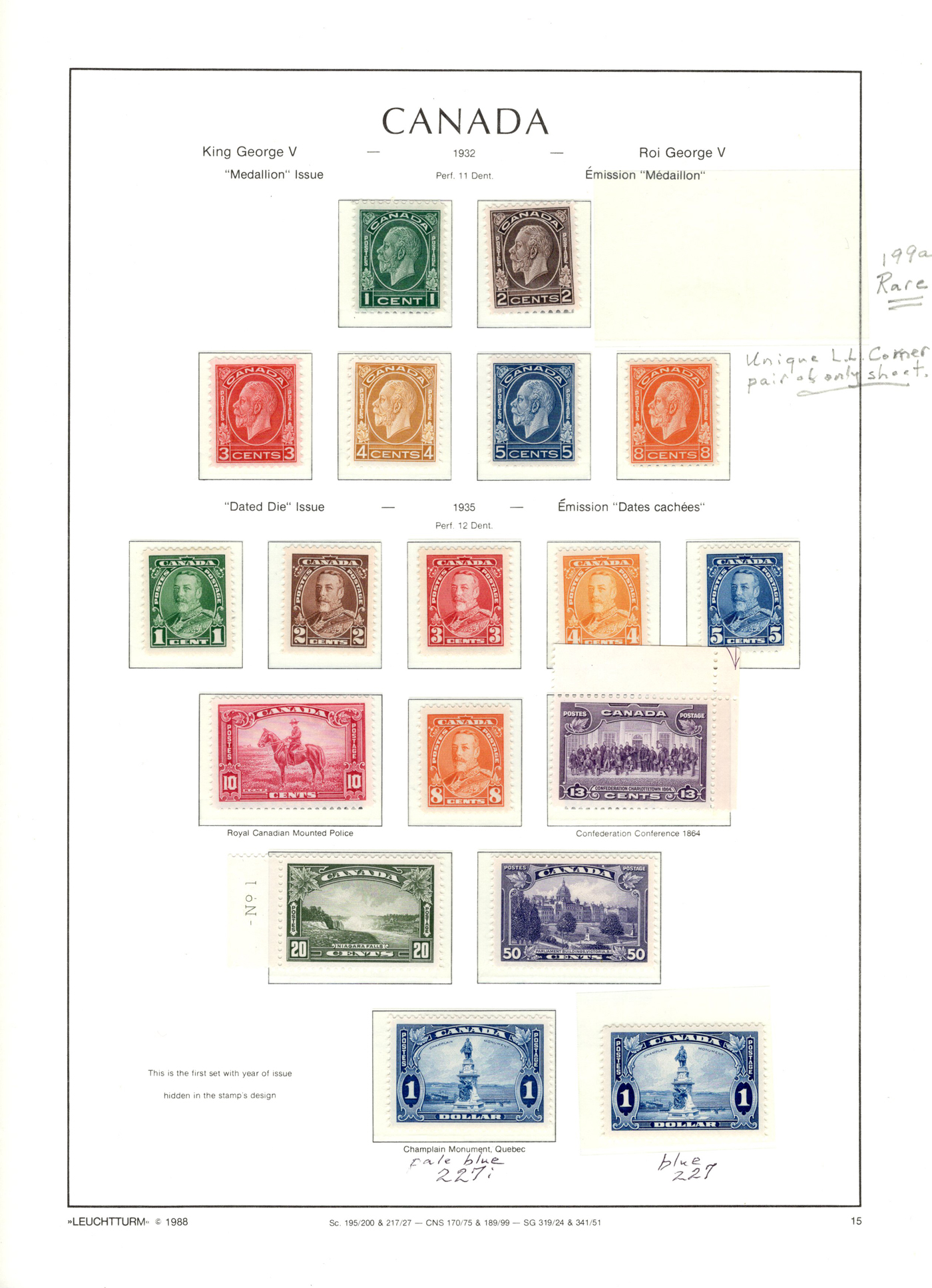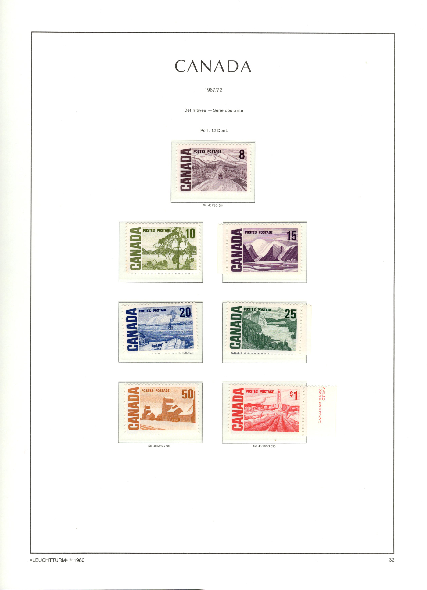 1442 og/nh 135/558 imageCollection of Mint Canada on Album Pages, 1917 to 1971, the first 4 pages contain complete 1917 and 1927 Confederation and Historical sets while the next page has a set of 1c to 10c Arch issues and the 4th page a set of 1c to 20c Scrolls (incl. both coils). The rest of the collection is on 35 Lighthouse hingeless pages with quite a good coverage of the 1930 to 1971 era, missing only a few stamps such as the 13c Britannia (it had a shilling mark and was lotted separately), and a few other low value items. This range does include extras such as many coil pairs and strips (eg. complete KGVI in pairs, etc.), the $1 Champlain Statue in two shades, complete Airmails, several phosphor issues including Centennials, 1970 Christmas 5c and 6c centre blocks and strips), etc. Although we did not check every stamp, a good sampling did not reveal any hinged, so we assume all NH but unconfirmed. This collector put emphasis on well centered stamps, so overall very fine. See photos online for a small idea of the contents. (Scan 1) (Scan 2) (Scan 3) (Scan 4) (Scan 5) (Scan 6) (Scan 7) (Scan 8) (Scan 9) (Scan 10) (Scan 11) (Scan 12) (Scan 13) (All Scans)