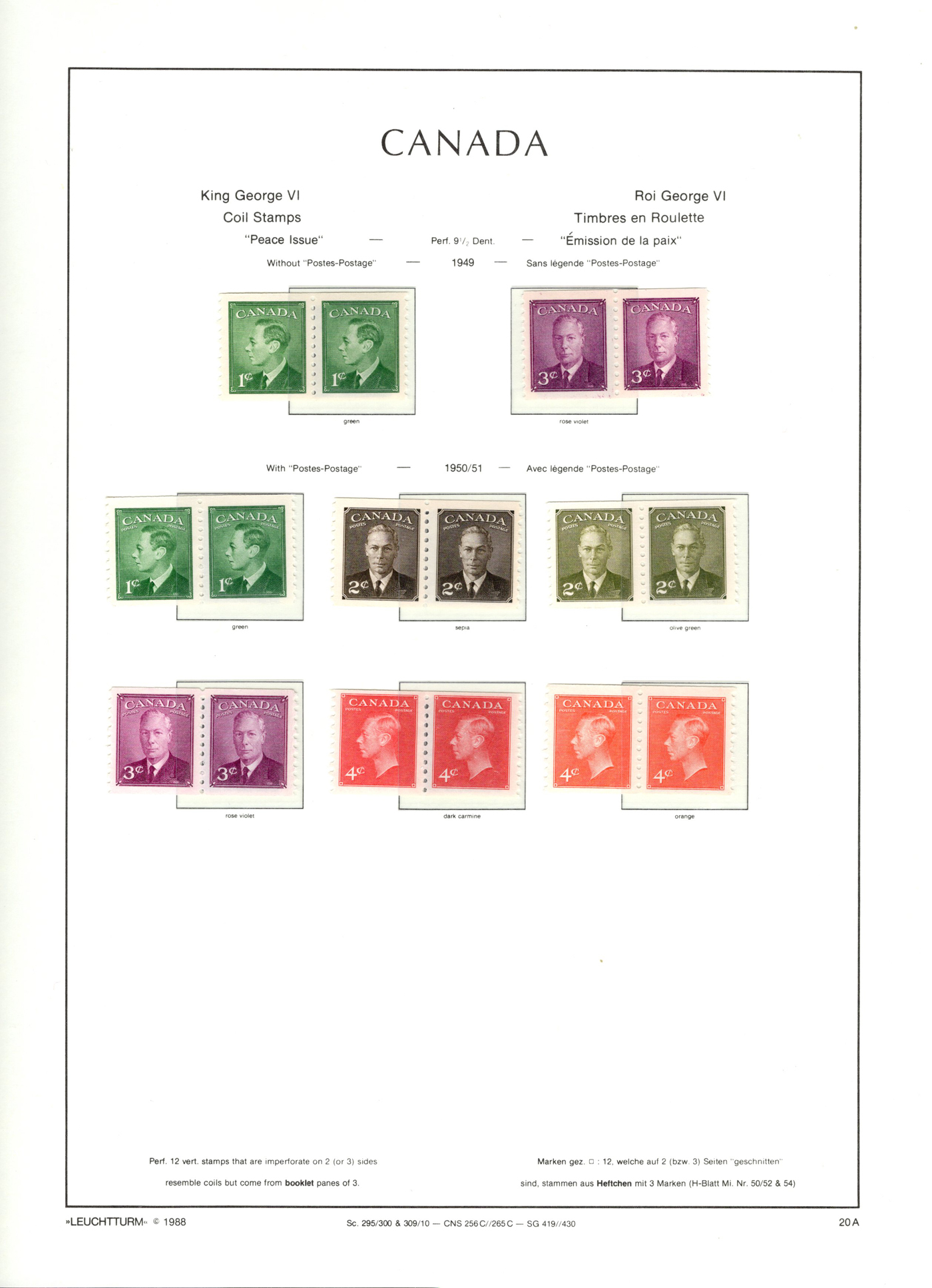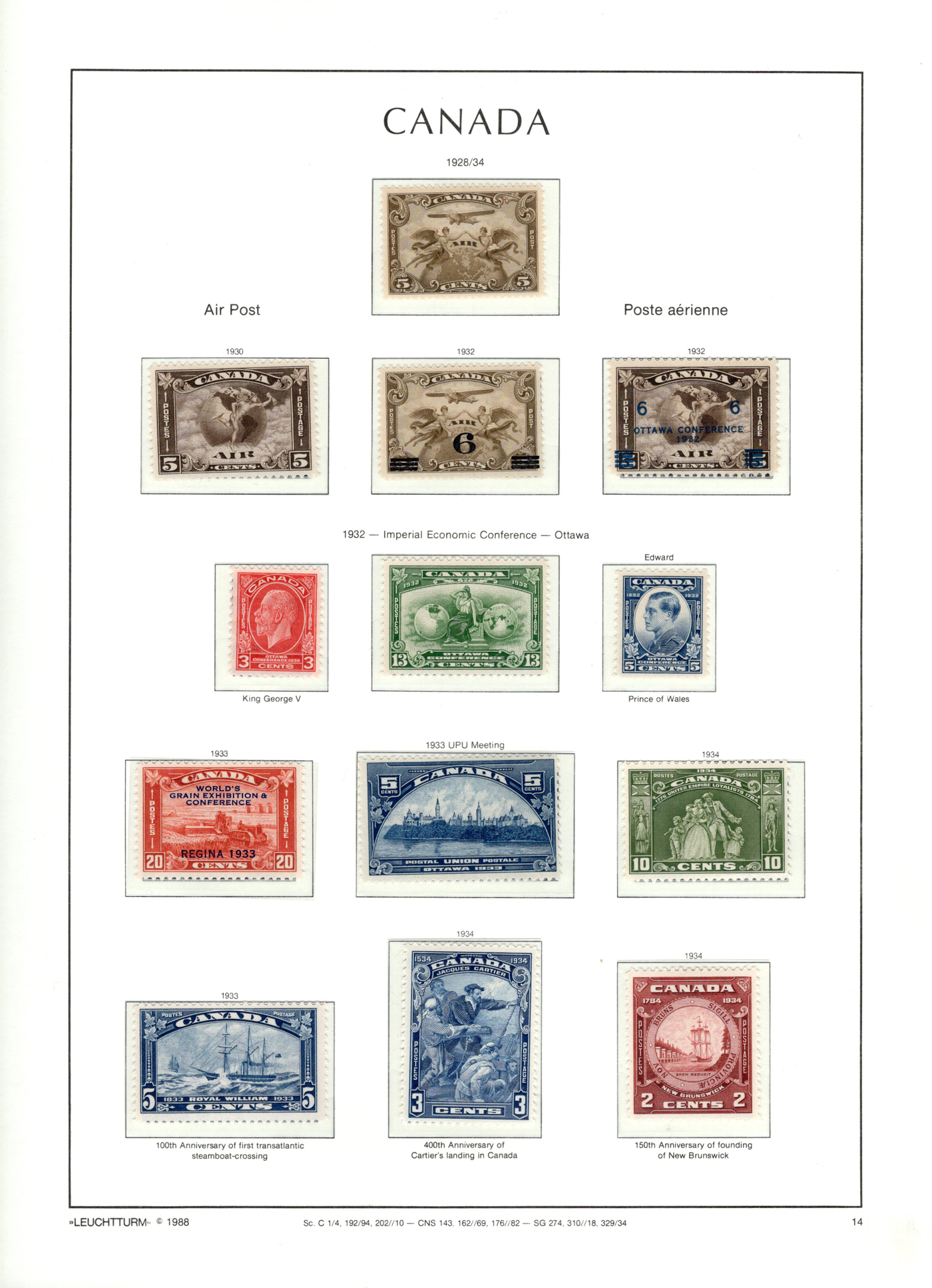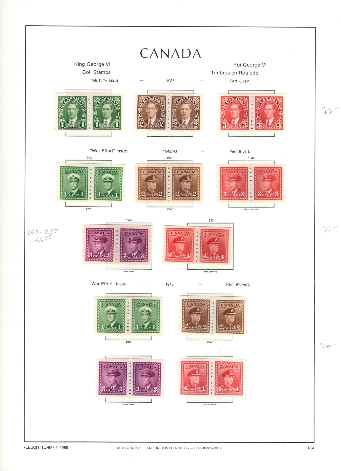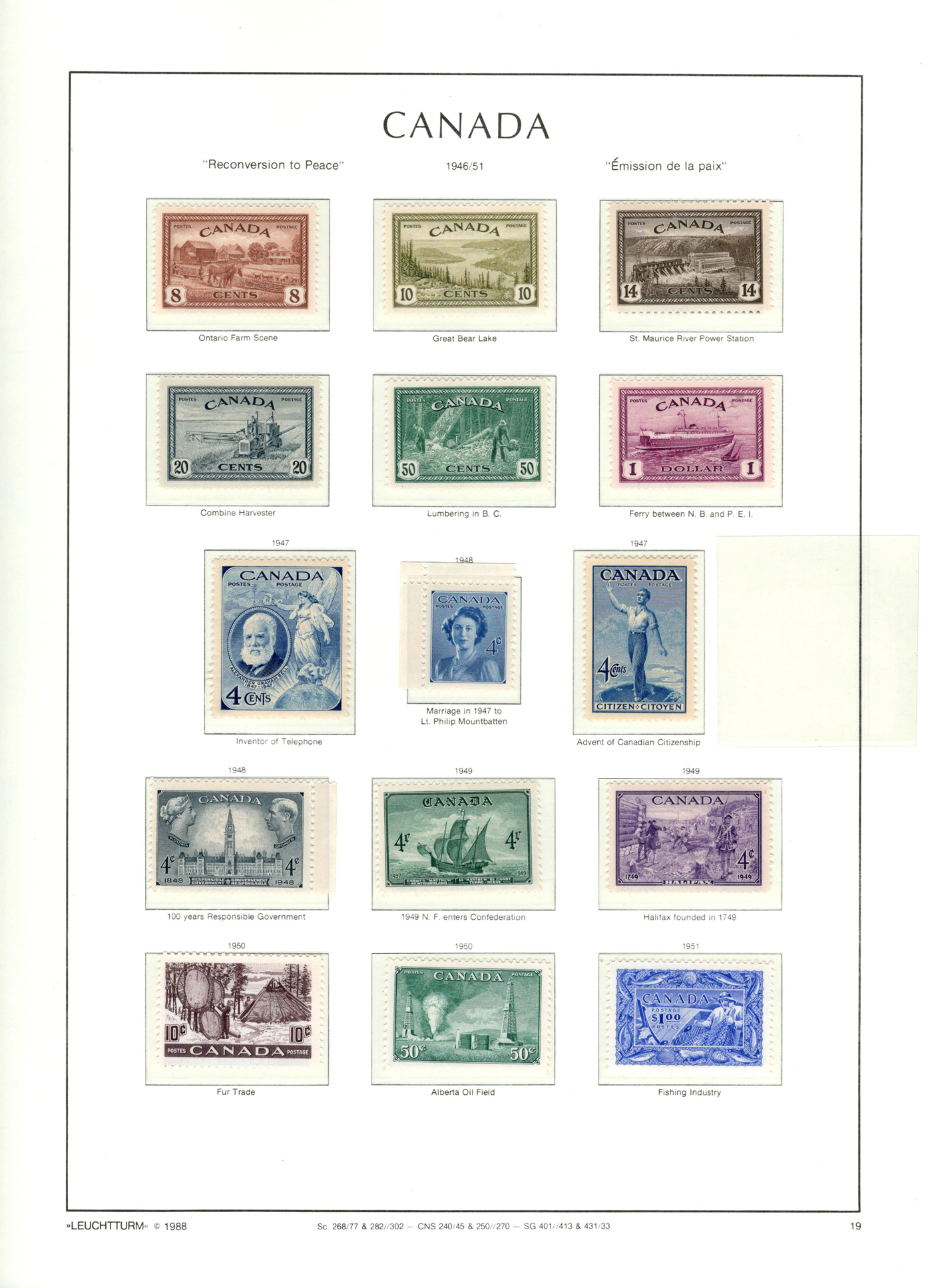 1442 og/nh 135/558 imageCollection of Mint Canada on Album Pages, 1917 to 1971, the first 4 pages contain complete 1917 and 1927 Confederation and Historical sets while the next page has a set of 1c to 10c Arch issues and the 4th page a set of 1c to 20c Scrolls (incl. both coils). The rest of the collection is on 35 Lighthouse hingeless pages with quite a good coverage of the 1930 to 1971 era, missing only a few stamps such as the 13c Britannia (it had a shilling mark and was lotted separately), and a few other low value items. This range does include extras such as many coil pairs and strips (eg. complete KGVI in pairs, etc.), the $1 Champlain Statue in two shades, complete Airmails, several phosphor issues including Centennials, 1970 Christmas 5c and 6c centre blocks and strips), etc. Although we did not check every stamp, a good sampling did not reveal any hinged, so we assume all NH but unconfirmed. This collector put emphasis on well centered stamps, so overall very fine. See photos online for a small idea of the contents. (Scan 1) (Scan 2) (Scan 3) (Scan 4) (Scan 5) (Scan 6) (Scan 7) (Scan 8) (Scan 9) (Scan 10) (Scan 11) (Scan 12) (Scan 13) (All Scans)