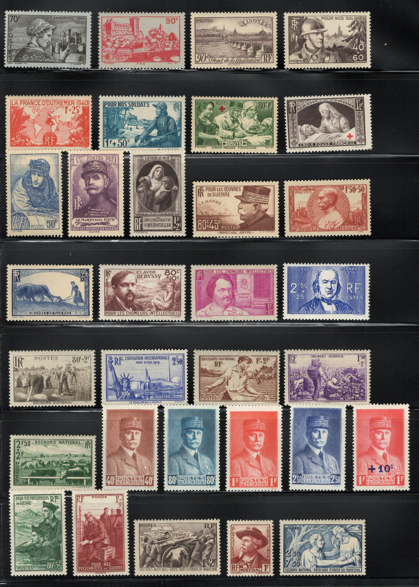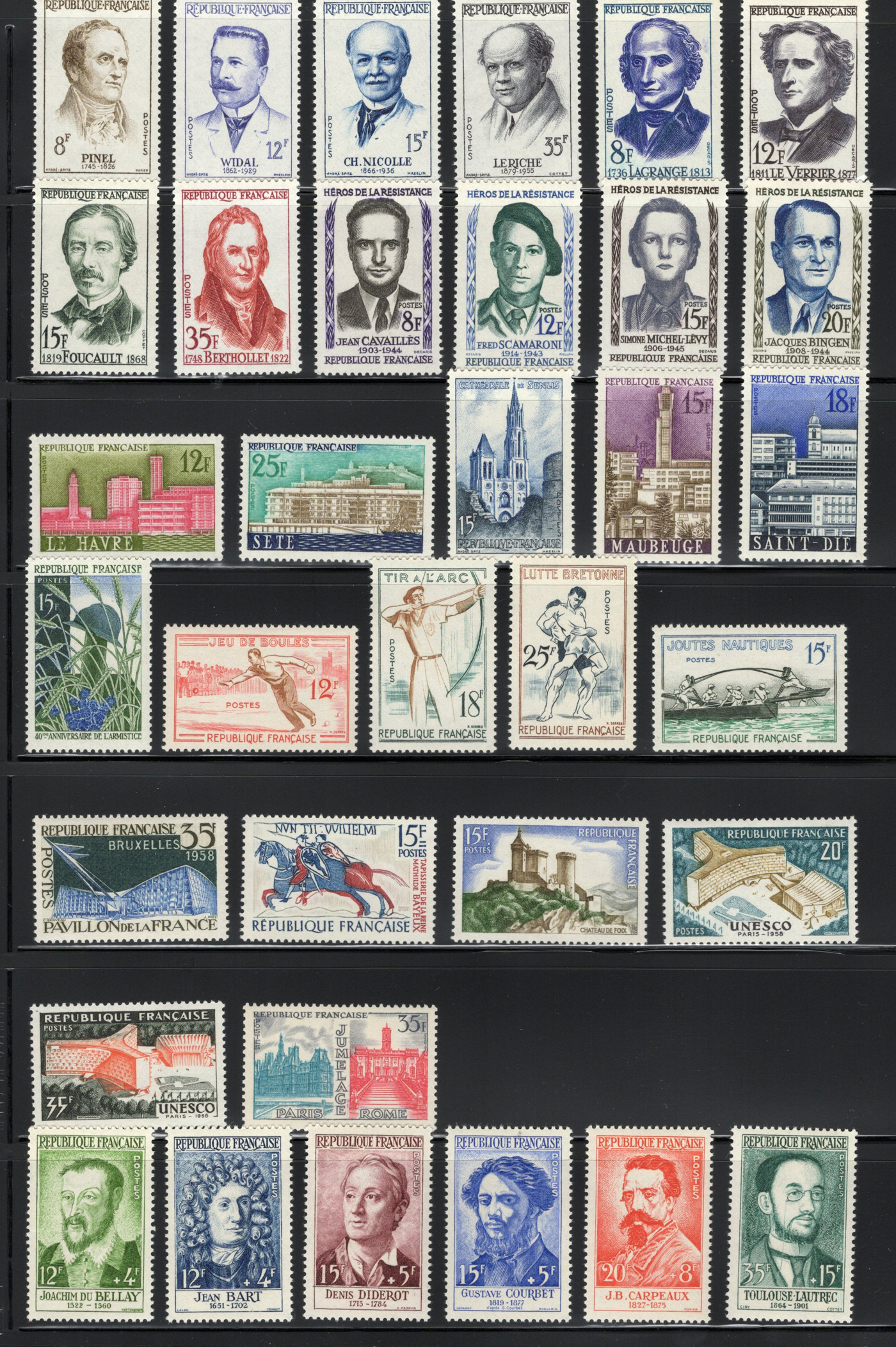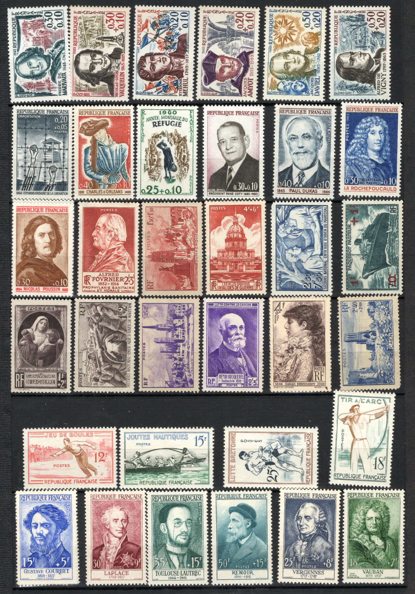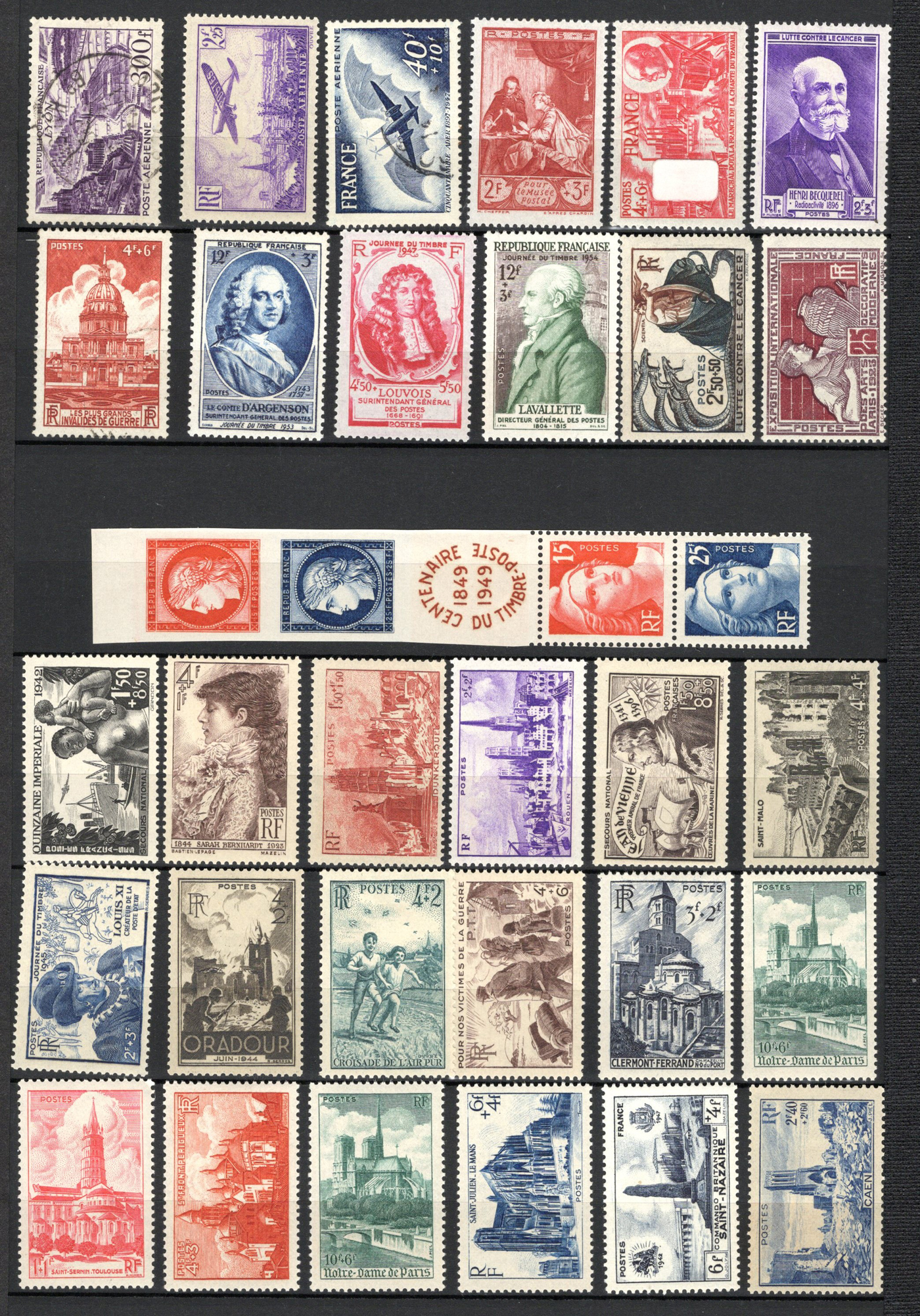 1556 nh   imageMint Never Hinged France Collection, 1900 to 1959, all neatly displayed on 25 black Vario sheets, with just under 1,000 different stamps. Some runs are strong and complete, such as the 1930s to 1959, and we note many better sets and singles, for example Scott #s 185-196 ($150), 198-201 ($125), 227-240 ($275), 258-262 ($125), 299 ($70), 300-300a ($174), 315-320 ($102), 342-347 ($122), 348 ($150), 700-705 ($61), B43 ($125), B48-53 ($75), B54-59 ($71), B66-67 ($350), B86-89A ($72), B157a ($100), B249-254 ($72), B285-290 ($137), B294-299 ($111), and many more, especially in the $10 to $50 range. An impressive collection not only for its catalogue value, but for its freshness and the fact that all the stamps are never hinged. Overall very fine. All pages scanned online for your perusal. (Scan 1) (Scan 2) (Scan 3) (Scan 4) (Scan 5) (Scan 6) (Scan 7) (Scan 8) (Scan 9) (Scan 10) (Scan 11) (Scan 12) (Scan 13) (Scan 14) (Scan 15) (Scan 16) (Scan 17) (Scan 18) (Scan 19) (Scan 20) (Scan 21) (Scan 22) (Scan 23) (Scan 24) (Scan 25) (All Scans)