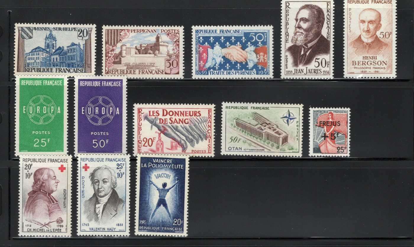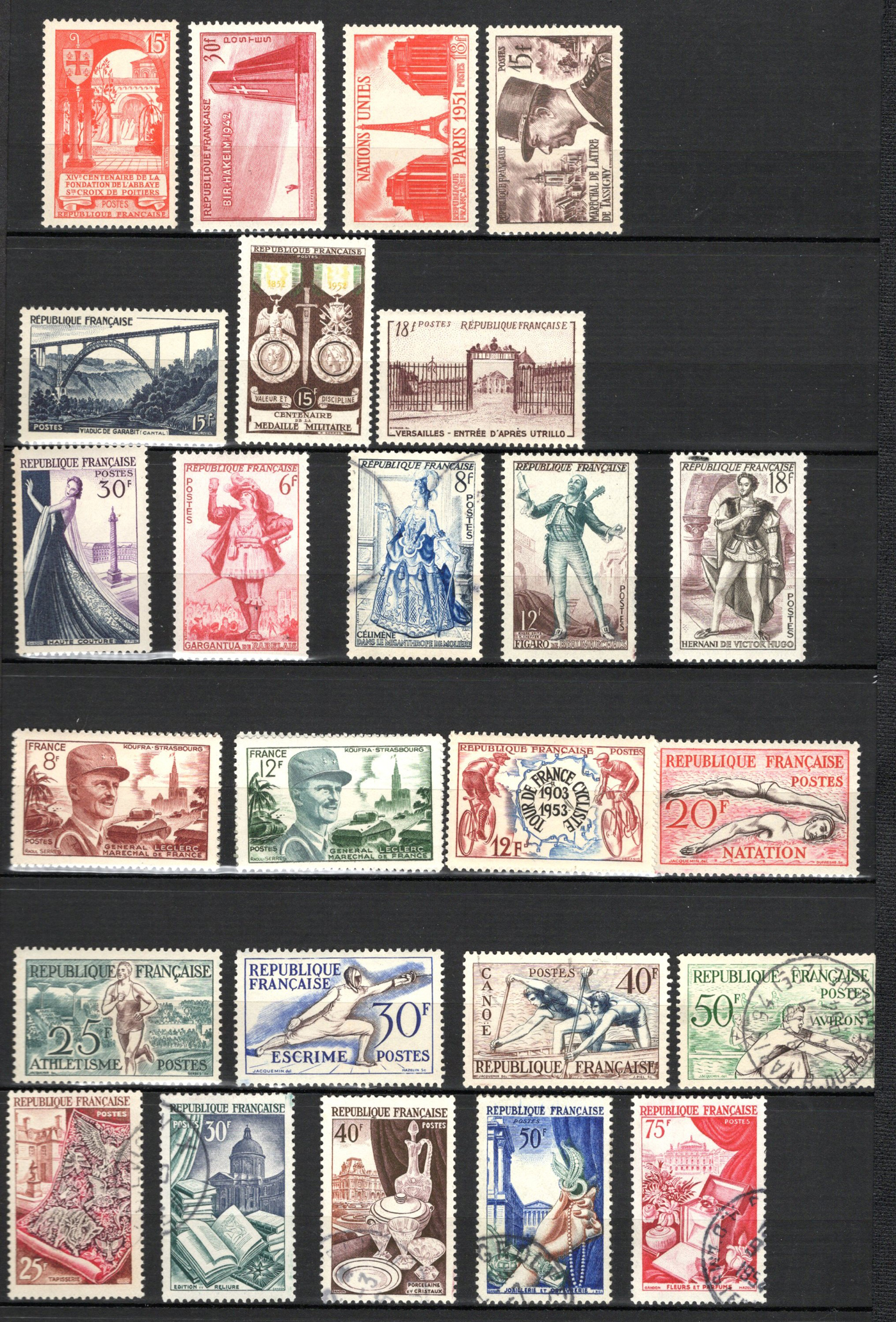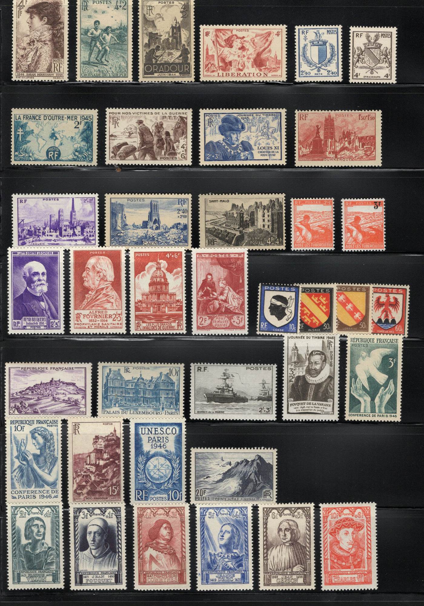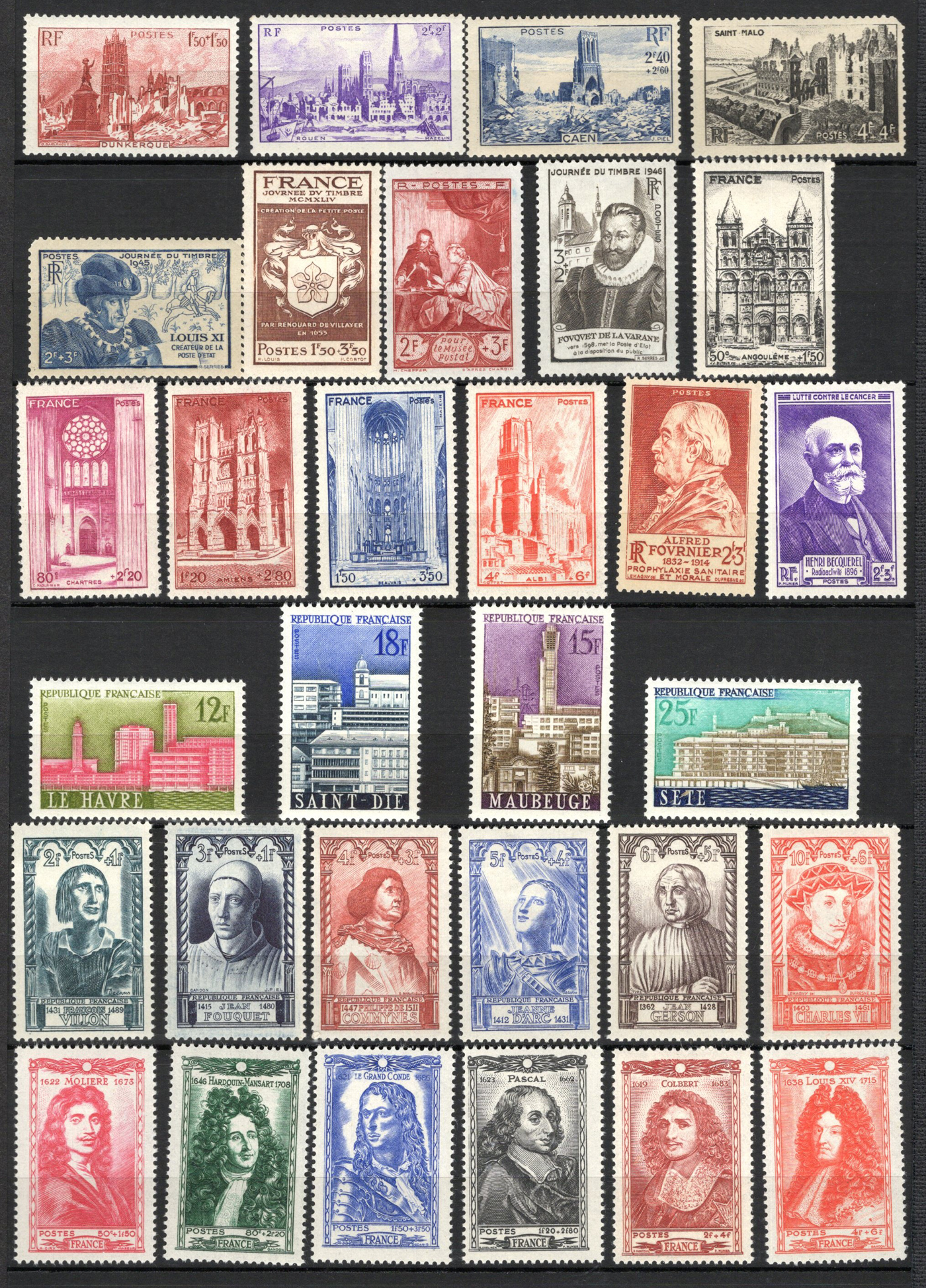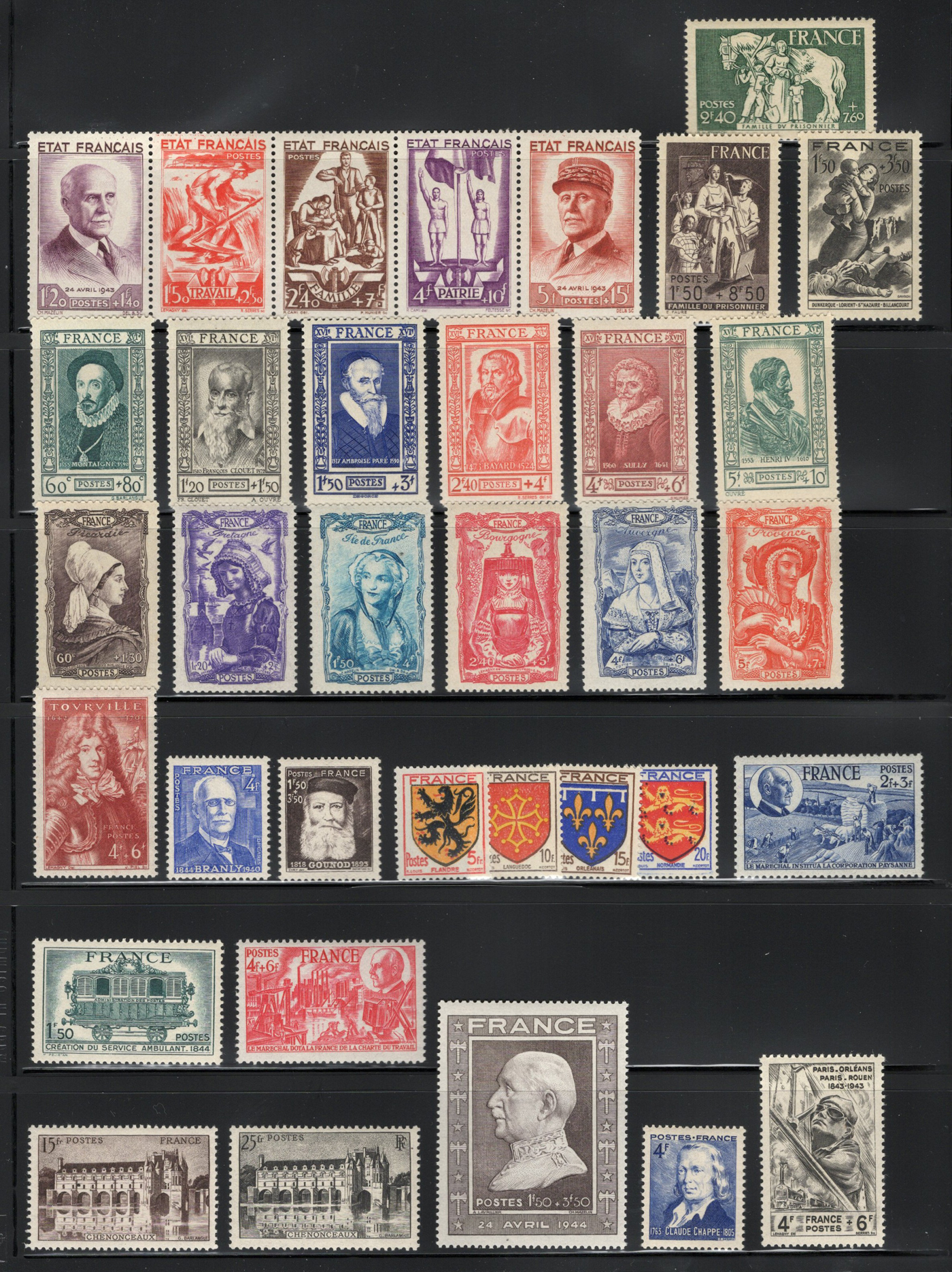 1556 nh   imageMint Never Hinged France Collection, 1900 to 1959, all neatly displayed on 25 black Vario sheets, with just under 1,000 different stamps. Some runs are strong and complete, such as the 1930s to 1959, and we note many better sets and singles, for example Scott #s 185-196 ($150), 198-201 ($125), 227-240 ($275), 258-262 ($125), 299 ($70), 300-300a ($174), 315-320 ($102), 342-347 ($122), 348 ($150), 700-705 ($61), B43 ($125), B48-53 ($75), B54-59 ($71), B66-67 ($350), B86-89A ($72), B157a ($100), B249-254 ($72), B285-290 ($137), B294-299 ($111), and many more, especially in the $10 to $50 range. An impressive collection not only for its catalogue value, but for its freshness and the fact that all the stamps are never hinged. Overall very fine. All pages scanned online for your perusal. (Scan 1) (Scan 2) (Scan 3) (Scan 4) (Scan 5) (Scan 6) (Scan 7) (Scan 8) (Scan 9) (Scan 10) (Scan 11) (Scan 12) (Scan 13) (Scan 14) (Scan 15) (Scan 16) (Scan 17) (Scan 18) (Scan 19) (Scan 20) (Scan 21) (Scan 22) (Scan 23) (Scan 24) (Scan 25) (All Scans)