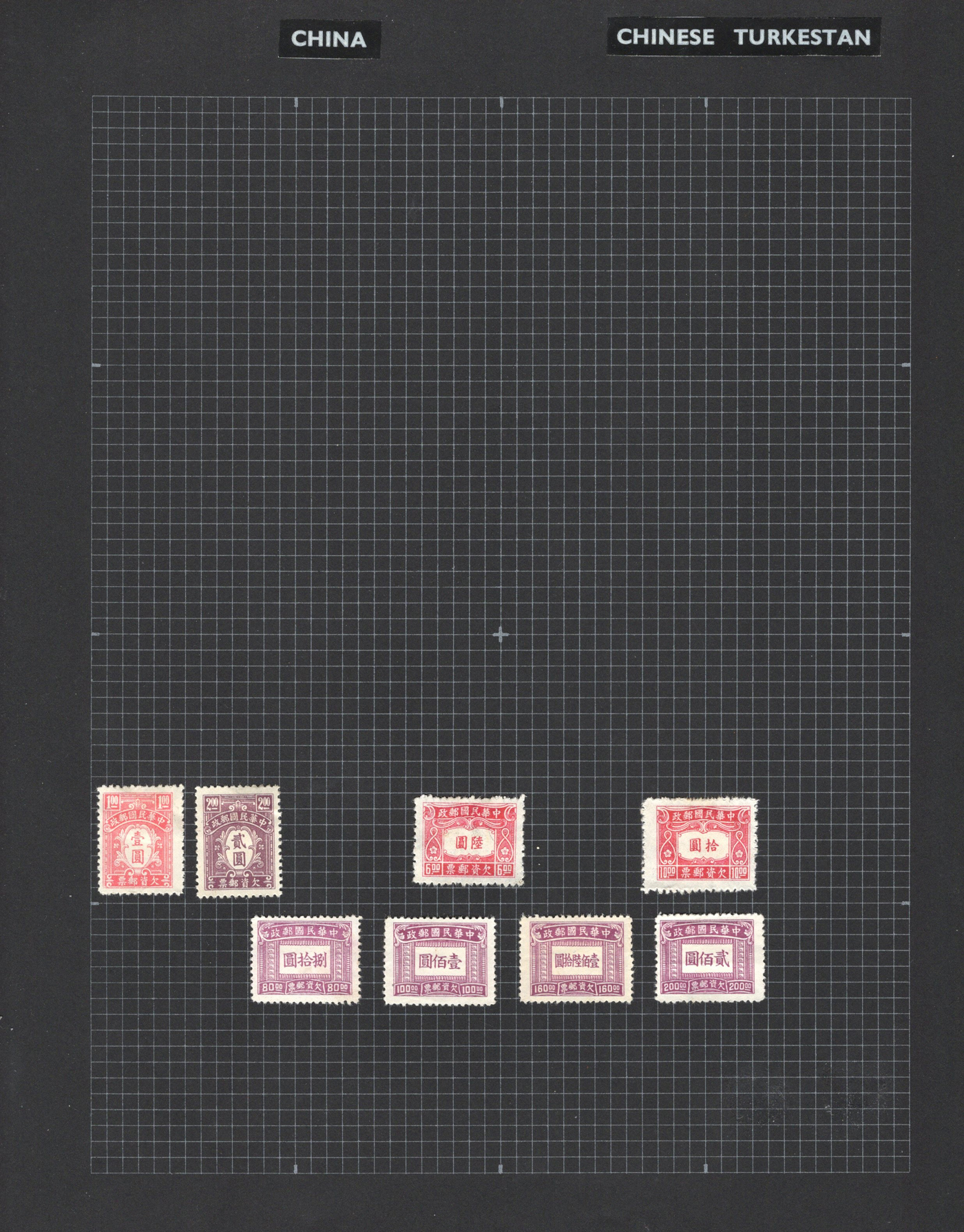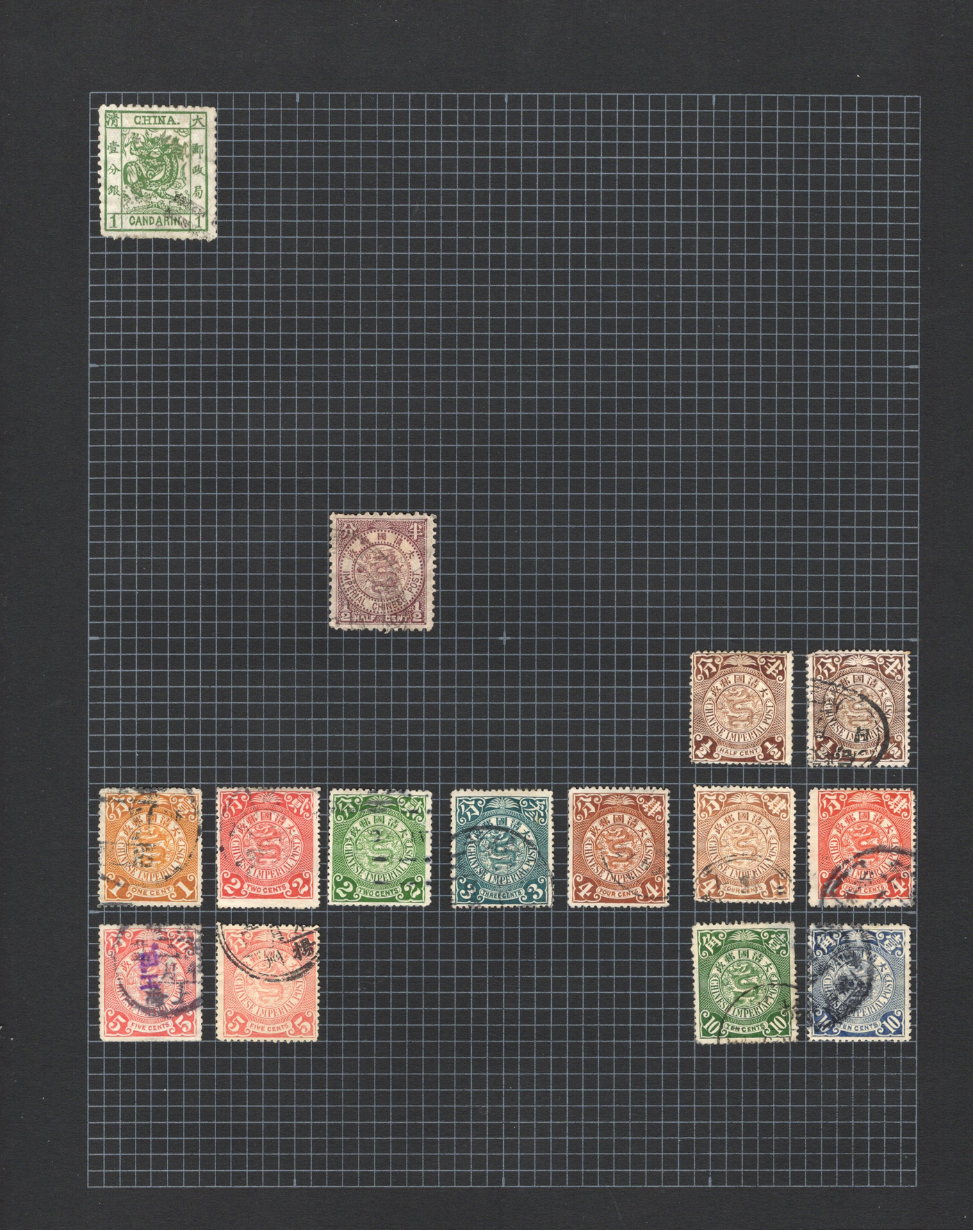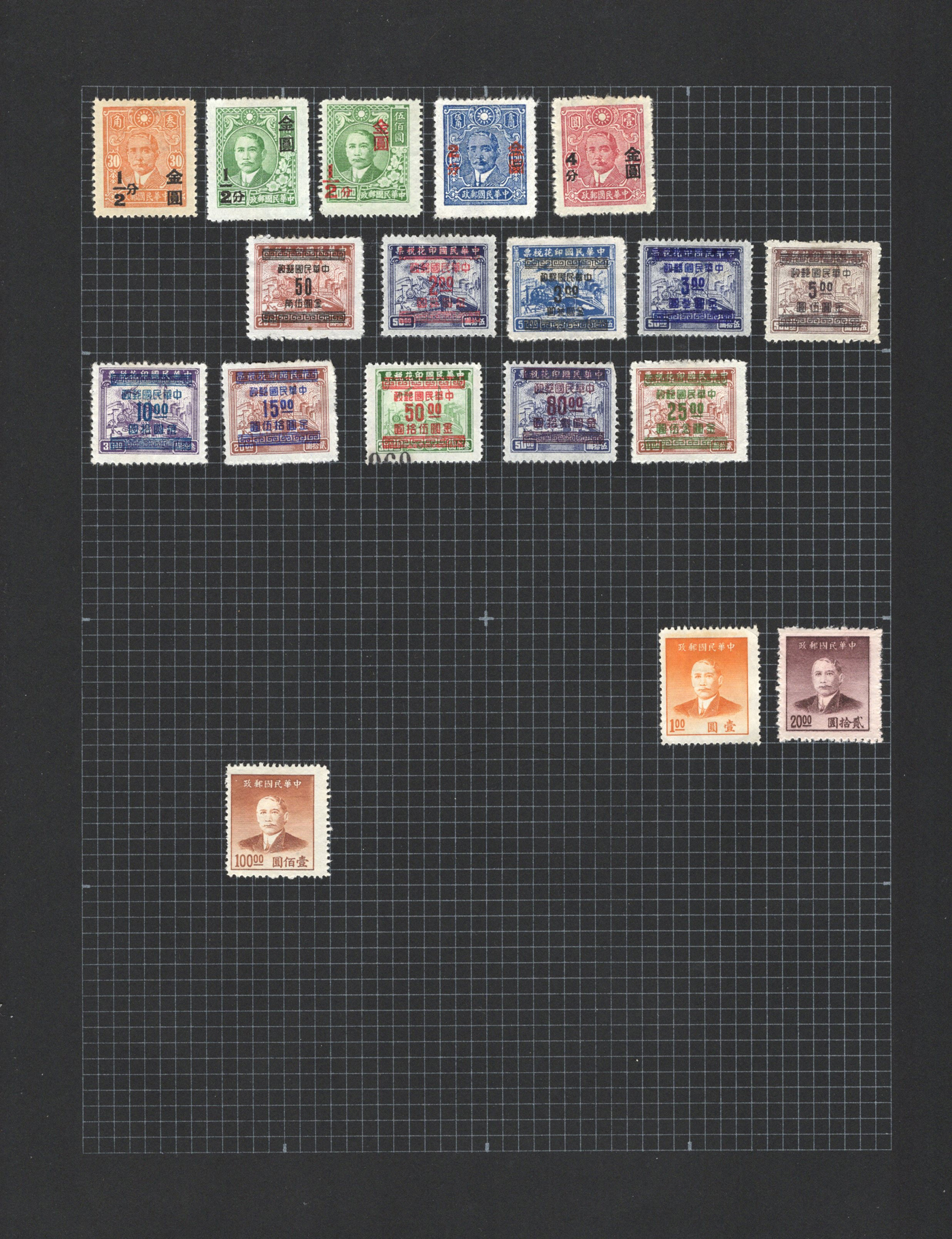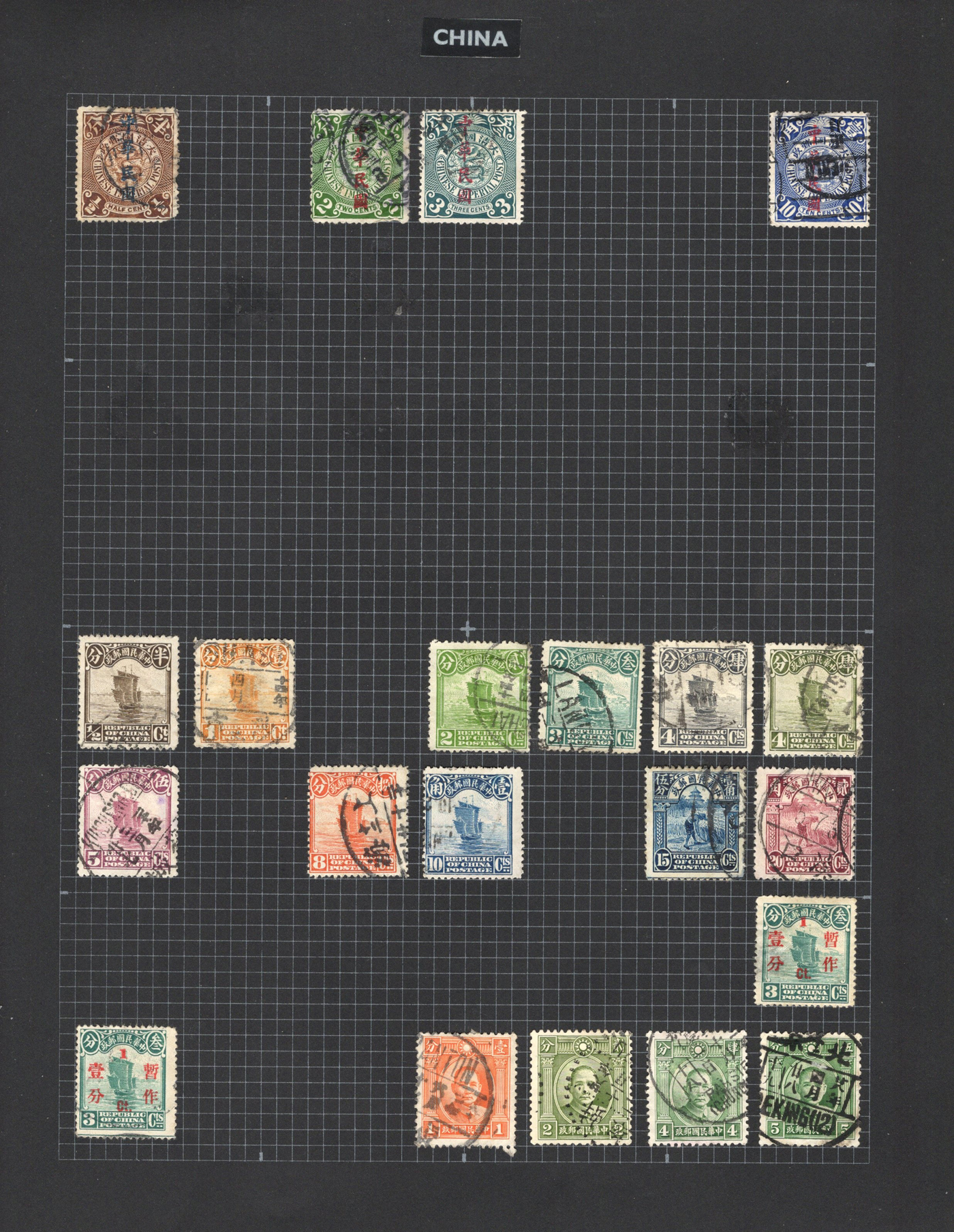1543 O/og   imageOld Time Collection of Mint and Used China, People's Republic of China and More, 1888 to 1956, mounted on 28 black quadrille pages, starting with China (10 pages), People's Republic of China (8 pages) and the rest is a variety of material from Manchuria, Formosa, provinces, Shanghai, and others. Good variety of material, mostly used or cancelled to order, some items are reprints, many useful singles and sets. Overall fine or better, with some faults here and there, see our sample photos for an idea. (Scan 1) (Scan 2) (Scan 3) (Scan 4) (Scan 5) (Scan 6) (Scan 7) (Scan 8) (Scan 9) (Scan 10) (Scan 11) (Scan 12) (Scan 13) (Scan 14) (Scan 15) (All Scans)