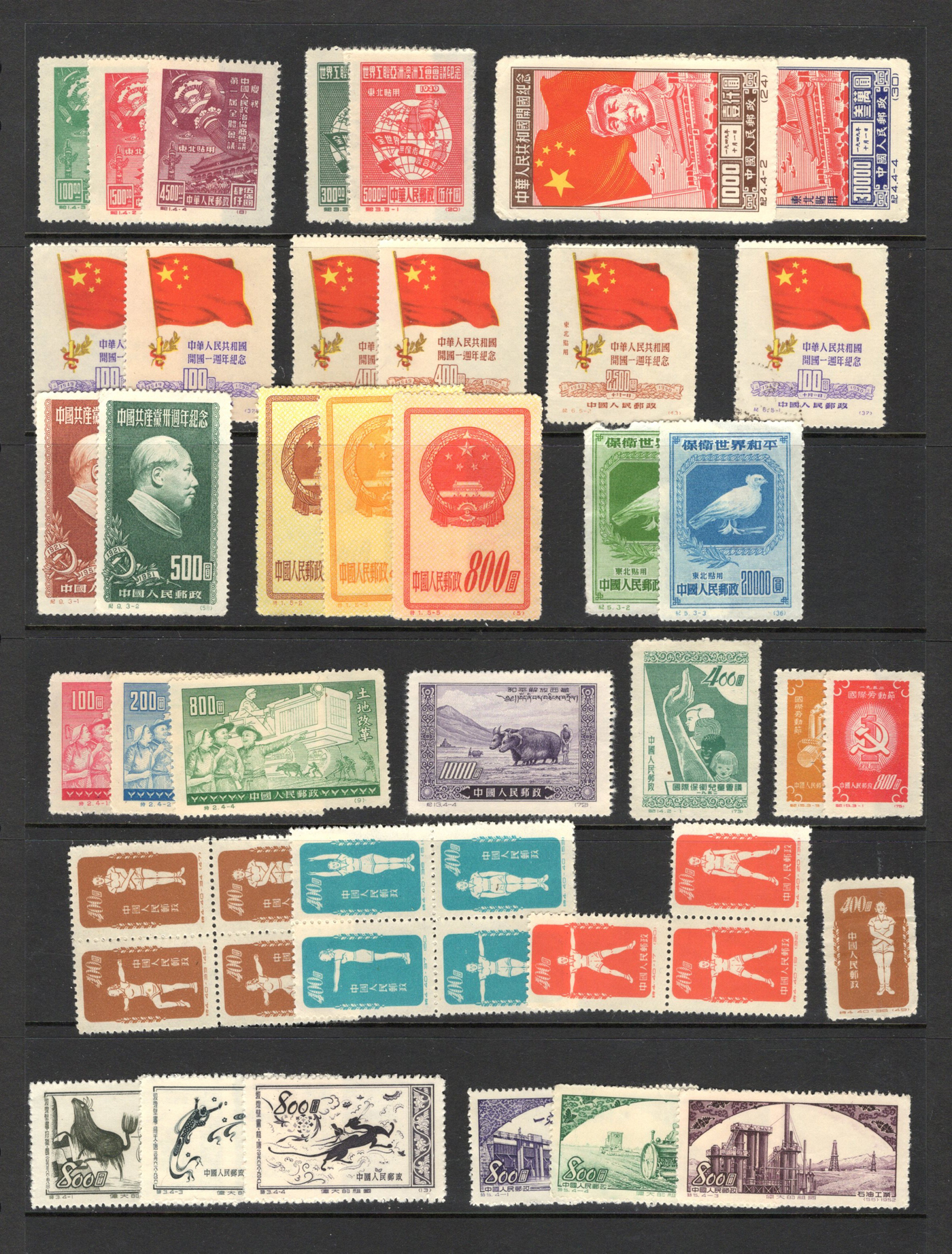 1544 O/ng   imageSmall Collection of Early People's Republic of China Issues, with about 100 different stamps on three Hagner pages, ranging from 1947 to about 1965. Includes mint and used (cancelled to order) singles, sets and part sets. A useful and overall fine or better group. (Scan 1) (Scan 2) (Scan 3) (All Scans)