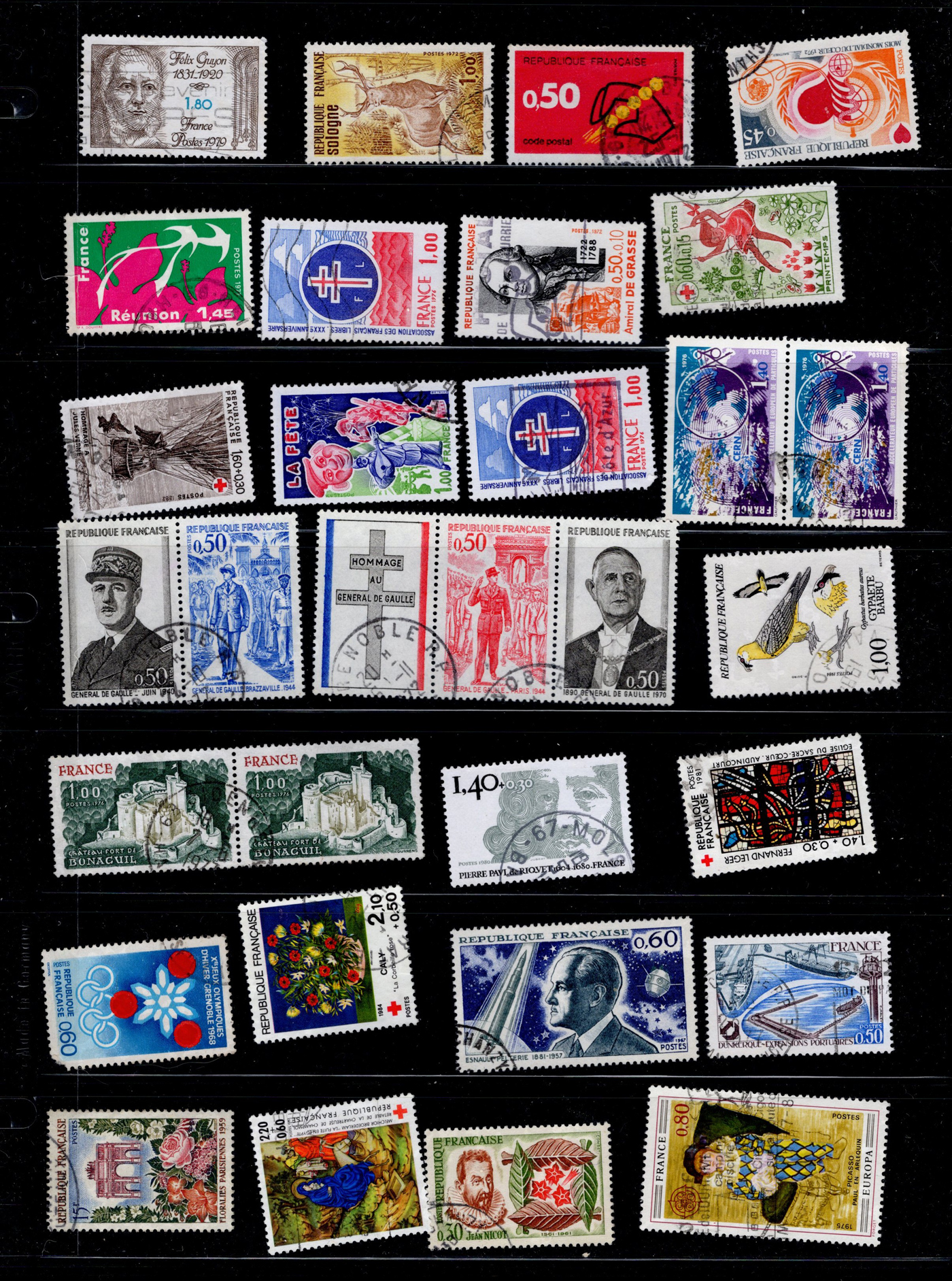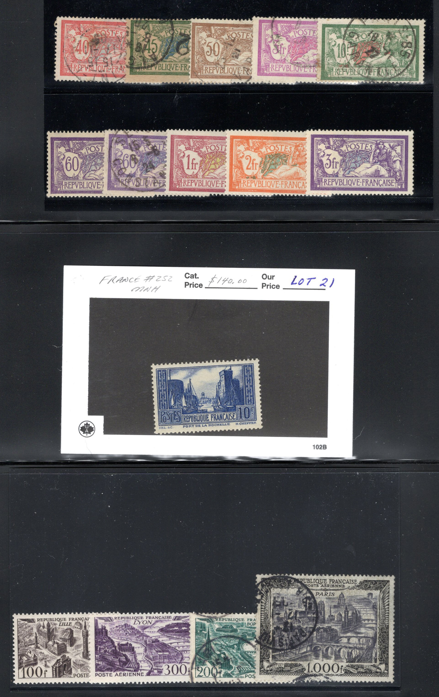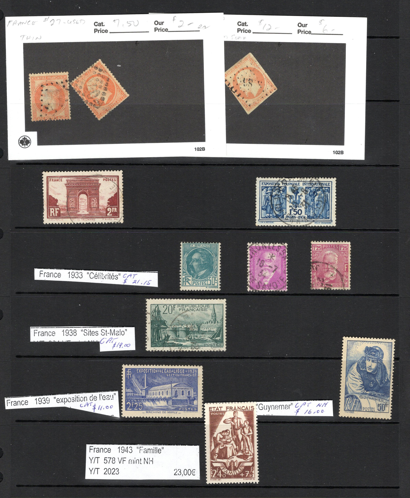 1557 O/og/nh   imageAssortment of Mint and Used France in a Stockbook, the majority of the stockbook consists of about 875 different regular and semi-postal issues from the 1940s to the 1960s, the vast majority being very fine mint. Among the extra material we noted some better such as #252 (mint, $140), 291 (mint, $17), 347 (used, $19), 396 (mint ($16), B155 (mint, $12), C27 (used, $24), 1992 Albertville souvenir folder, etc. Also noted a selection of 9 different mint and used Liberty and Peace issues, with mint #s 124, 125, 127 and 128. Overall fine or better, see our pictures for a small sampling. (Scan 1) (Scan 2) (Scan 3) (Scan 4) (Scan 5) (Scan 6) (Scan 7) (Scan 8) (Scan 9) (Scan 10) (Scan 11) (All Scans)