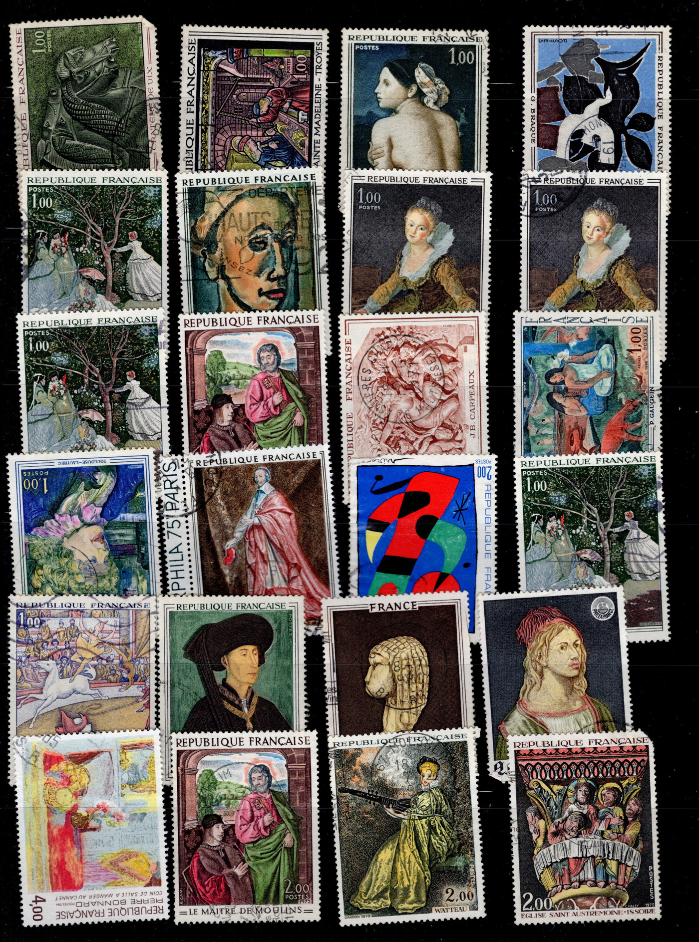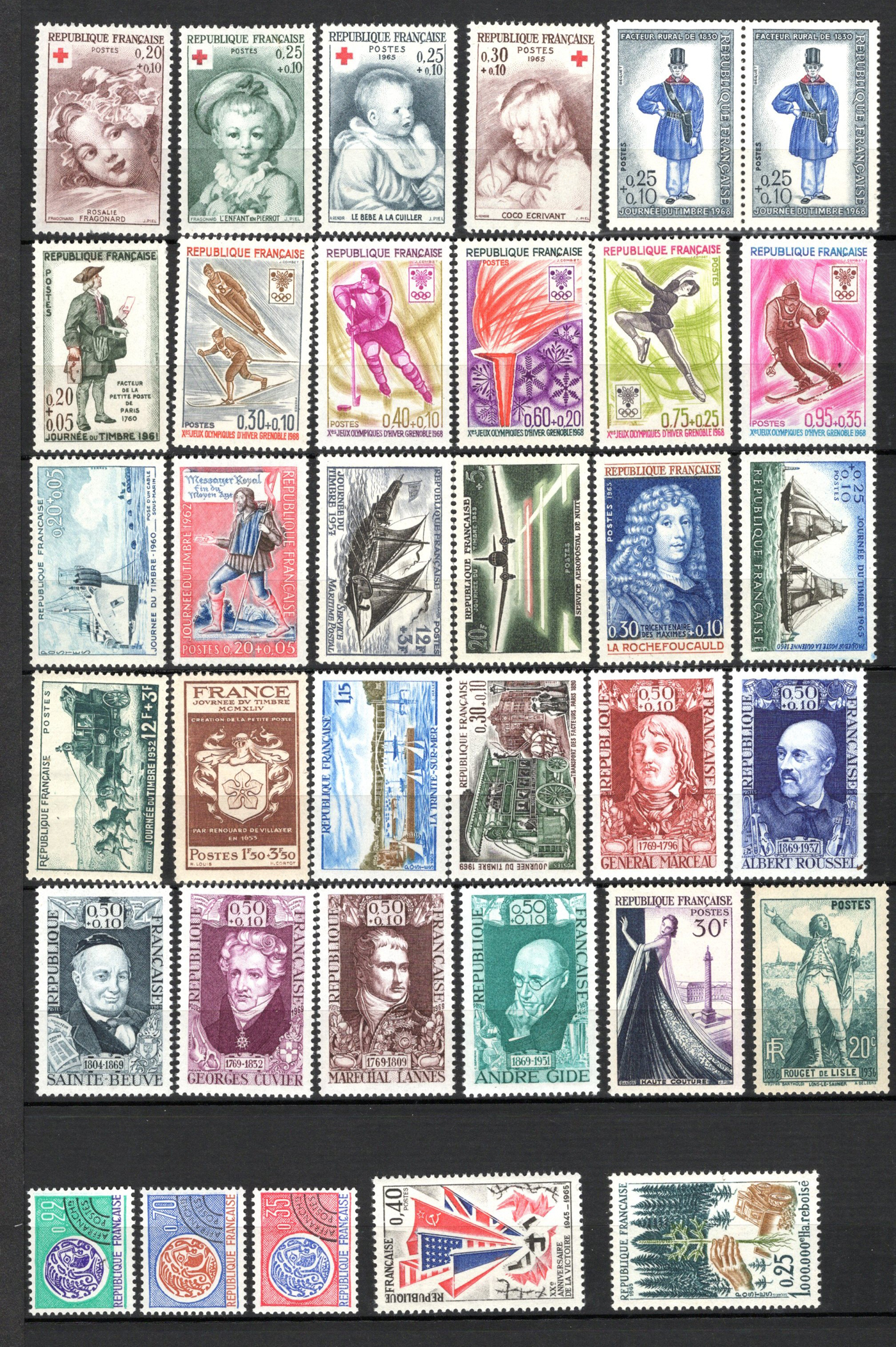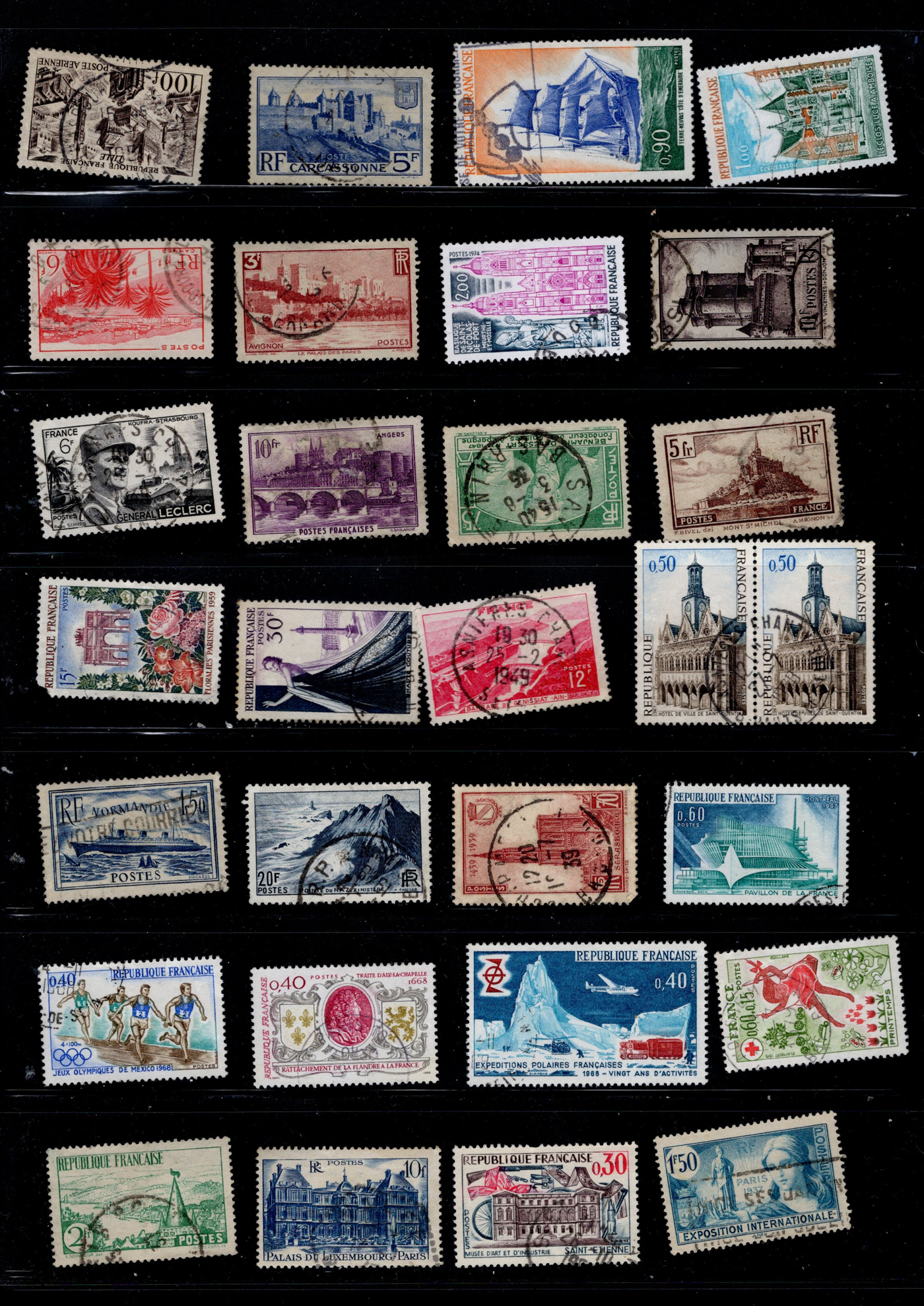 1557 O/og/nh   imageAssortment of Mint and Used France in a Stockbook, the majority of the stockbook consists of about 875 different regular and semi-postal issues from the 1940s to the 1960s, the vast majority being very fine mint. Among the extra material we noted some better such as #252 (mint, $140), 291 (mint, $17), 347 (used, $19), 396 (mint ($16), B155 (mint, $12), C27 (used, $24), 1992 Albertville souvenir folder, etc. Also noted a selection of 9 different mint and used Liberty and Peace issues, with mint #s 124, 125, 127 and 128. Overall fine or better, see our pictures for a small sampling. (Scan 1) (Scan 2) (Scan 3) (Scan 4) (Scan 5) (Scan 6) (Scan 7) (Scan 8) (Scan 9) (Scan 10) (Scan 11) (All Scans)