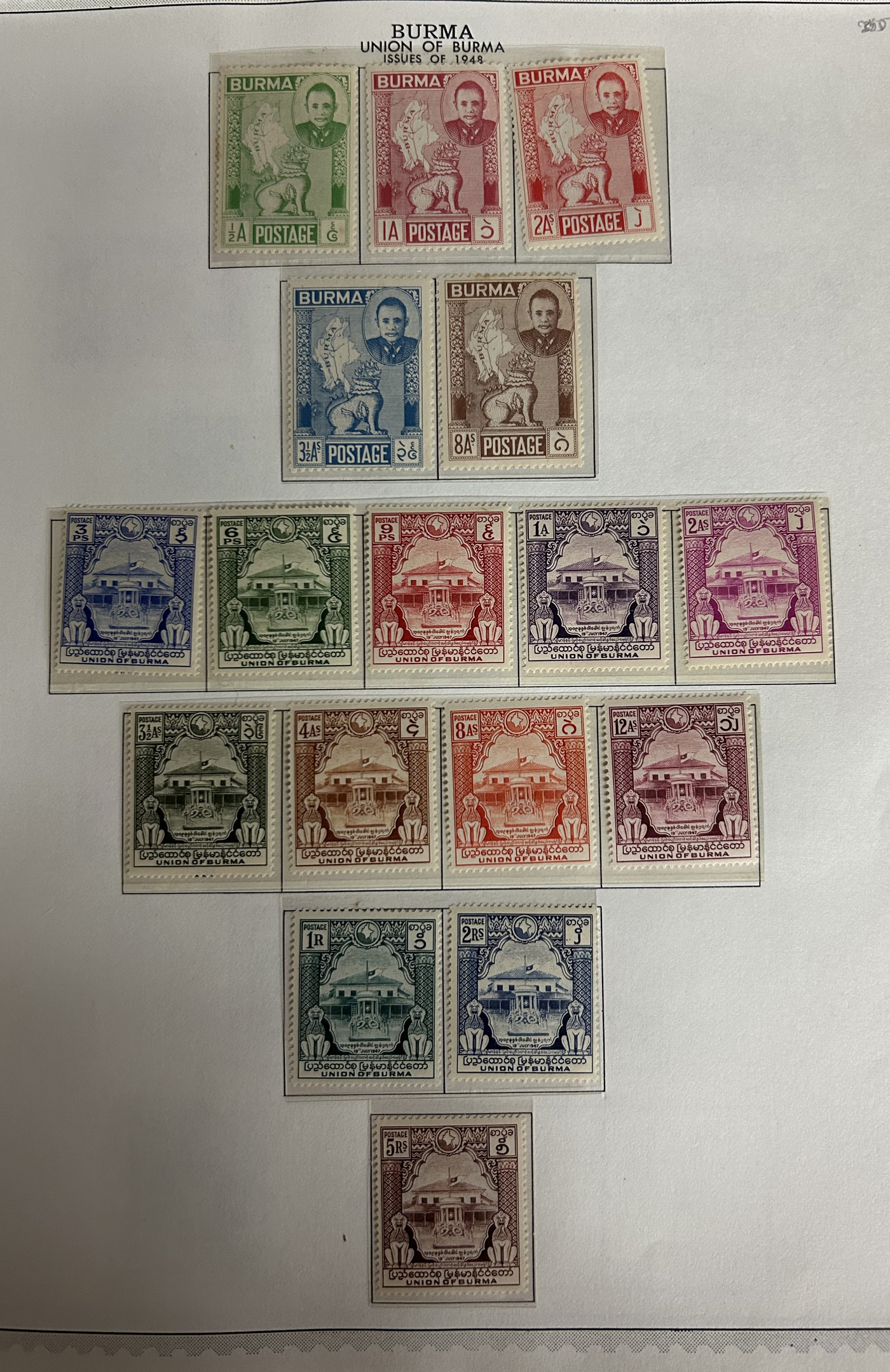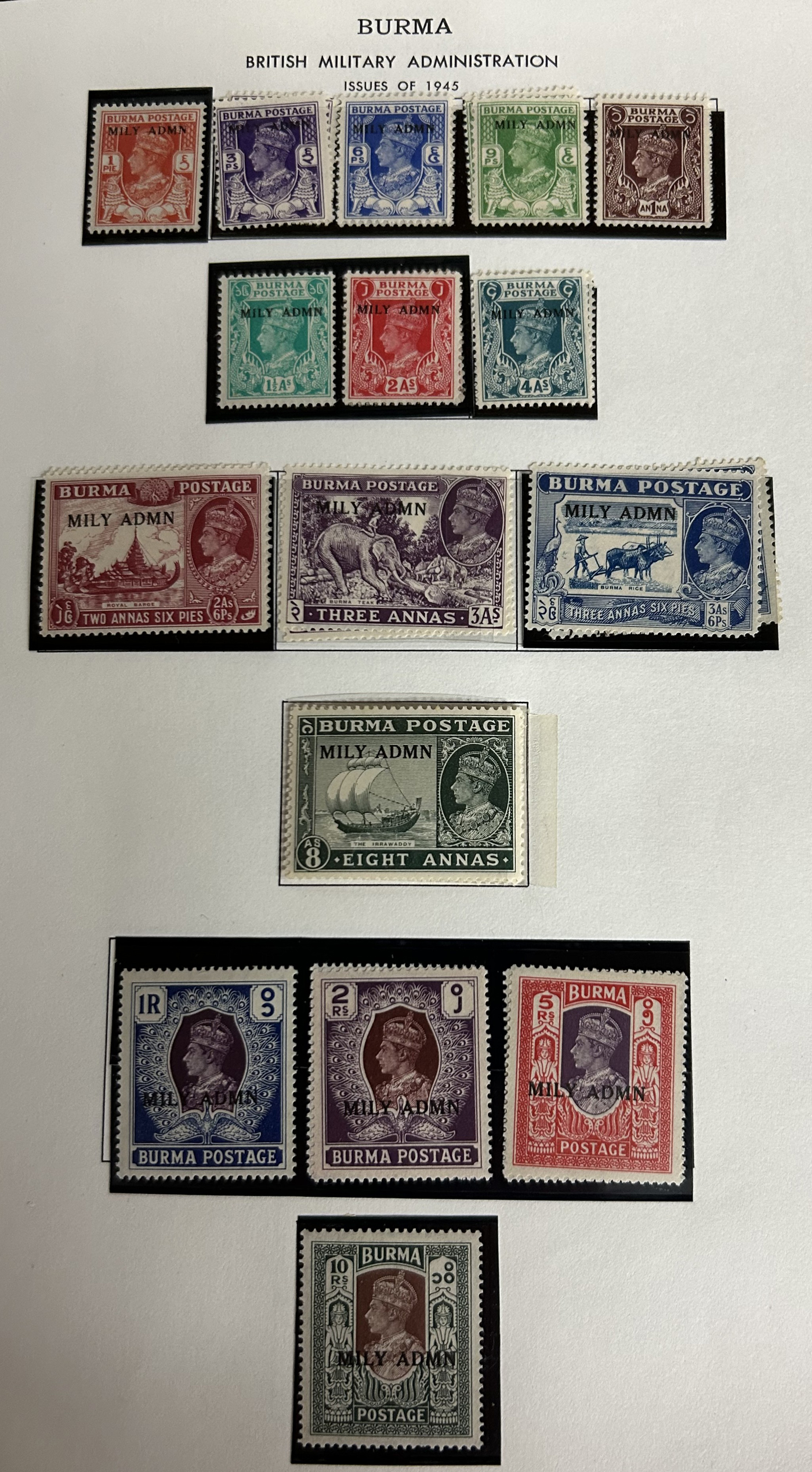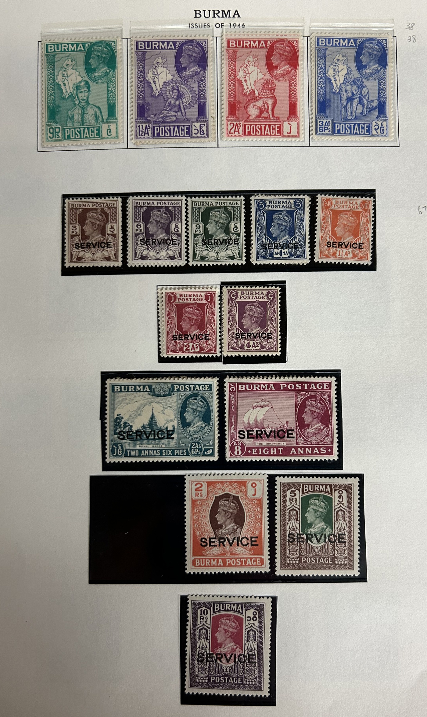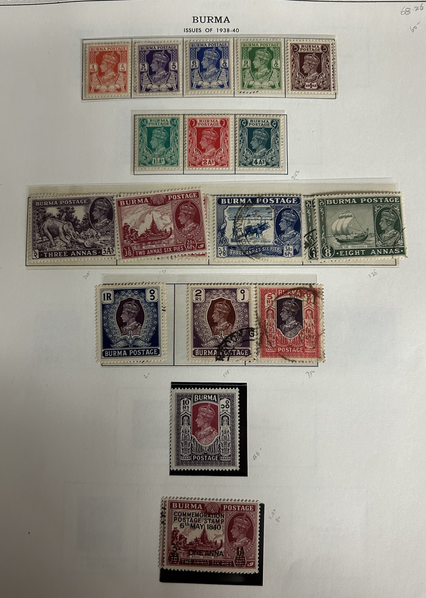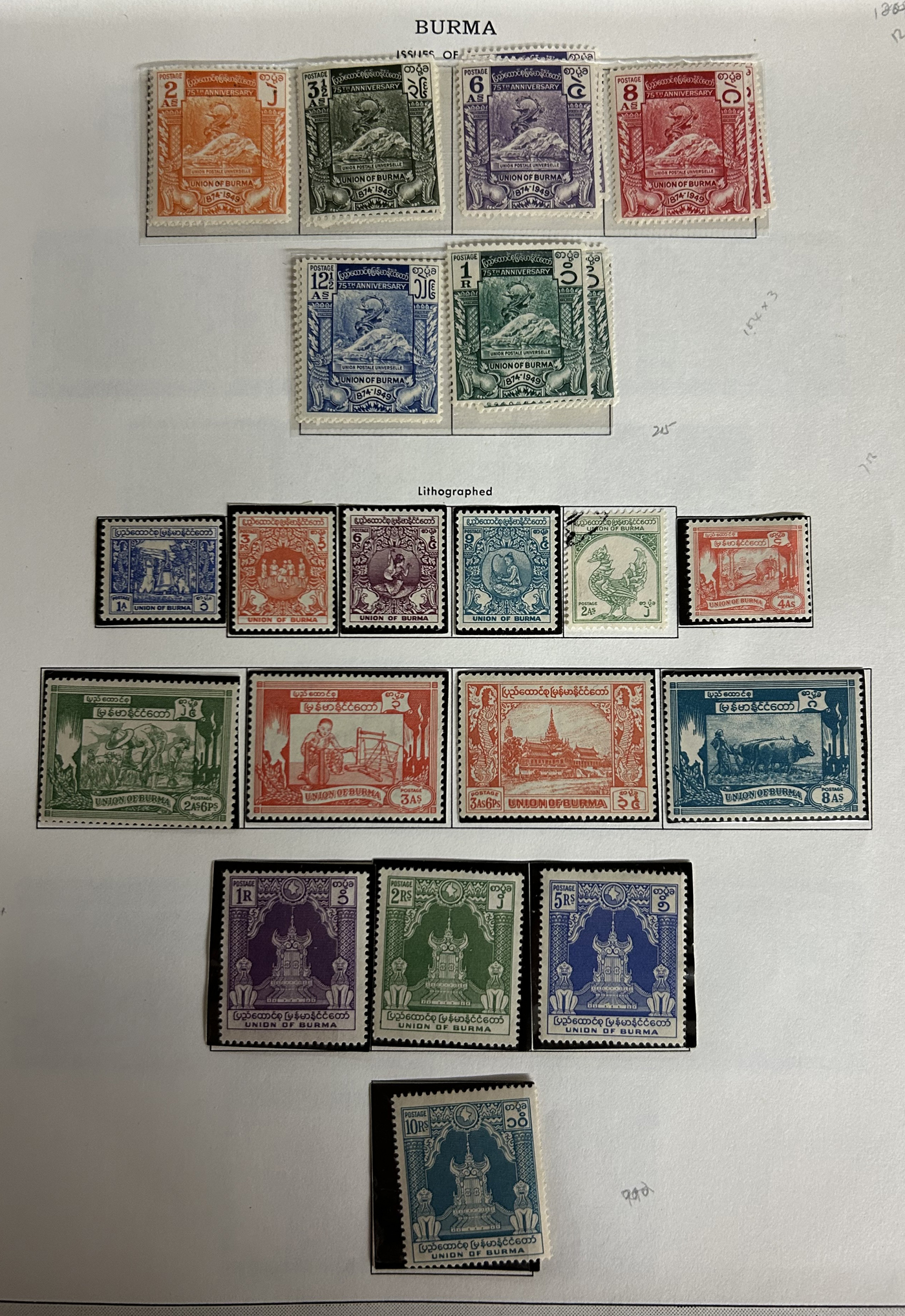1541 O/og/nh   imageCollection of Mint and Used Burma, 1937 to 1968, with a mix of mint and used, and often with both (one under the other), with light duplication of either or both. We note the following runs, with #s 1-13, 14 (these all mint, with some additional used), 18A-34 (mix of mint and used), 35-50 (mint, with some add'l used), 70-101 (mint), 116-135 (mint), 1N46 (mint, $120), O28/O42 (mint, missing O39), O43-O55 (mint, $200), and many more. A clean and overall fine or better collection, see pictures for a sampling, bearing in mid that there are many hidden stamps underneath others. (Scan 1) (Scan 2) (Scan 3) (Scan 4) (Scan 5) (Scan 6) (Scan 7) (Scan 8) (Scan 9) (Scan 10) (Scan 11) (Scan 12) (All Scans)