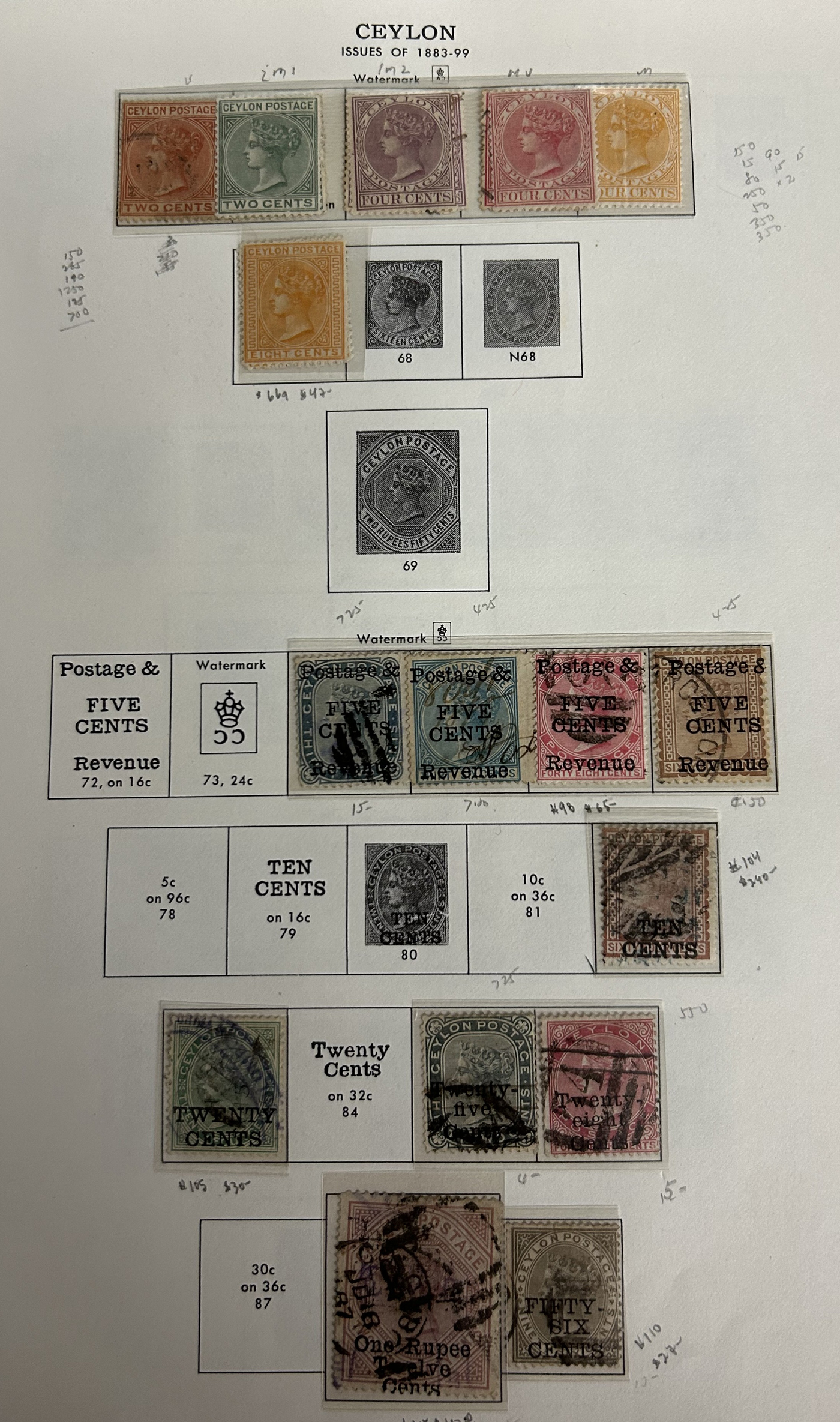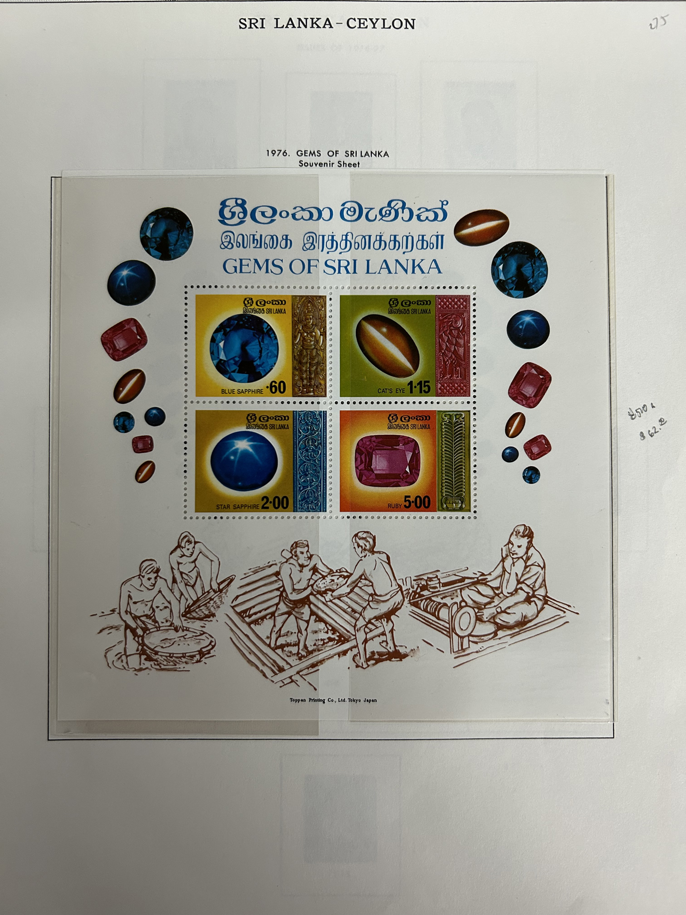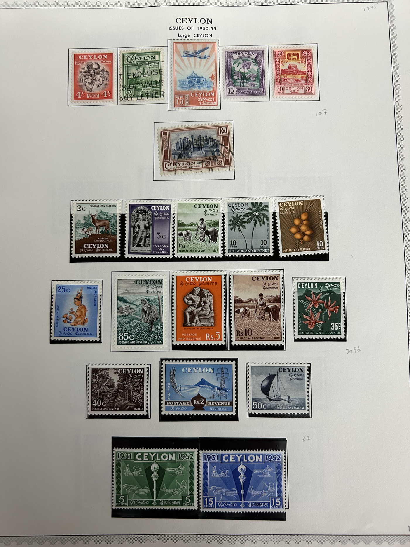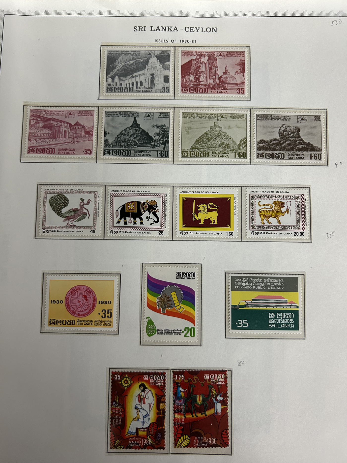 1542 O/og/nh   imageCollection of Mint and Used Ceylon / Sri Lanka, 1857-1982, the Ceylon era is quite strong, with a mix of mint and used, ad often both, with better items such as Scott #s 11 ($260), 33 ($30), O7 ($160)142 ($32), 66a ($47), 98 ($65), 104 ($240), 110 ($27), 115 ($47), 274 ($40), 289A ($50) and many more, often in the $5 to $20 value, and more, if some of the high value turn out to be postally used. The collection is close to complete from the 1930s to 1970, becoming mint only in that period. The Sri Lanka period starts off strong with #s 507-510 ($42), 510a ($62), and has its best representation in the 1979 to 1982 period, including several souvenir sheets and complete sets. A clean and overall fine to very fine collection, with lots of useful material - see our photos for a small sample. (Scan 1) (Scan 2) (Scan 3) (Scan 4) (Scan 5) (Scan 6) (Scan 7) (Scan 8) (Scan 9) (Scan 10) (Scan 11) (Scan 12) (Scan 13) (Scan 14) (Scan 15) (Scan 16) (Scan 17) (All Scans)