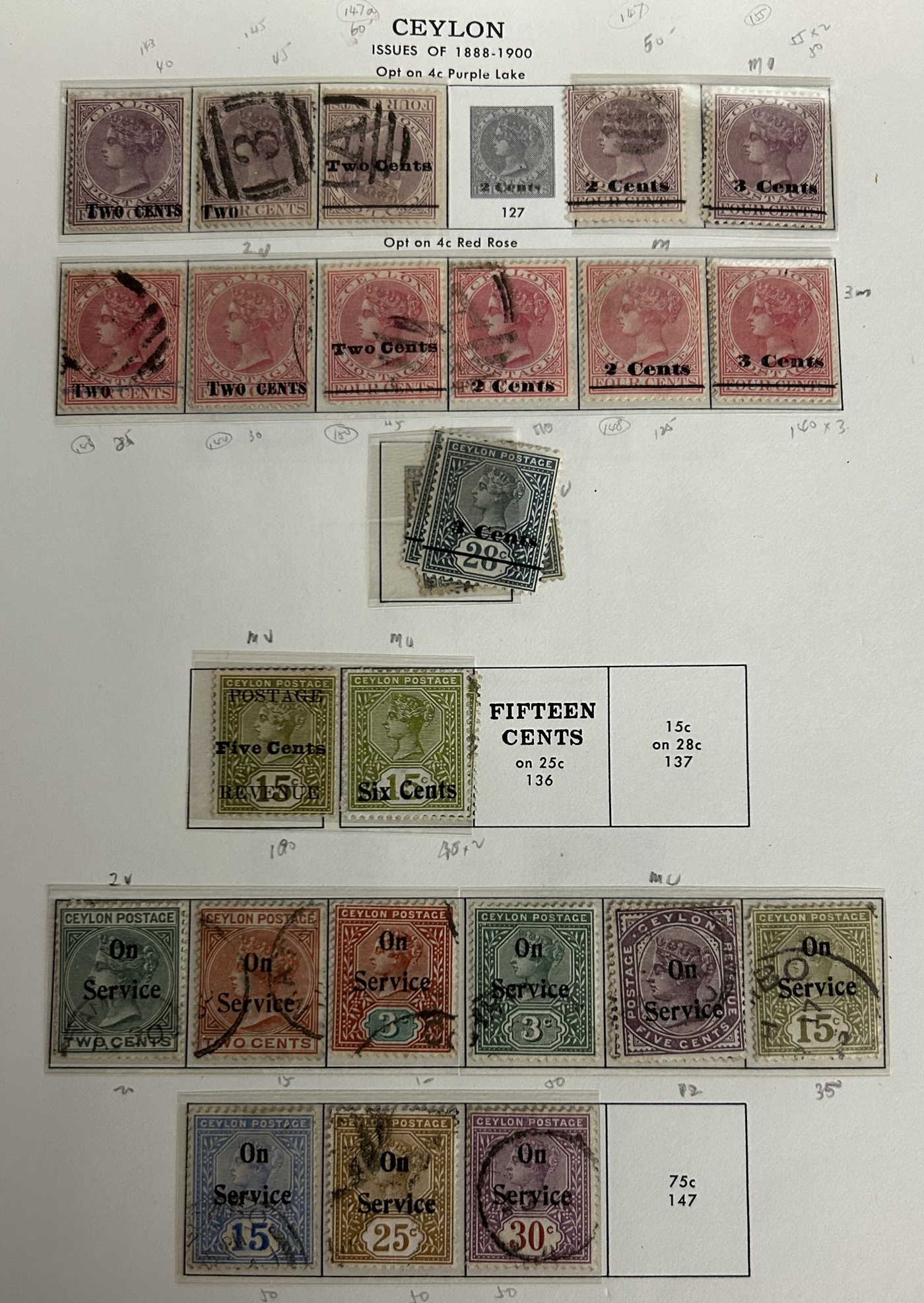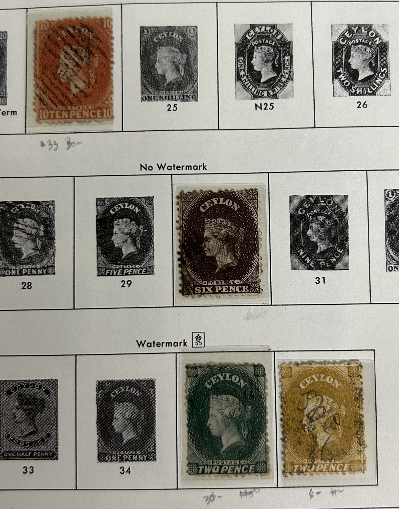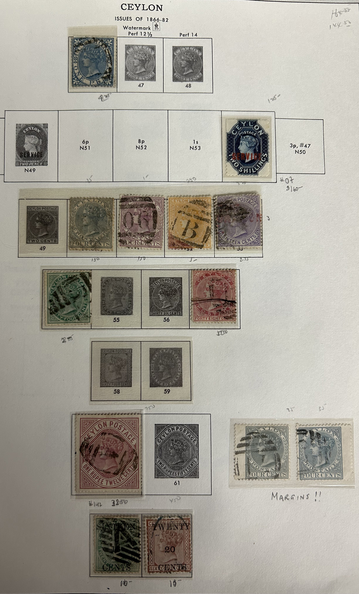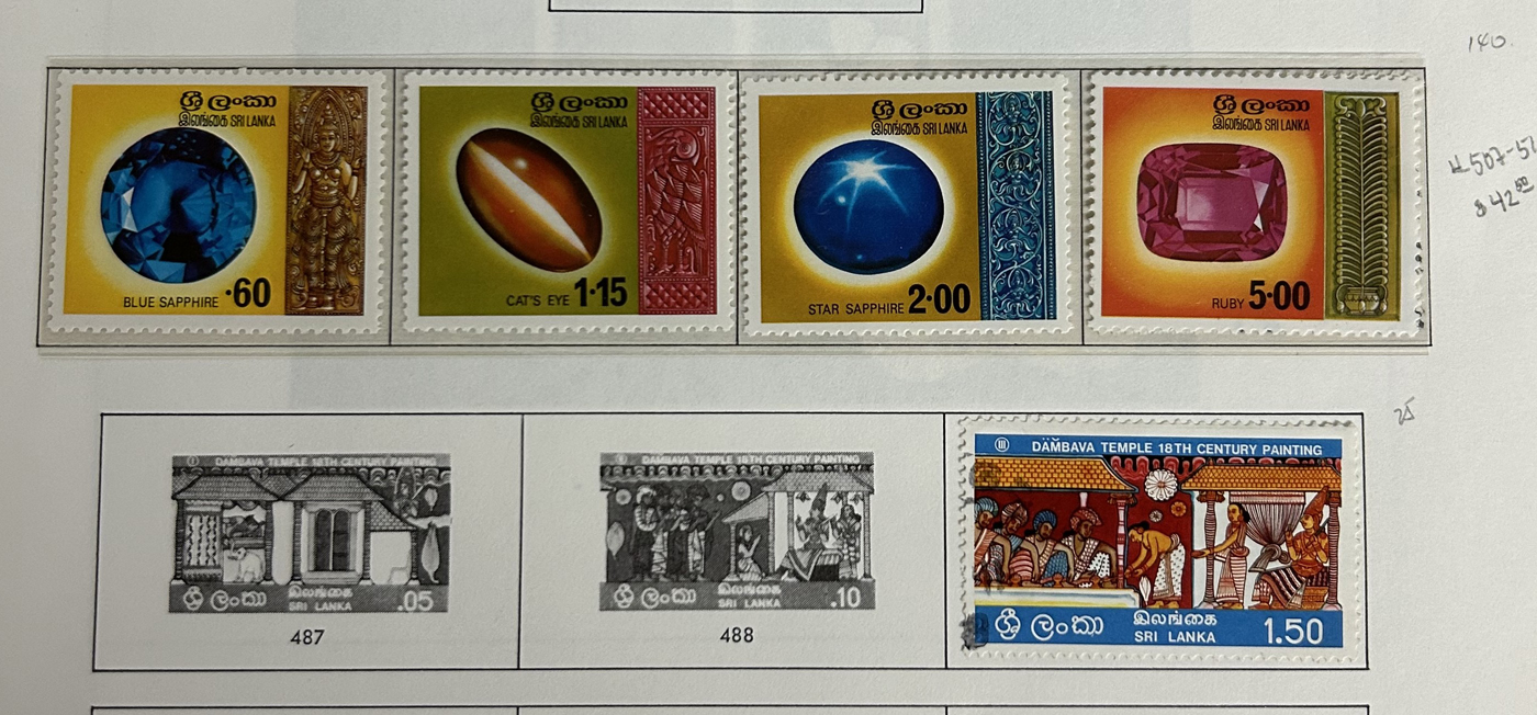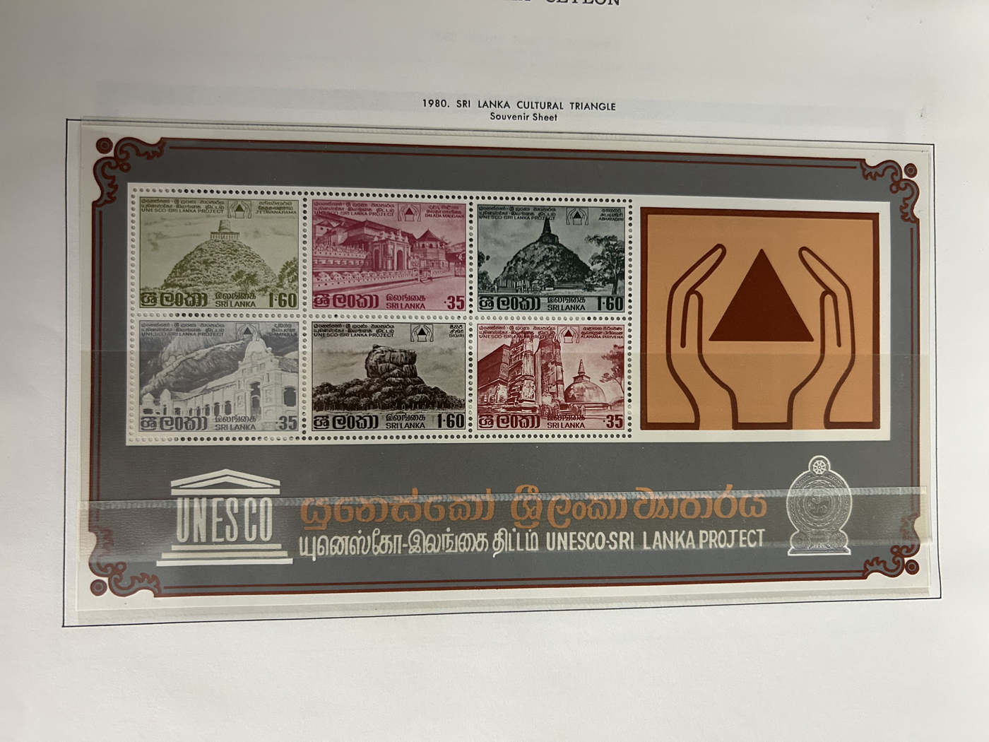 1542 O/og/nh   imageCollection of Mint and Used Ceylon / Sri Lanka, 1857-1982, the Ceylon era is quite strong, with a mix of mint and used, ad often both, with better items such as Scott #s 11 ($260), 33 ($30), O7 ($160)142 ($32), 66a ($47), 98 ($65), 104 ($240), 110 ($27), 115 ($47), 274 ($40), 289A ($50) and many more, often in the $5 to $20 value, and more, if some of the high value turn out to be postally used. The collection is close to complete from the 1930s to 1970, becoming mint only in that period. The Sri Lanka period starts off strong with #s 507-510 ($42), 510a ($62), and has its best representation in the 1979 to 1982 period, including several souvenir sheets and complete sets. A clean and overall fine to very fine collection, with lots of useful material - see our photos for a small sample. (Scan 1) (Scan 2) (Scan 3) (Scan 4) (Scan 5) (Scan 6) (Scan 7) (Scan 8) (Scan 9) (Scan 10) (Scan 11) (Scan 12) (Scan 13) (Scan 14) (Scan 15) (Scan 16) (Scan 17) (All Scans)