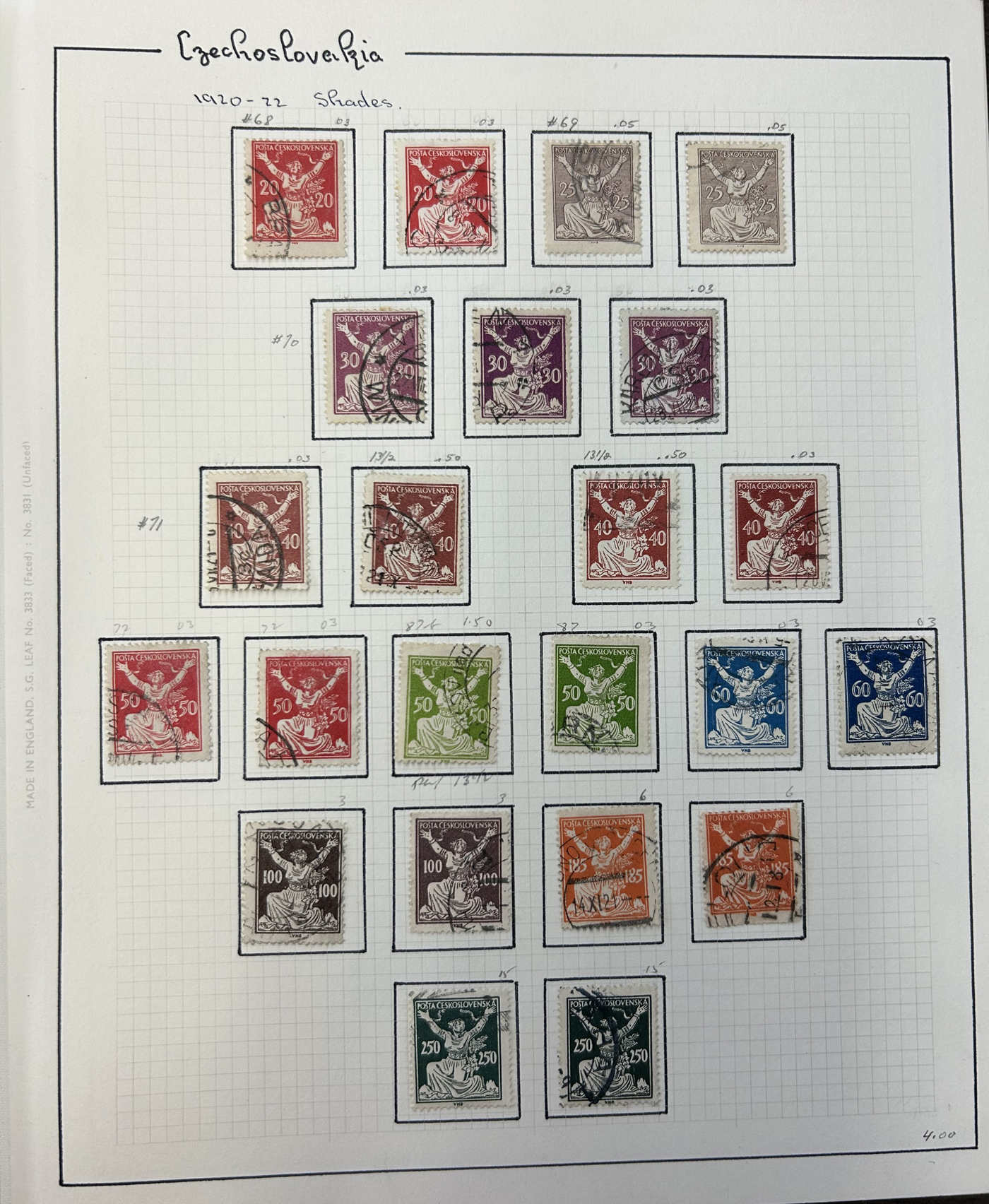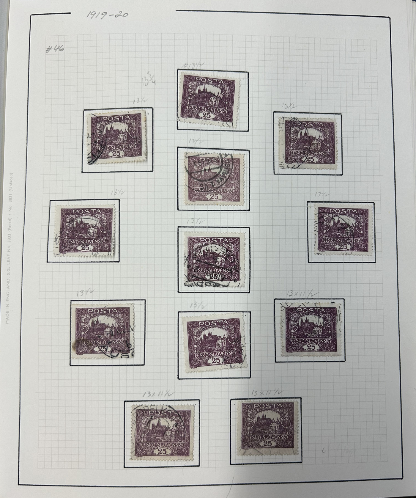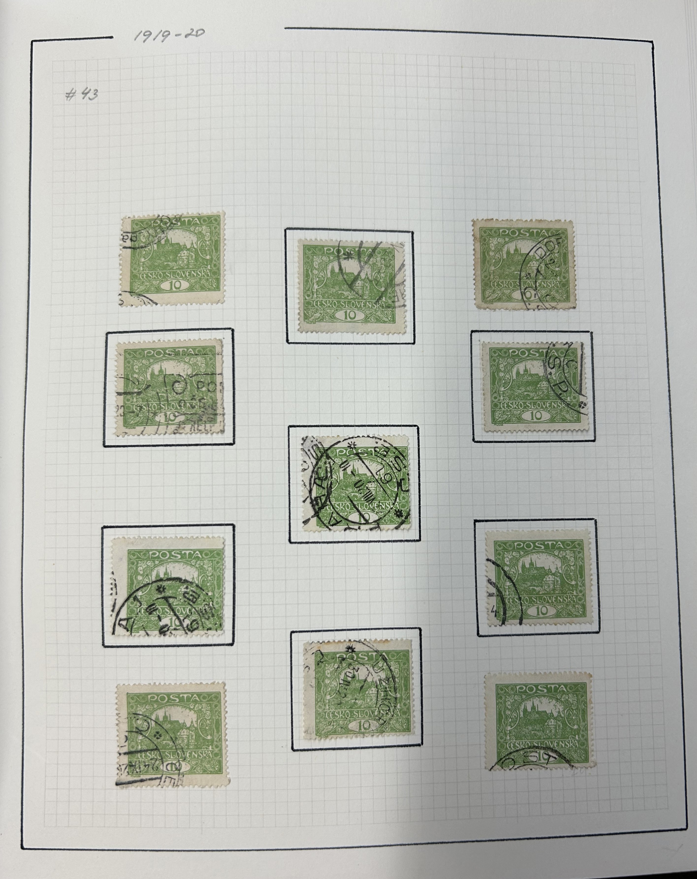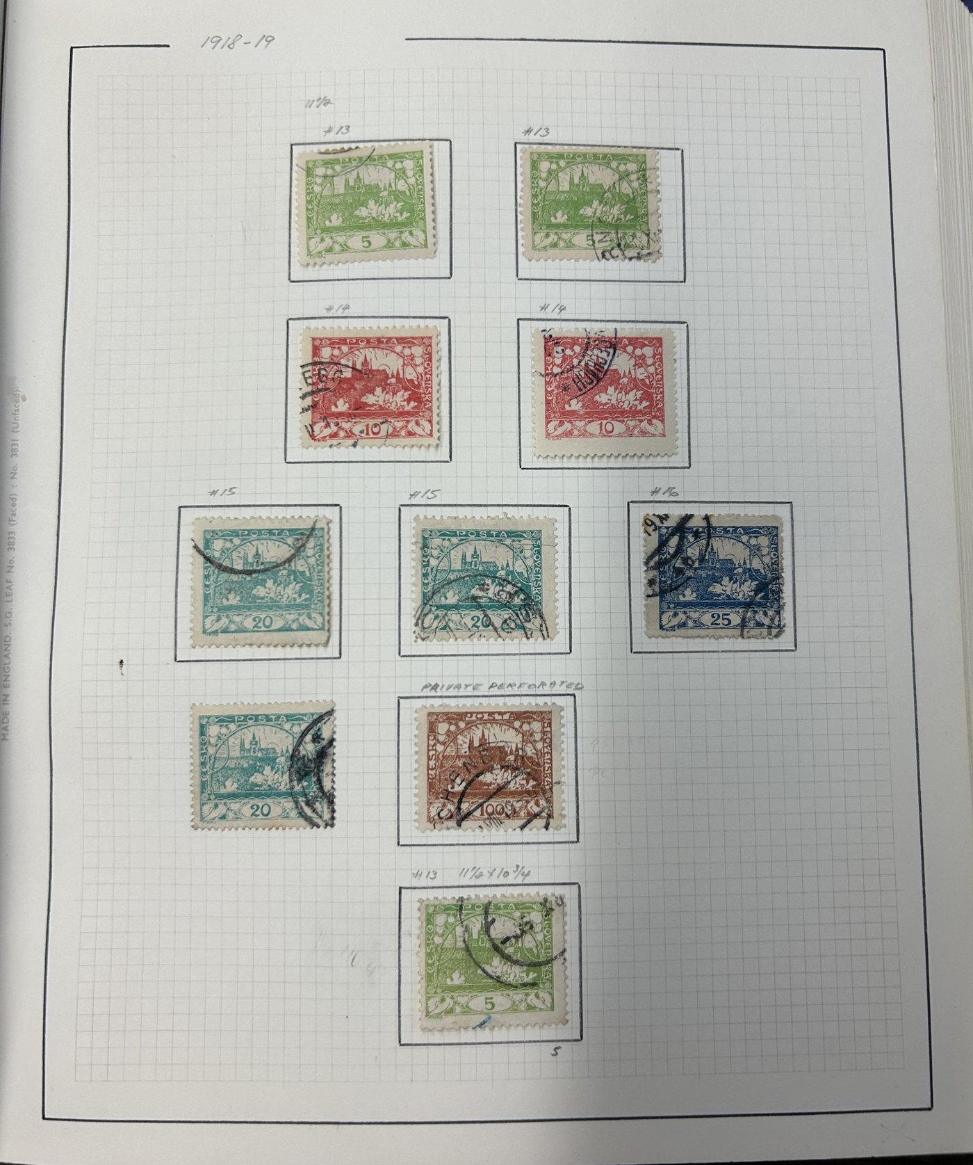 1547 O   imageExtensive Collection of Used Czechoslovakia, 1918 to 1936, with many hundreds of stamps neatly mounted on 60 quadrille pages in an album, Starts with two pages of Newspaper stamps, followed by all of the other issues chronologically, including many pages of shades, postmarks, perforations for the Hradcany issues as well as Postage Dues and other specialties. A very clean collection, with quality stamps, see our many photos online for a small sampling. (Scan 1) (Scan 2) (Scan 3) (Scan 4) (Scan 5) (Scan 6) (Scan 7) (Scan 8) (Scan 9) (Scan 10) (Scan 11) (Scan 12) (All Scans)