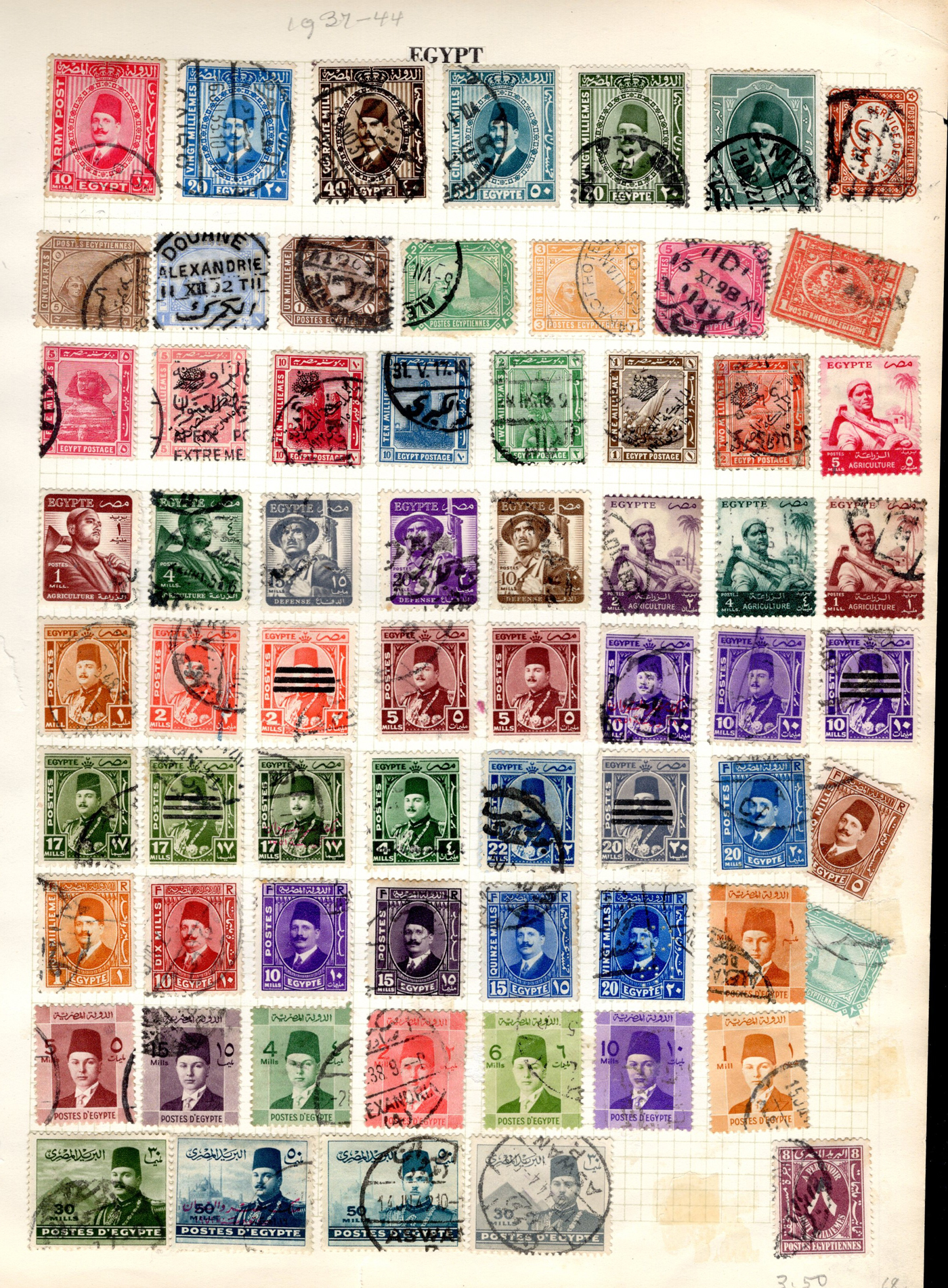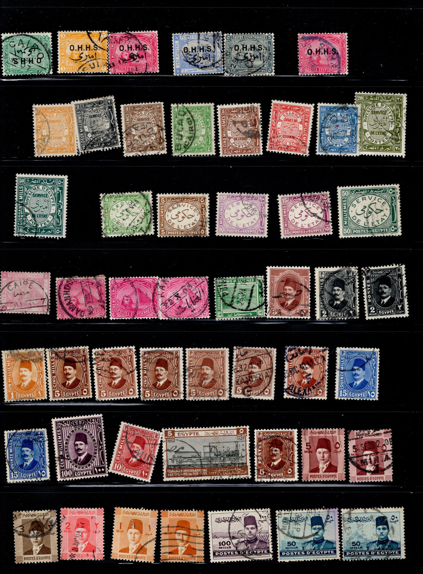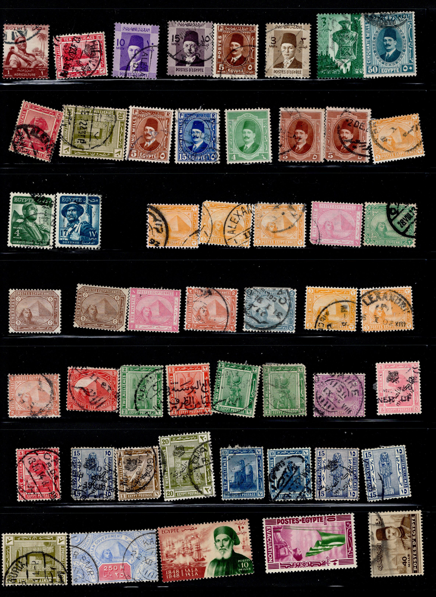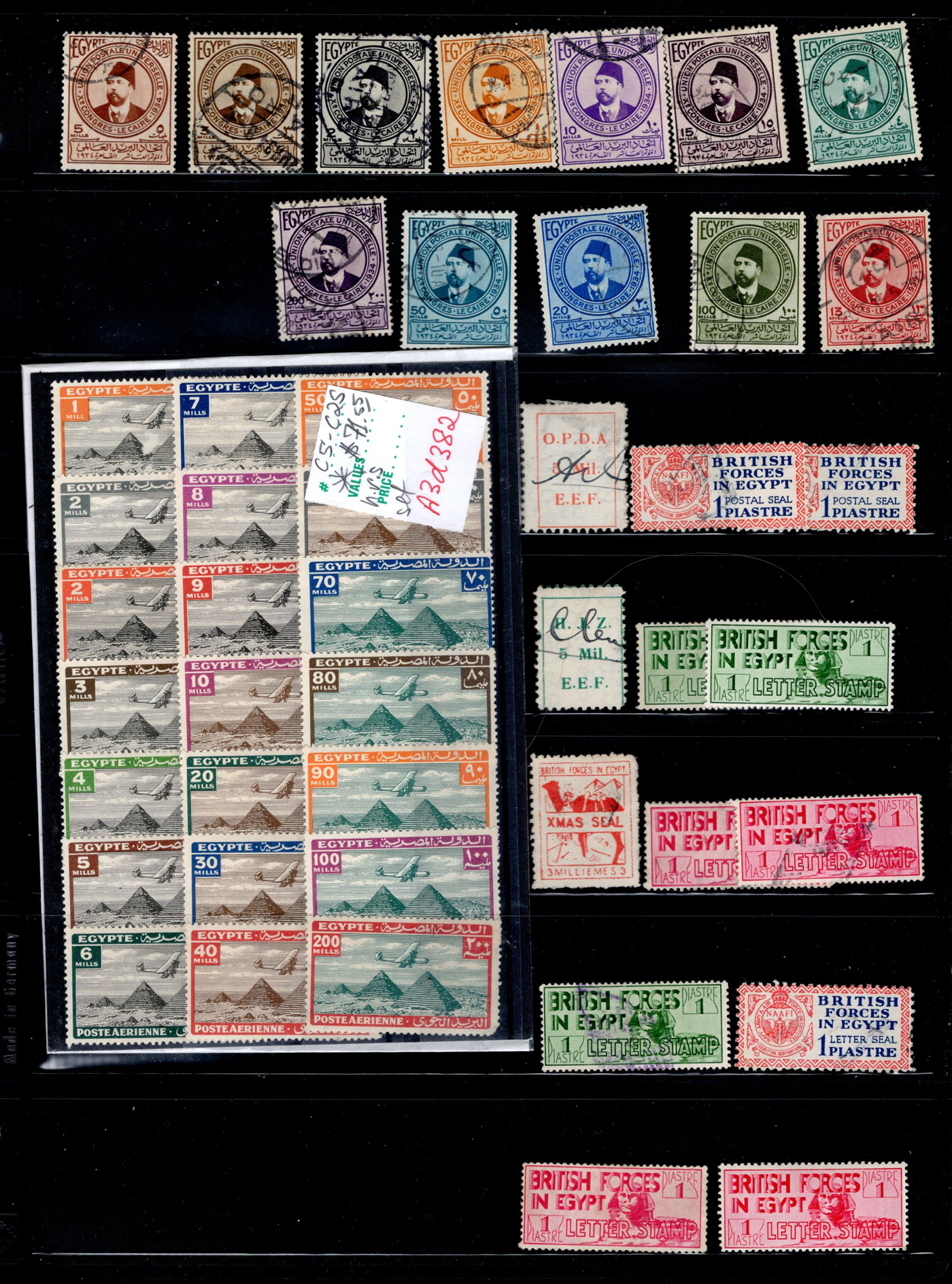 1550 O/og/nh   imageCollection / Accumulation of Mainly Used Egypt, to about 1960s, on one album page plus 16 stock pages, noting a wide assortment of issues (with duplication) including Dues, Airmail, British Forces in Egypt (13 stamps between #M1-M8), a few souvenir sheets, and more. Overall fine, see photos for a glimpse. (Scan 1) (Scan 2) (Scan 3) (Scan 4) (Scan 5) (Scan 6) (Scan 7) (All Scans)