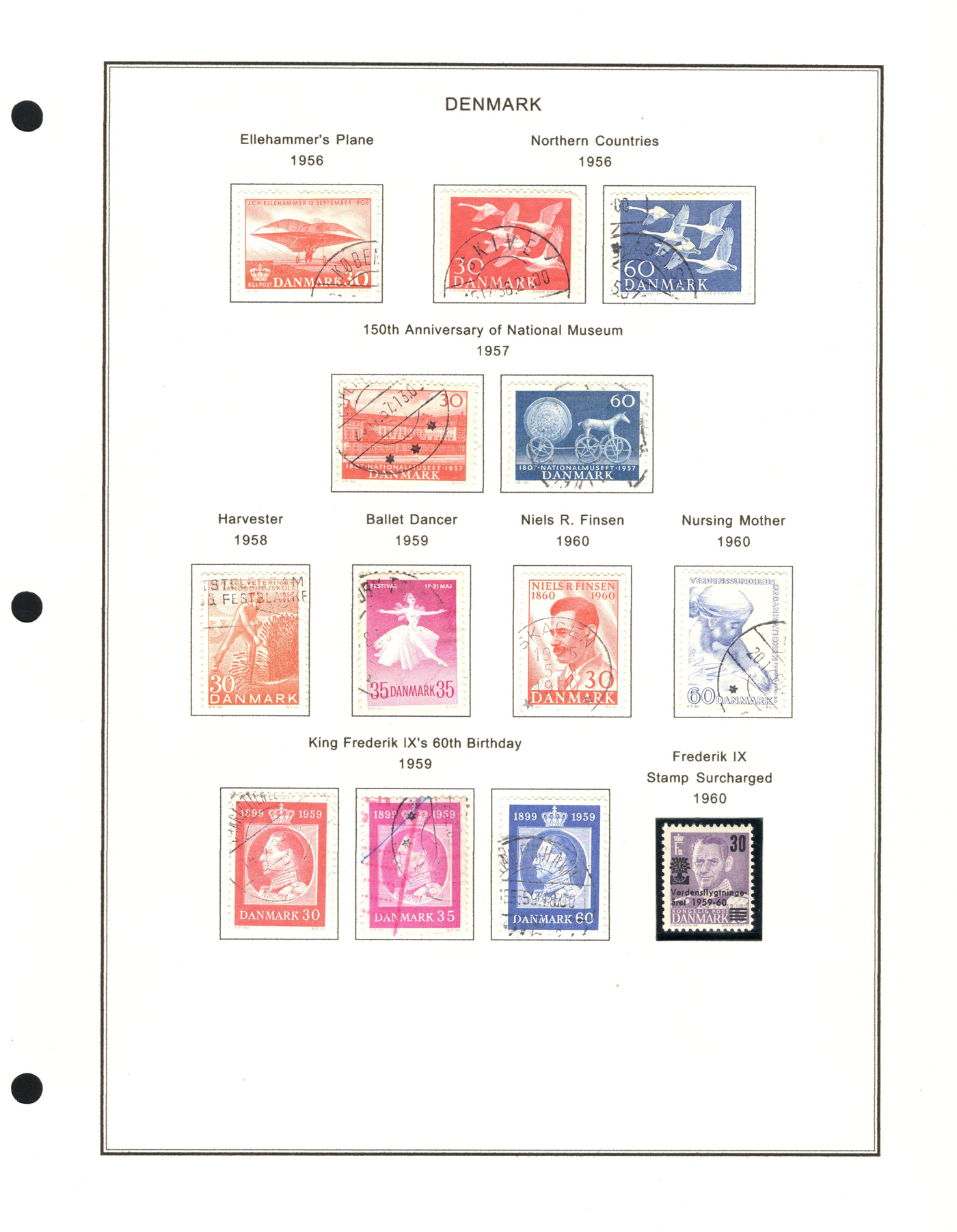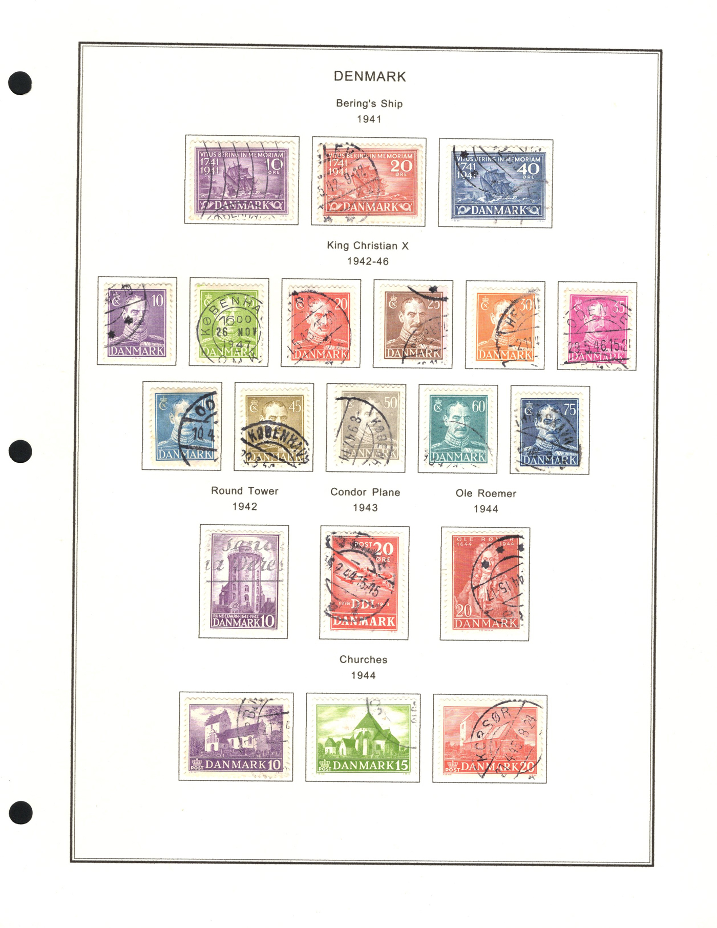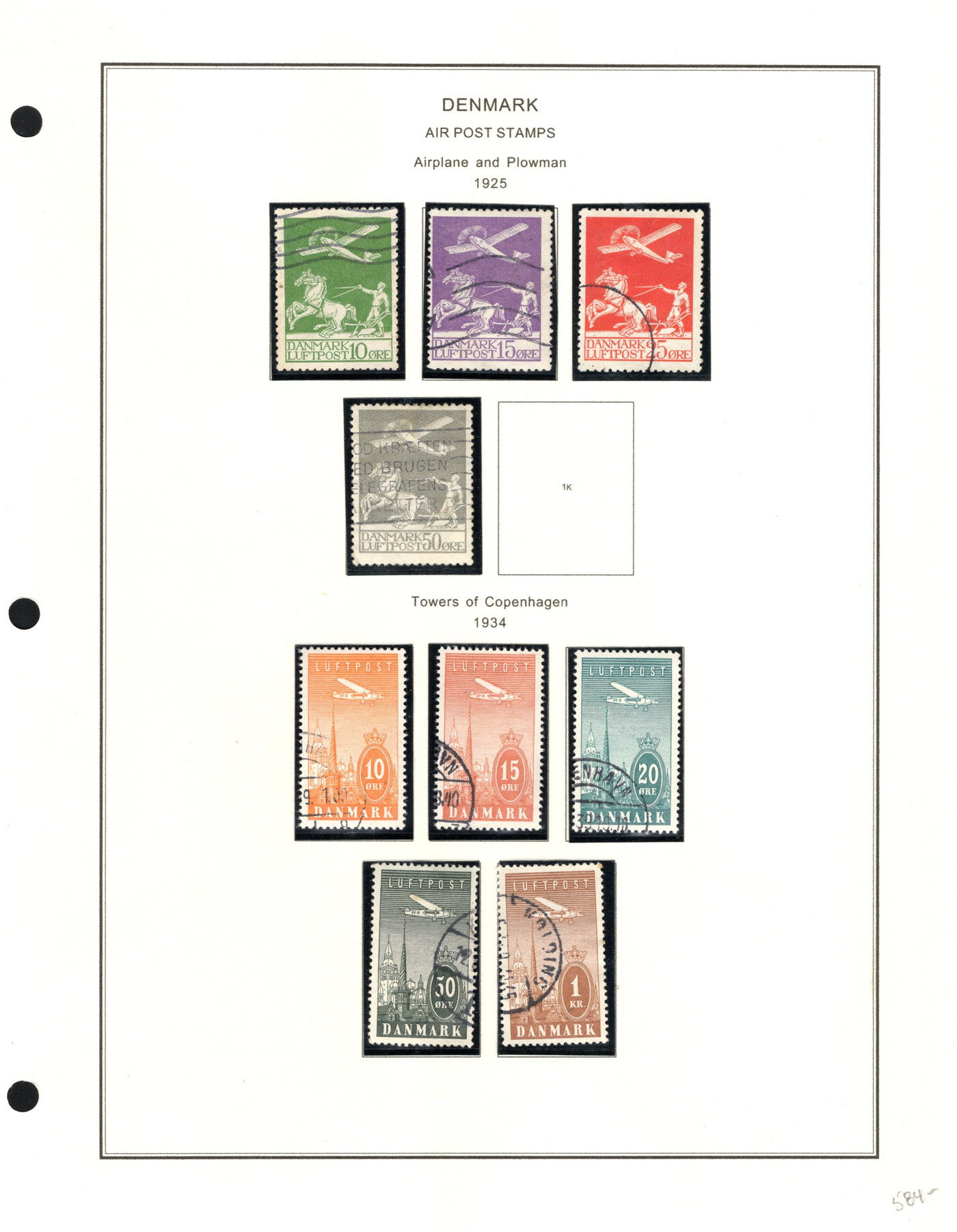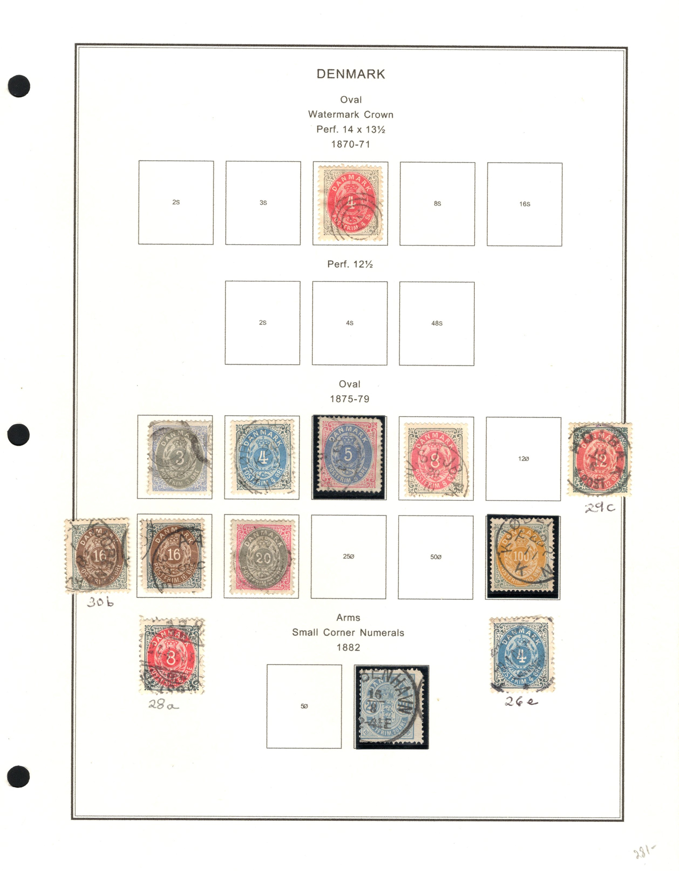1548 O   imageLovely Collection of Used Denmark, 1854 to 1980, all displayed on computer-generated pages using the Scott listings. We catalogued up to 1940 only, but the collection has a high level of completion after that, noting a good quantity of clean c.d.s. cancels. Includes regular issues, Airmails, Dues, Newspaper stamps, Parcel Post, Military, Late Fee stamps and Officials. There are many complete sets, sometimes including different perforations or watermarks, and we note many valuable stamps, such as C1-C4 ($547), O5 ($600) and more. Very nice condition throughout, a clean and fine to very fine collection. (Scan 1) (Scan 2) (Scan 3) (Scan 4) (Scan 5) (Scan 6) (Scan 7) (Scan 8) (Scan 9) (Scan 10) (Scan 11) (Scan 12) (Scan 13) (All Scans)