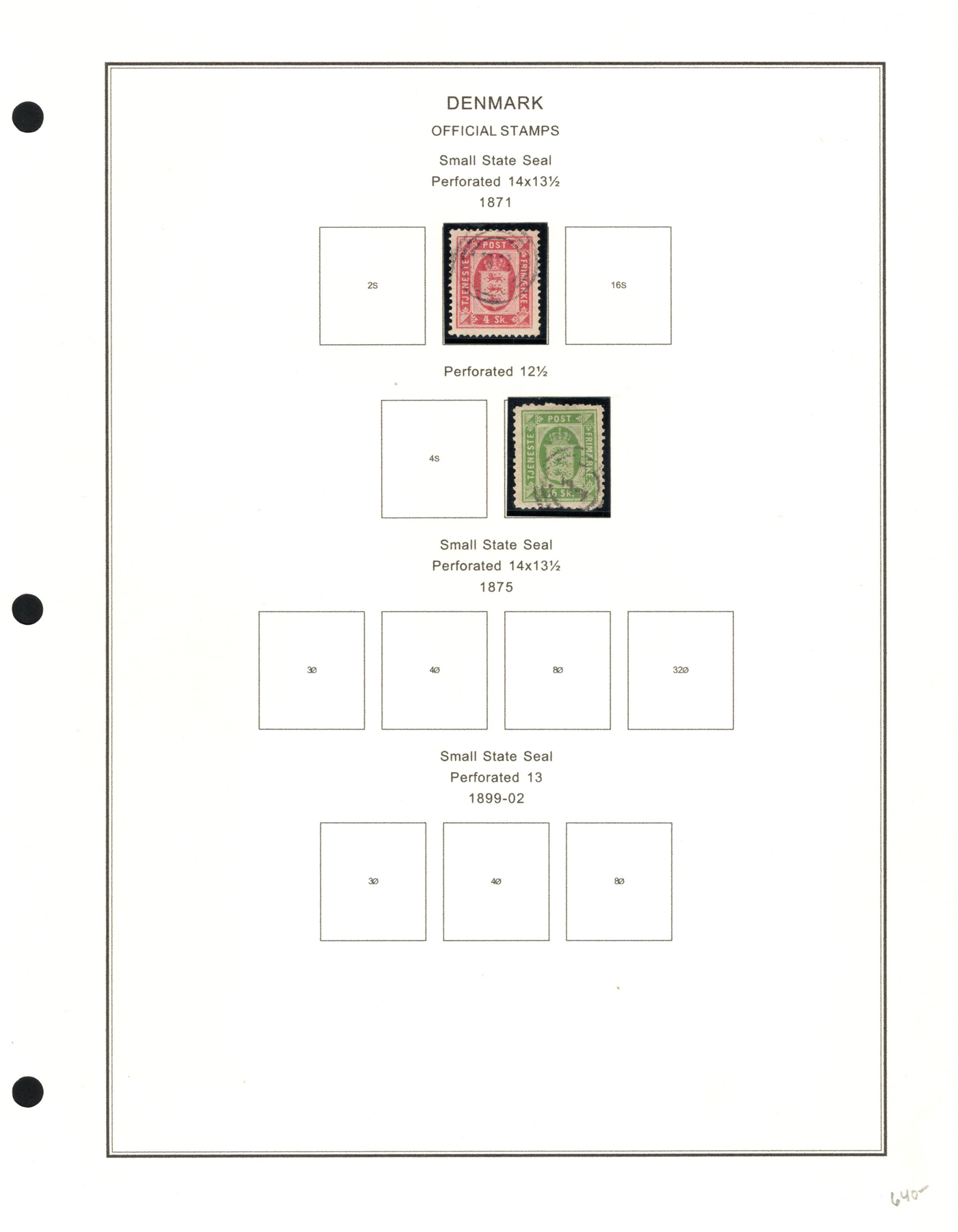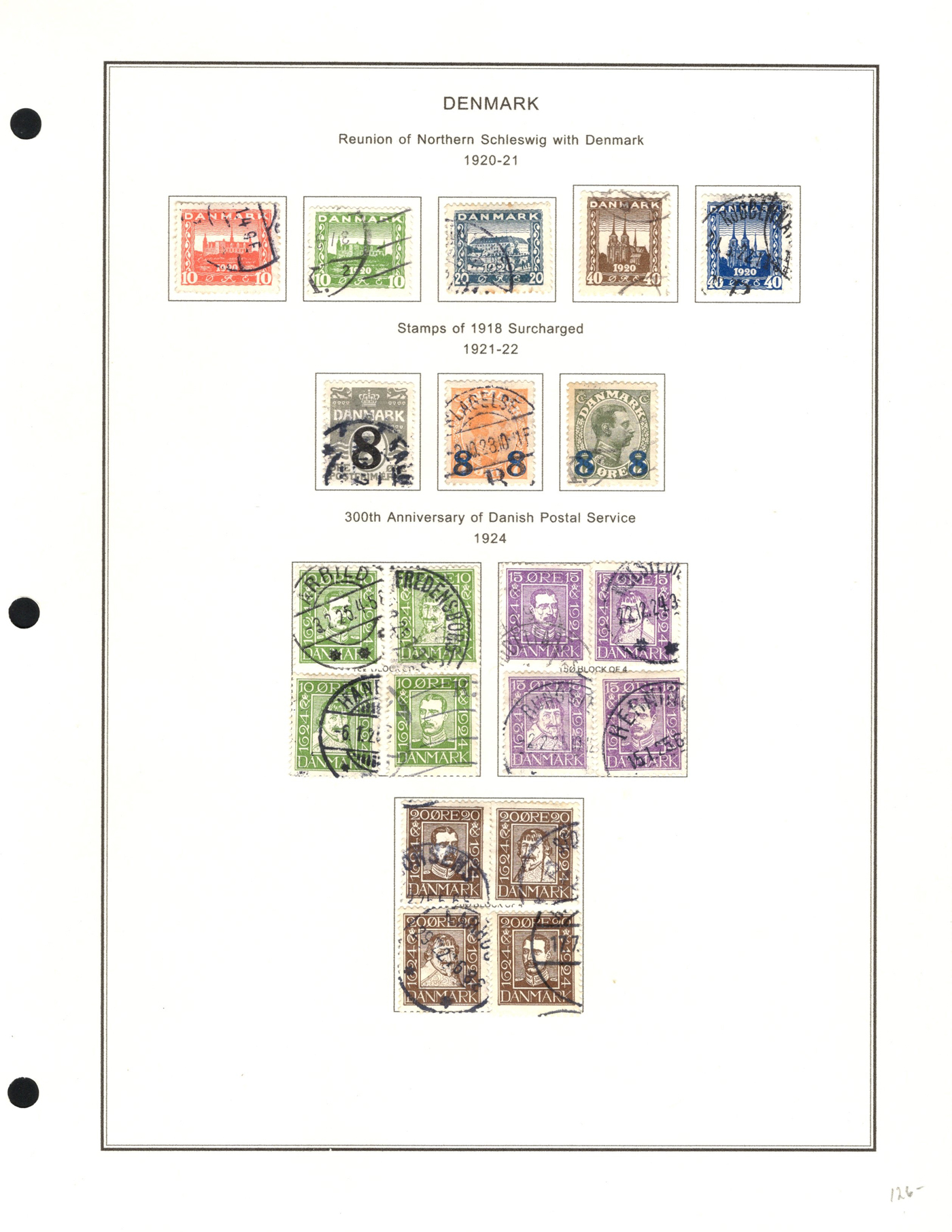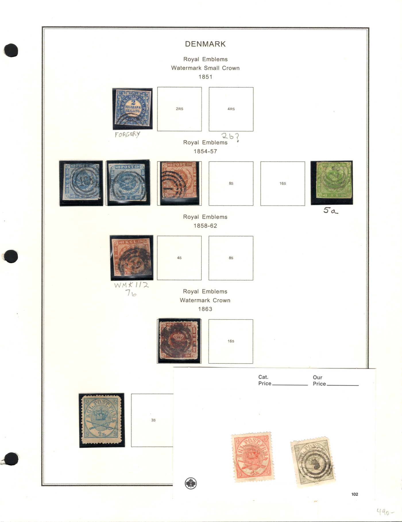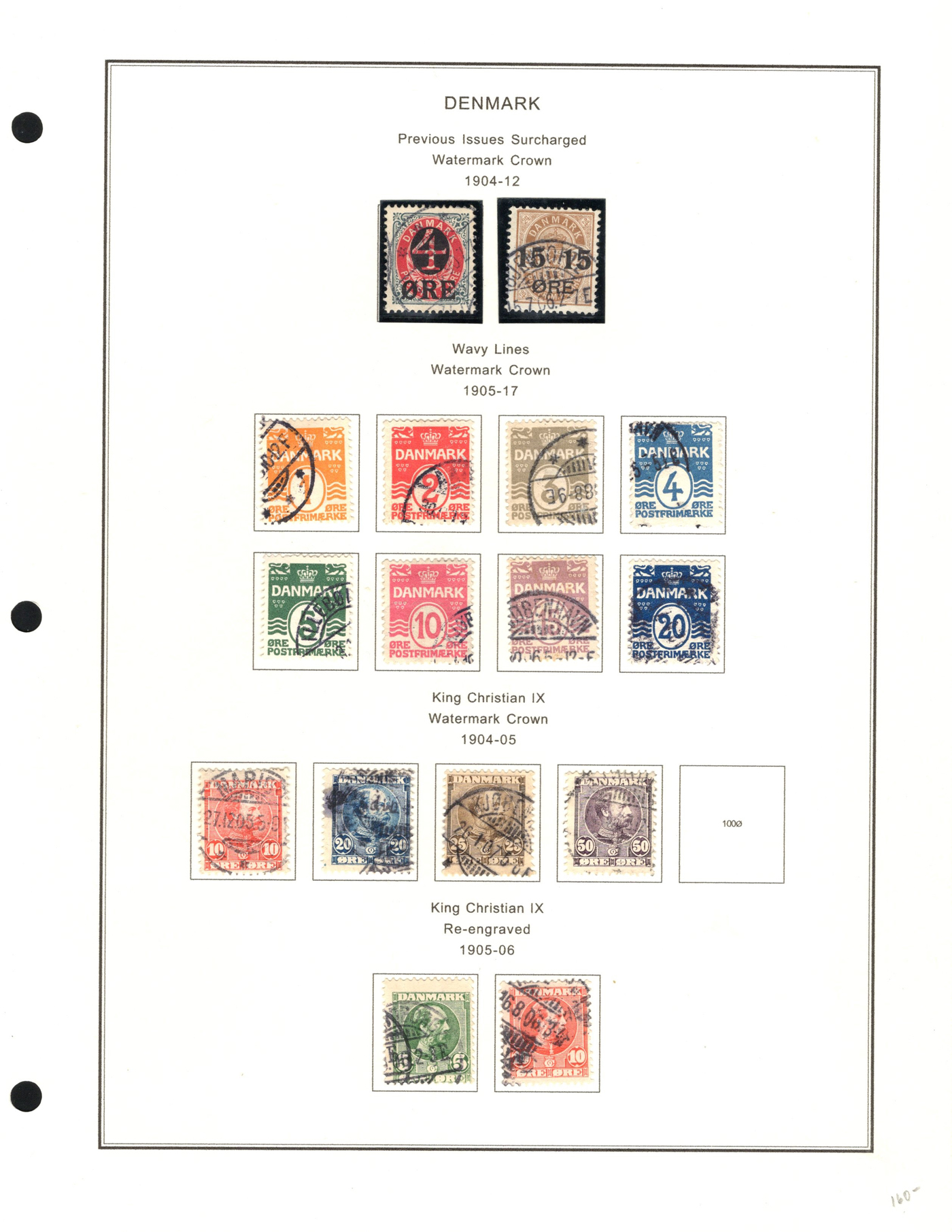 1548 O   imageLovely Collection of Used Denmark, 1854 to 1980, all displayed on computer-generated pages using the Scott listings. We catalogued up to 1940 only, but the collection has a high level of completion after that, noting a good quantity of clean c.d.s. cancels. Includes regular issues, Airmails, Dues, Newspaper stamps, Parcel Post, Military, Late Fee stamps and Officials. There are many complete sets, sometimes including different perforations or watermarks, and we note many valuable stamps, such as C1-C4 ($547), O5 ($600) and more. Very nice condition throughout, a clean and fine to very fine collection. (Scan 1) (Scan 2) (Scan 3) (Scan 4) (Scan 5) (Scan 6) (Scan 7) (Scan 8) (Scan 9) (Scan 10) (Scan 11) (Scan 12) (Scan 13) (All Scans)