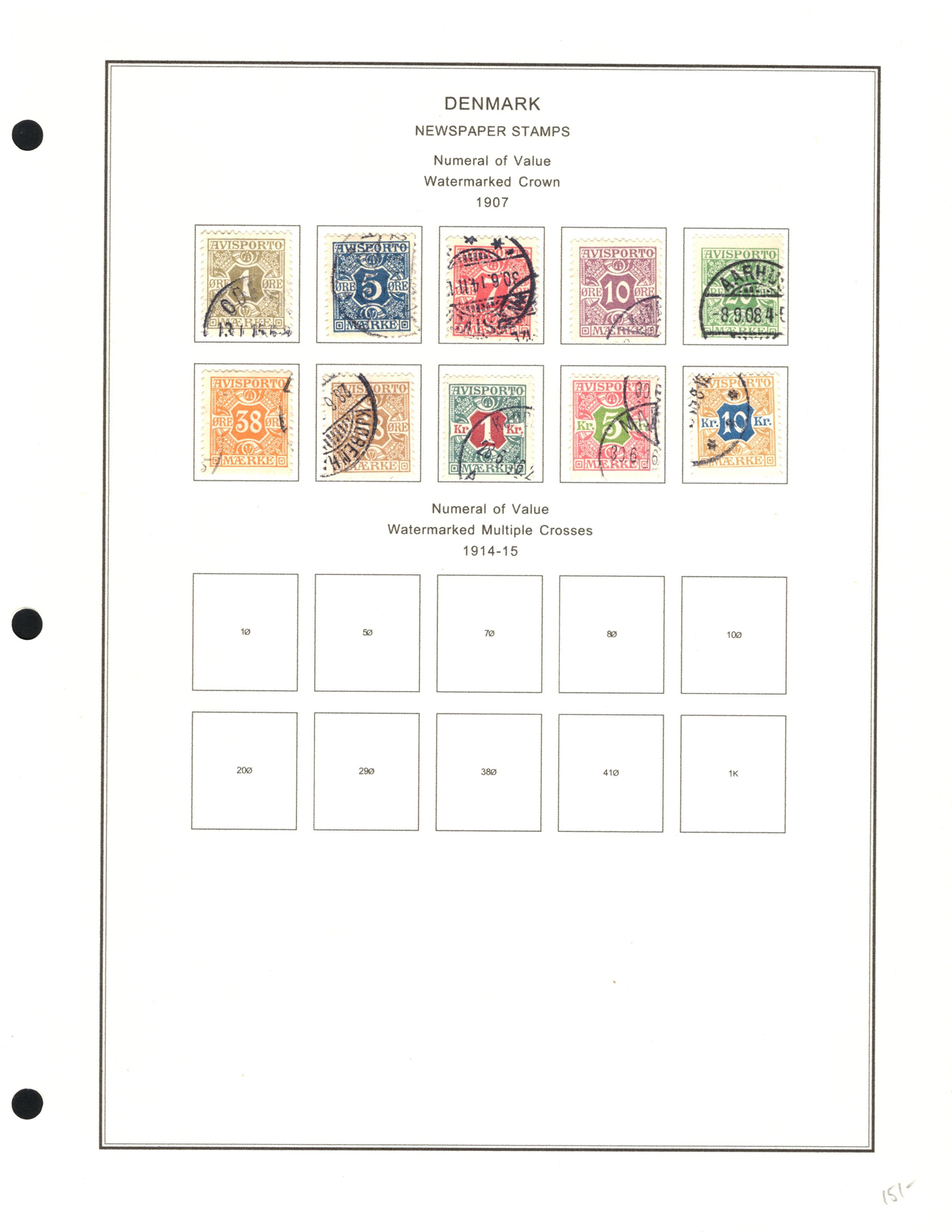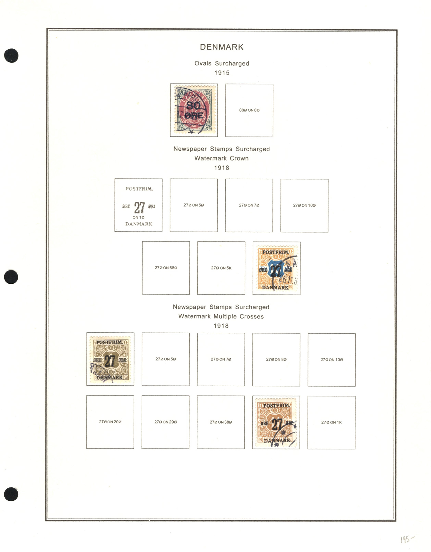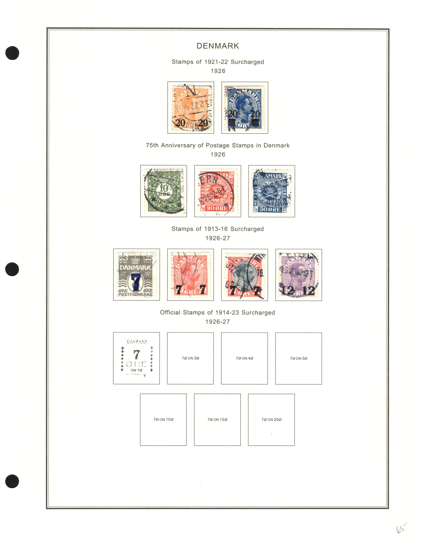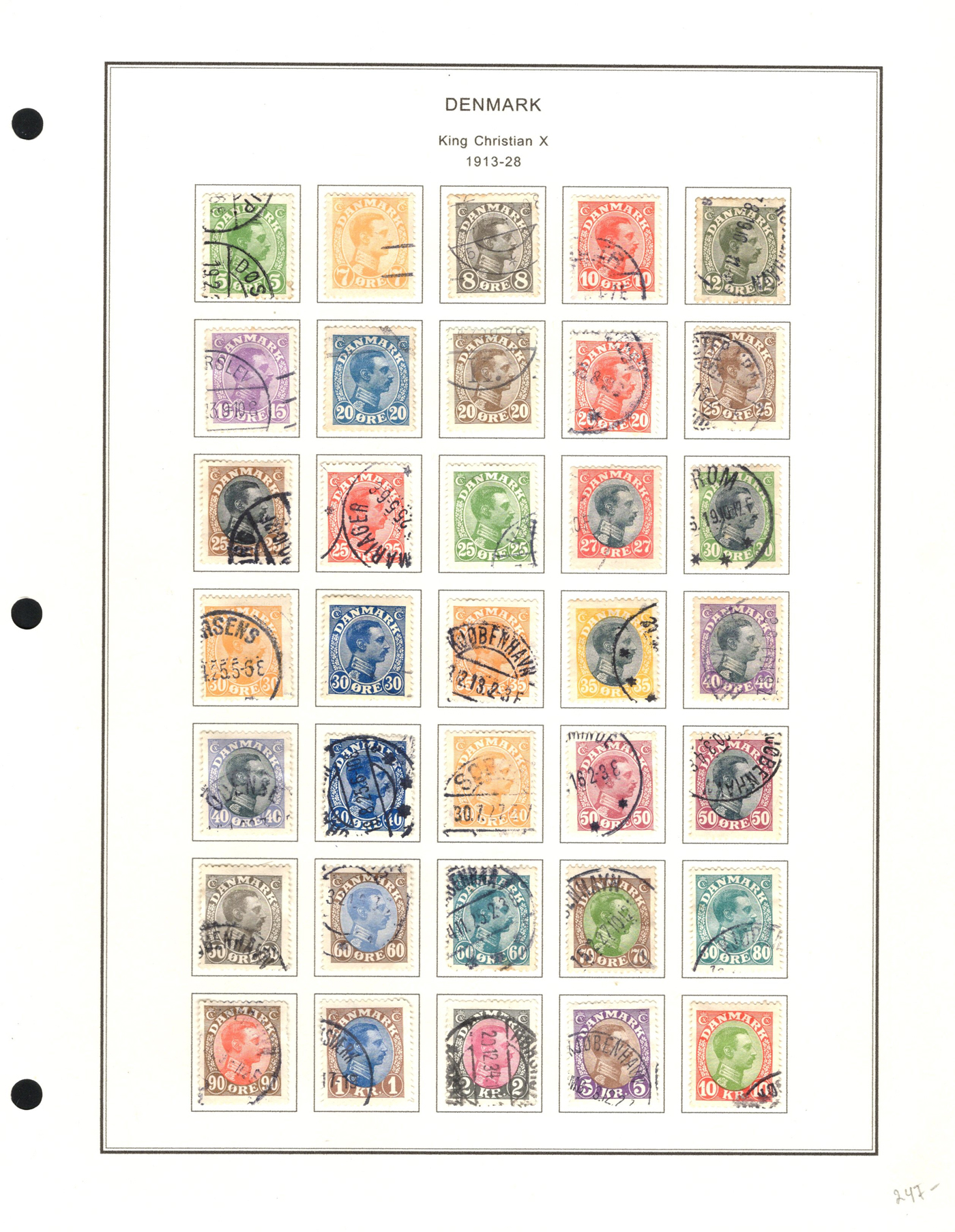 1548 O   imageLovely Collection of Used Denmark, 1854 to 1980, all displayed on computer-generated pages using the Scott listings. We catalogued up to 1940 only, but the collection has a high level of completion after that, noting a good quantity of clean c.d.s. cancels. Includes regular issues, Airmails, Dues, Newspaper stamps, Parcel Post, Military, Late Fee stamps and Officials. There are many complete sets, sometimes including different perforations or watermarks, and we note many valuable stamps, such as C1-C4 ($547), O5 ($600) and more. Very nice condition throughout, a clean and fine to very fine collection. (Scan 1) (Scan 2) (Scan 3) (Scan 4) (Scan 5) (Scan 6) (Scan 7) (Scan 8) (Scan 9) (Scan 10) (Scan 11) (Scan 12) (Scan 13) (All Scans)