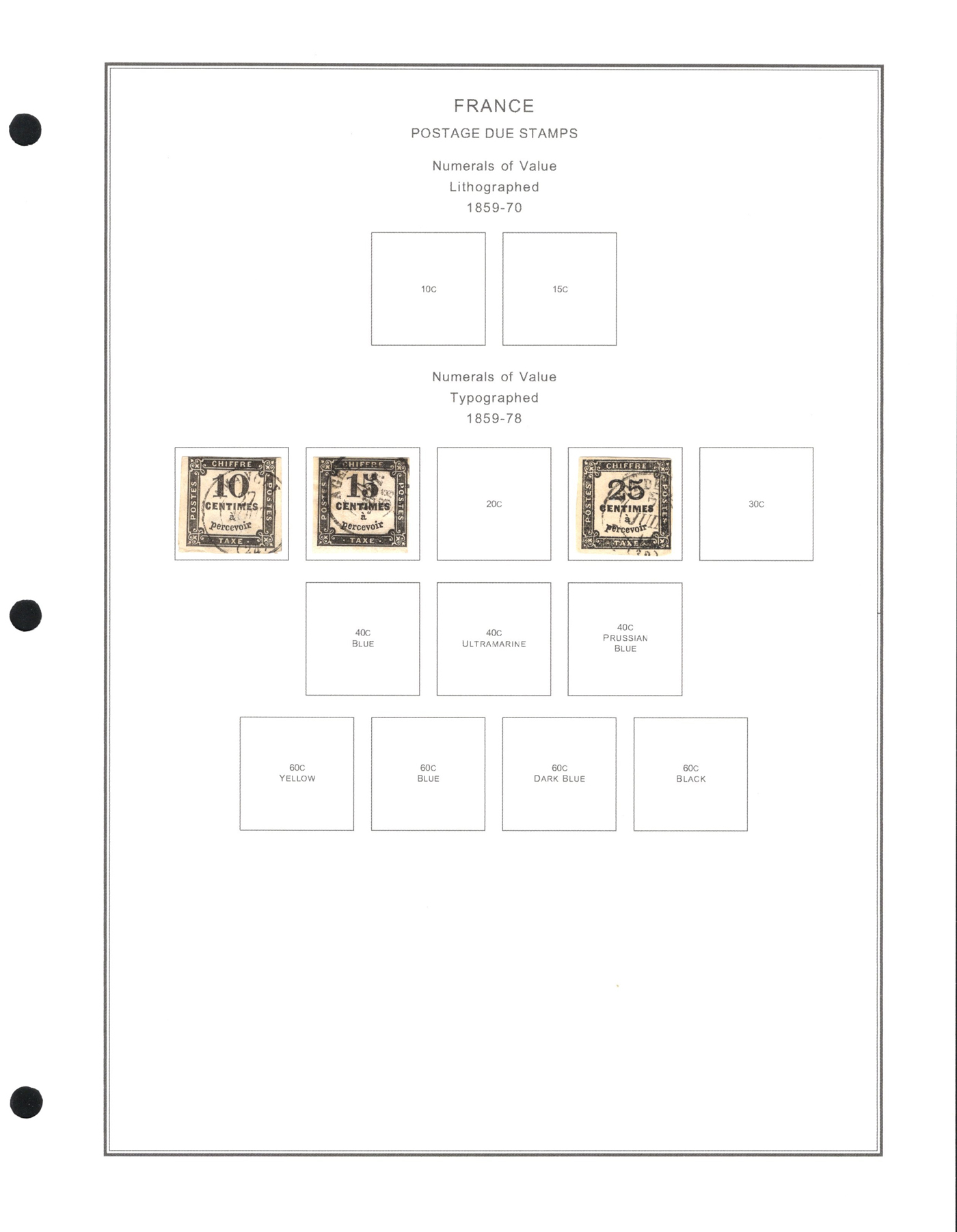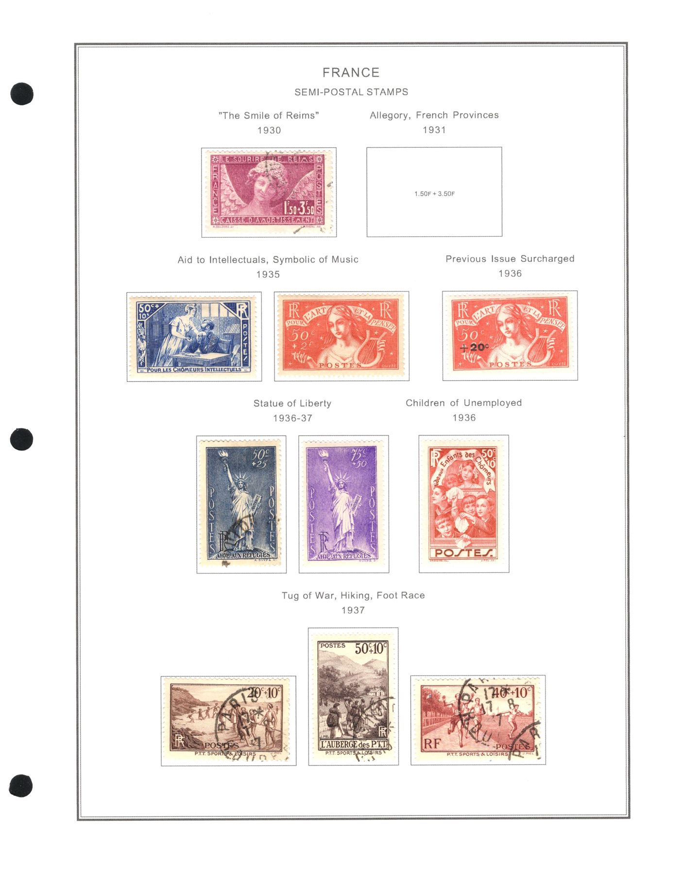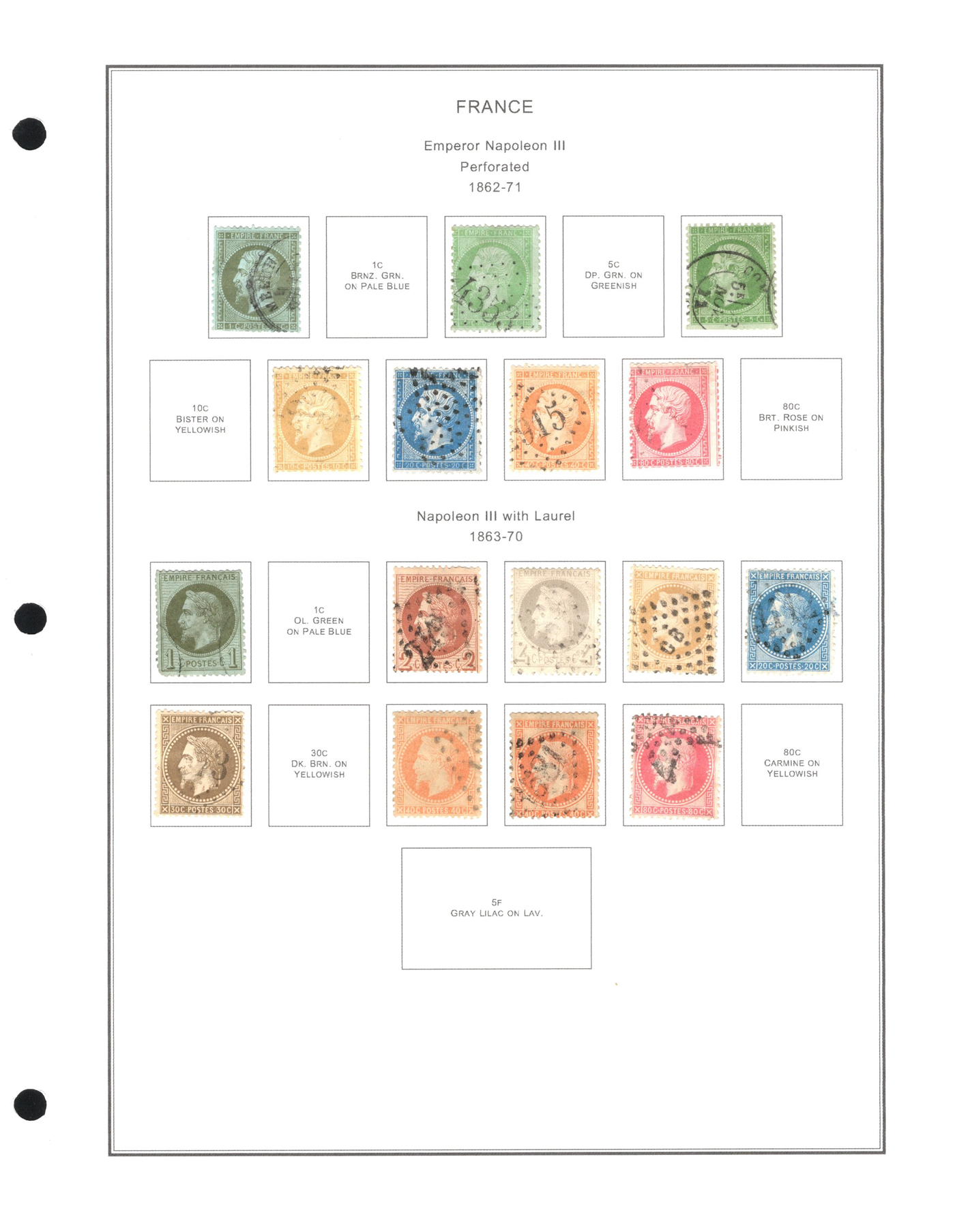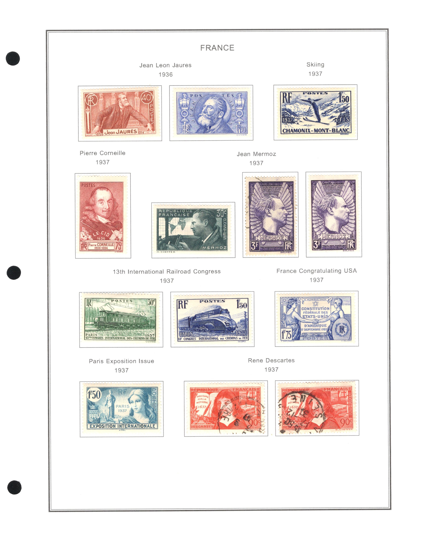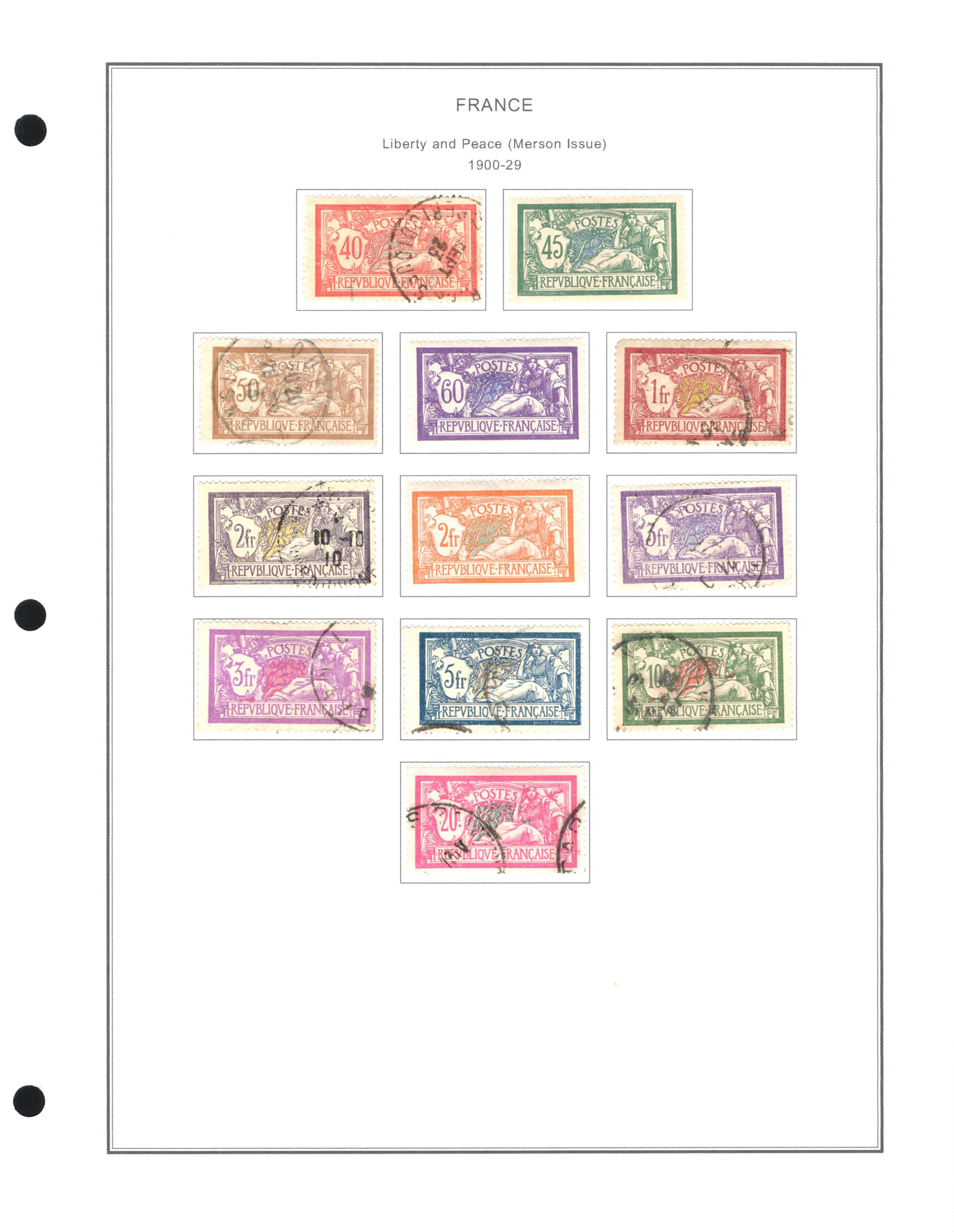 1559 O/og/nh   imageCollection of Mint and Used France, 1849-1971, in two Lighthouse binders with slipcases, neatly displayed on computer-generated pages following the Scott listings. A predominantly used collection with mint stamps sprinkled in here and there, including some never hinged (in black mounts), and many of the used have nice, clean c.d.s. cancels. About half of the collection is back of the book, with Semi-Postals, Airmails, Postage Dues, Military Franchise issues and more. We estimate the collection to be around 80% complete in period, and we note many better items throughout, such as early imperforates, the 1937 PEXIP souvenir sheet (mint, with wrinkles, $700), C15 (used, $310), C15 (used, $130), just to name a few, with most of the strength in the early issues and the semi-postals plus back of the book. See our many pictures for some of the highlight pages. A few small faults on the earliest issues, still overall fine to very fine. (Scan 1) (Scan 2) (Scan 3) (Scan 4) (Scan 5) (Scan 6) (Scan 7) (Scan 8) (Scan 9) (Scan 10) (Scan 11) (Scan 12) (Scan 13) (Scan 14) (Scan 15) (Scan 16) (Scan 17) (Scan 18) (Scan 19) (Scan 20) (Scan 21) (Scan 22) (Scan 23) (Scan 24) (All Scans)