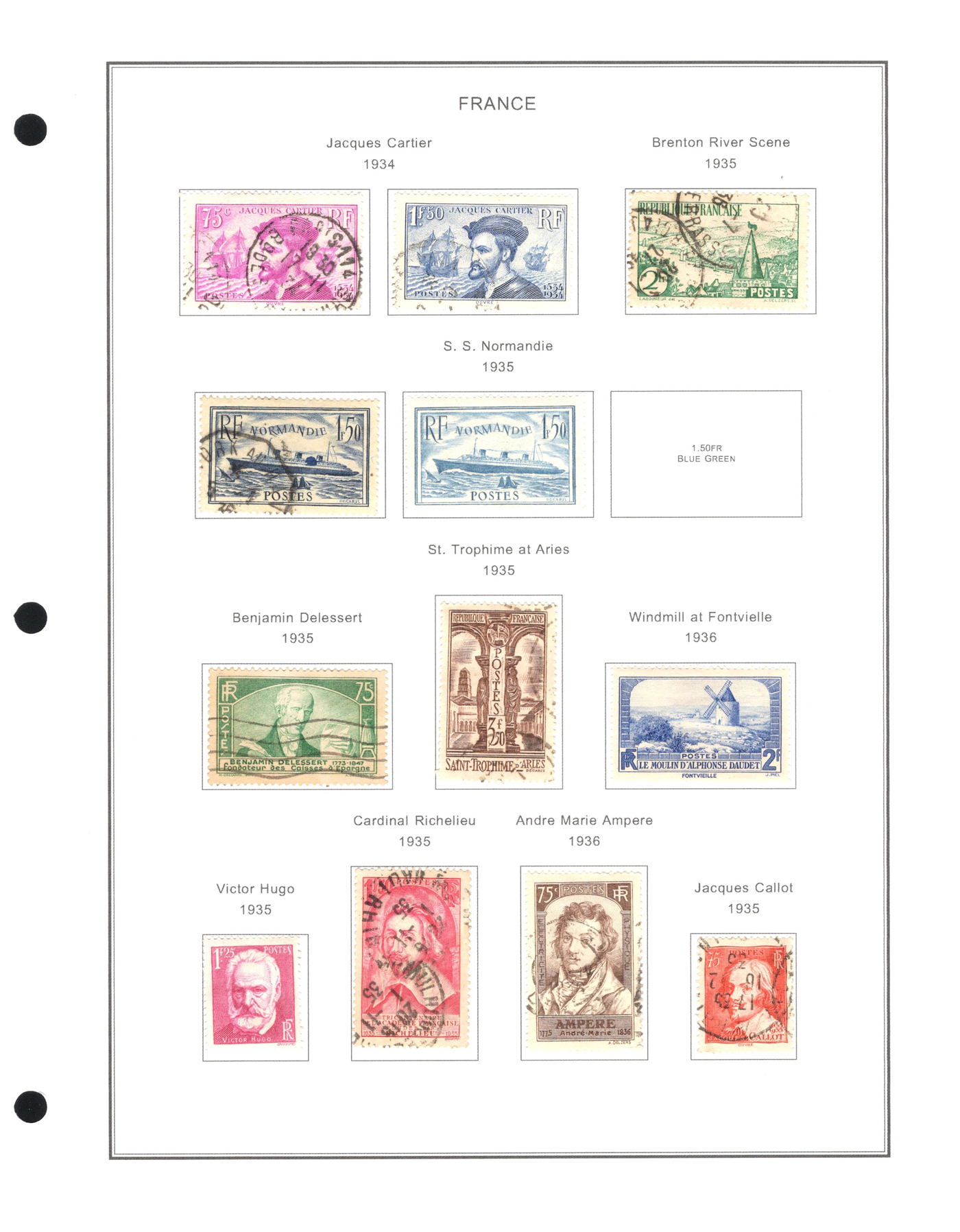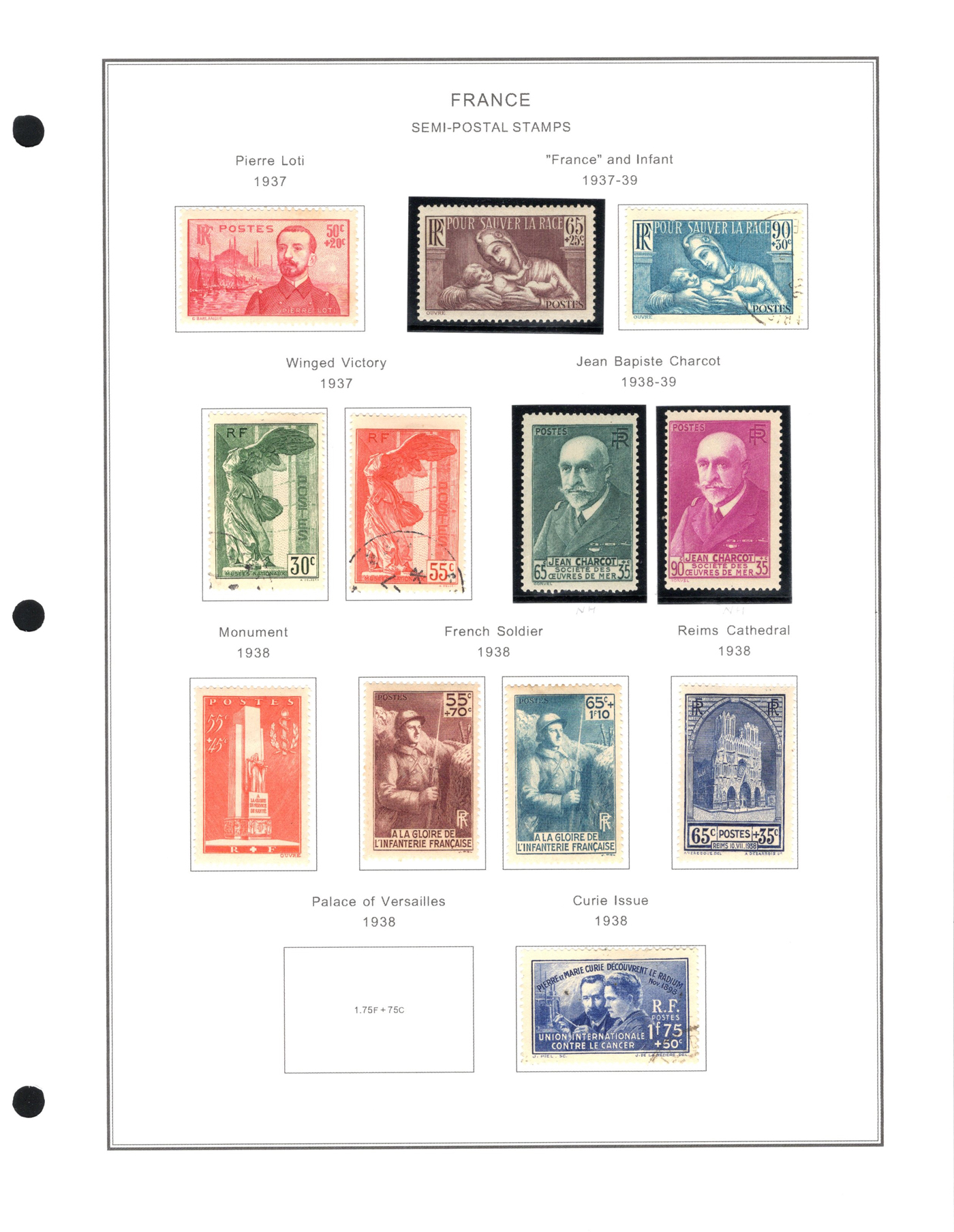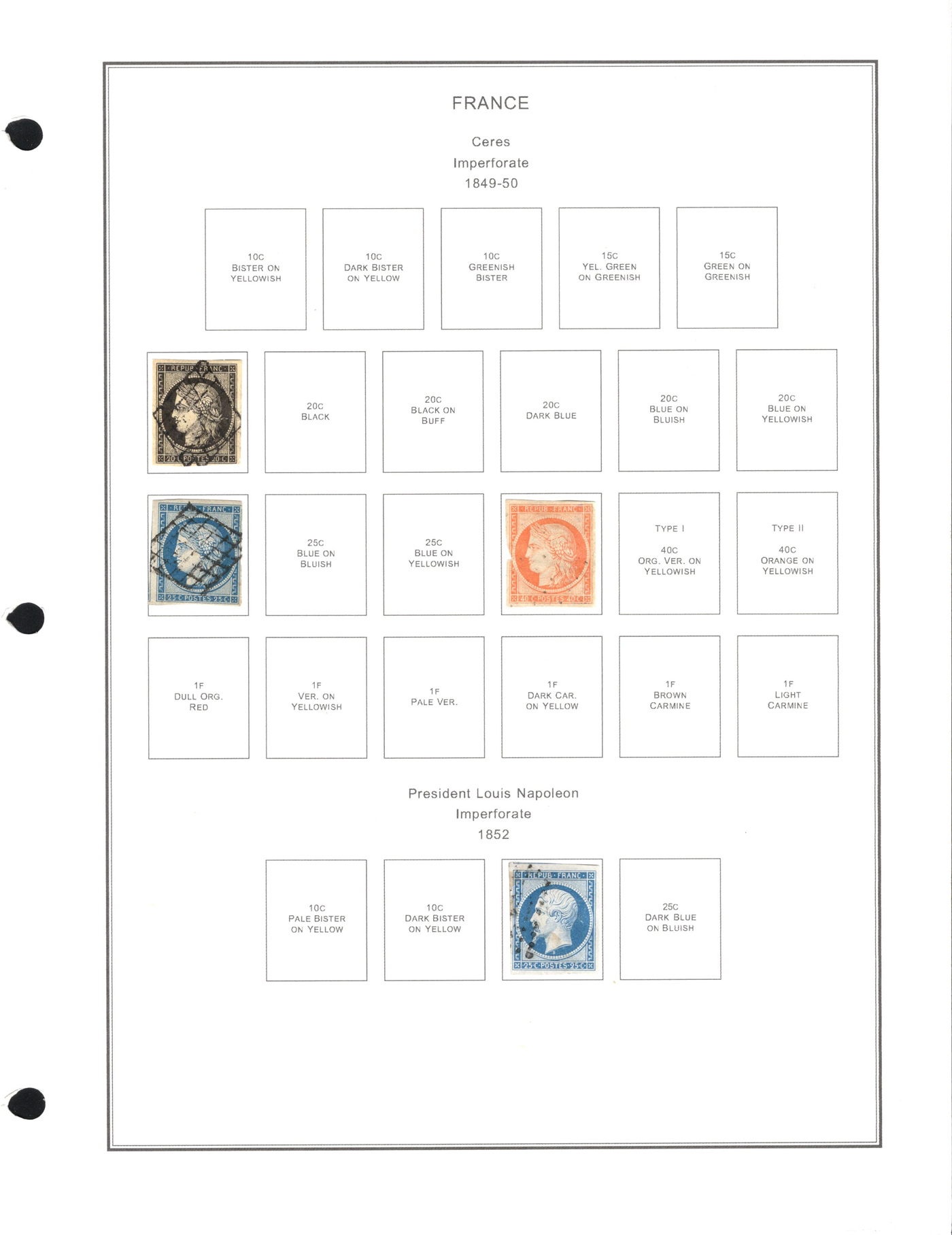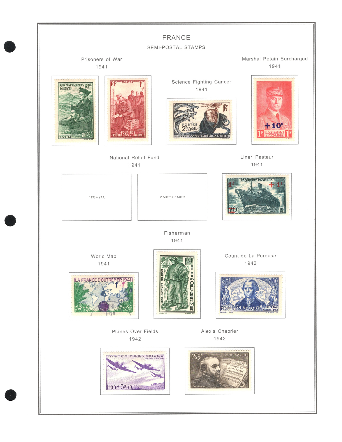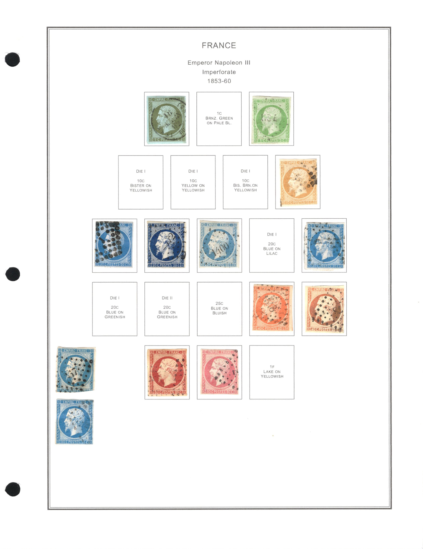 1559 O/og/nh   imageCollection of Mint and Used France, 1849-1971, in two Lighthouse binders with slipcases, neatly displayed on computer-generated pages following the Scott listings. A predominantly used collection with mint stamps sprinkled in here and there, including some never hinged (in black mounts), and many of the used have nice, clean c.d.s. cancels. About half of the collection is back of the book, with Semi-Postals, Airmails, Postage Dues, Military Franchise issues and more. We estimate the collection to be around 80% complete in period, and we note many better items throughout, such as early imperforates, the 1937 PEXIP souvenir sheet (mint, with wrinkles, $700), C15 (used, $310), C15 (used, $130), just to name a few, with most of the strength in the early issues and the semi-postals plus back of the book. See our many pictures for some of the highlight pages. A few small faults on the earliest issues, still overall fine to very fine. (Scan 1) (Scan 2) (Scan 3) (Scan 4) (Scan 5) (Scan 6) (Scan 7) (Scan 8) (Scan 9) (Scan 10) (Scan 11) (Scan 12) (Scan 13) (Scan 14) (Scan 15) (Scan 16) (Scan 17) (Scan 18) (Scan 19) (Scan 20) (Scan 21) (Scan 22) (Scan 23) (Scan 24) (All Scans)