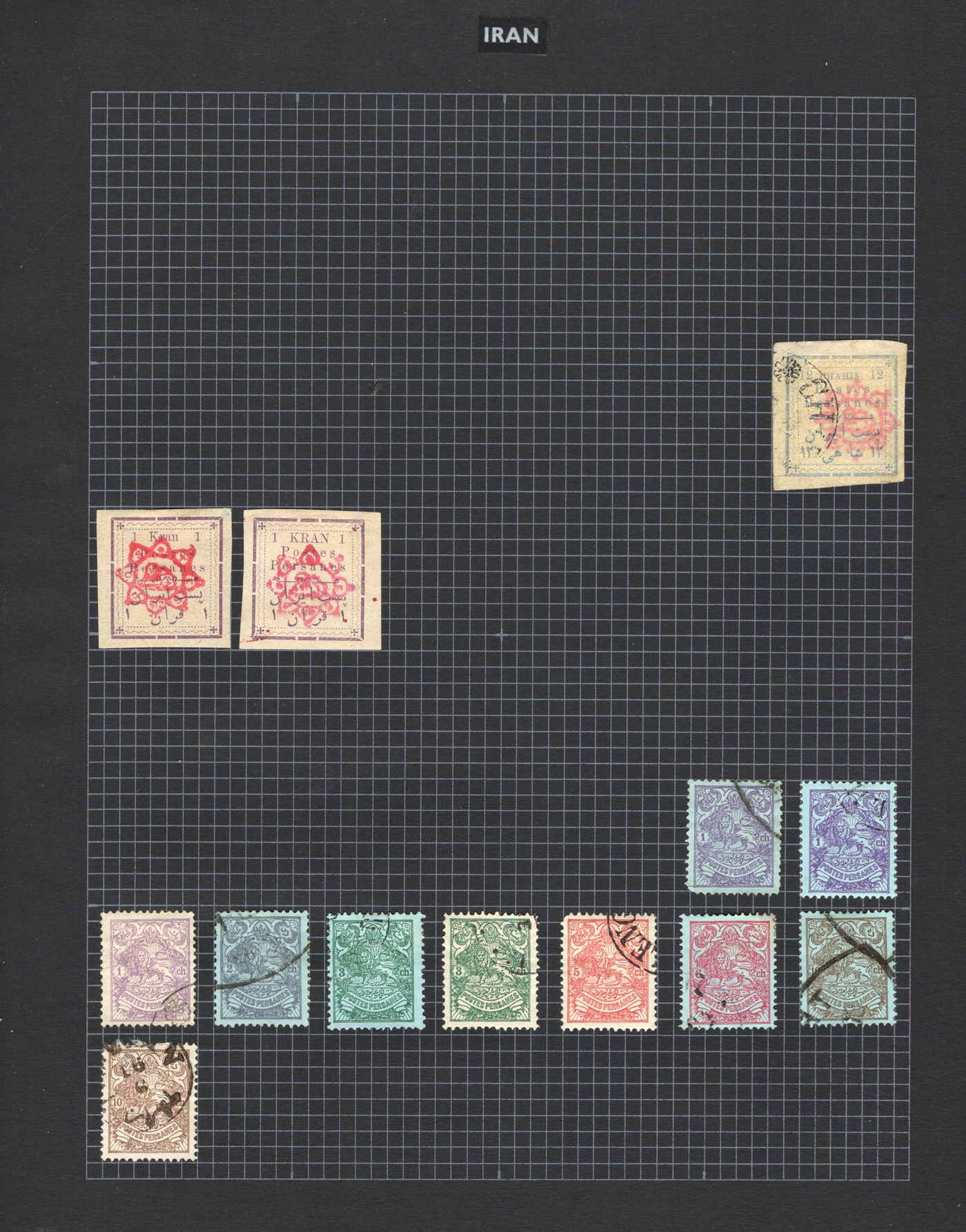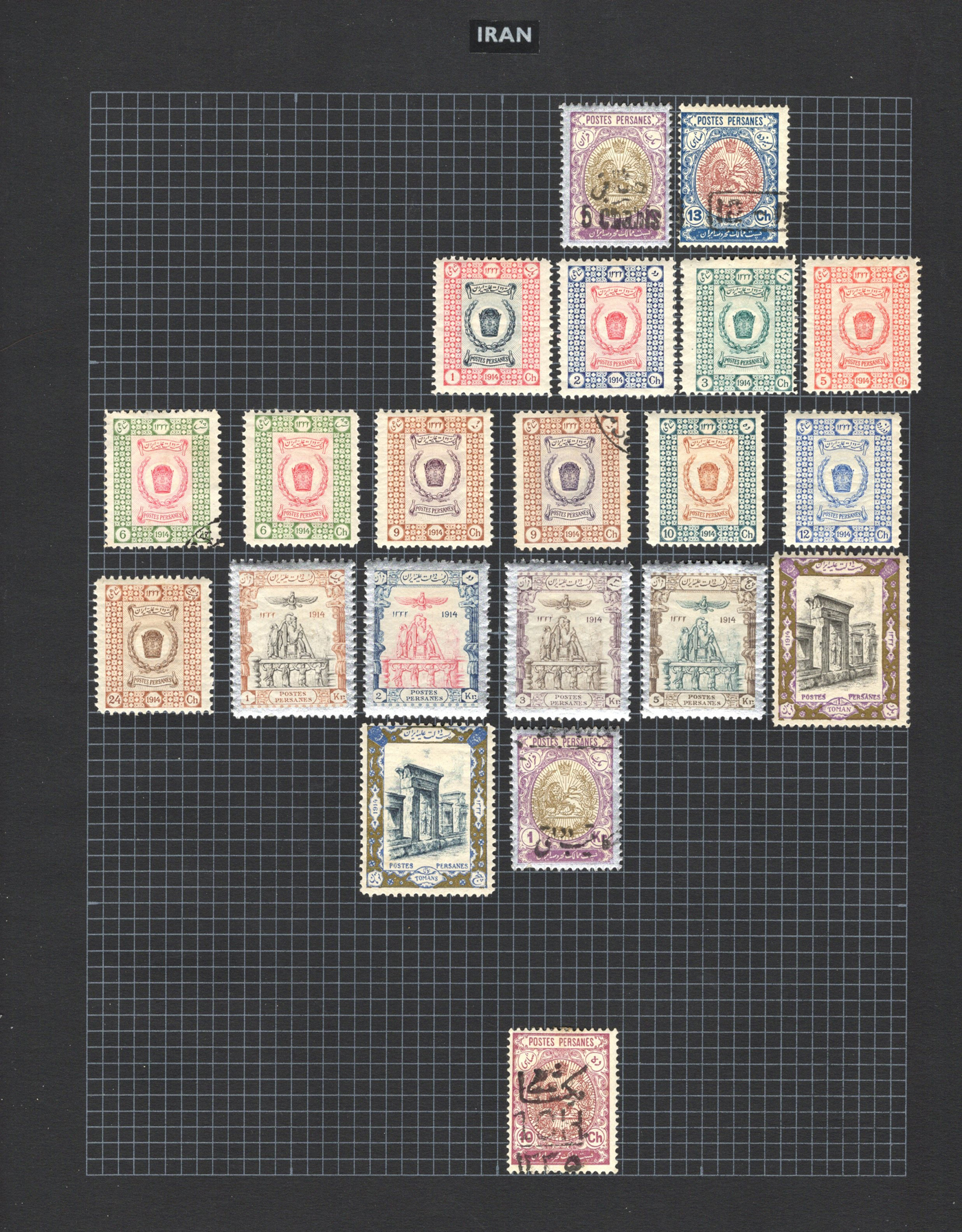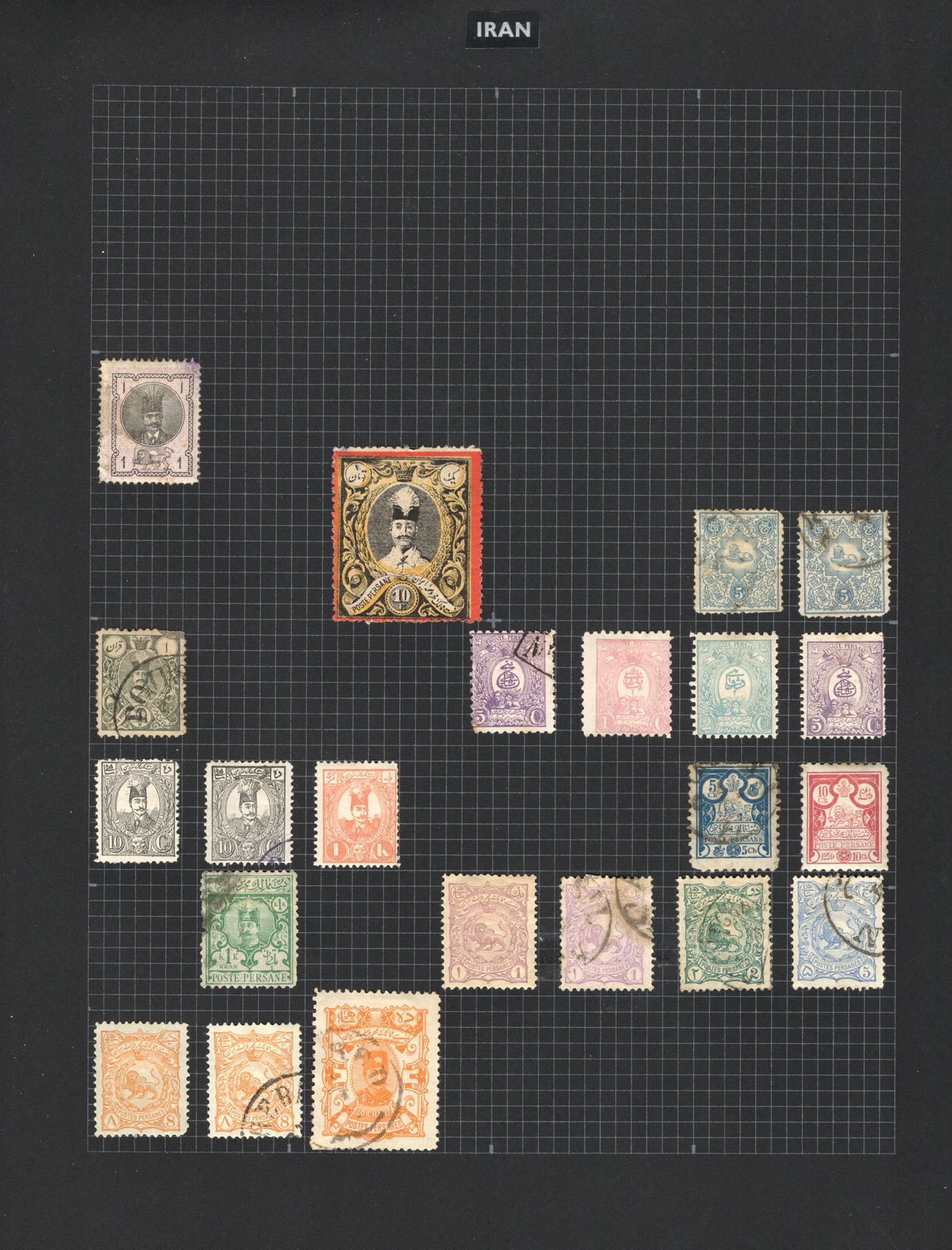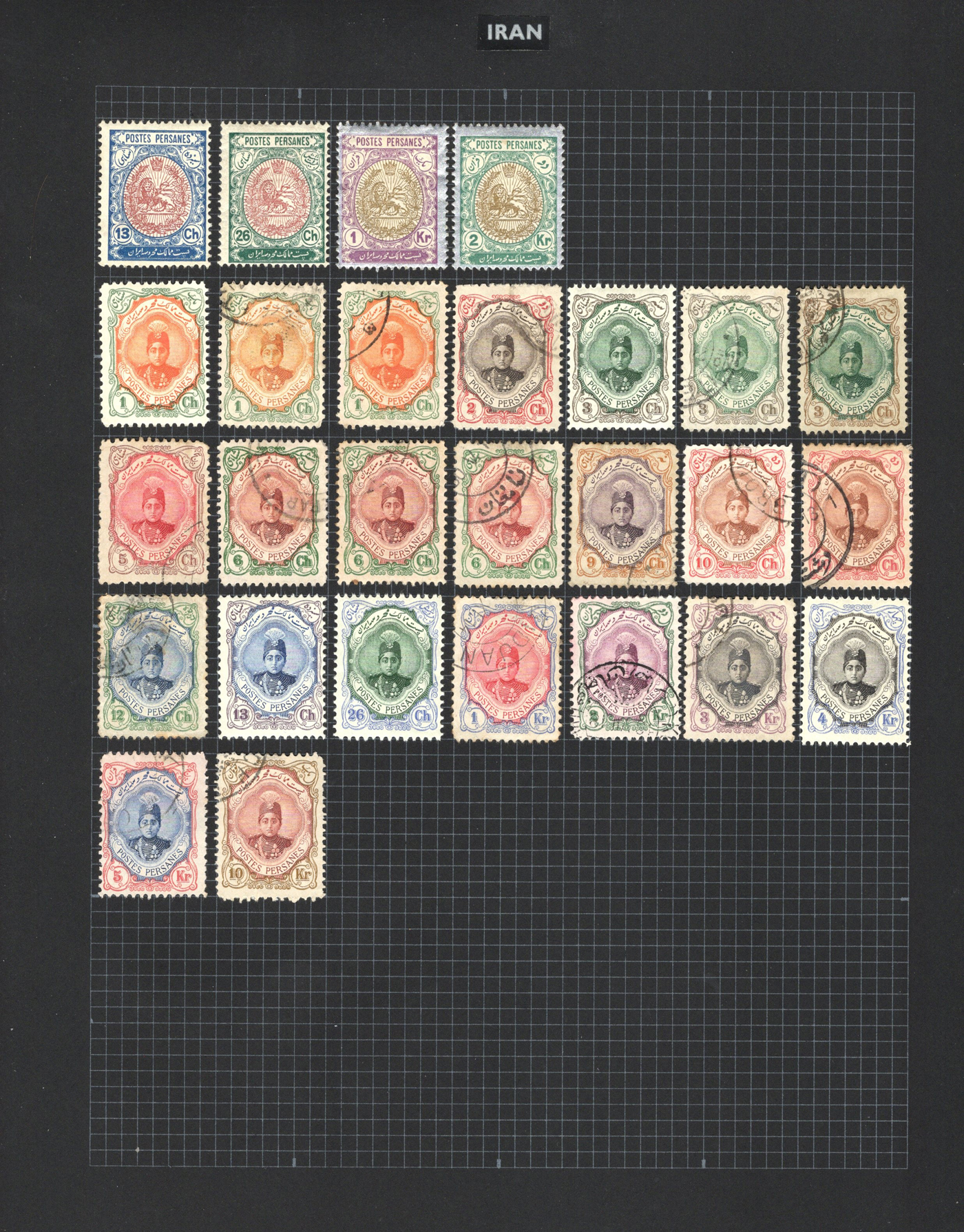 1622 O/og   imageOld Time Collection of Mint and Used Iran, 1876 to 1952, mounted on 15 black quadrille pages, with a good variety of issues, mostly used but with some mint interspersed. We counted over 200 different stamps, including several better issues. Overall fine or better, with a few faults here and there, see photos for a sampling of the collection. (Scan 1) (Scan 2) (Scan 3) (Scan 4) (Scan 5) (Scan 6) (Scan 7) (Scan 8) (Scan 9) (All Scans)