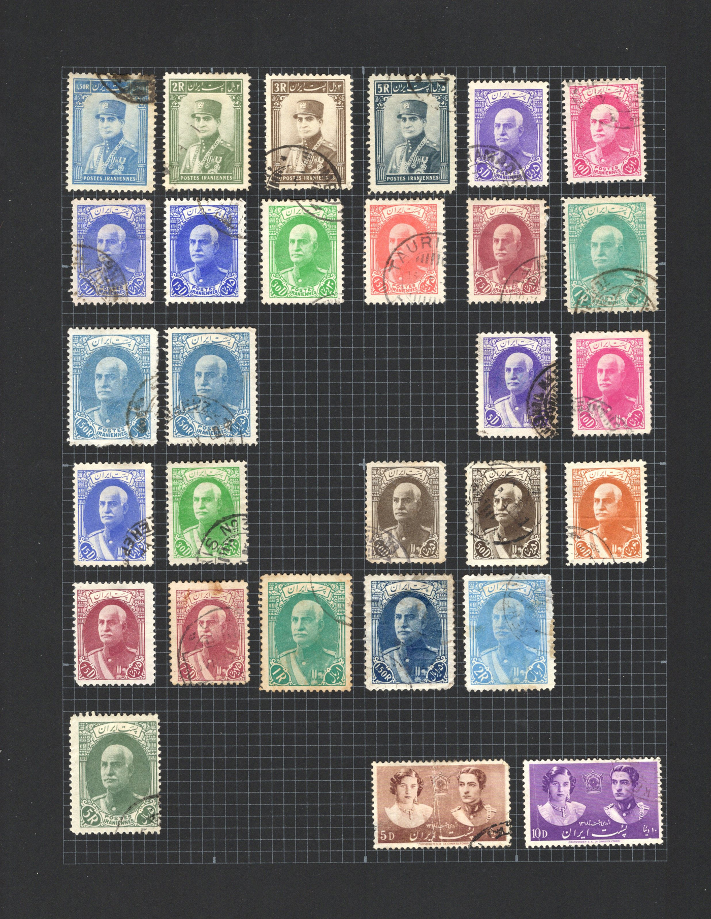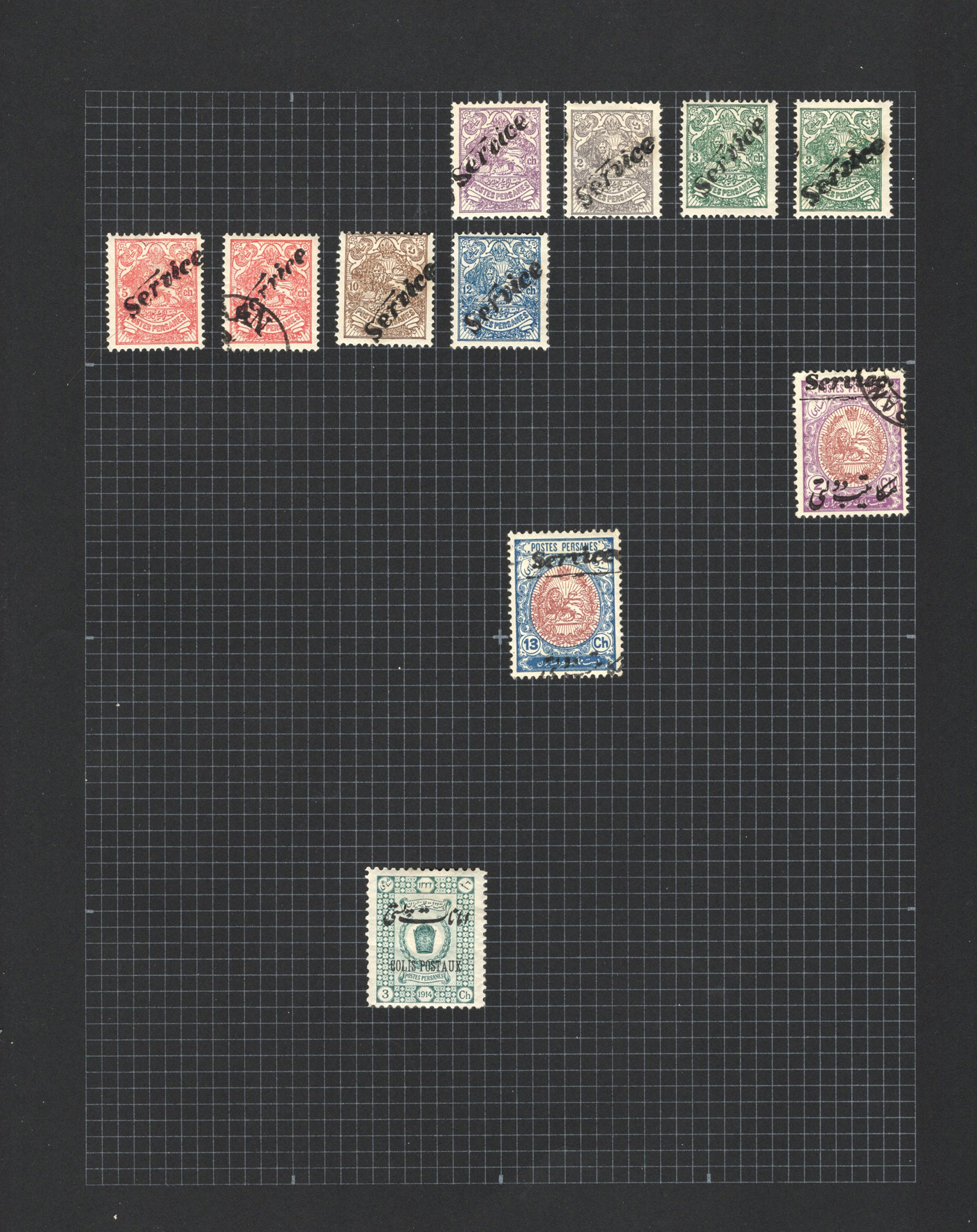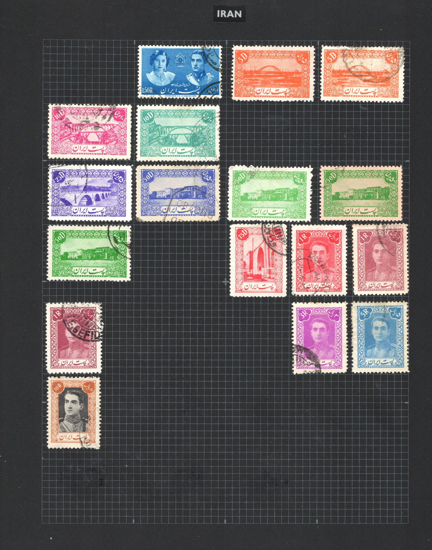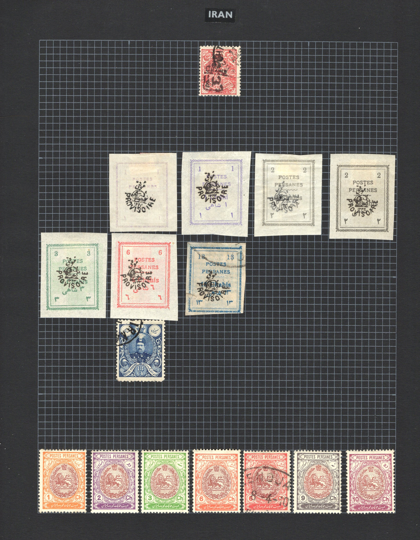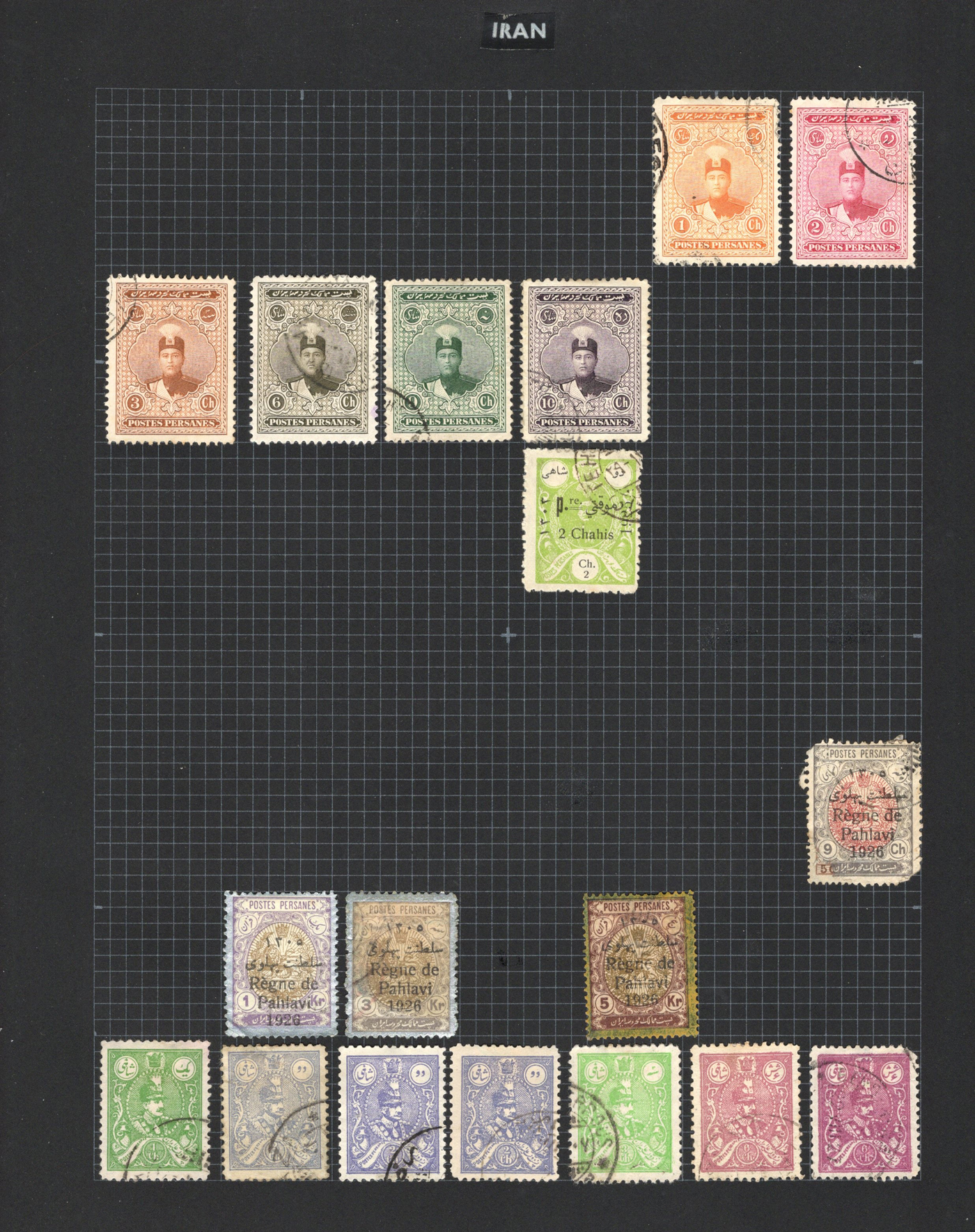 1622 O/og   imageOld Time Collection of Mint and Used Iran, 1876 to 1952, mounted on 15 black quadrille pages, with a good variety of issues, mostly used but with some mint interspersed. We counted over 200 different stamps, including several better issues. Overall fine or better, with a few faults here and there, see photos for a sampling of the collection. (Scan 1) (Scan 2) (Scan 3) (Scan 4) (Scan 5) (Scan 6) (Scan 7) (Scan 8) (Scan 9) (All Scans)