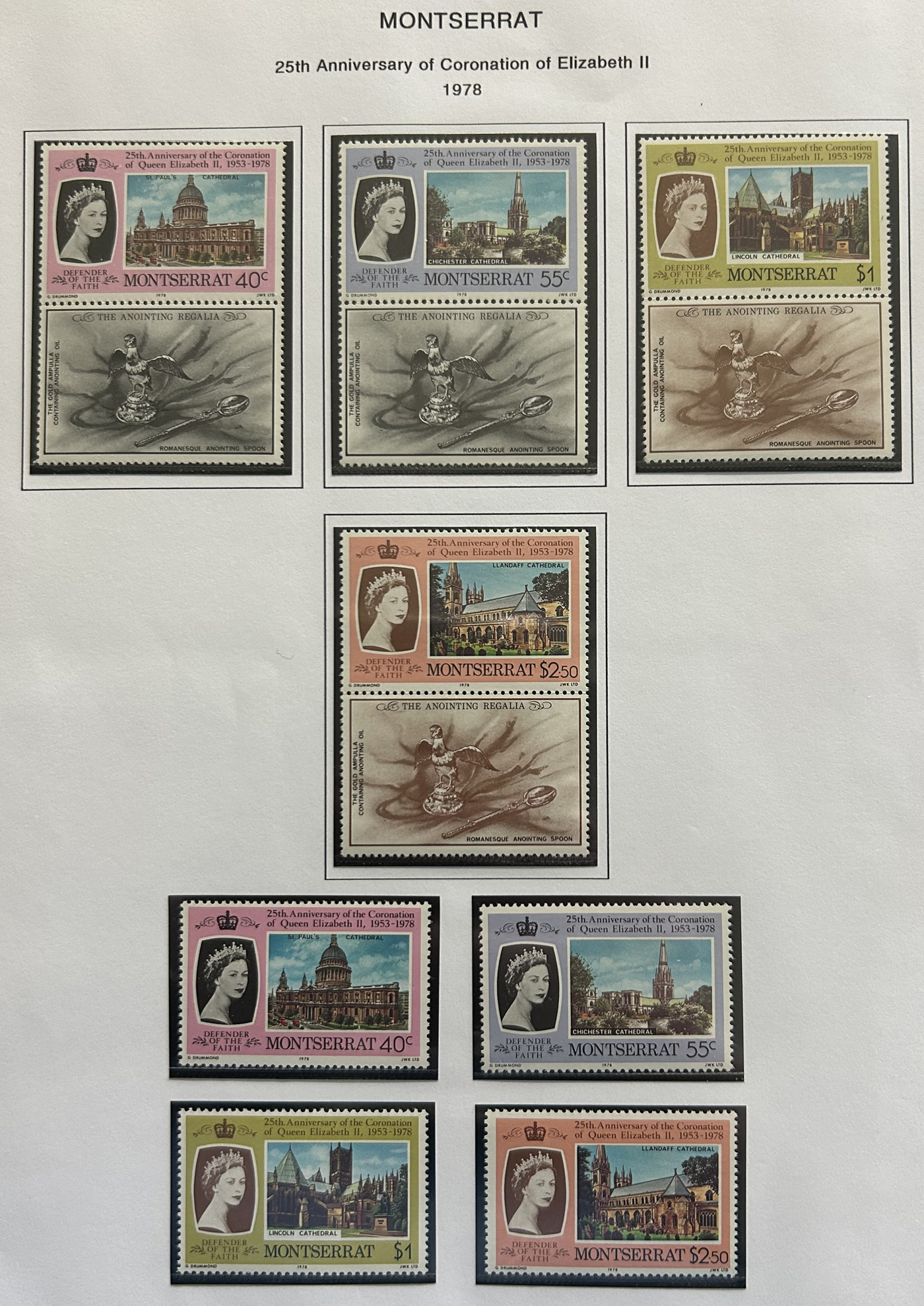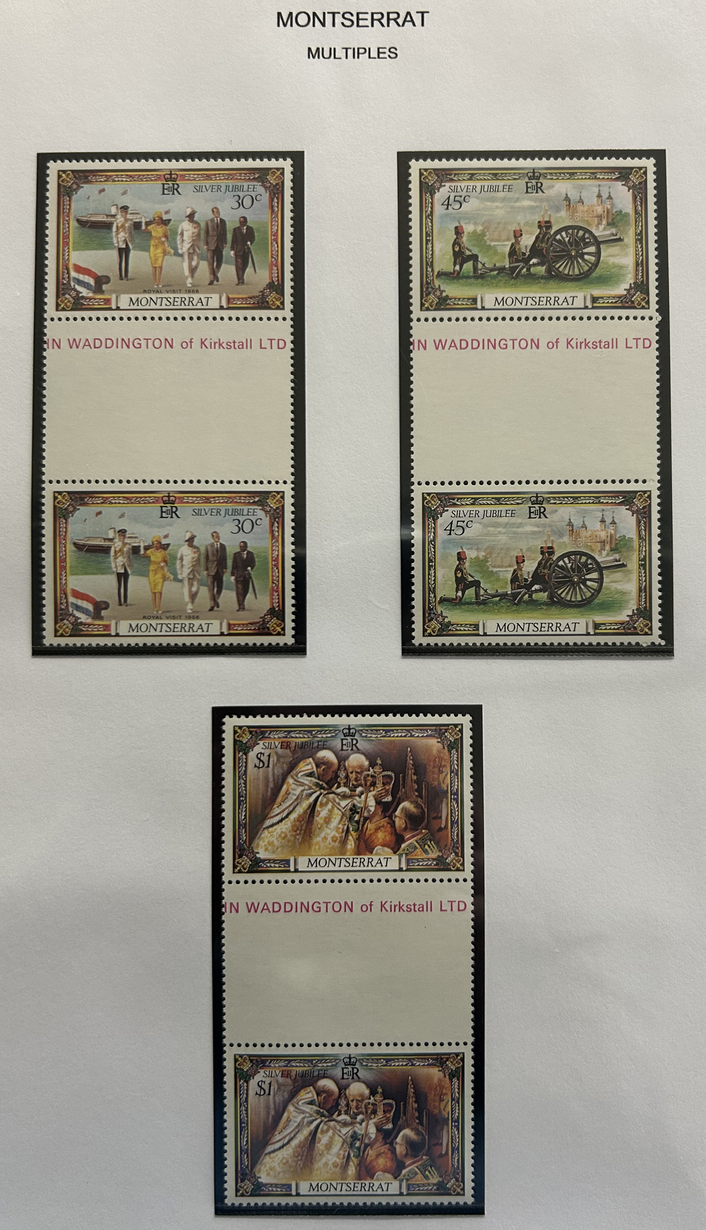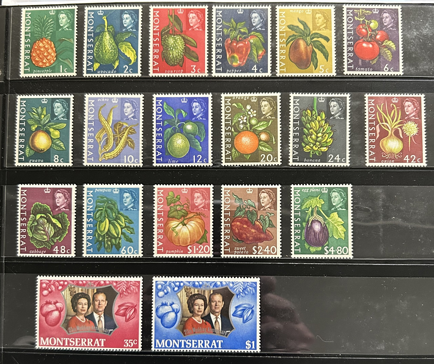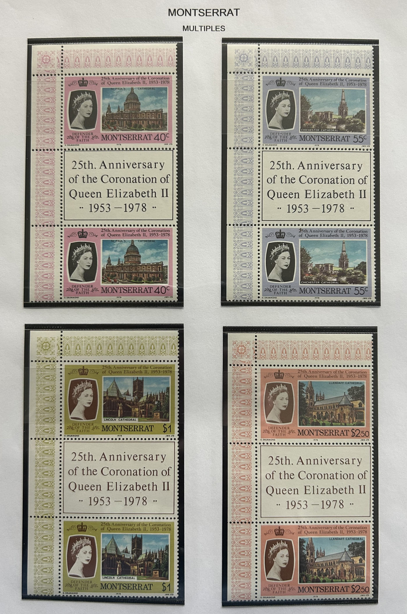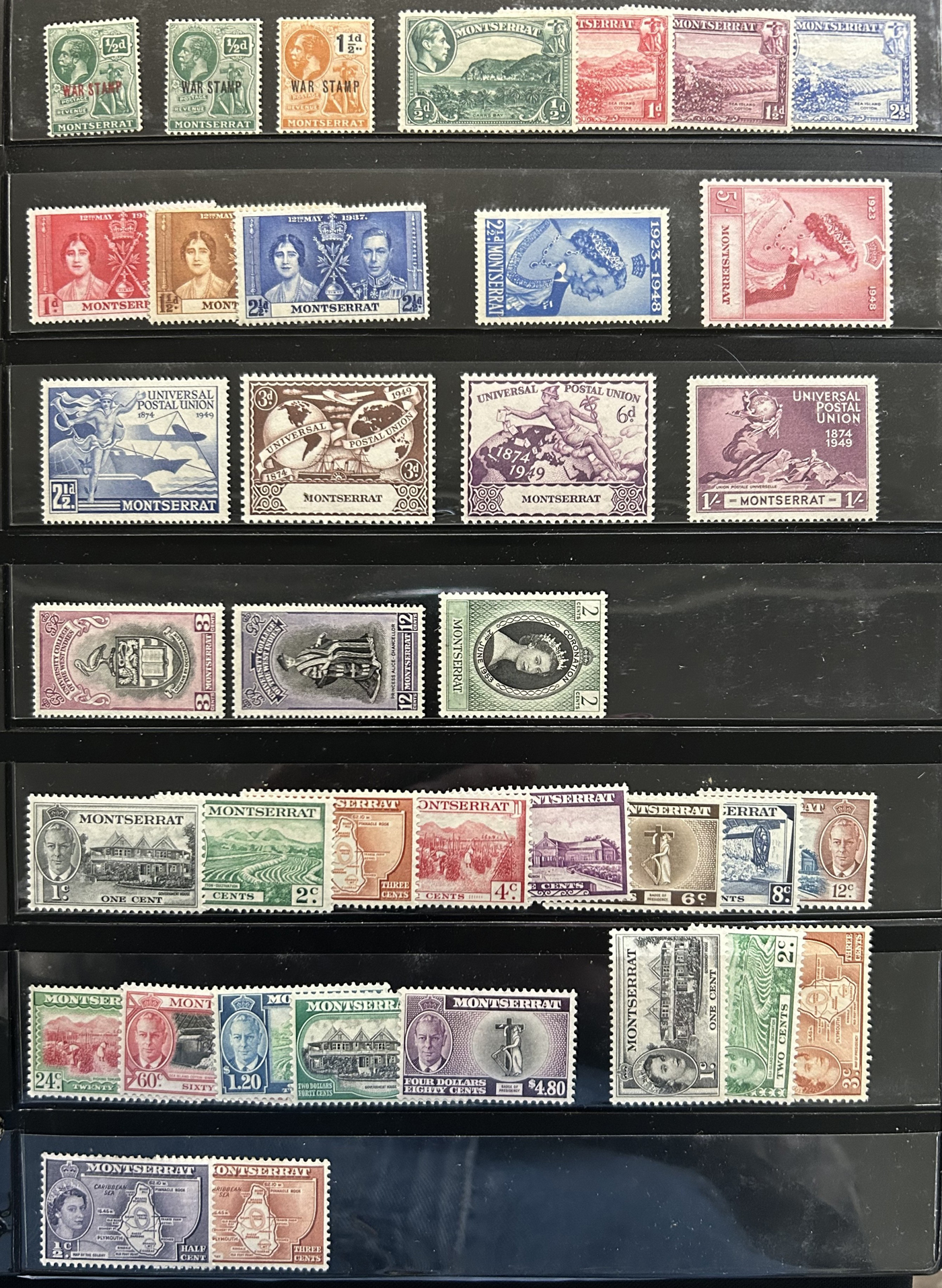 1636 O/og/nh   imageCollection of Primarily Mint Montserrat, 1930s to 1980s, with 381 stamps, souvenir sheets, booklets, blocks and sheet margin blocks, etc. on 46 album pages plus a few stock pages. Included among the earlier issues are complete mint sets such as #s 114-126, 159-176, This is followed by an extensive range of 1973-1988 issues, many also present with SPECIMEN overprints. Overall fine to very fine, pictures show a small sampling only. (Scan 1) (Scan 2) (Scan 3) (Scan 4) (Scan 5) (Scan 6) (Scan 7) (Scan 8) (Scan 9) (Scan 10) (All Scans)