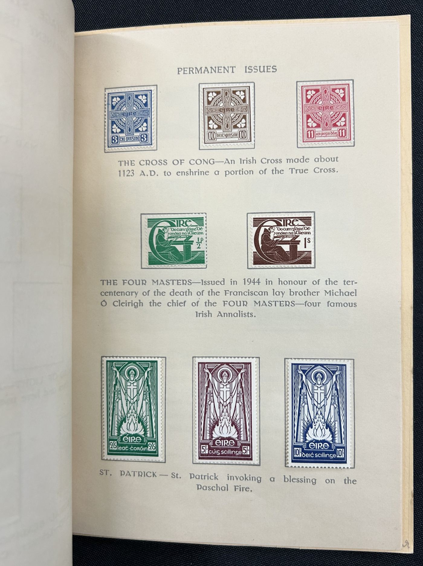 1630 og 65/156 imageOfficial Ireland Presentation Book, containing 74 different mint stamps, in singles and sets, from 1922 to 1956, including better such as 96-98 ($290), 117 ($175), C1-C6, and many more. Overall fine to very fine and fresh. (Scan 1) (Scan 2) (Scan 3) (Scan 4) (All Scans)