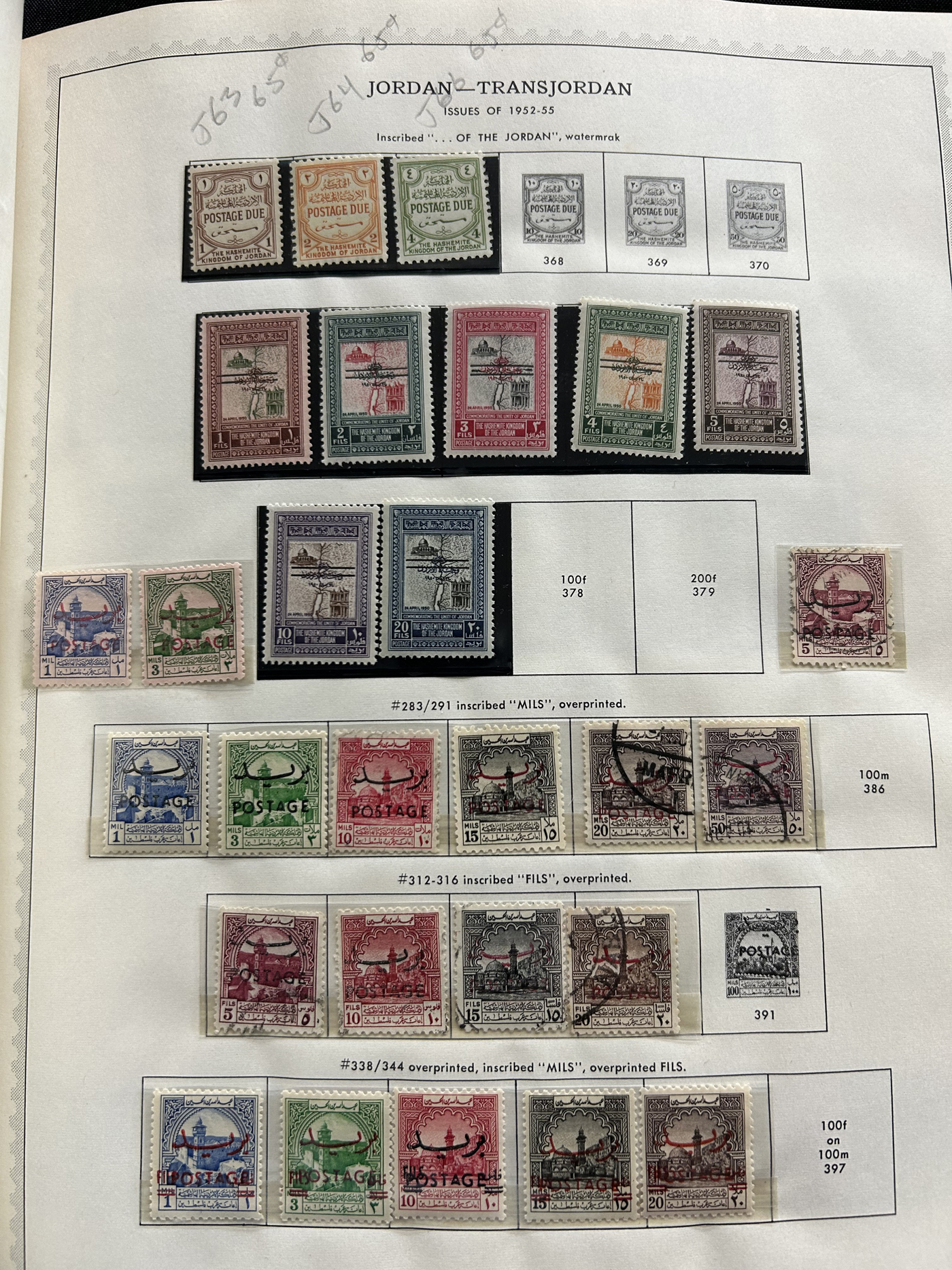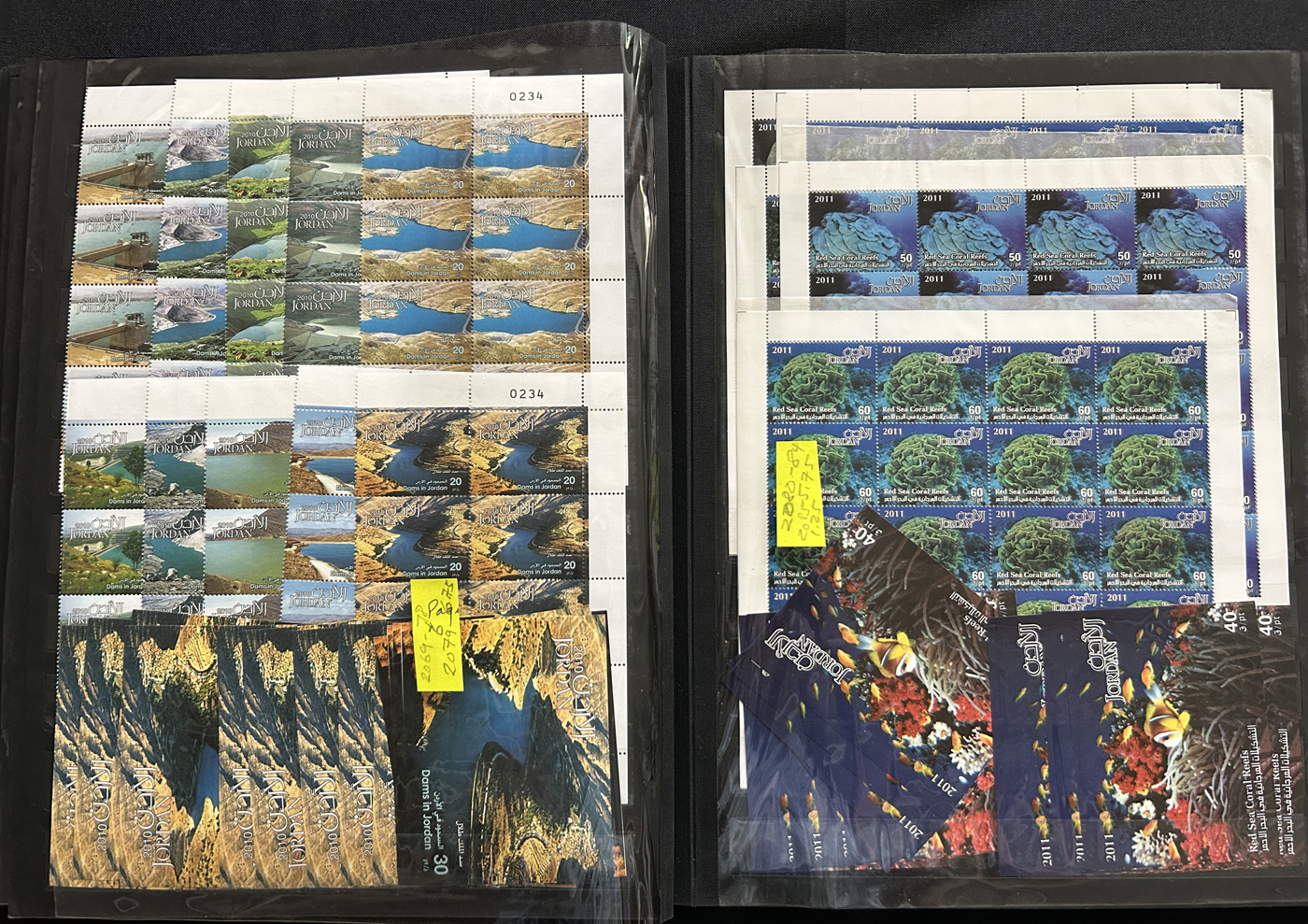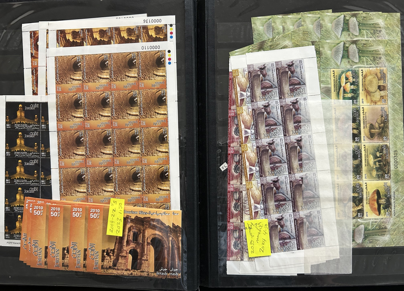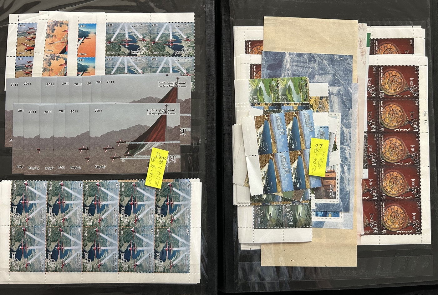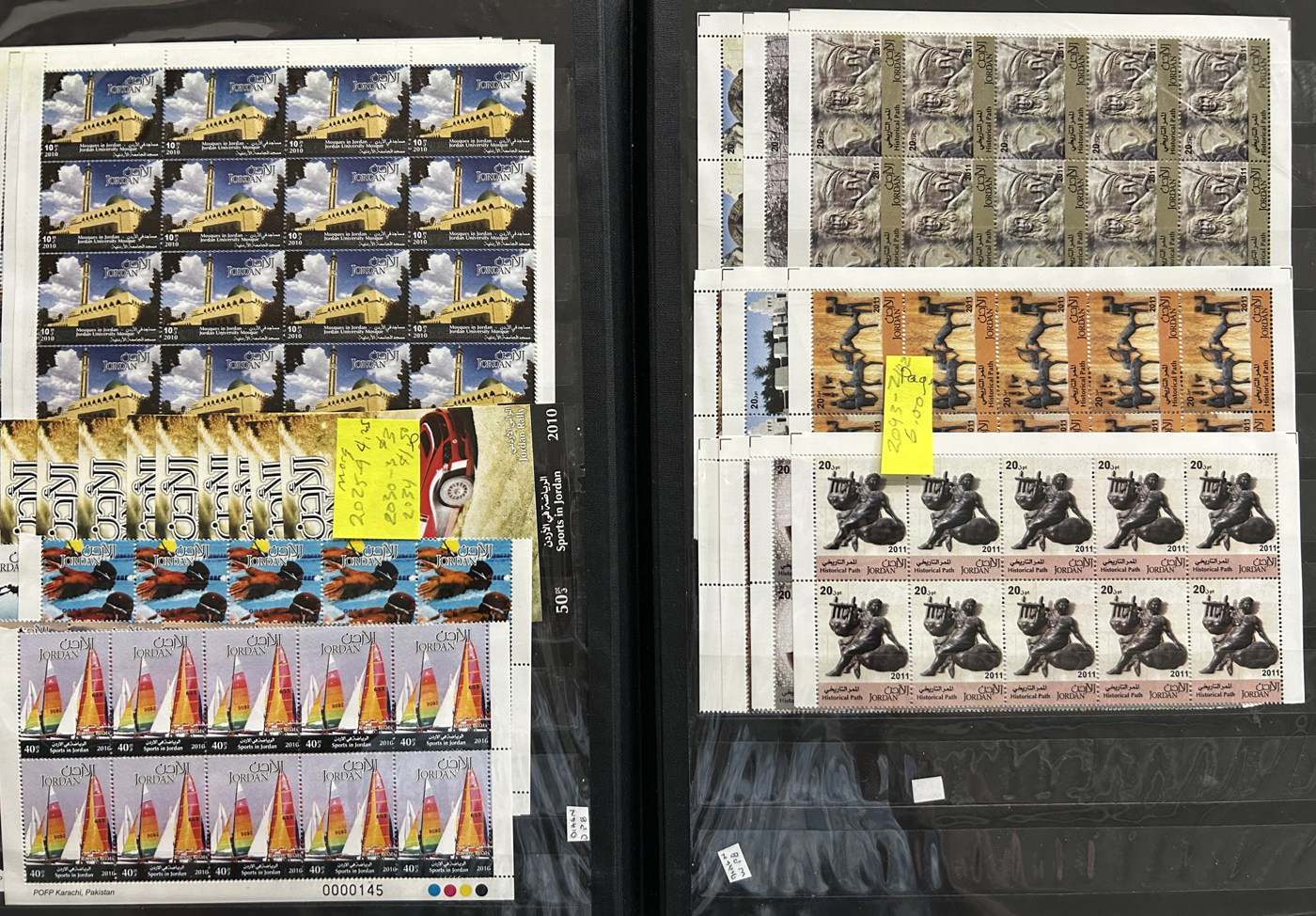 1631 O/og/nh   imageCollections of Mint and Used Jordan, a thick Minkus album contains a collection of 1976-1992 mint and used (and CTO) with a 2013 Scott value (for the NH sets only, of which there are many) of $737 (so likely a lot higher). Also a stockbook with 18 pages crammed full of mint never hinged Jordan new issues from 2007 to 2012, mainly in complete sets and in sheetlets, with souvenir sheets, part sheets, etc, with duplication often of up to 10. Also includes a hinged set of C26-28 ($235) and a stock page with various issues (sets, souvenir sheets, etc.). Overall very fine. (Scan 1) (Scan 2) (Scan 3) (Scan 4) (Scan 5) (Scan 6) (Scan 7) (Scan 8) (Scan 9) (Scan 10) (Scan 11) (Scan 12) (Scan 13) (Scan 14) (Scan 15) (All Scans)