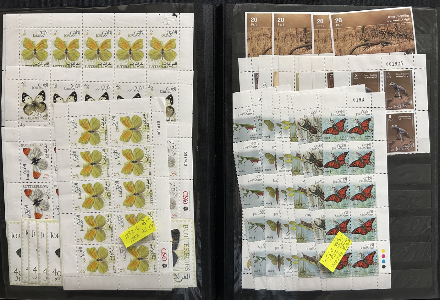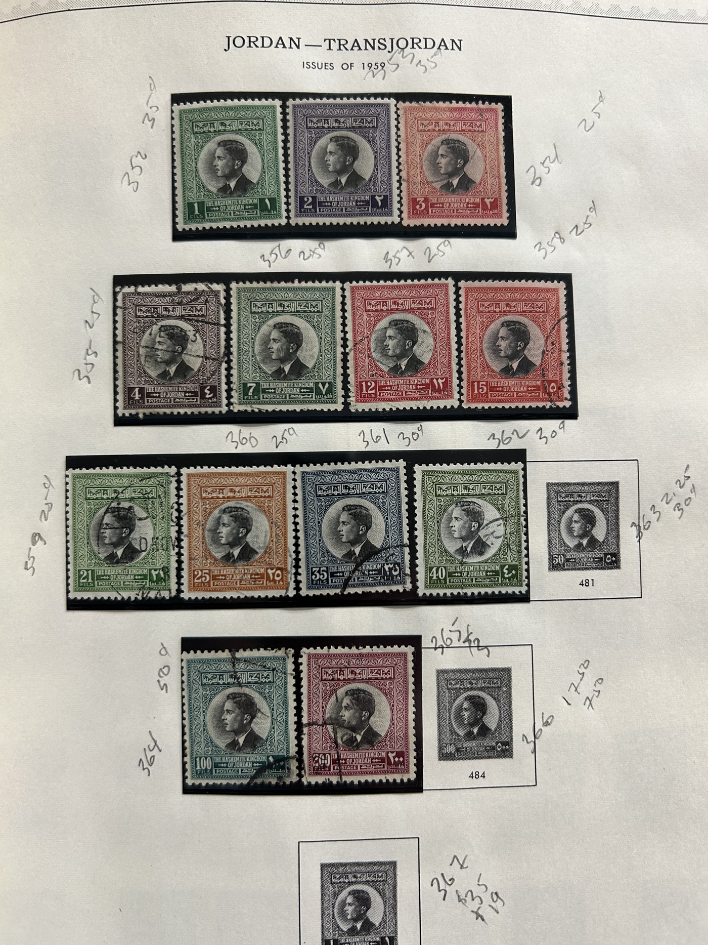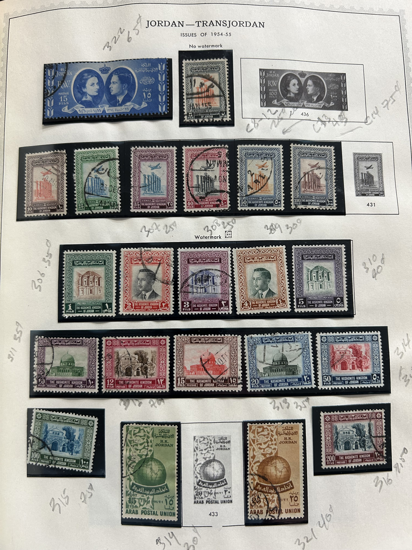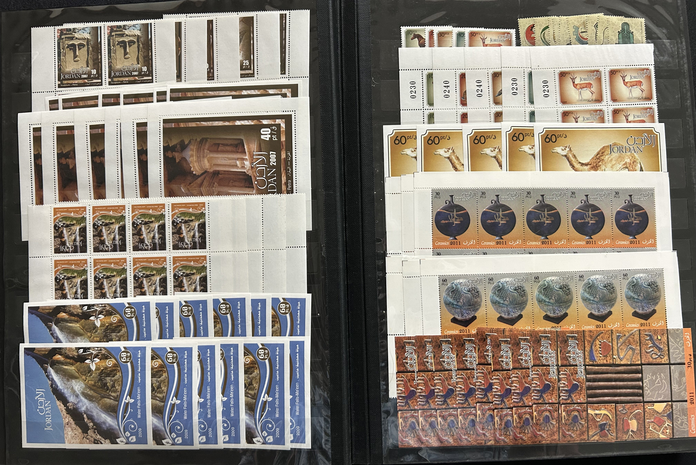 1631 O/og/nh   imageCollections of Mint and Used Jordan, a thick Minkus album contains a collection of 1976-1992 mint and used (and CTO) with a 2013 Scott value (for the NH sets only, of which there are many) of $737 (so likely a lot higher). Also a stockbook with 18 pages crammed full of mint never hinged Jordan new issues from 2007 to 2012, mainly in complete sets and in sheetlets, with souvenir sheets, part sheets, etc, with duplication often of up to 10. Also includes a hinged set of C26-28 ($235) and a stock page with various issues (sets, souvenir sheets, etc.). Overall very fine. (Scan 1) (Scan 2) (Scan 3) (Scan 4) (Scan 5) (Scan 6) (Scan 7) (Scan 8) (Scan 9) (Scan 10) (Scan 11) (Scan 12) (Scan 13) (Scan 14) (Scan 15) (All Scans)