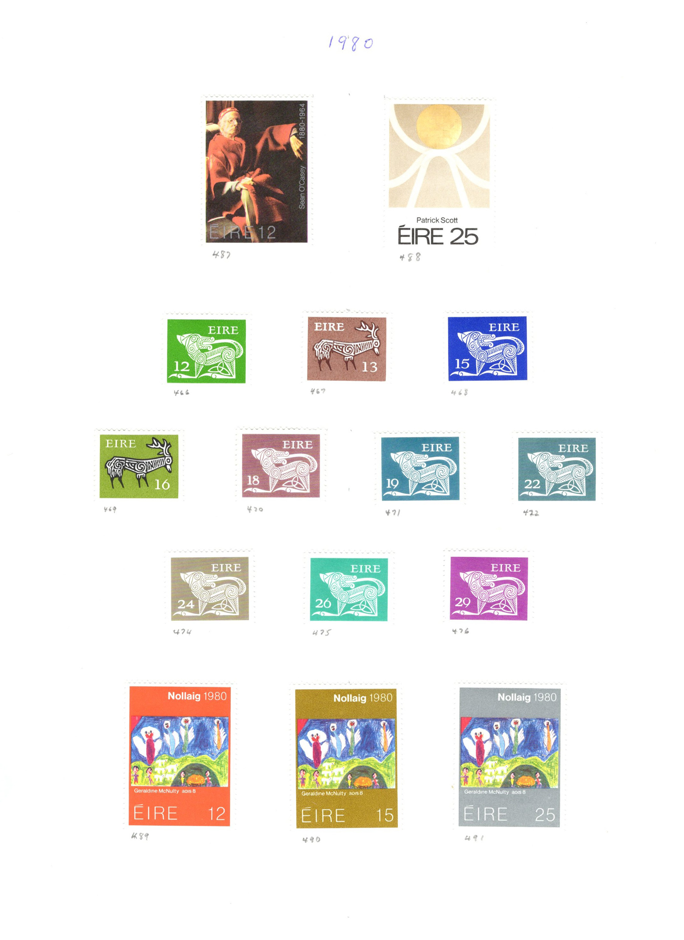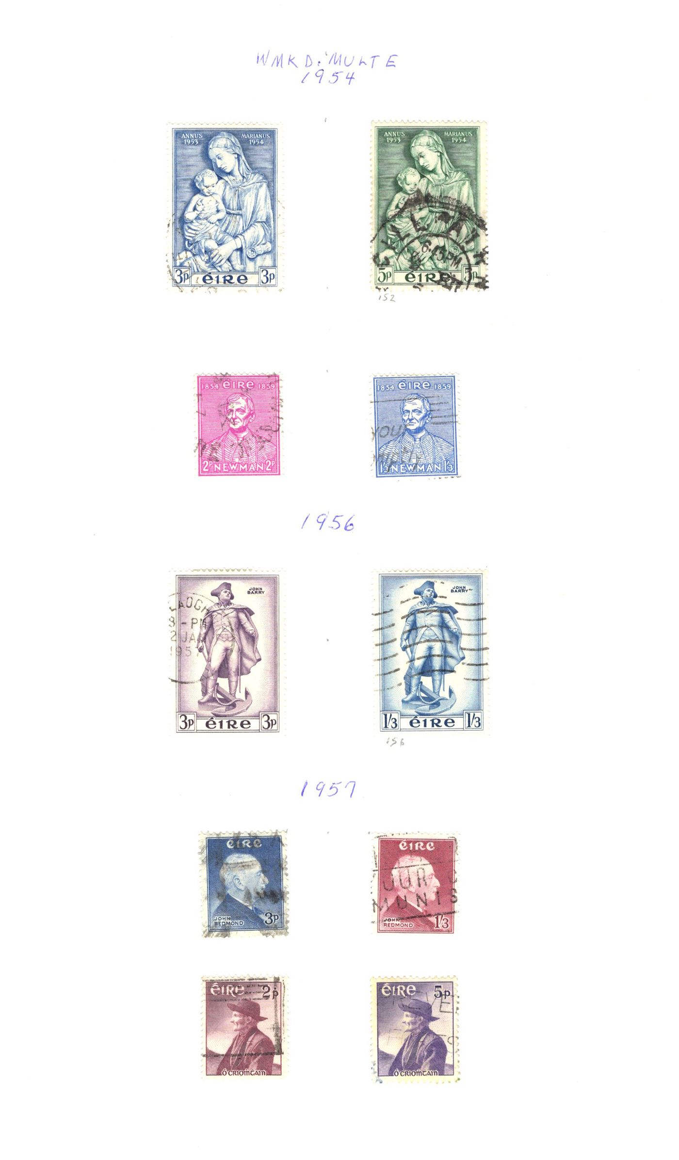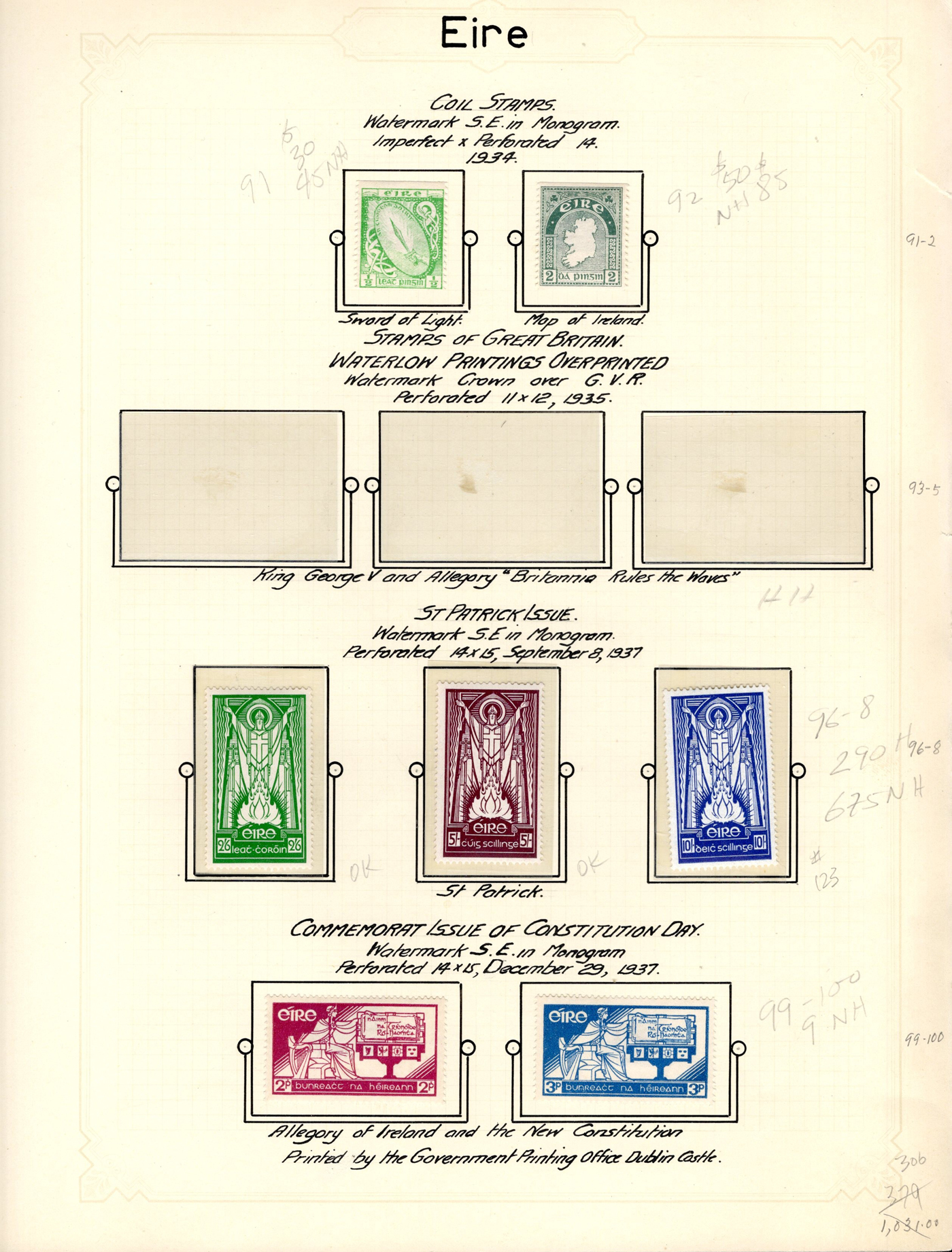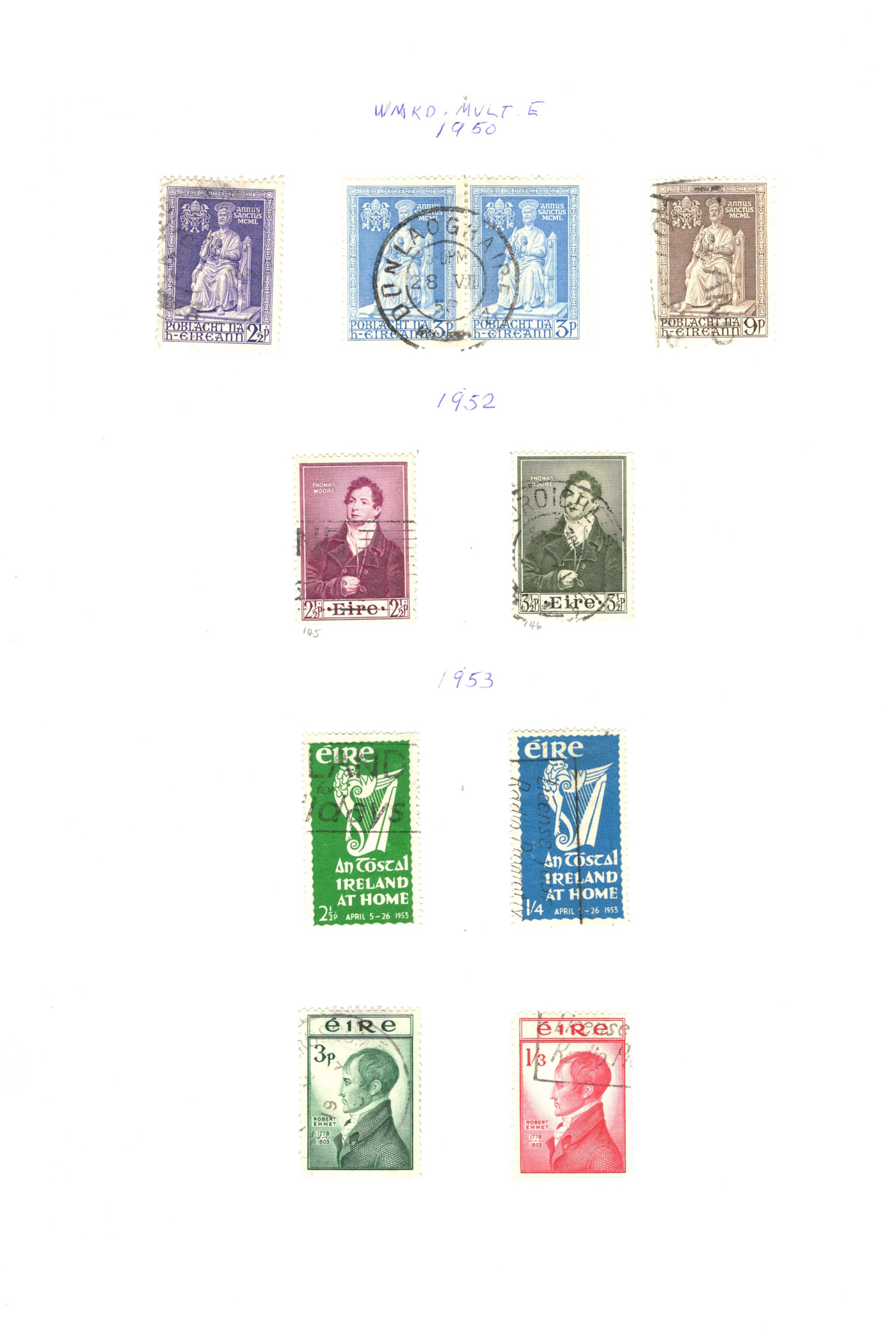 1627 O/og   imageCollection of Mint and Used Ireland, 1922-2010, starts with a clack stock page filled with 40 early mint issues, half of them early overprints, including a horizontal joint pair, Airmails, etc. This followed by a mint and used collection on about 100 quadrille pages, with many complete sets, including better, in a mix of mint or hinged, overall fine or better. (Scan 1) (Scan 2) (Scan 3) (Scan 4) (Scan 5) (Scan 6) (Scan 7) (Scan 8) (Scan 9) (Scan 10) (Scan 11) (All Scans)