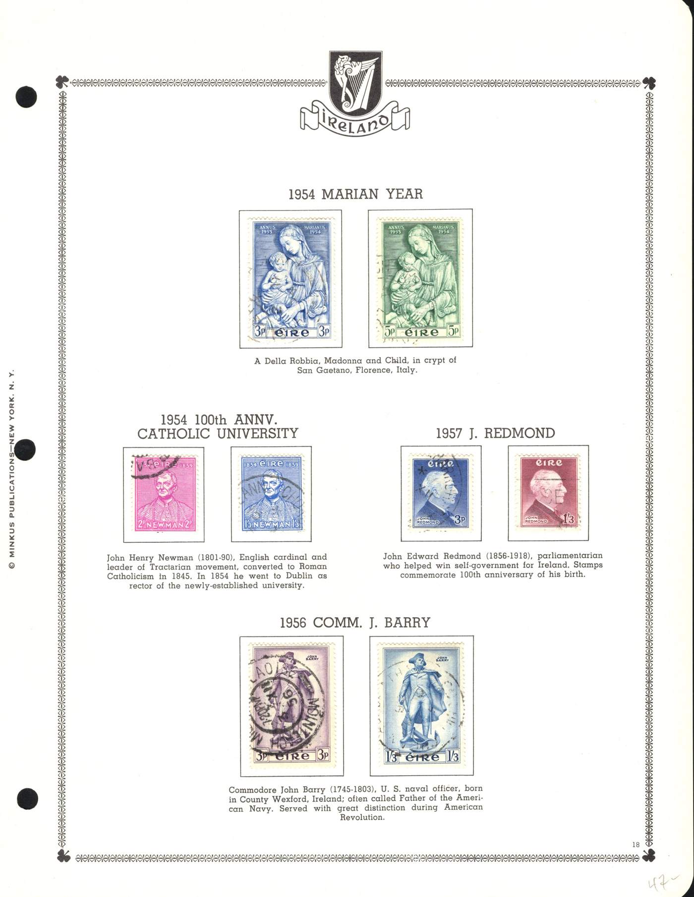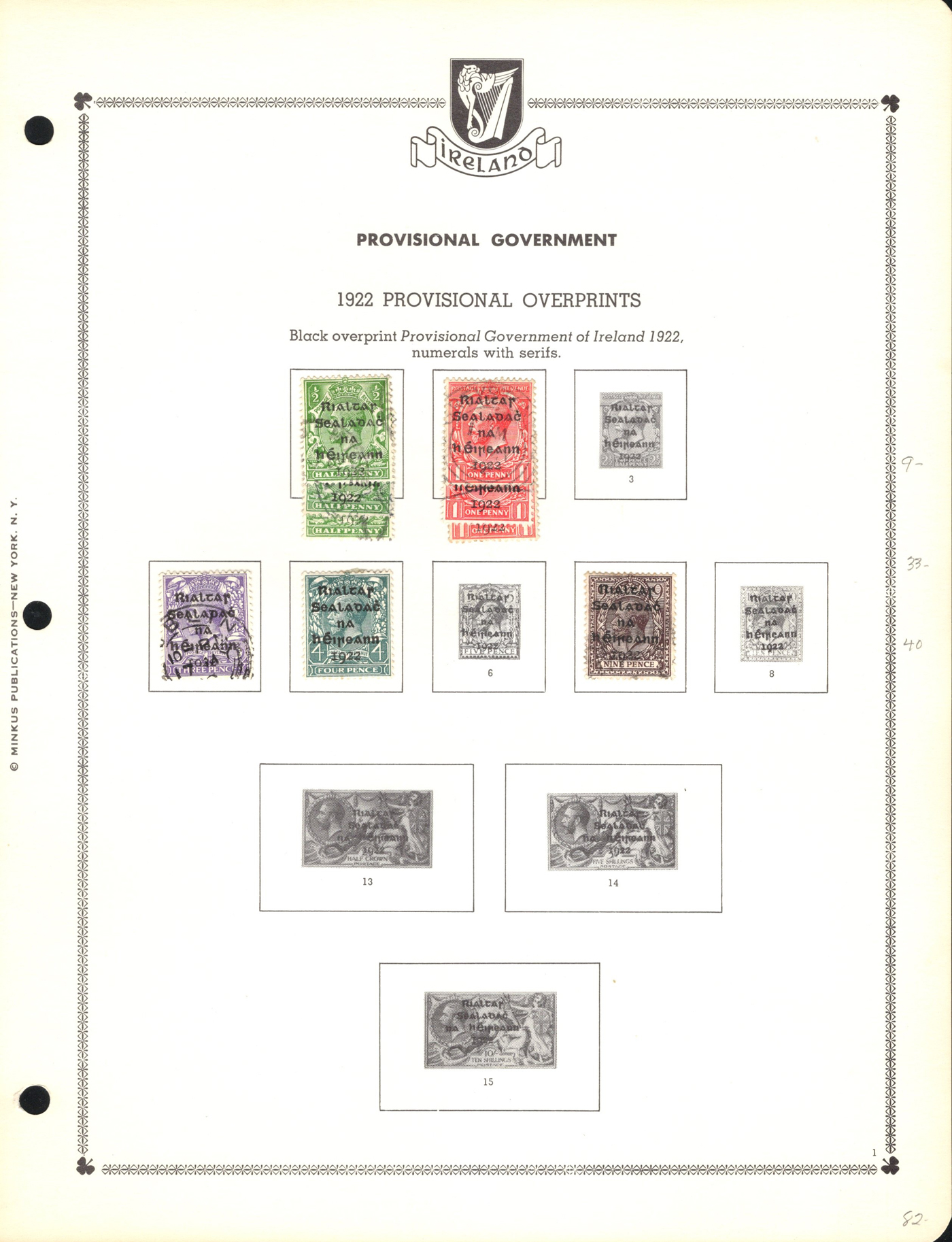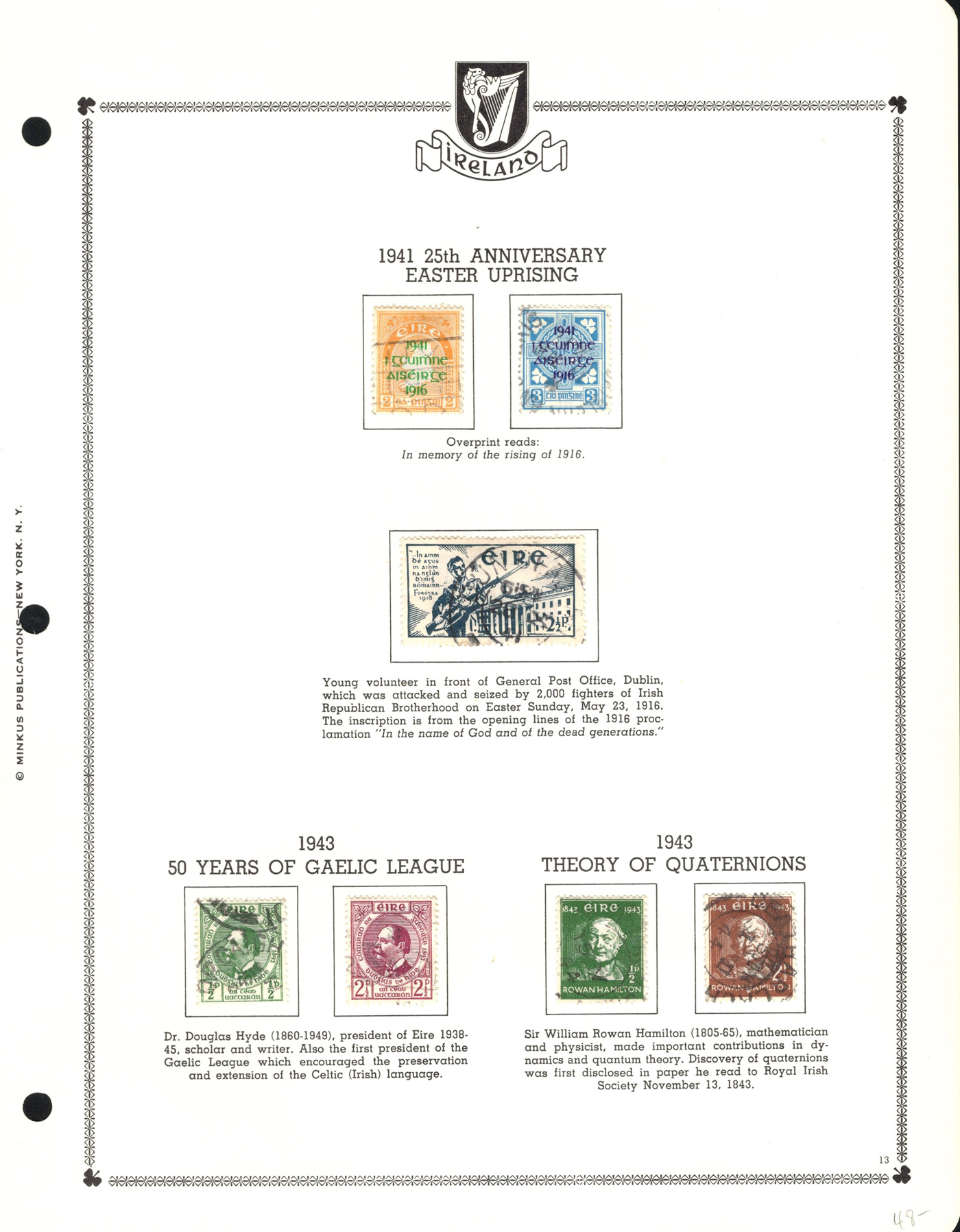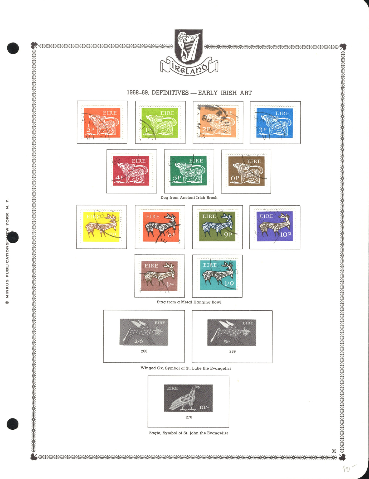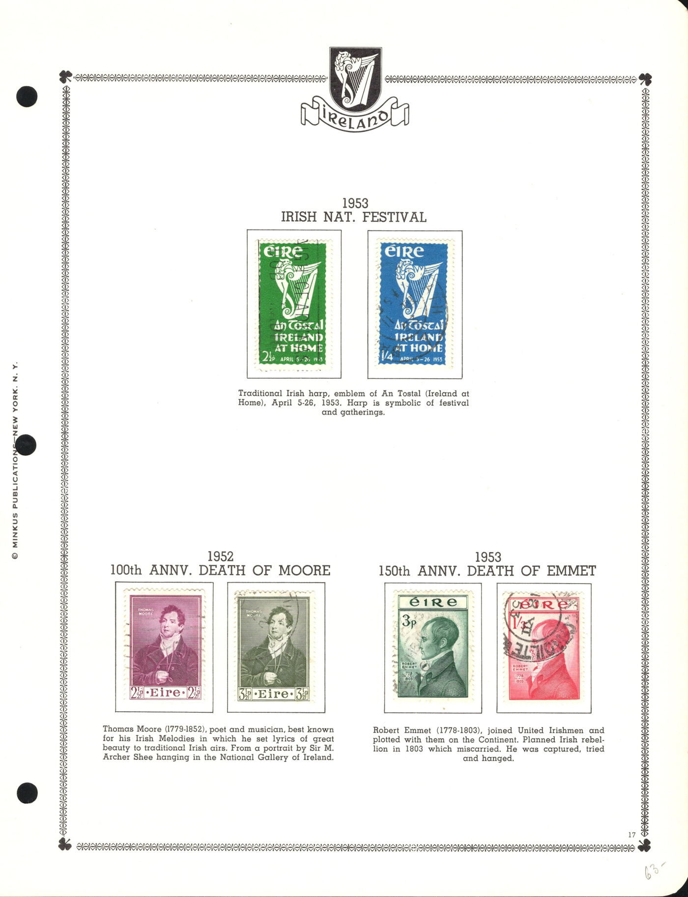 1626 O   imageCollection of Used Ireland in a Minkus Album,1922 to 1981, a decent collection with many better items, including complete sets, etc. Nice condition, overall fine or better. Catalogue value was from 2014. (Scan 1) (Scan 2) (Scan 3) (Scan 4) (Scan 5) (Scan 6) (Scan 7) (Scan 8) (All Scans)