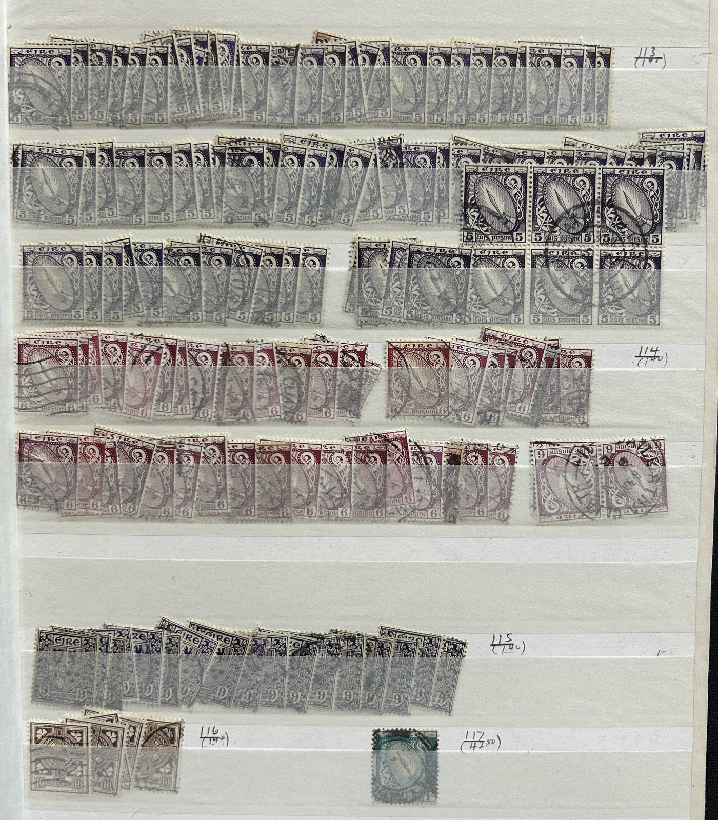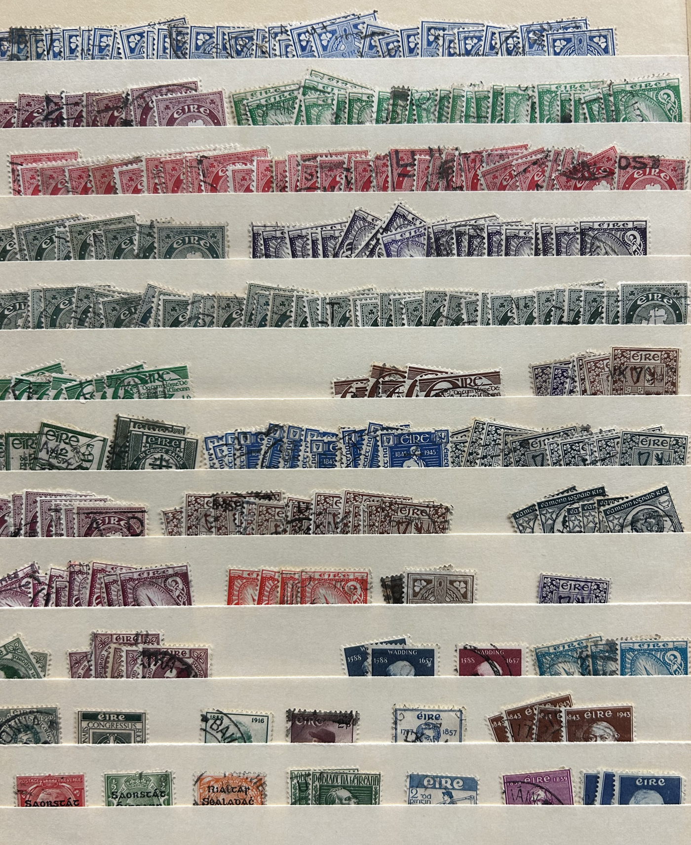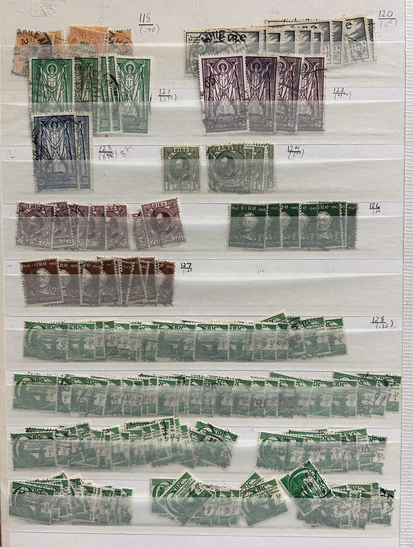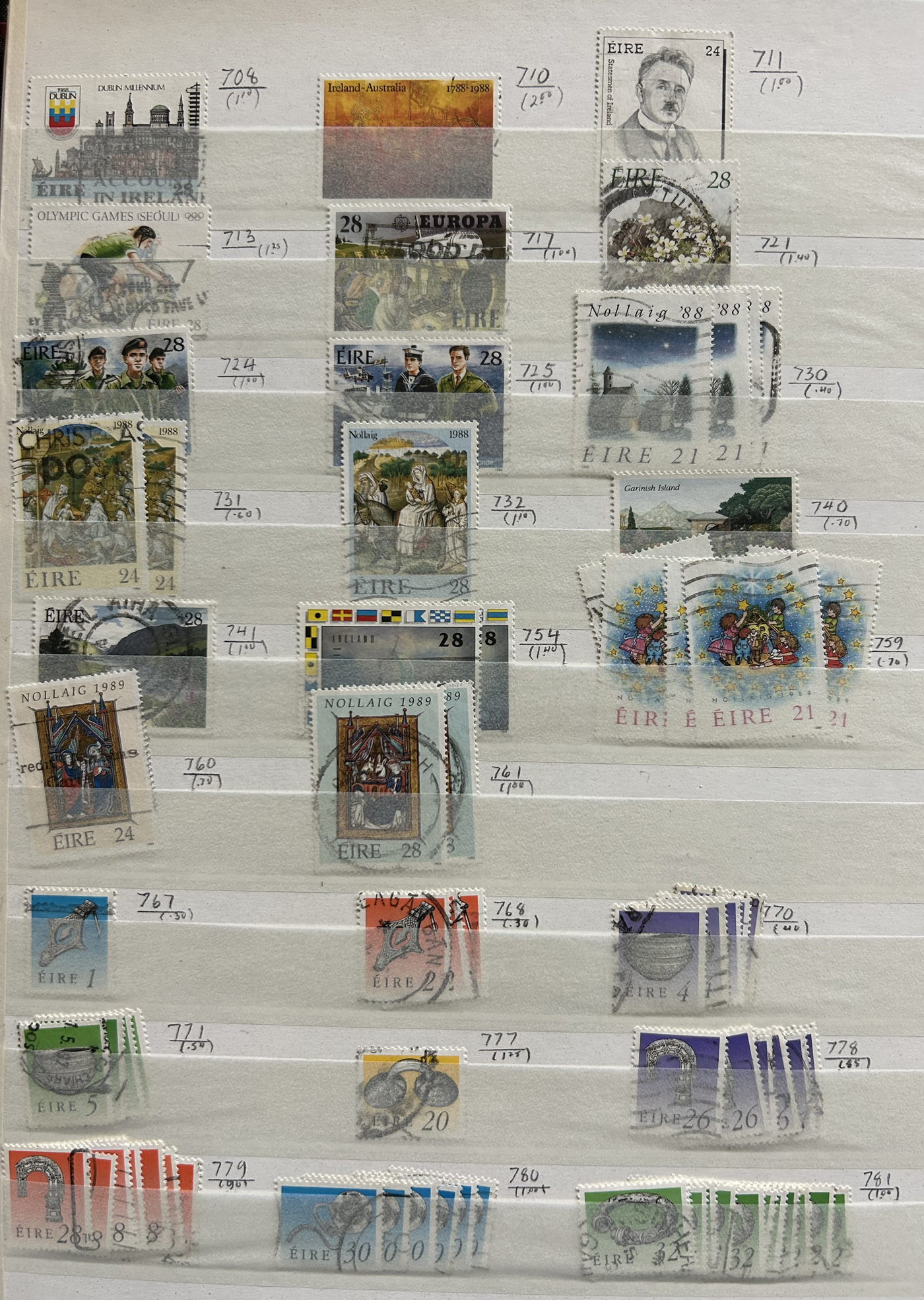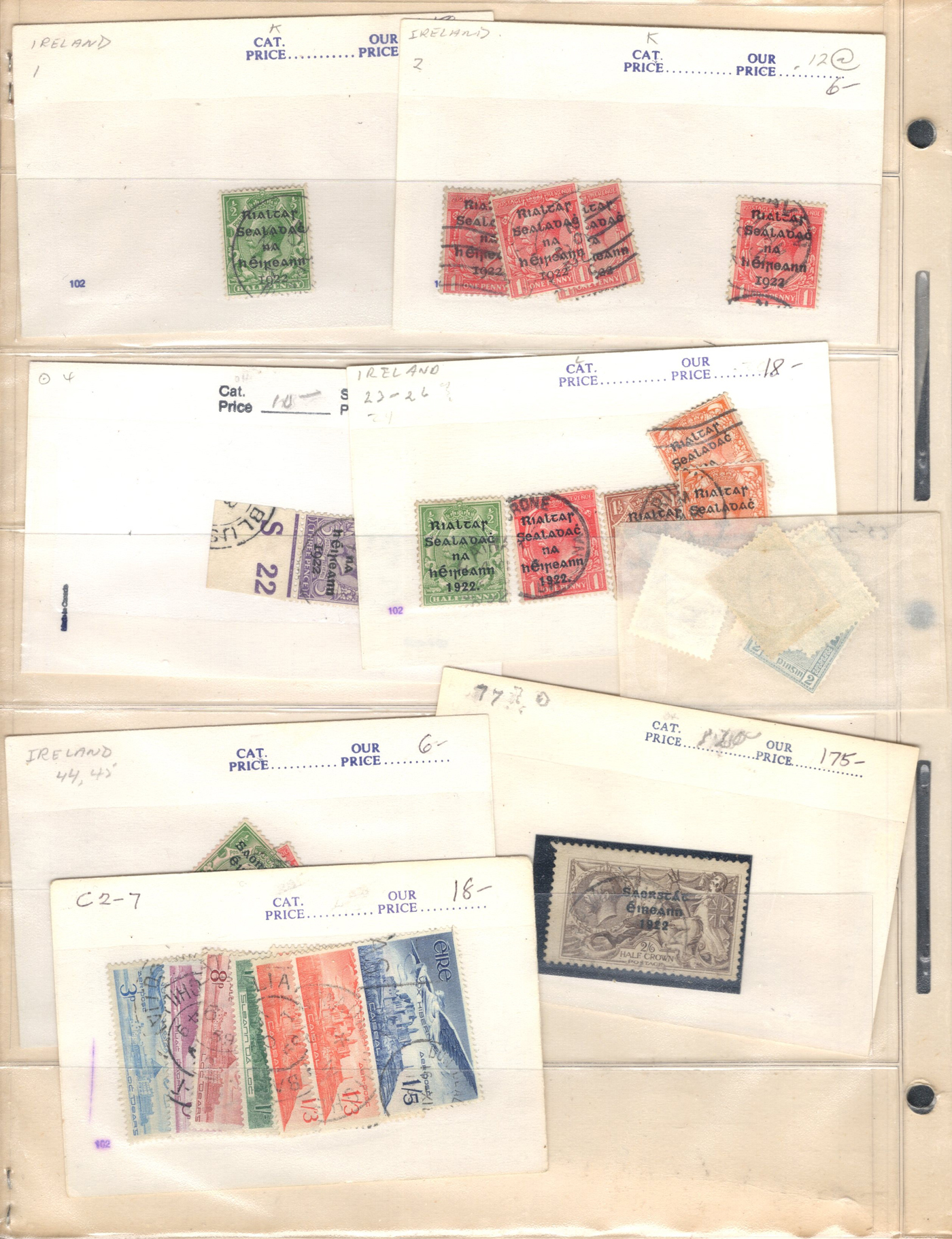 1628 O/og   imageGroup of Mint and Used Ireland Collections / Stock, a stockbook contains 5 pages of mint NH from from the 1960s and 1970s (228 diff. stamps). A binder contains 35 approval pages full of mainly used Ireland appearing to be all different. Two stockbooks contain a mint and used collection from 1922 to 1996 (hundreds of stamps) plus three collections / stock of early used on 8 stock pages with a high catalogue value and a dealer asking price of $1,040 ($365, $350 and $325). Generally fine or better. (Scan 1) (Scan 2) (Scan 3) (Scan 4) (Scan 5) (Scan 6) (Scan 7) (Scan 8) (Scan 9) (Scan 10) (Scan 11) (Scan 12) (Scan 13) (All Scans)
