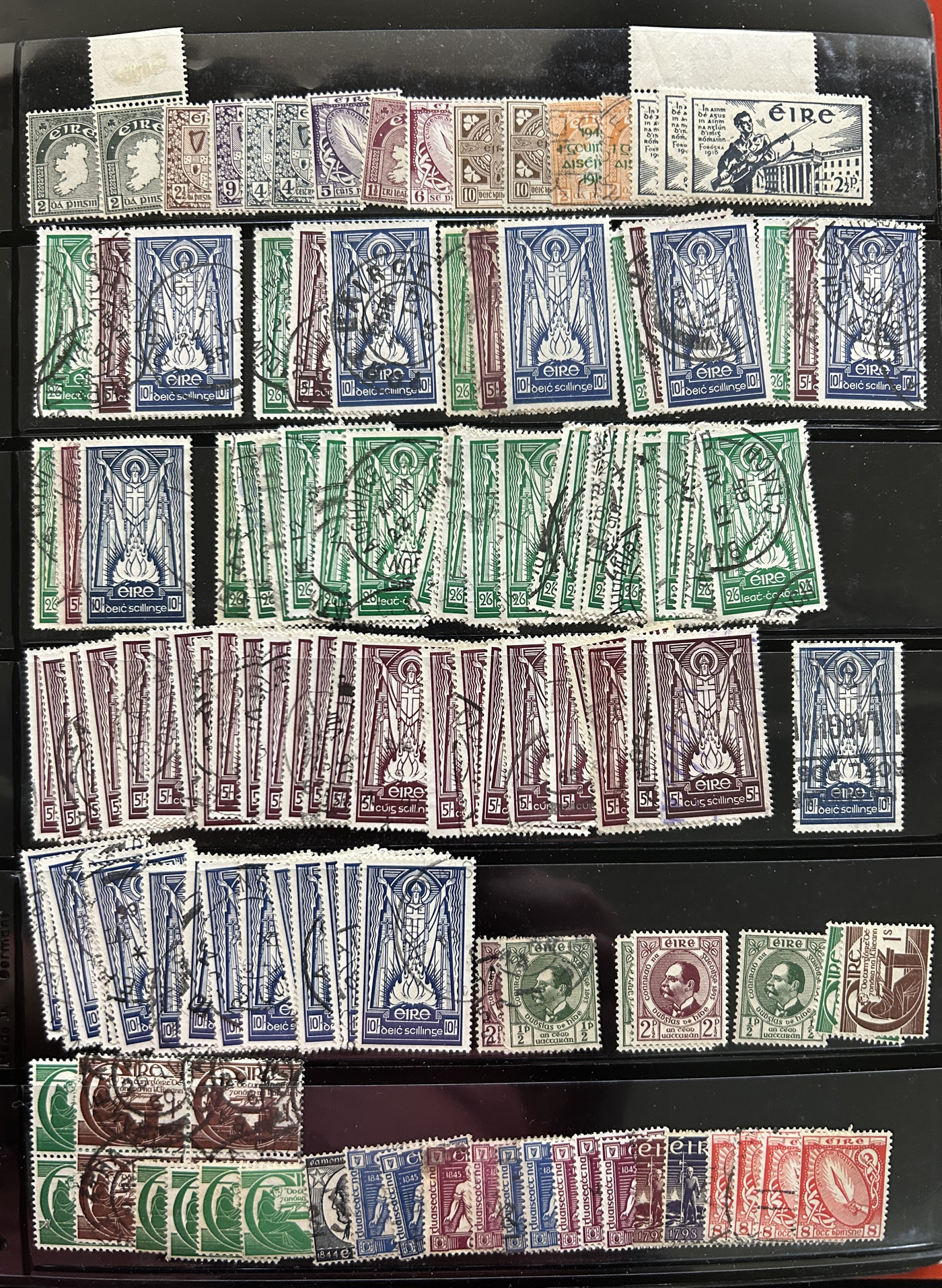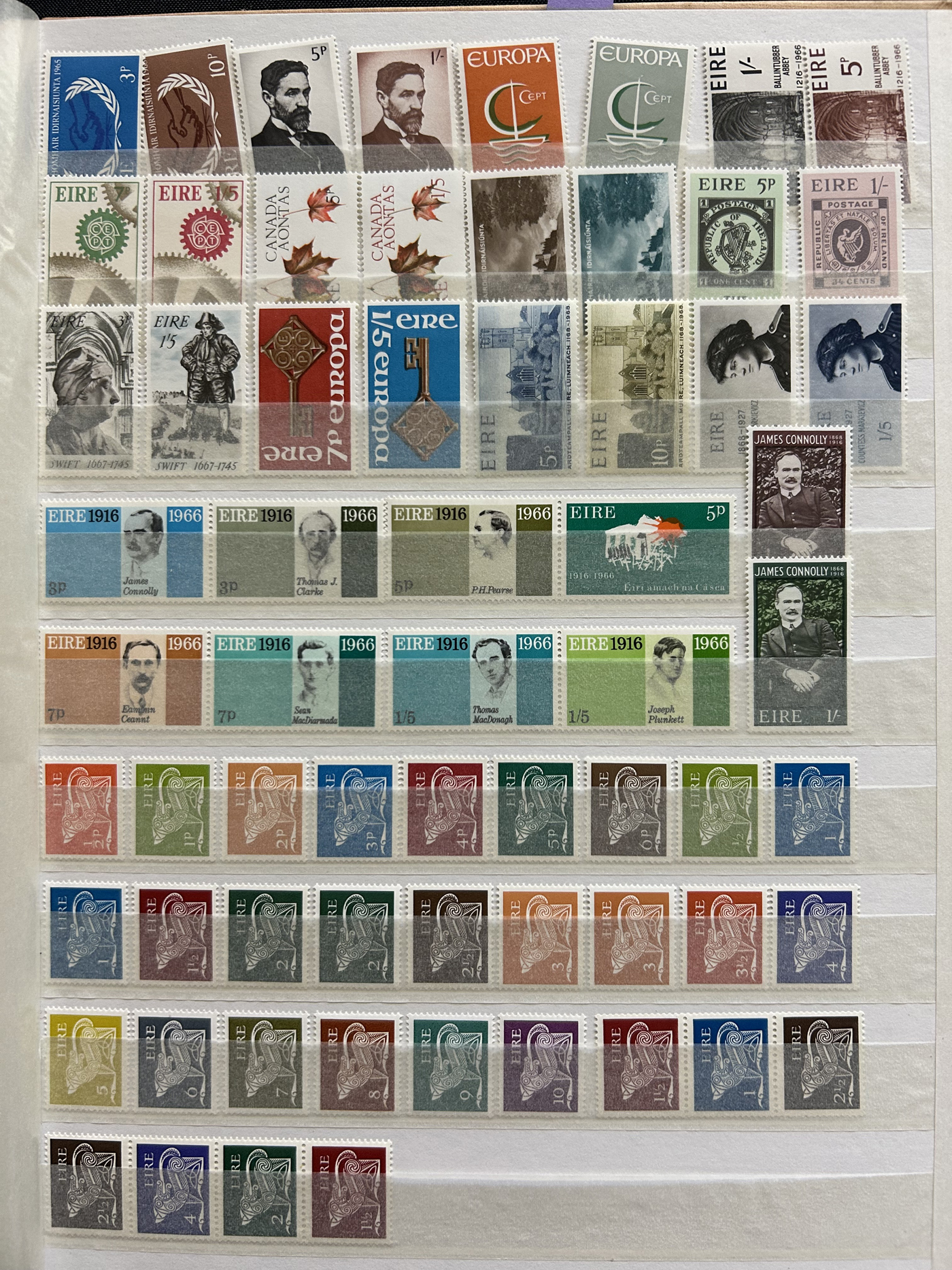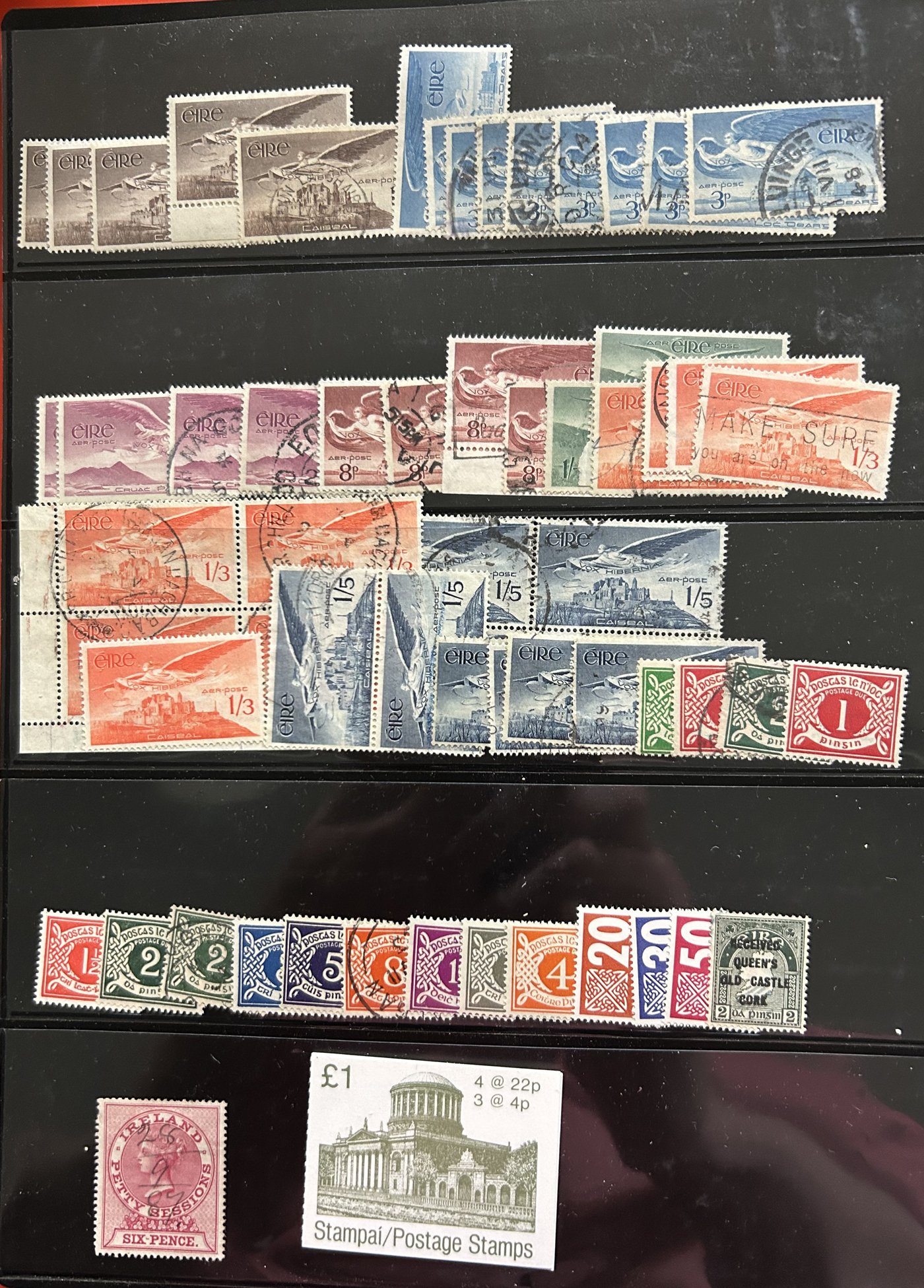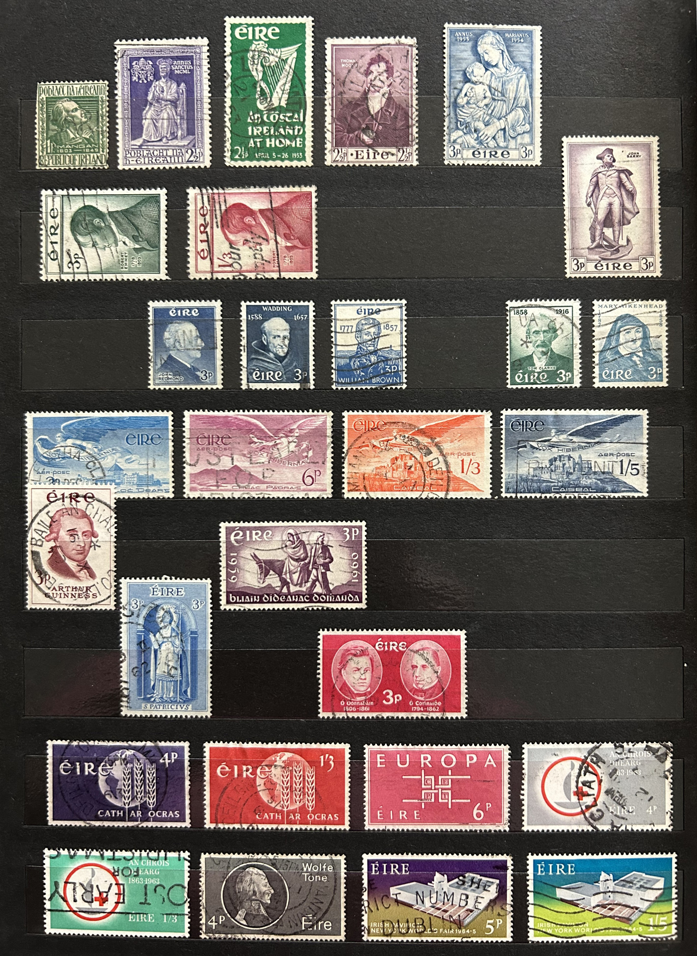 1628 O/og   imageGroup of Mint and Used Ireland Collections / Stock, a stockbook contains 5 pages of mint NH from from the 1960s and 1970s (228 diff. stamps). A binder contains 35 approval pages full of mainly used Ireland appearing to be all different. Two stockbooks contain a mint and used collection from 1922 to 1996 (hundreds of stamps) plus three collections / stock of early used on 8 stock pages with a high catalogue value and a dealer asking price of $1,040 ($365, $350 and $325). Generally fine or better. (Scan 1) (Scan 2) (Scan 3) (Scan 4) (Scan 5) (Scan 6) (Scan 7) (Scan 8) (Scan 9) (Scan 10) (Scan 11) (Scan 12) (Scan 13) (All Scans)