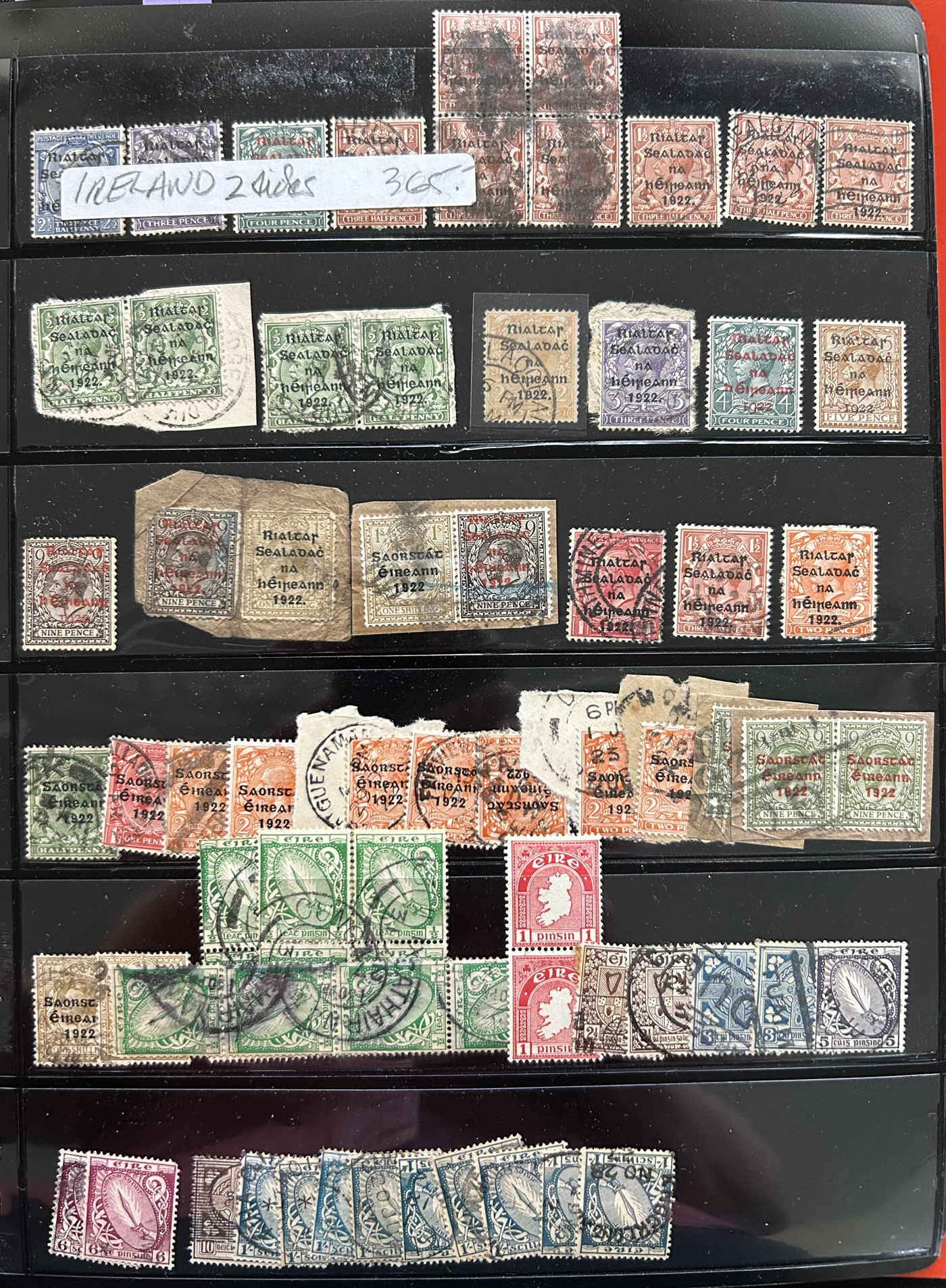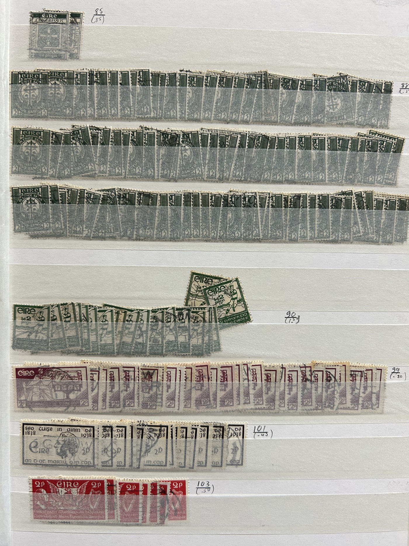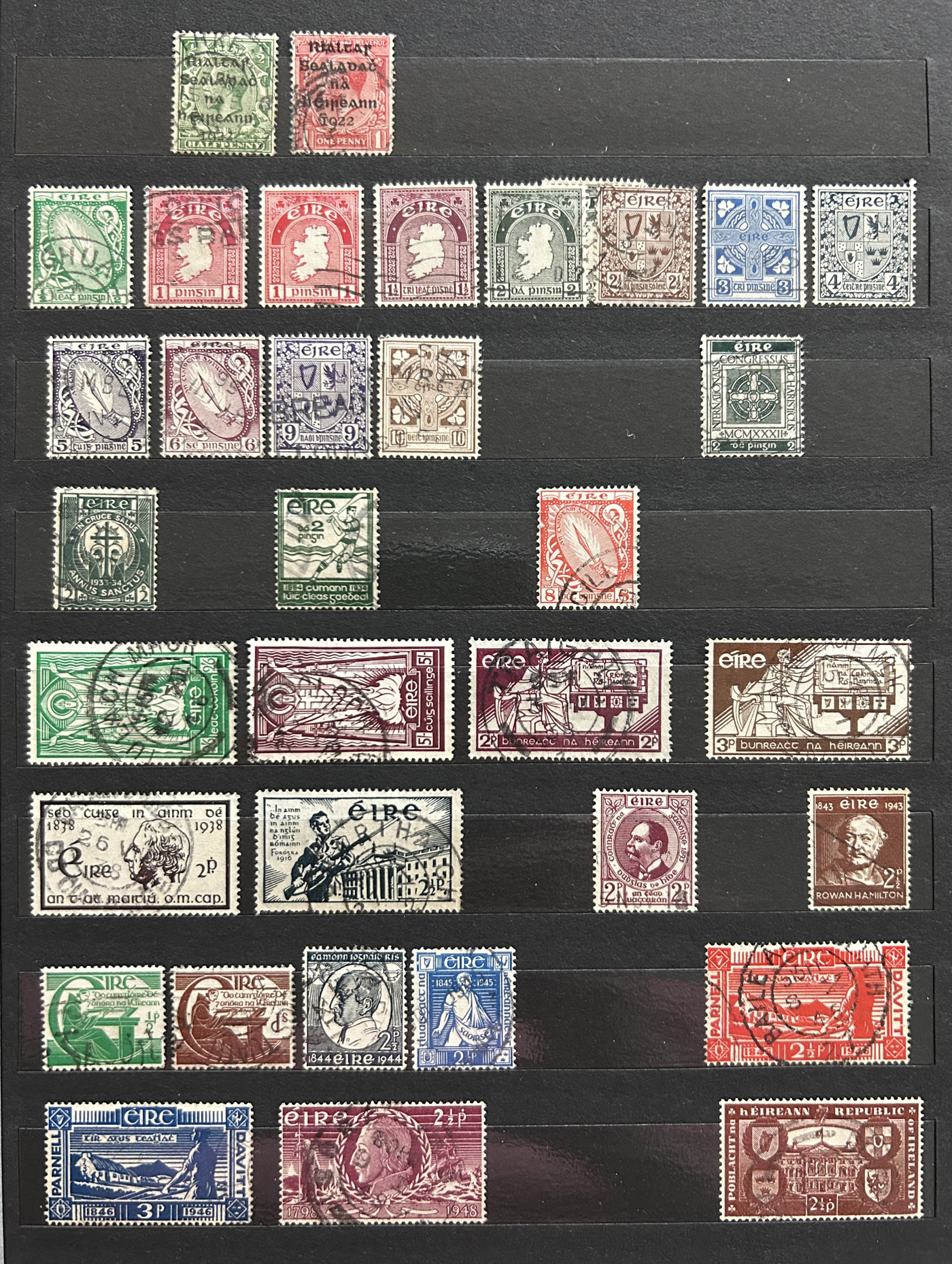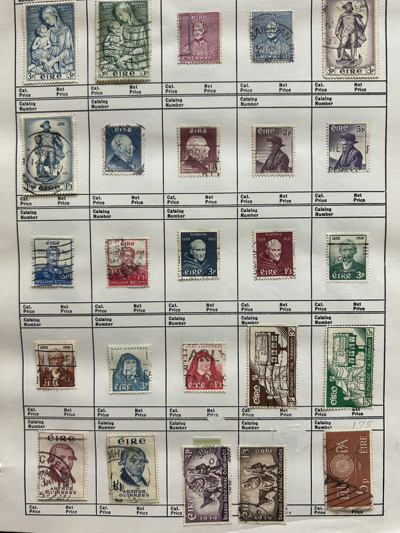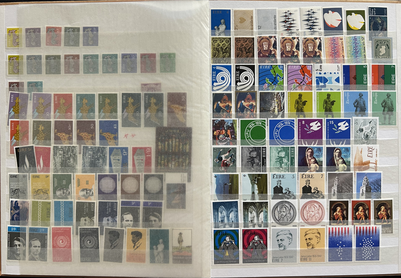 1628 O/og   imageGroup of Mint and Used Ireland Collections / Stock, a stockbook contains 5 pages of mint NH from from the 1960s and 1970s (228 diff. stamps). A binder contains 35 approval pages full of mainly used Ireland appearing to be all different. Two stockbooks contain a mint and used collection from 1922 to 1996 (hundreds of stamps) plus three collections / stock of early used on 8 stock pages with a high catalogue value and a dealer asking price of $1,040 ($365, $350 and $325). Generally fine or better. (Scan 1) (Scan 2) (Scan 3) (Scan 4) (Scan 5) (Scan 6) (Scan 7) (Scan 8) (Scan 9) (Scan 10) (Scan 11) (Scan 12) (Scan 13) (All Scans)