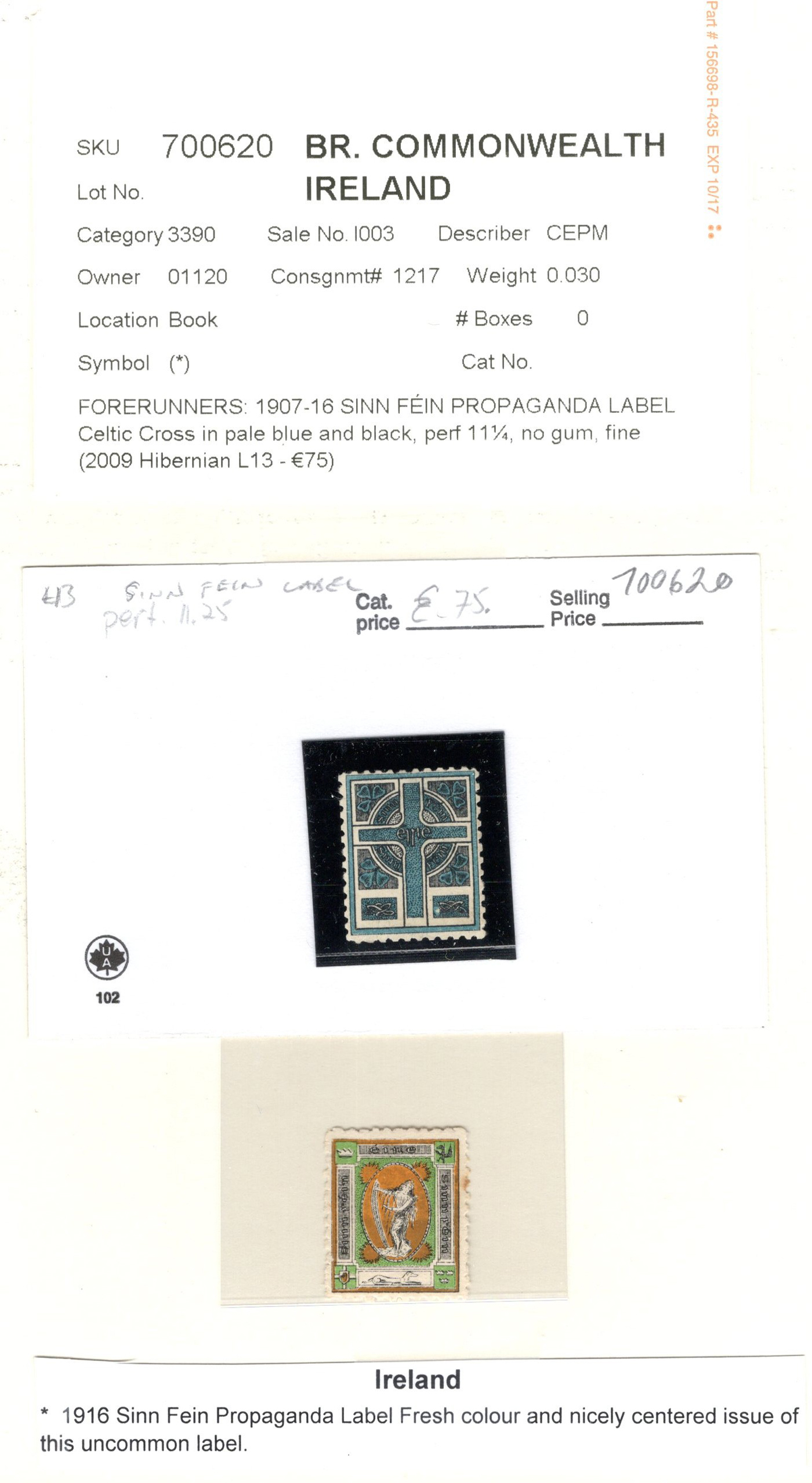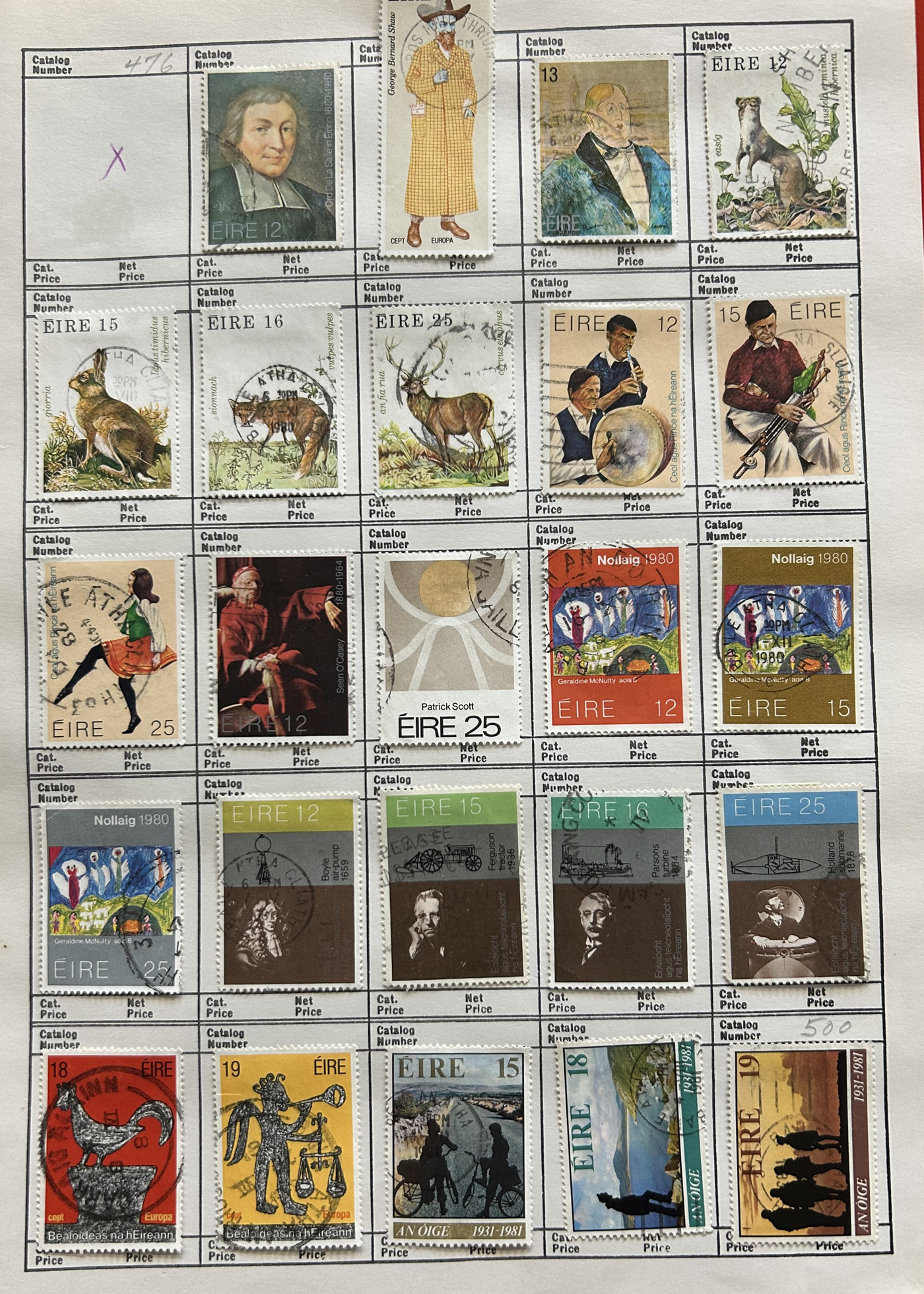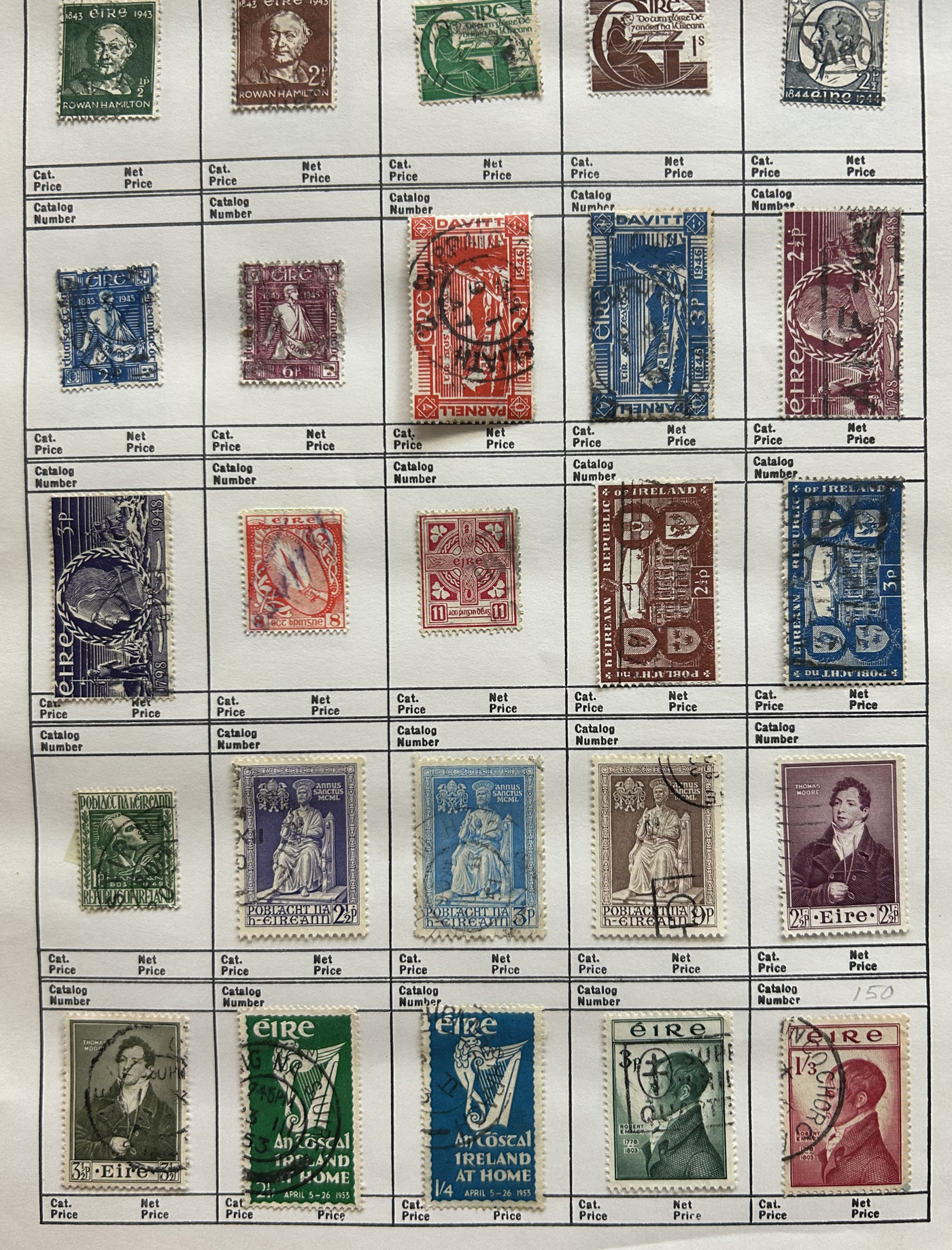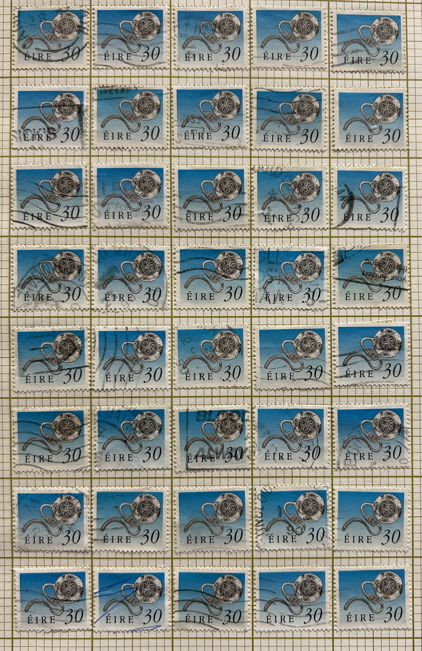 1628 O/og   imageGroup of Mint and Used Ireland Collections / Stock, a stockbook contains 5 pages of mint NH from from the 1960s and 1970s (228 diff. stamps). A binder contains 35 approval pages full of mainly used Ireland appearing to be all different. Two stockbooks contain a mint and used collection from 1922 to 1996 (hundreds of stamps) plus three collections / stock of early used on 8 stock pages with a high catalogue value and a dealer asking price of $1,040 ($365, $350 and $325). Generally fine or better. (Scan 1) (Scan 2) (Scan 3) (Scan 4) (Scan 5) (Scan 6) (Scan 7) (Scan 8) (Scan 9) (Scan 10) (Scan 11) (Scan 12) (Scan 13) (All Scans)