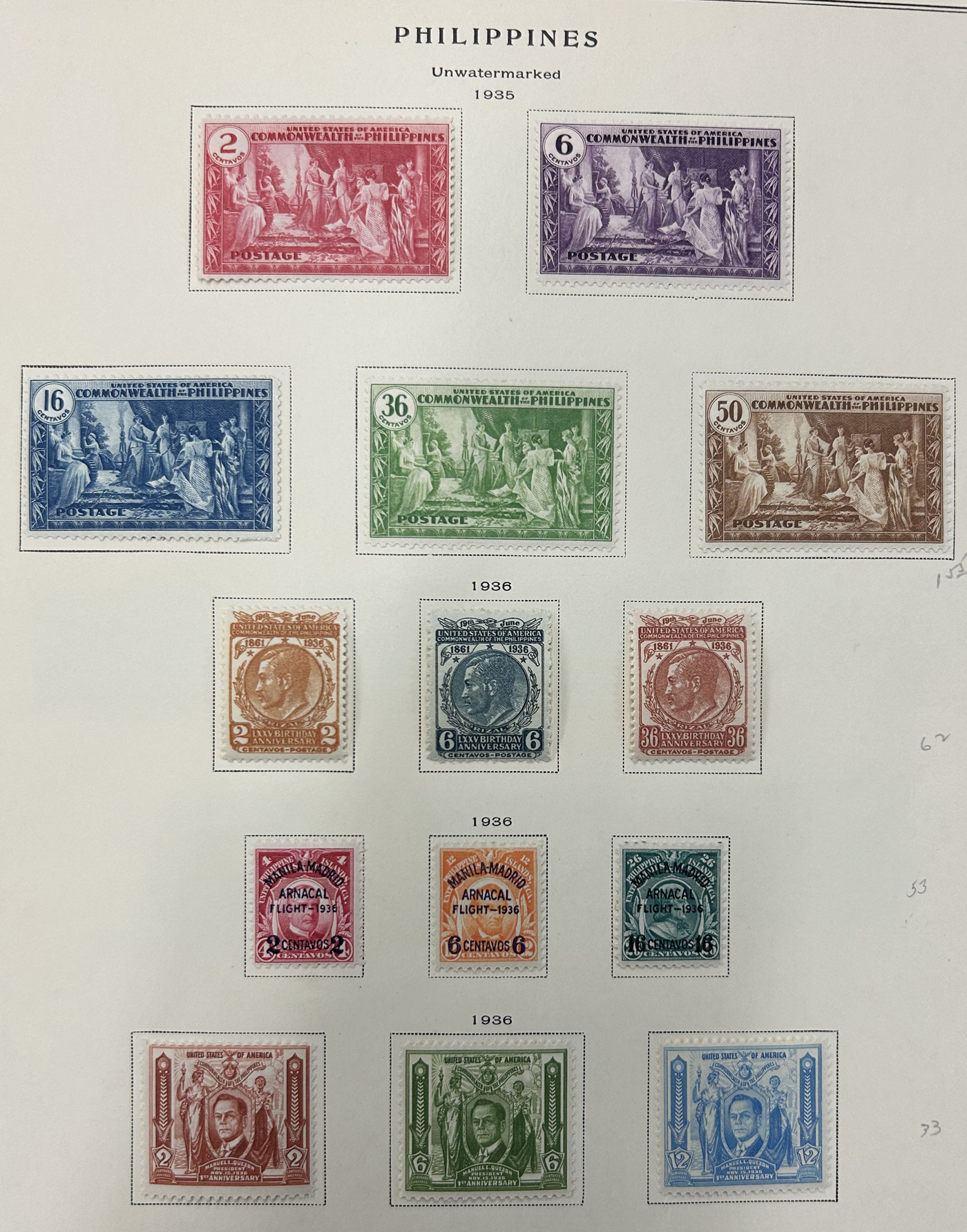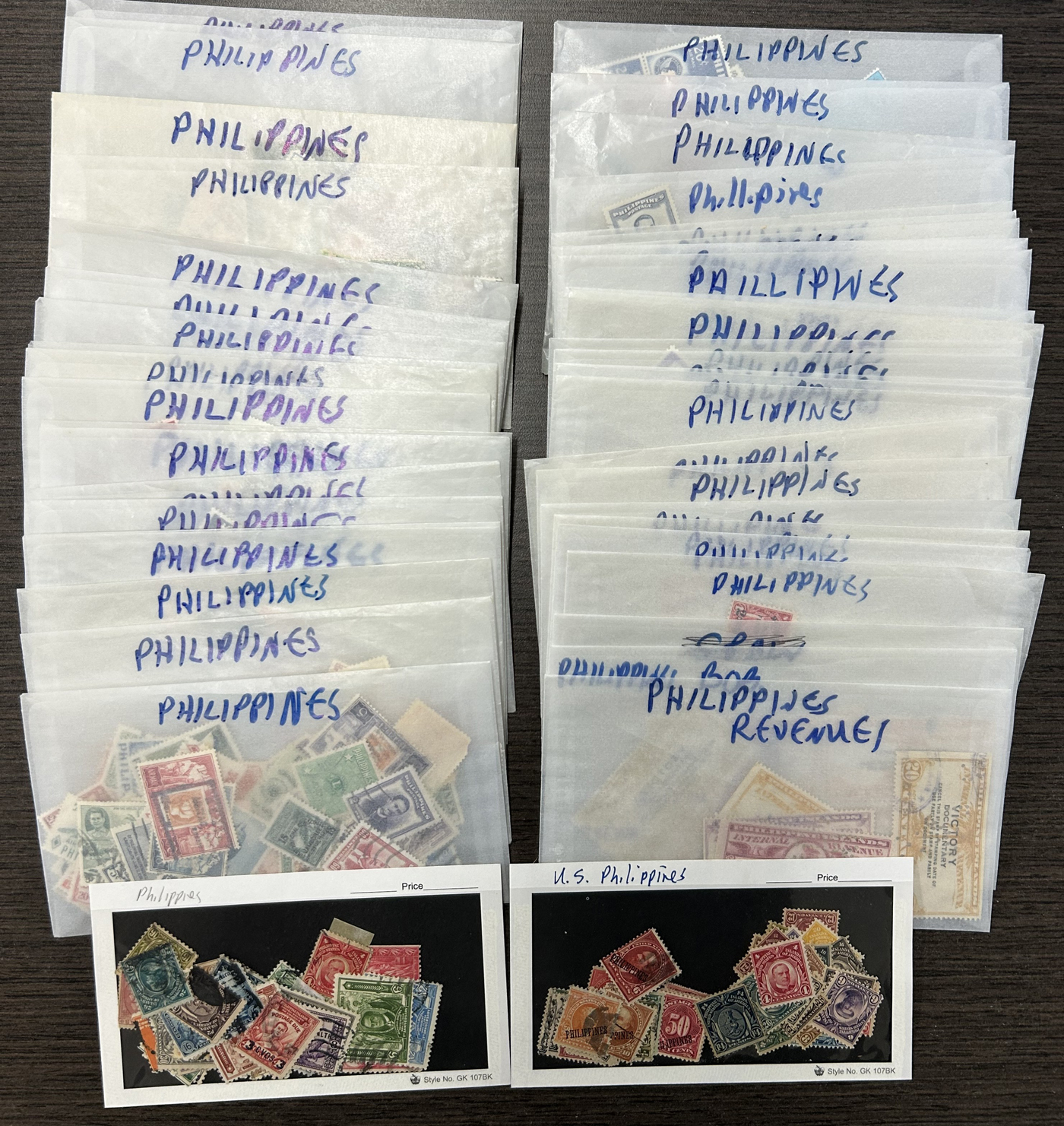 1650 O/og   imageCollections of Mint and Used Philippines, consisting of at least three collections on 35 Scott pages, with a mix of mint and used and including good back of the book, complete sets, etc. Also includes 2 107 cards containing mostly early mint and used issues (appear all different) as well as 44 large glassines containing easily over 1,000 mint and used stamps from the 1860s to about 1960s, including Revenues, etc. A quick glance would indicate that there is very little duplication. This lot as a whole, if carefully mounted should result in a high level of completeness. Overall fine or better. (Scan 1) (Scan 2) (Scan 3) (Scan 4) (Scan 5) (Scan 6) (Scan 7) (Scan 8) (Scan 9) (Scan 10) (All Scans)
