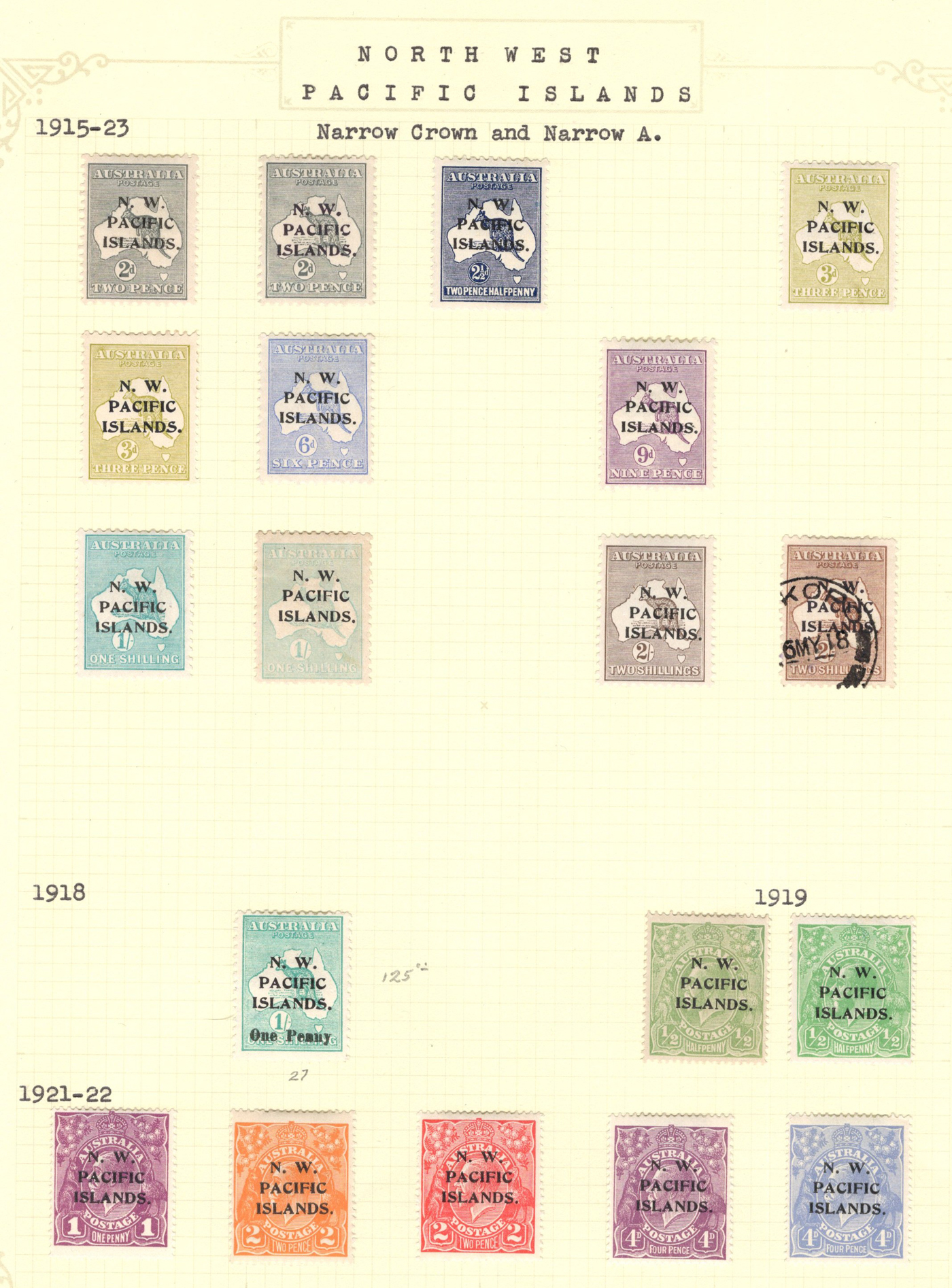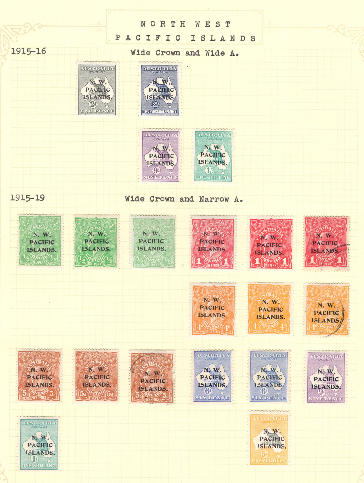 1646 O/og   imageThree Collections of Mint and Used Pacific North West Islands, 1915-1923, all three with good assortments of mixed mint and used, some identified by Scott number, some by watermark, with some duplication, but note shades, etc. Fresh condition throughout, overall fine to very fine. (Scan 1) (Scan 2) (Scan 3) (Scan 4) (All Scans)