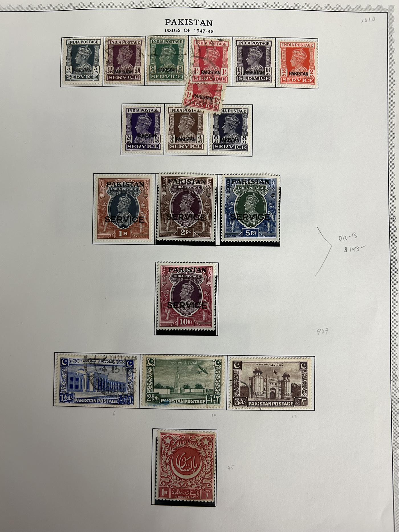 1647 O/og/nh   imageCollection of Mint and Used Pakistan, 1947 to 1981, all on Minkus pages, with a mix of mint and used, and in some cases both. The collection appears to be 80-90% complete to 1974, then dwindles down to the end. We note many long, uninterrupted runs of singles and sets, including Officials inter-twined, including several better items such as #s 19 (used, $120), O10-O13 (mint, $143), 24-43 (mint and used, $218), O25 (used, $27), O26 (two mint, with different overprints, $25 each), 66-72 (mint, $25), and many more in the $5 to $10 per single or set. The collection ends with a group of 33 different mint Bahawalpur issues. A clean and overall fine to very fine collection. (Scan 1) (Scan 2) (Scan 3) (Scan 4) (Scan 5) (Scan 6) (Scan 7) (Scan 8) (Scan 9) (Scan 10) (Scan 11) (All Scans)