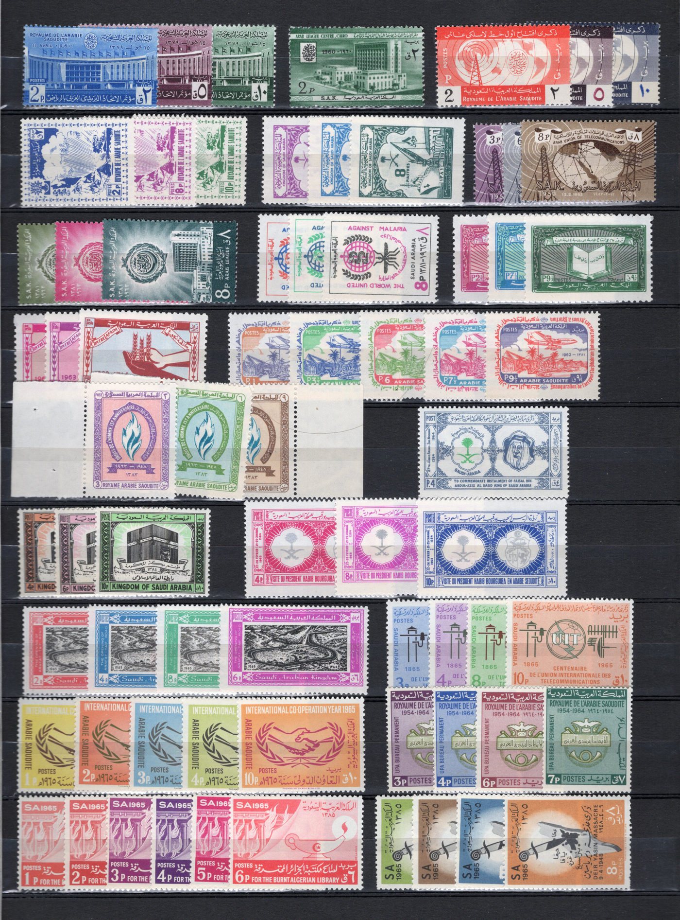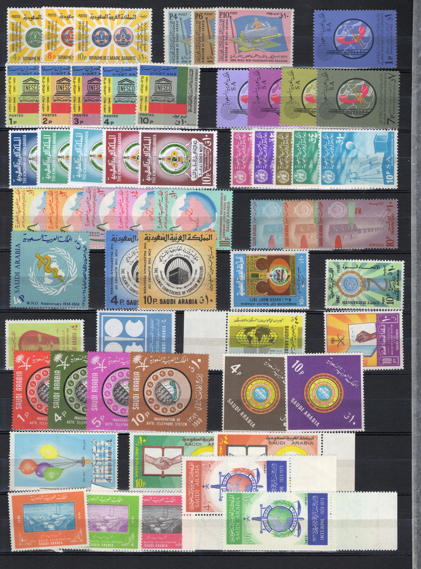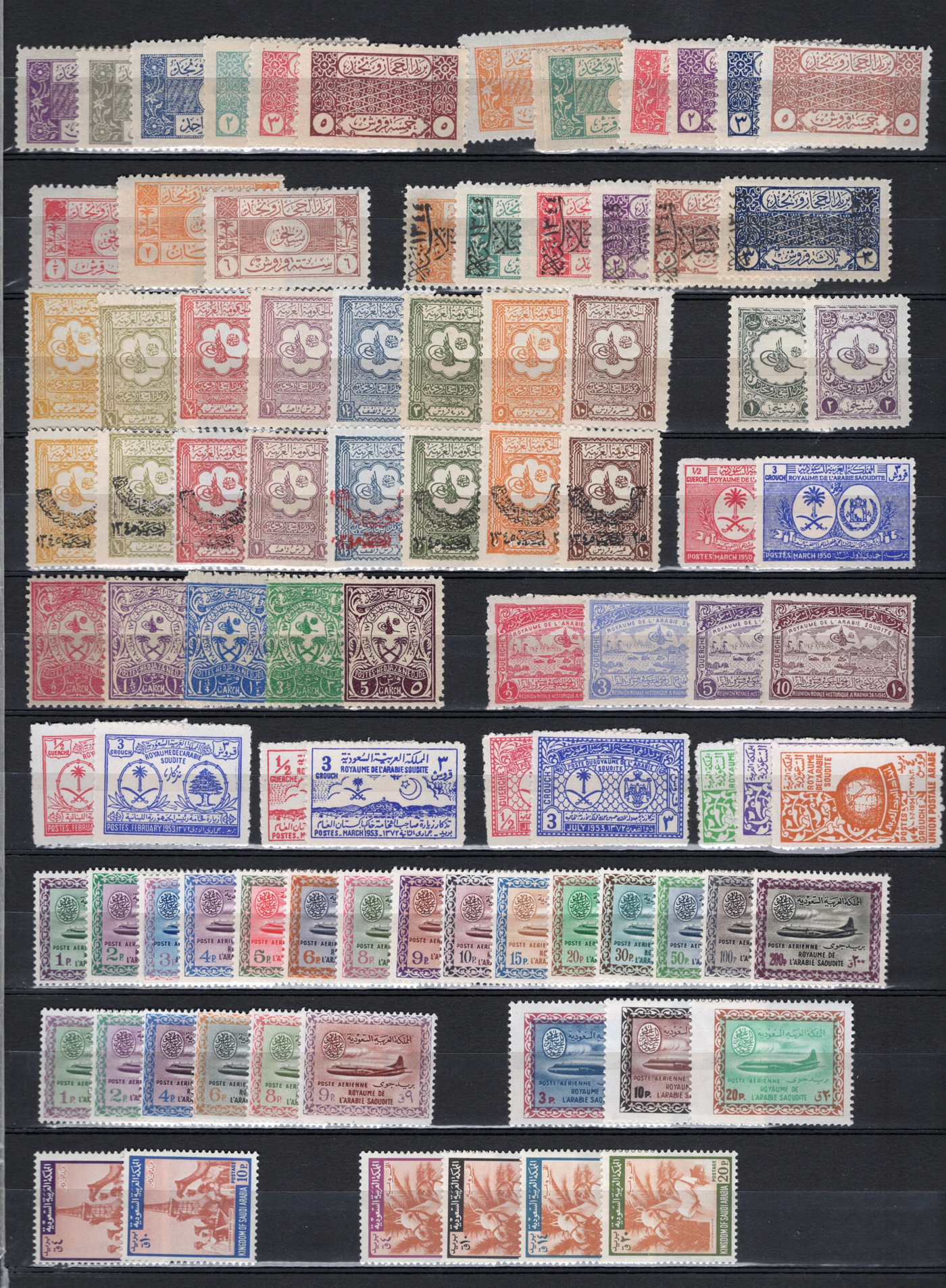 1652 og/nh 69/654 imageCollection of Mint Saudi Arabia, 1926 to 1974, neatly presented on 4 stock pages, with many singles, complete sets and long runs. A few of the early sets are hinged, but most of the collection is never hinged. We noted better sets such as Scott #s 69-74 ($276), 92-97 ($72), 98-105 ($153), 107-114 ($175), 125-129 ($106), 159-172 ($346), 173-176 ($145), 474-483 ($339), 512-516 ($104), C7-C21 ($215), O1-O6 ($253) and more. A nice fresh collection. (Scan 1) (Scan 2) (Scan 3) (Scan 4) (All Scans)