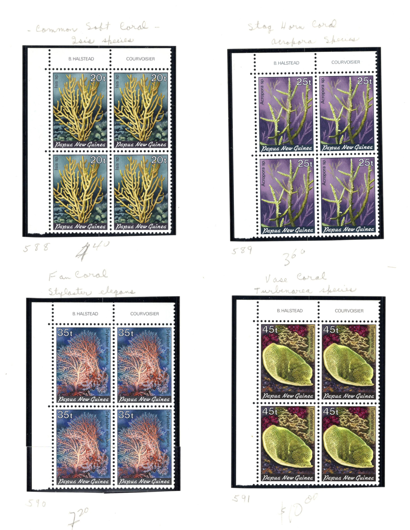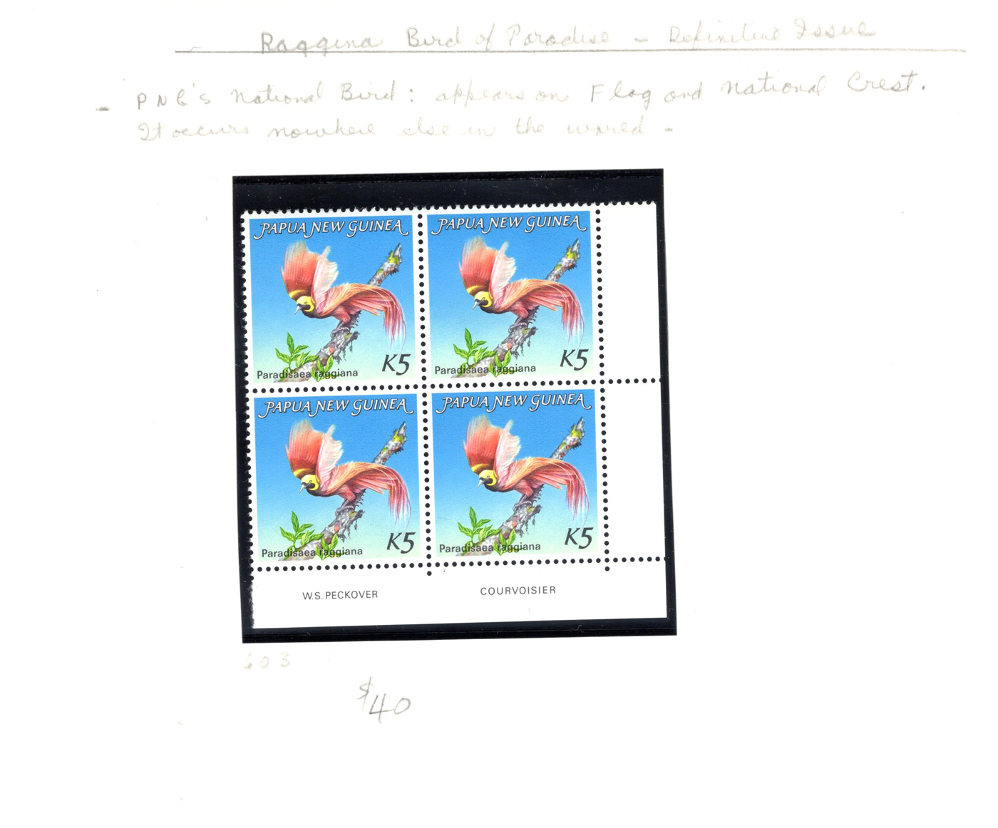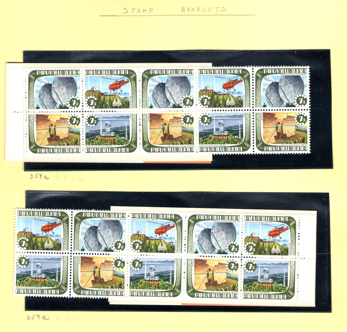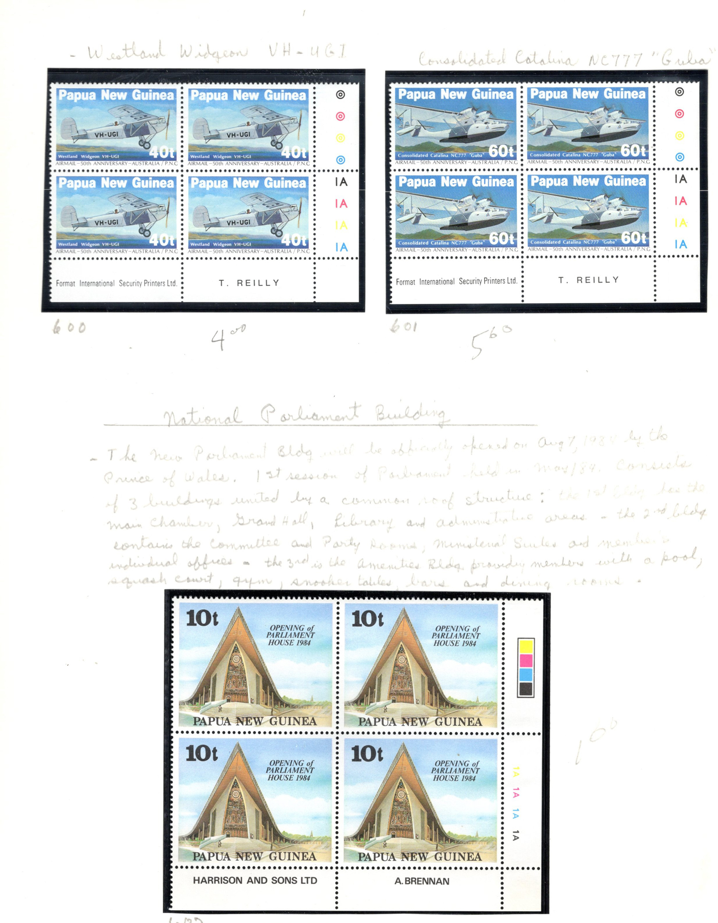 1648 nh   imageCollection of Mint Never Hinged Papua New Guinea, 1973 to 1989, displayed in black mounts on home made pages filling a thick binder. These were purchased as new issues from the PNG Philatelic Bureau (includes 11 envelopes from there with stamps not yet mounted in collection). Appears very close to complete in period, mainly in blocks of four (or larger) or corner plate blocks of four. A fresh and very fine collection, with a 2013 owner's catalogue value of just over U$1,100. Photos are representative. (Scan 1) (Scan 2) (Scan 3) (Scan 4) (Scan 5) (Scan 6) (Scan 7) (All Scans)