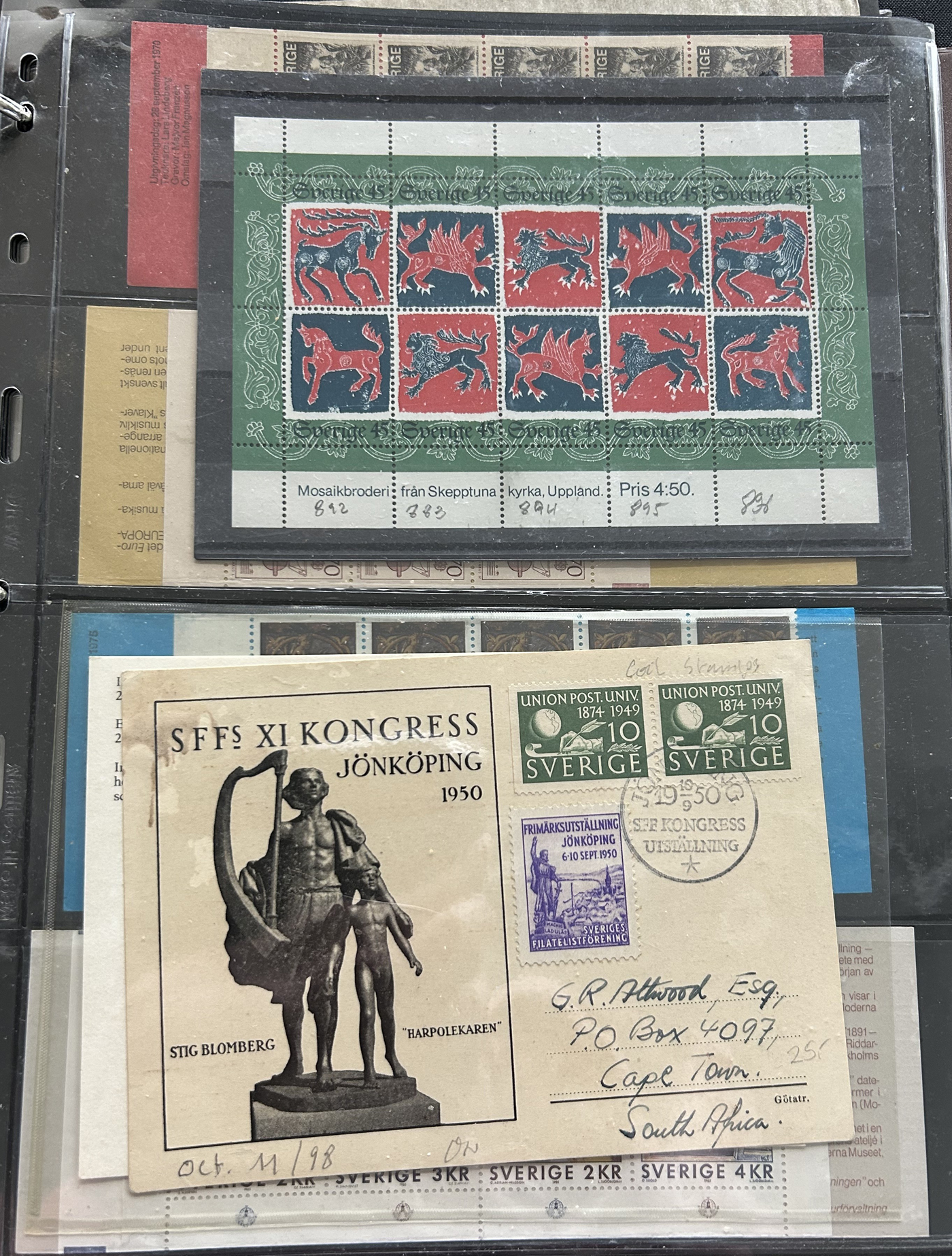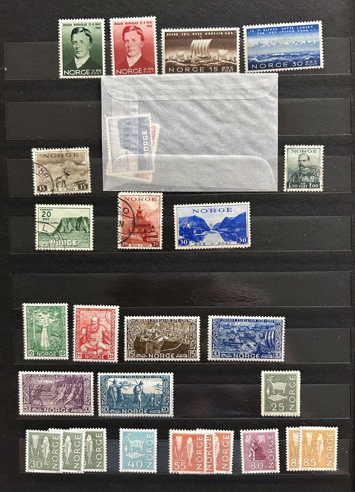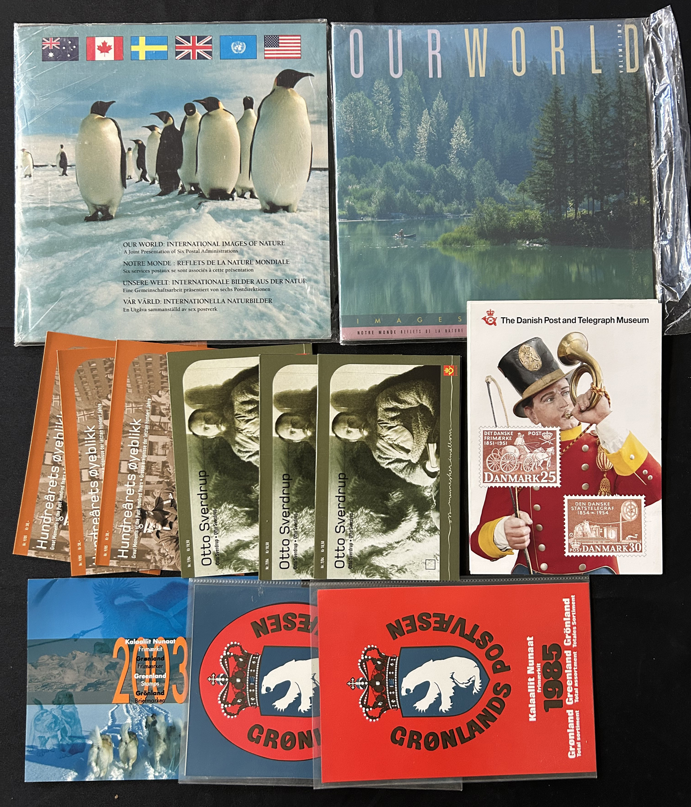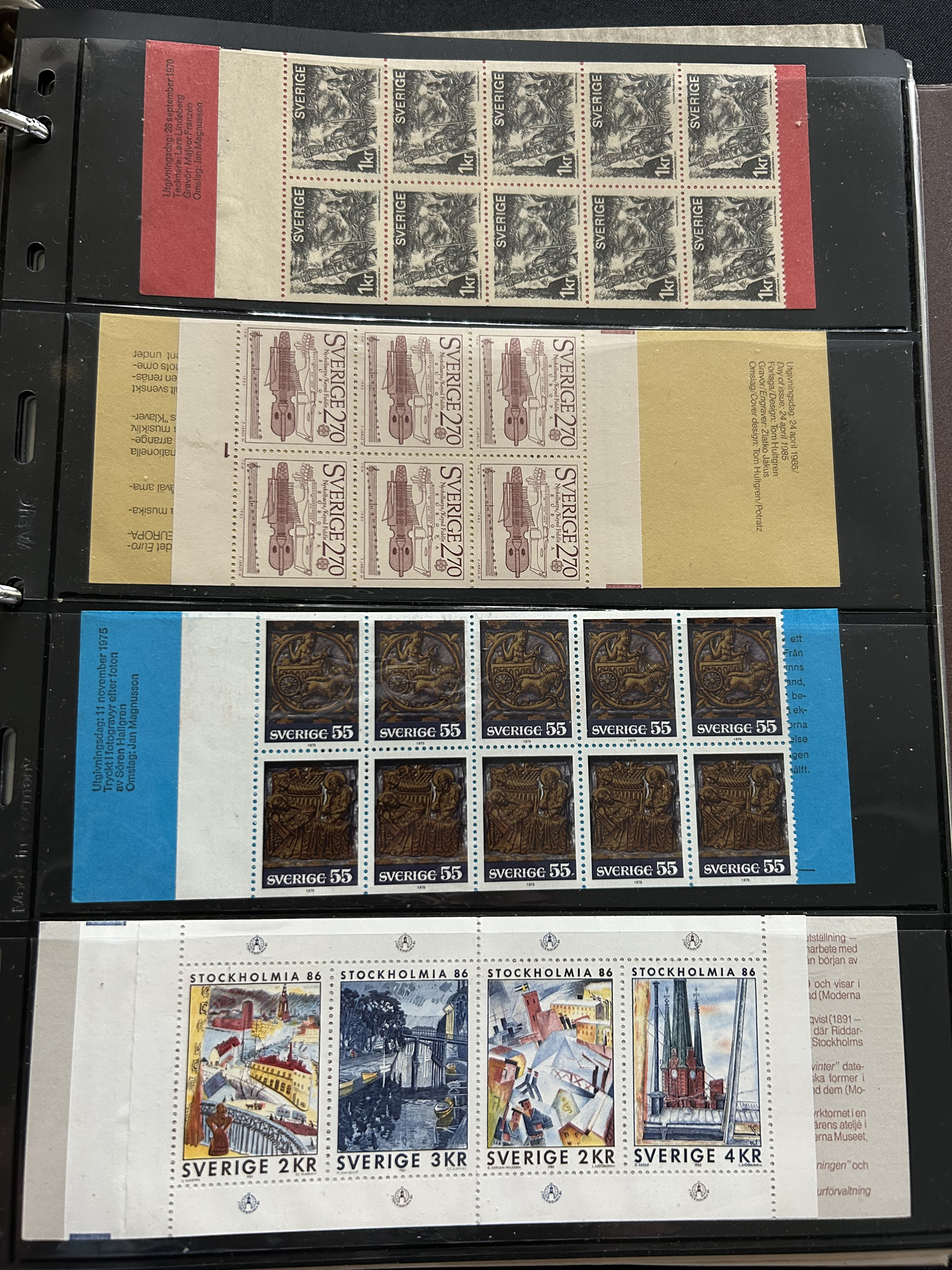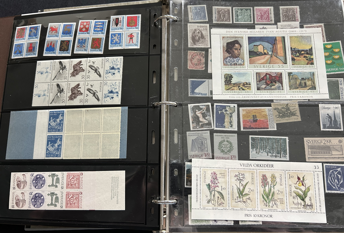 1653 O/og/nh   imageGroup of Scandinavian Country Sets and Collections, with Iceland (group of 7 Leifr Eiricsson souvenir sheets), Denmark (stock page of used 2006-13 with a 2015 c.v. of $116), Norway (photographic proof of #274, glassine with NH #279-89, used B1-B3, 4 stock pages with a nice used run, 6 page stockbook with a mint and used collection), Finland (36 stamps with sail ship cancels), Sweden (binder with 150 mint and used stamp collection, mostly comprising of mint booklets and booklet panes) and Aland (group of NH blocks from 1989-1994 with a 2013 owner's c.v. of $485). Overall fine to very fine. (Scan 1) (Scan 2) (Scan 3) (Scan 4) (Scan 5) (Scan 6) (Scan 7) (Scan 8) (Scan 9) (Scan 10) (All Scans)