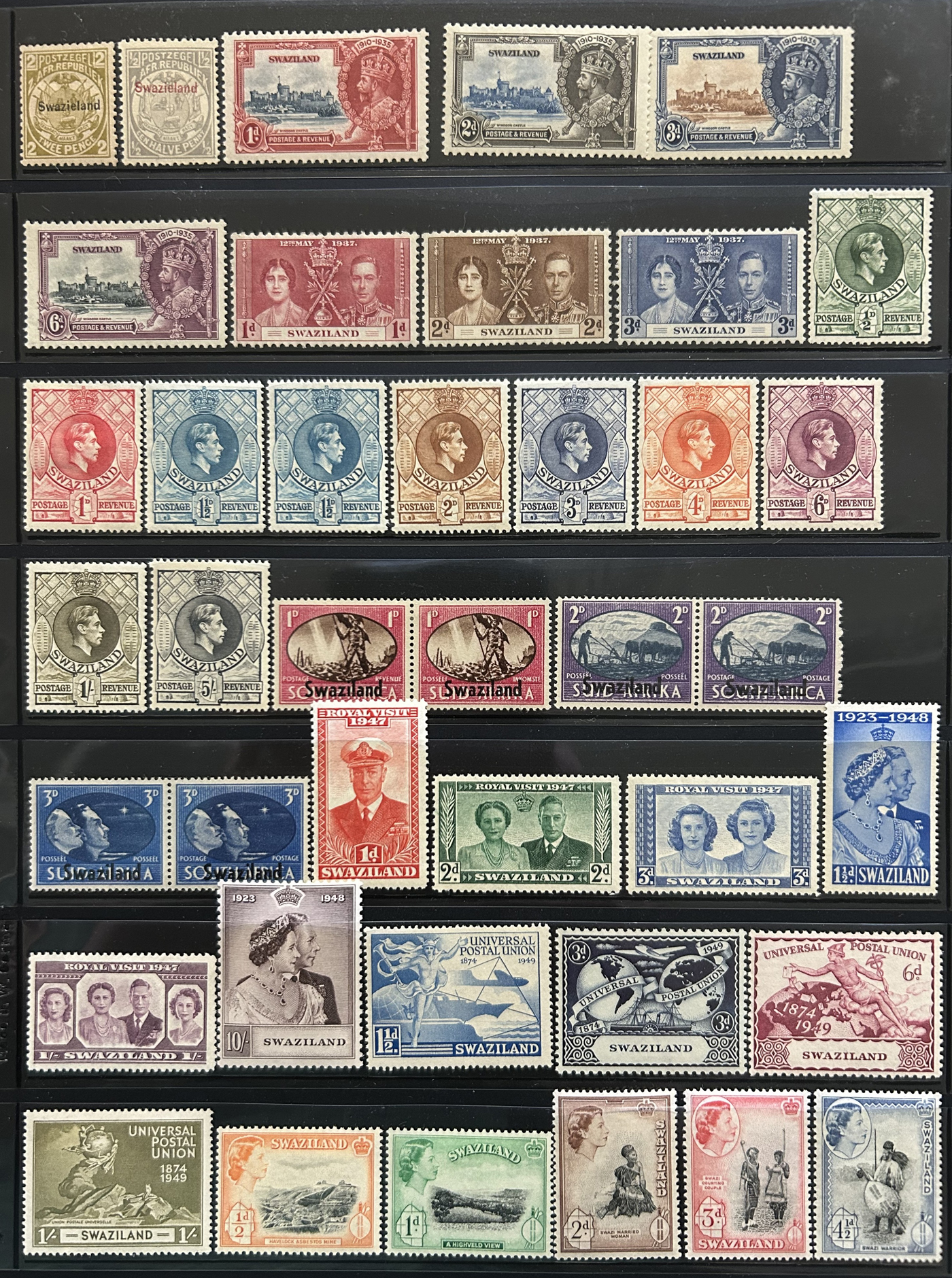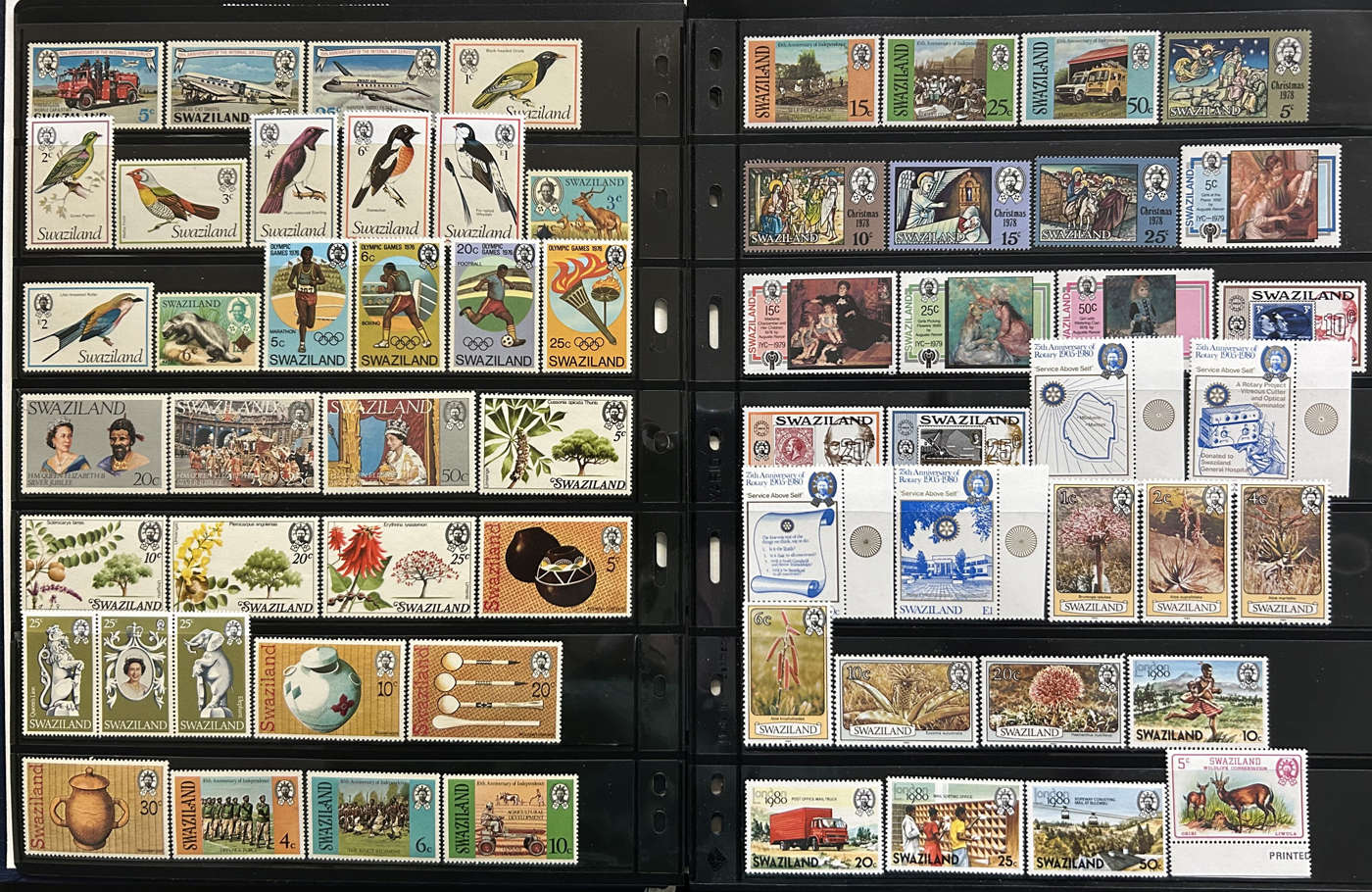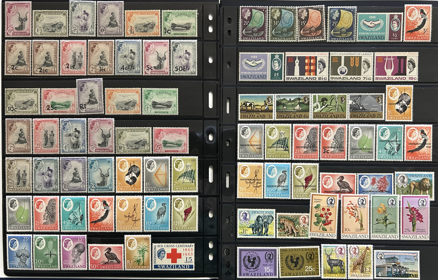 1656 O/og/nh   imageVarious Collections of Southern Africa Countries, with a mint sheet of 60 of Northern Rhodesia #66 ($75), mint sets and part sets of Swaziland ($257) and Southern Rhodesia ($282), a mint collection of Swaziland on 11 stock pages (382-616, J1-J15, Scott 2013 c.v. of $571), a stockbook with 15 pages full of mint and used South West Africa (100s of different stamps 1960s to 1992), a collection of mint and used South Africa on Scott pages, 1910-1950s (the best of which are sets of the 1937-1945 bilingual issues in mint blocks of 4), plus 2 stock sheets of Transvaal, page of Cape of Good Hope early issues and page of Natal King Edward VII issues. Overall fine or better, see pictures for an overview. (Scan 1) (Scan 2) (Scan 3) (Scan 4) (Scan 5) (Scan 6) (Scan 7) (Scan 8) (Scan 9) (Scan 10) (Scan 11) (Scan 12) (All Scans)