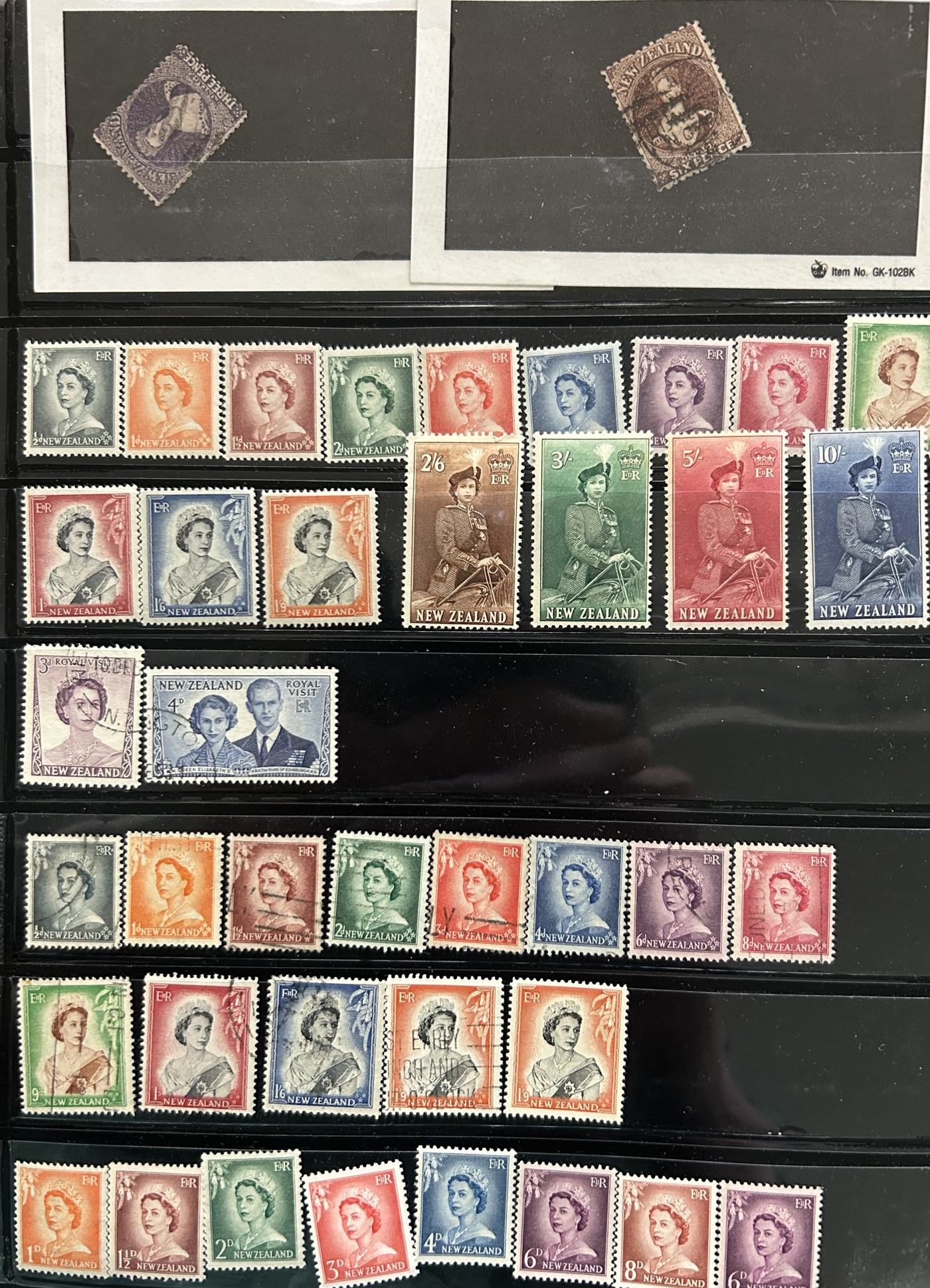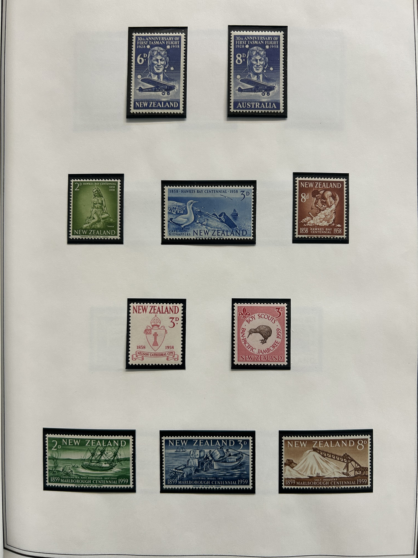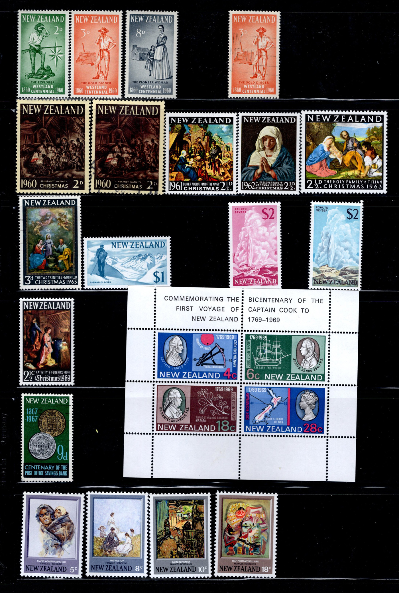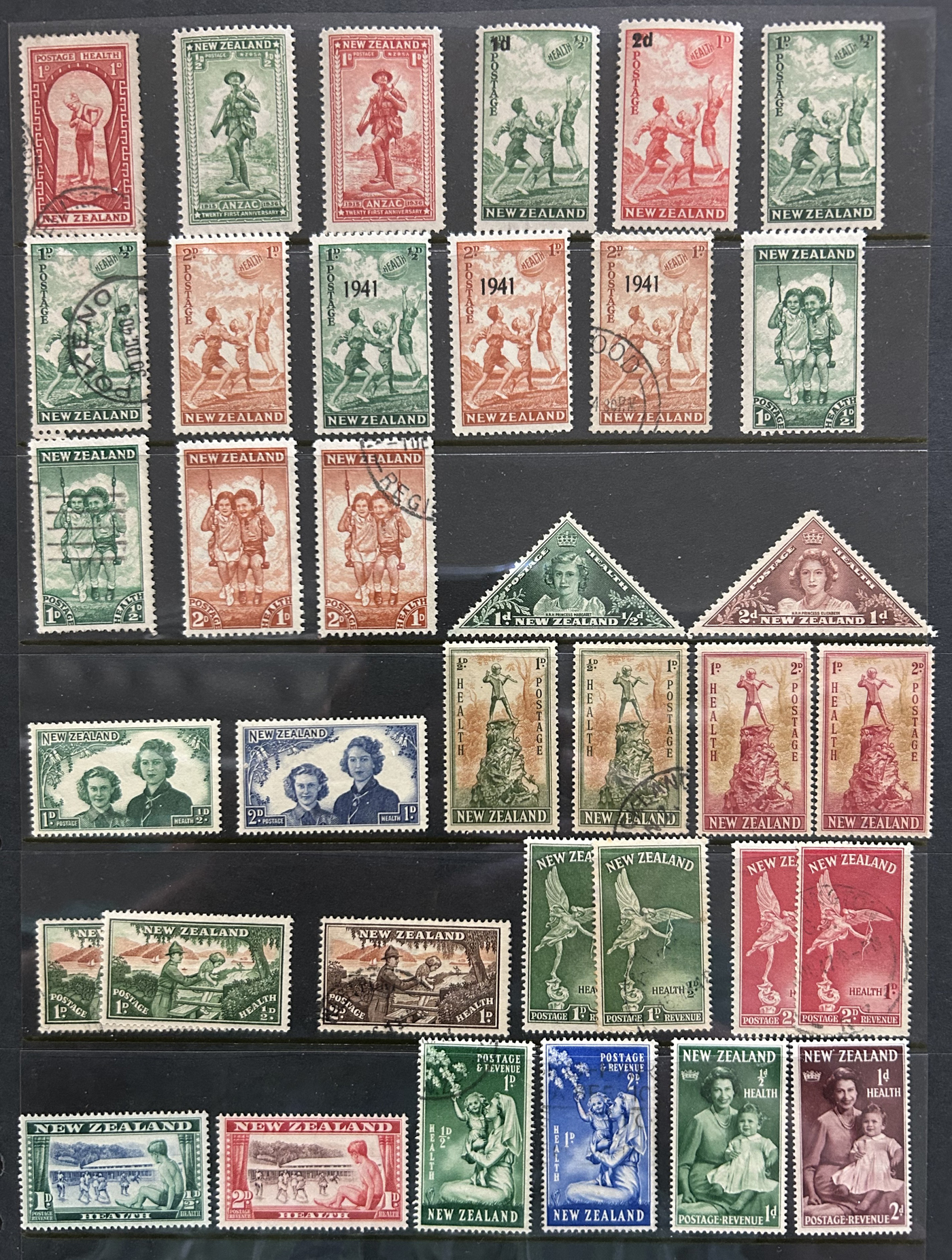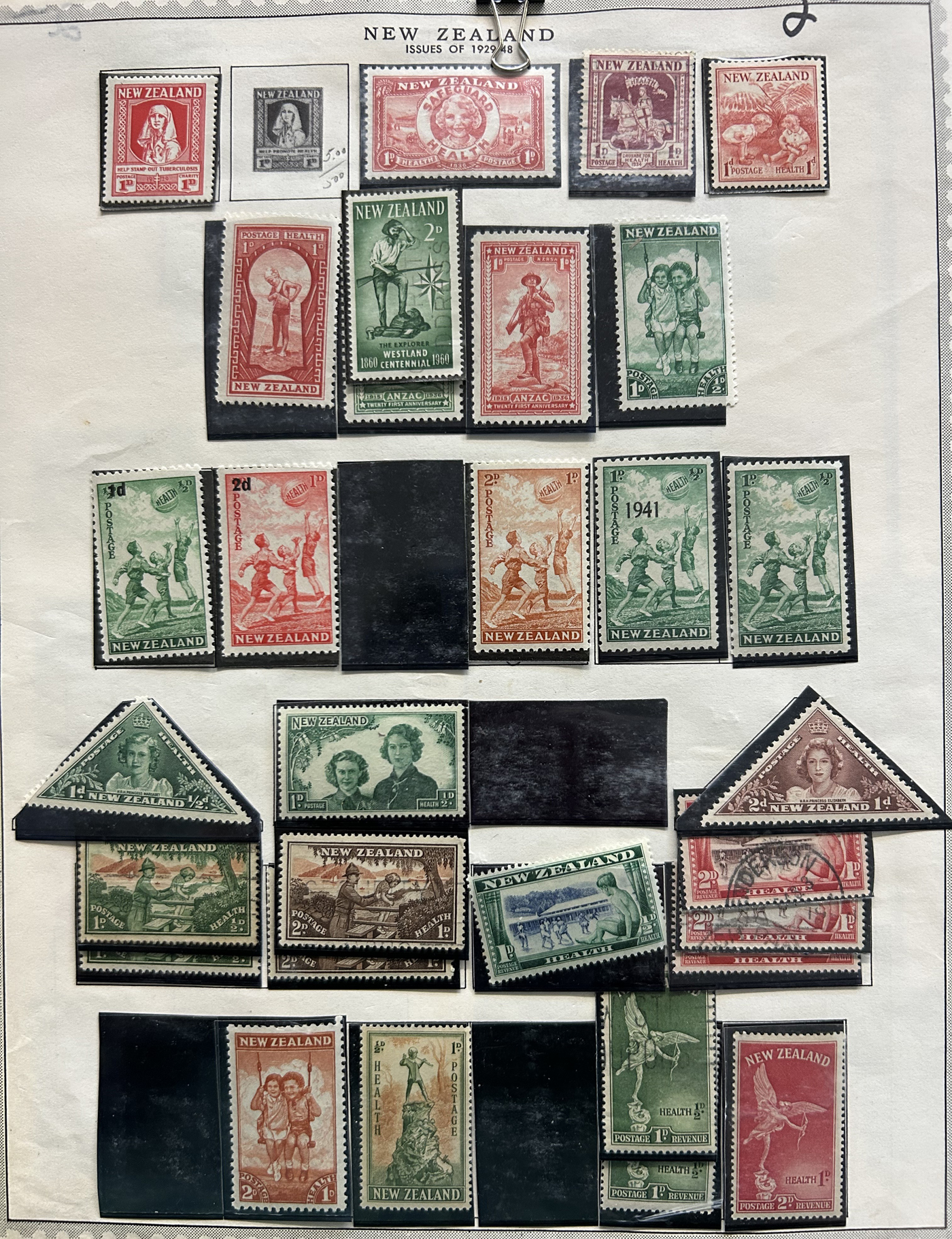 1642 O/og/nh   imageVarious Collections of Mint and Used New Zealand, includes a collection on 8 Minkus pages, a collection on 6 black stock sheets, some used stock in 4 manilla pages, a stockbook containing about 100 stamps, the best being a page of Health issues, a binder containing a mint collection in black mounts which appears close to complete for 1940 to 1988 period. Some sorting required, but all in all a good catalogue value here, and lots of useful material. See pics for a small idea. (Scan 1) (Scan 2) (Scan 3) (Scan 4) (Scan 5) (Scan 6) (Scan 7) (Scan 8) (Scan 9) (Scan 10) (Scan 11) (Scan 12) (Scan 13) (All Scans)