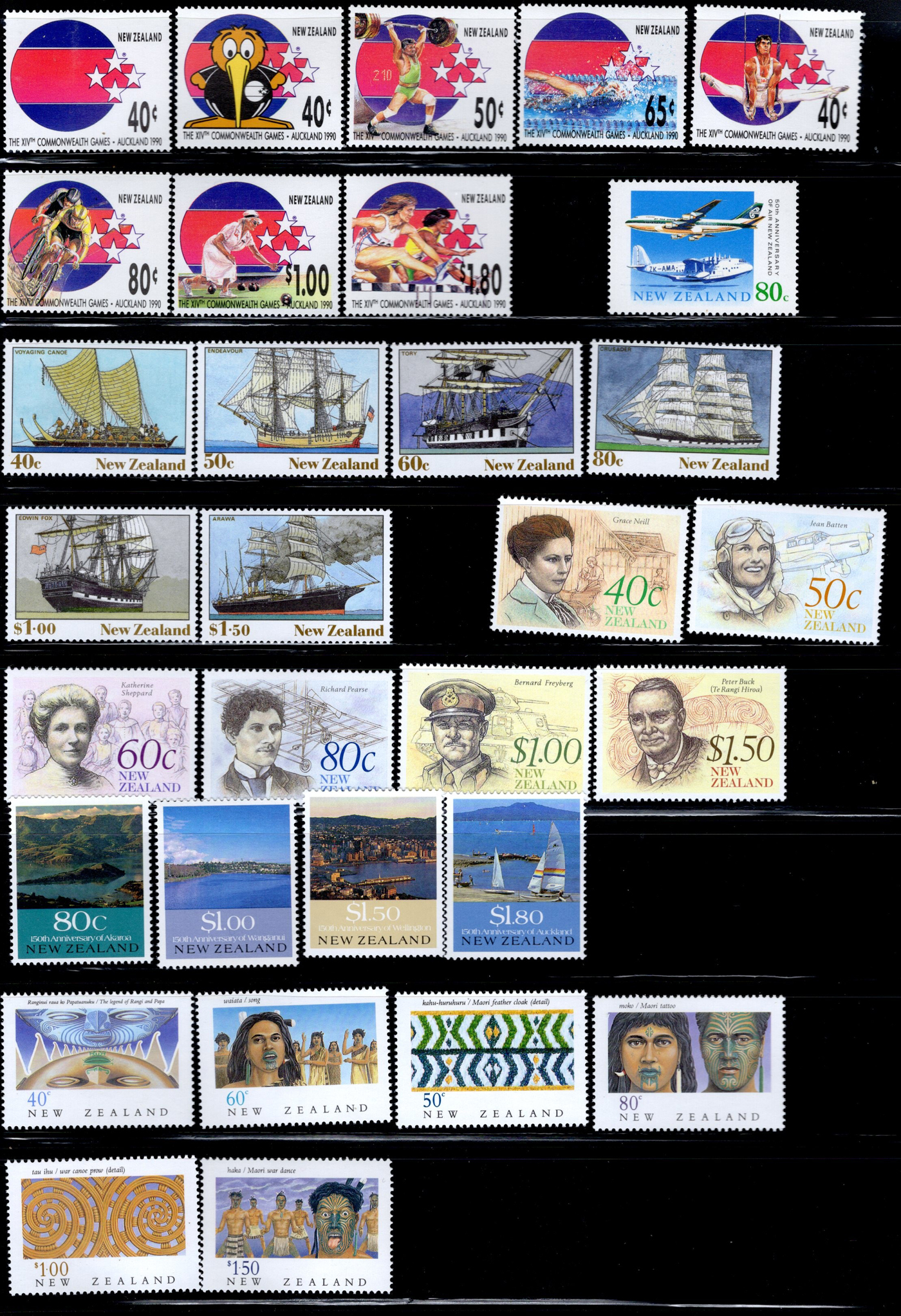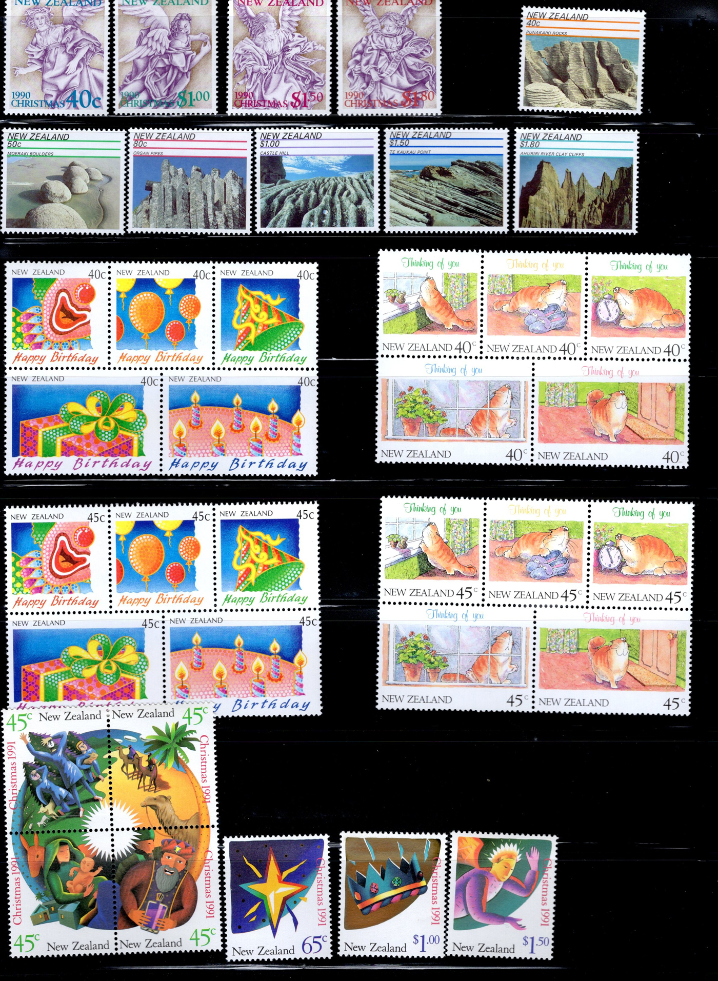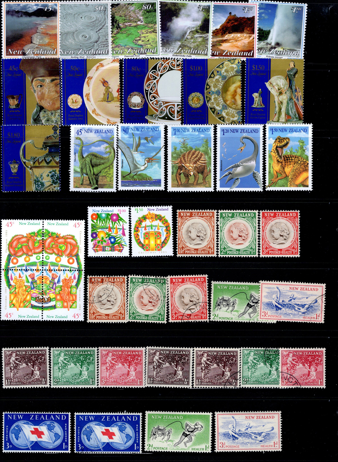 1641 O/og/nh   imageCollection of Mint and Used New Zealand, 1953-1993, filling 30 black stock pages with singles, sets, souvenir sheets, panes including Health issues with both watermarks, etc. Most of the collection is mint never hinged, but does include some hinged as well as some used. A very clean collection, see our representative pictures for an idea. Scott catalogue value given is from 2014. (Scan 1) (Scan 2) (Scan 3) (Scan 4) (Scan 5) (Scan 6) (Scan 7) (Scan 8) (Scan 9) (Scan 10) (All Scans)