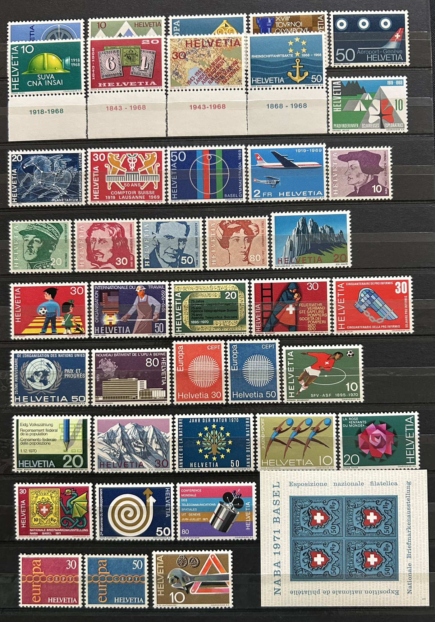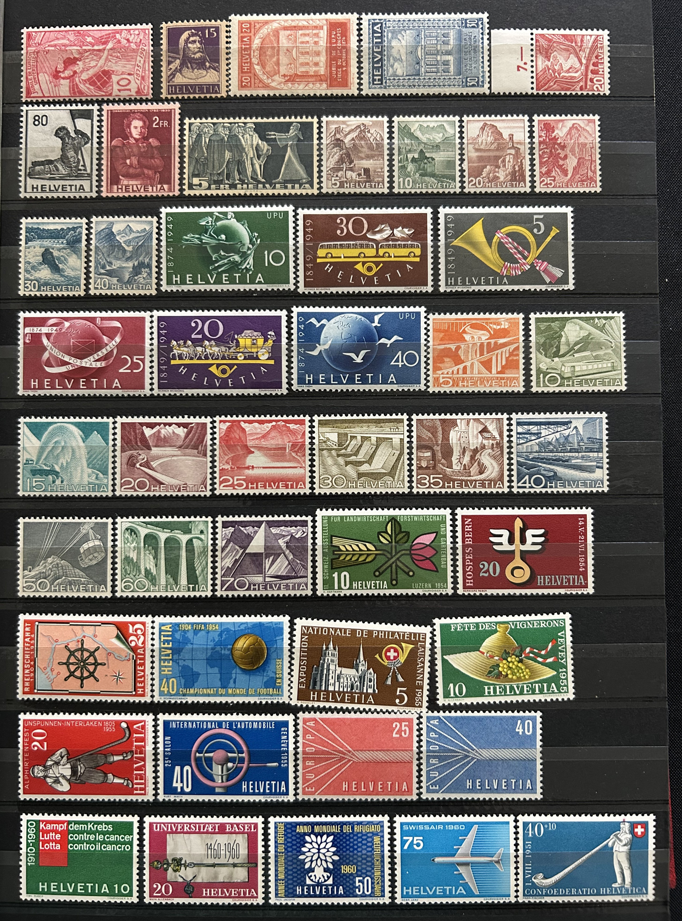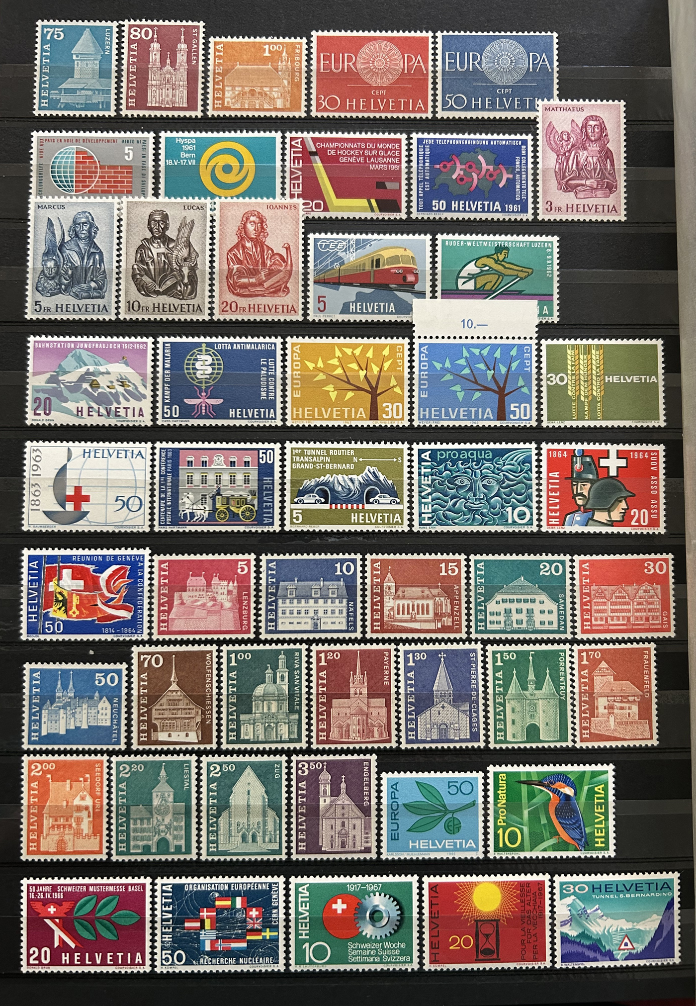 1659 nh 102/1299, B1/B606 imageCollection of Mint Never Hinged Switzerland, 1924 to 2004, filling 18 pages of a stockbook, with regular issues first, followed by Semi-Postals. Lots of long complete runs throughout, as evidenced by the accompanying inventory, which shows Scott catalogue values from 2013 and lists stamps as #s 102/1299, B1/B606, C9/C46 and 3O94/12O2. A fresh and mostly very fine collection. Photos are representative. (Scan 1) (Scan 2) (Scan 3) (Scan 4) (Scan 5) (Scan 6) (Scan 7) (Scan 8) (All Scans)