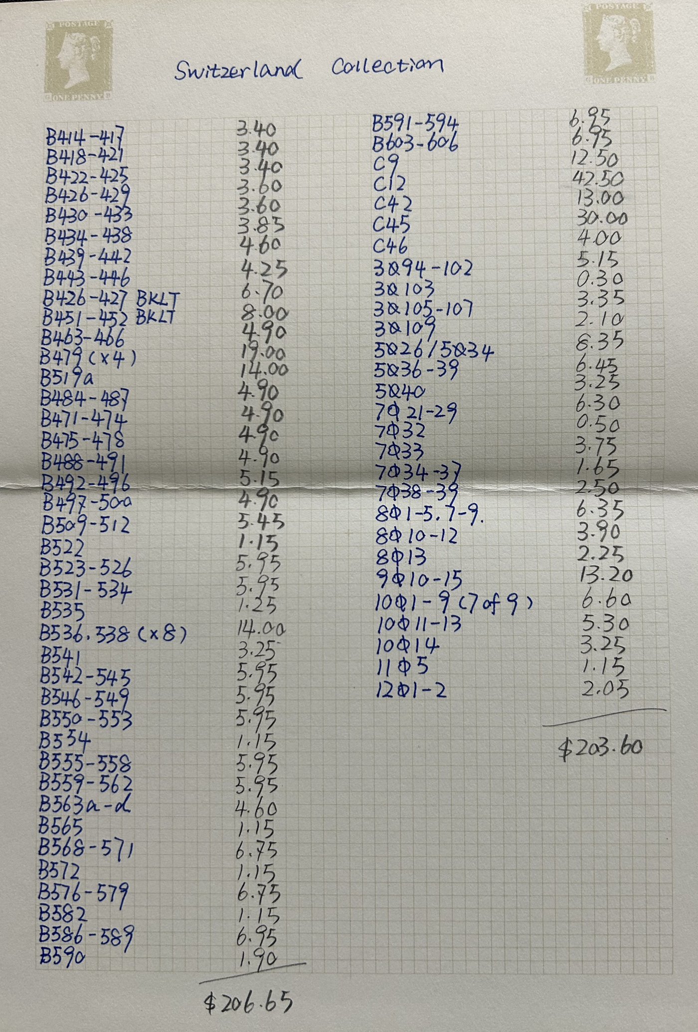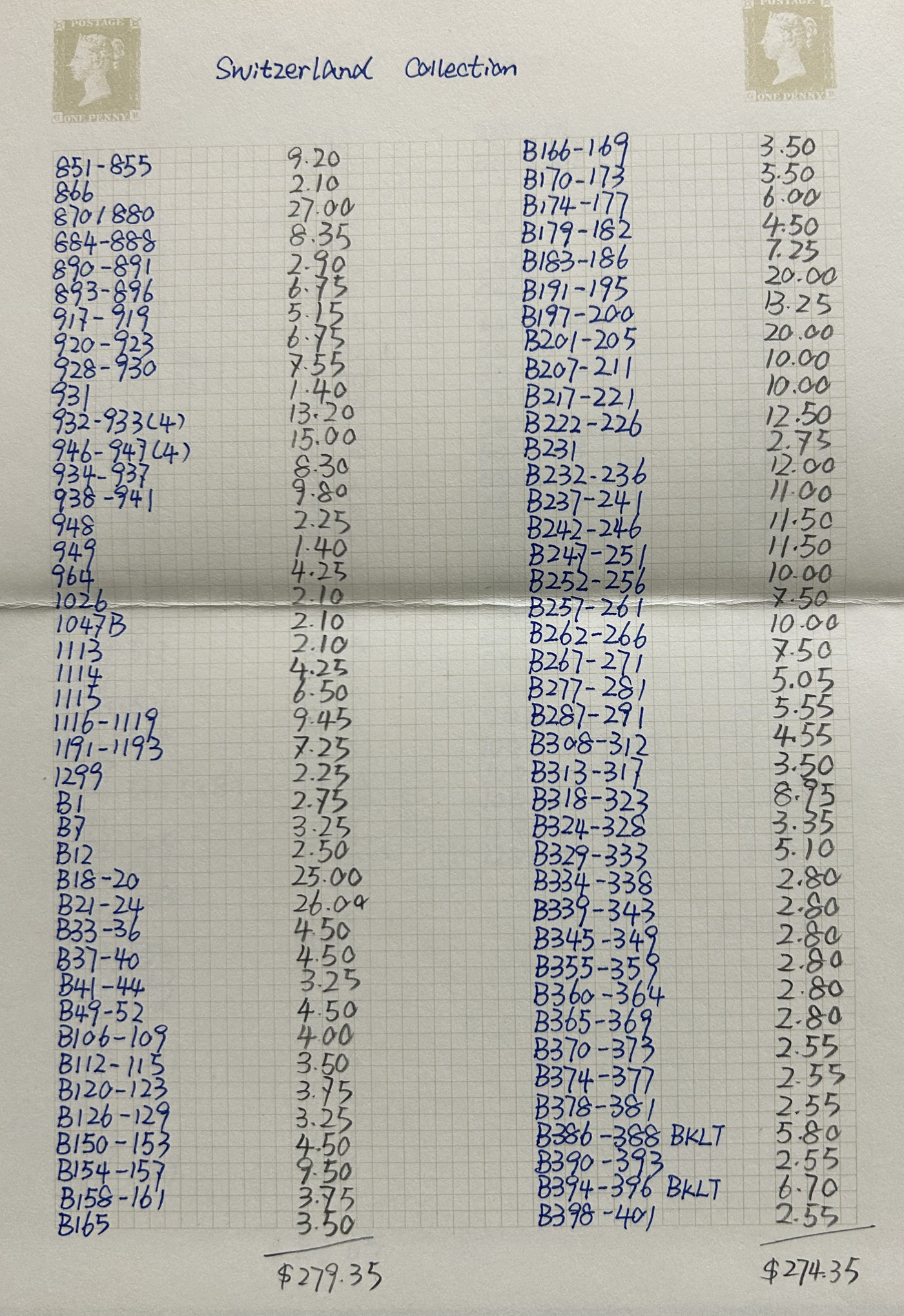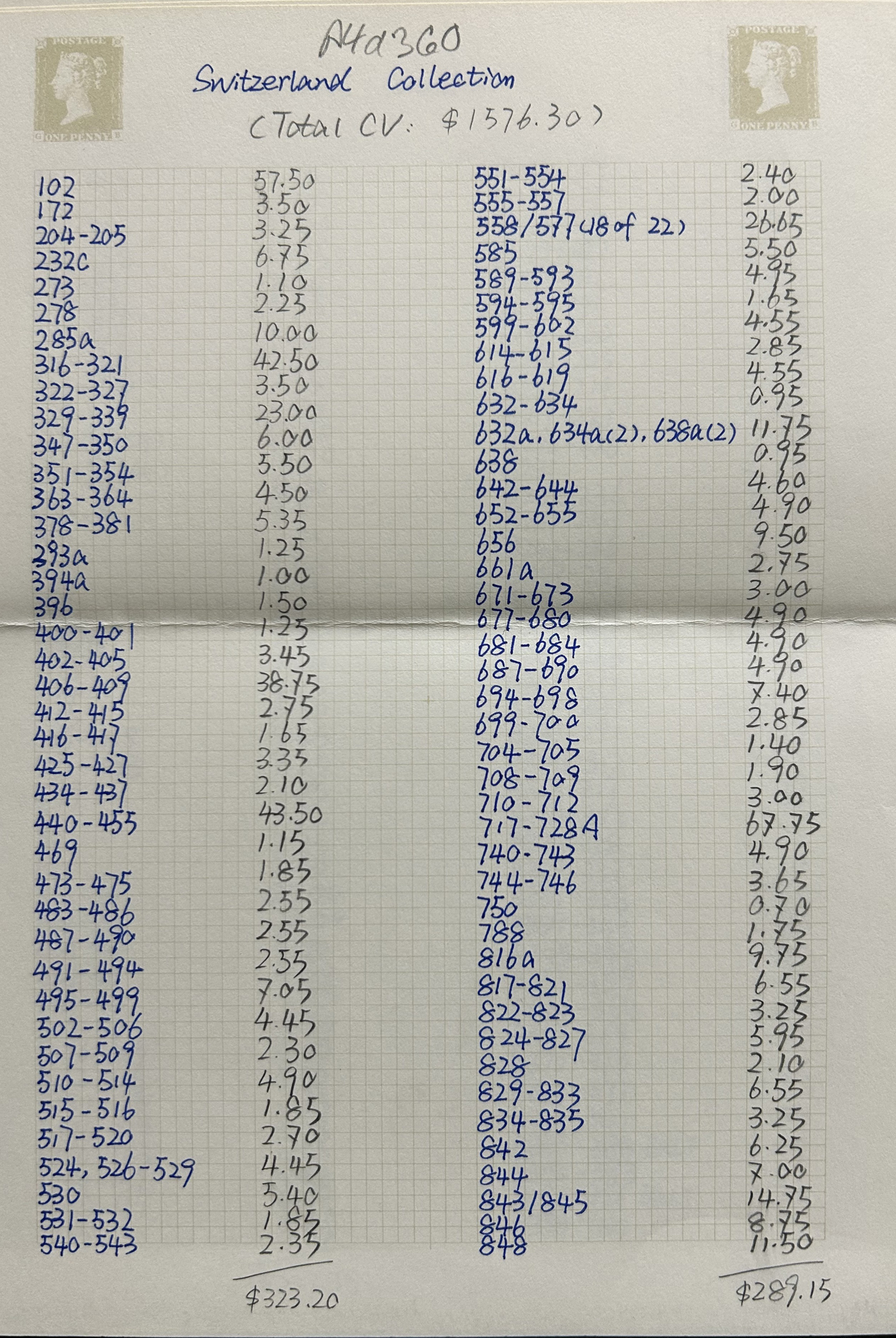 1659 nh 102/1299, B1/B606 imageCollection of Mint Never Hinged Switzerland, 1924 to 2004, filling 18 pages of a stockbook, with regular issues first, followed by Semi-Postals. Lots of long complete runs throughout, as evidenced by the accompanying inventory, which shows Scott catalogue values from 2013 and lists stamps as #s 102/1299, B1/B606, C9/C46 and 3O94/12O2. A fresh and mostly very fine collection. Photos are representative. (Scan 1) (Scan 2) (Scan 3) (Scan 4) (Scan 5) (Scan 6) (Scan 7) (Scan 8) (All Scans)