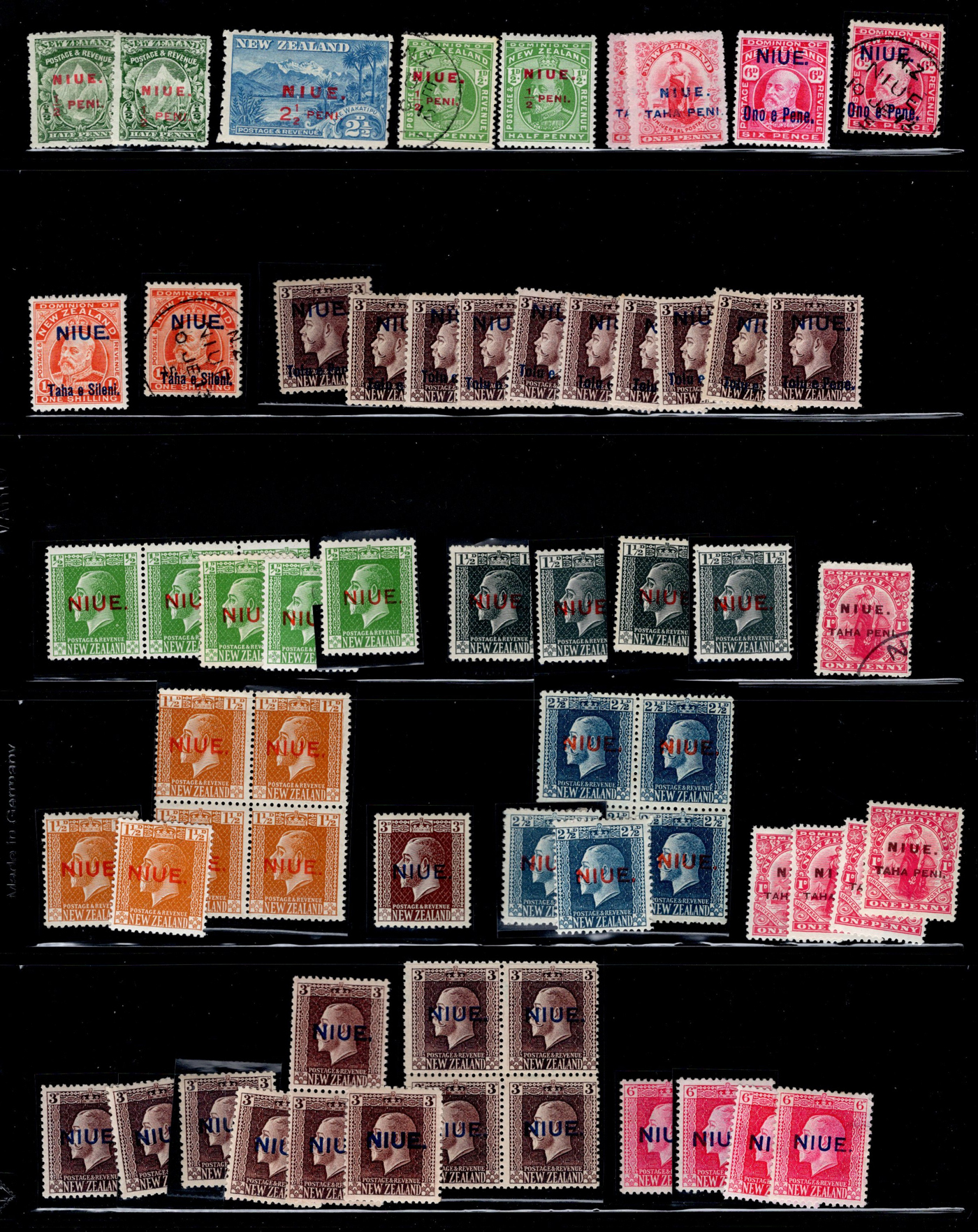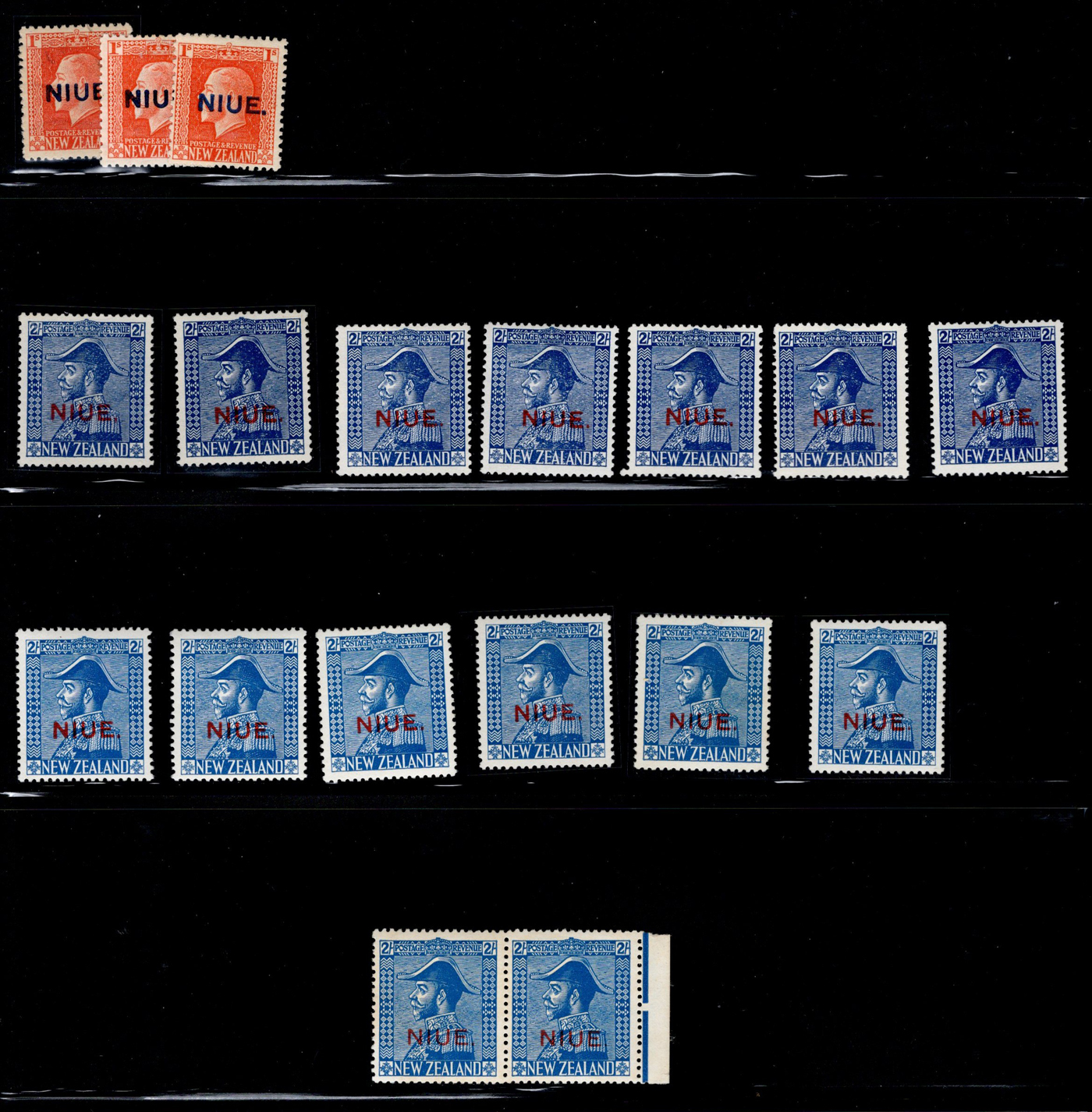 1645 og 18/47a imageMostly Mint Accumulation of New Zealand Stamps Overprinted “Niue”, includes better such as #16 (used) and 10 mint copies of #20, a few “2-perf pairs” plus lots of 2sh “Admirals” in both shades. Hinged, with only the occasional minor fault to be expected, fine to very fine overall. (Scan 1) (Scan 2) (All Scans)