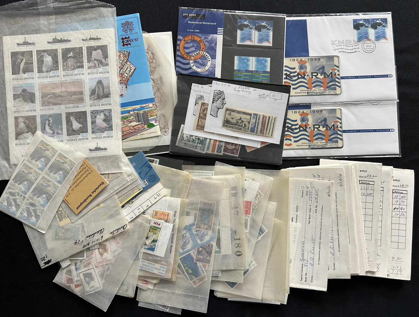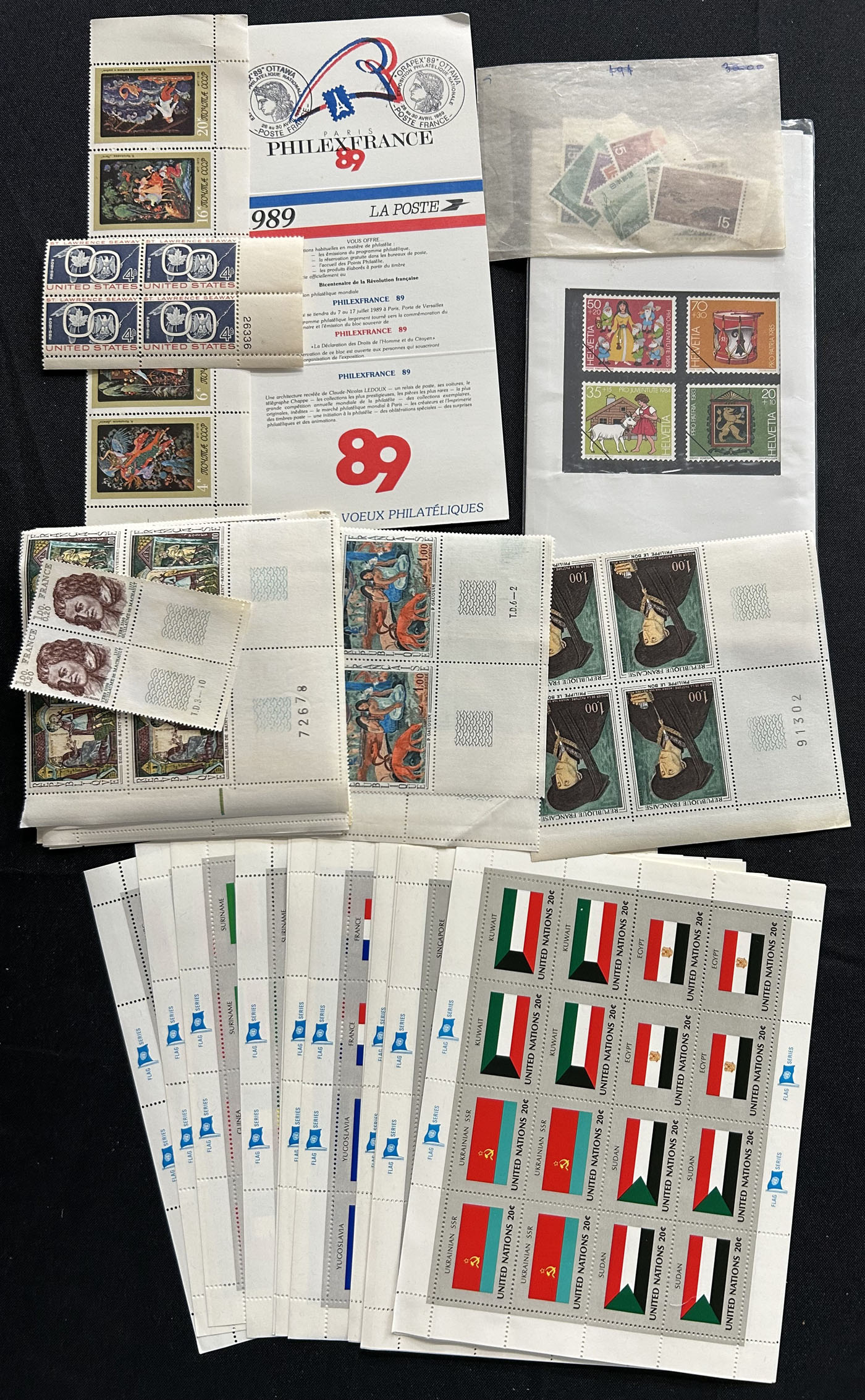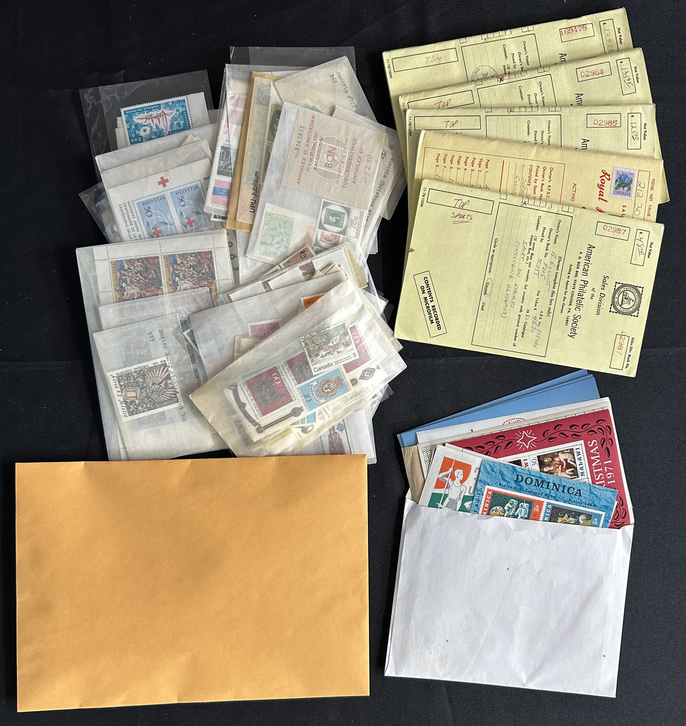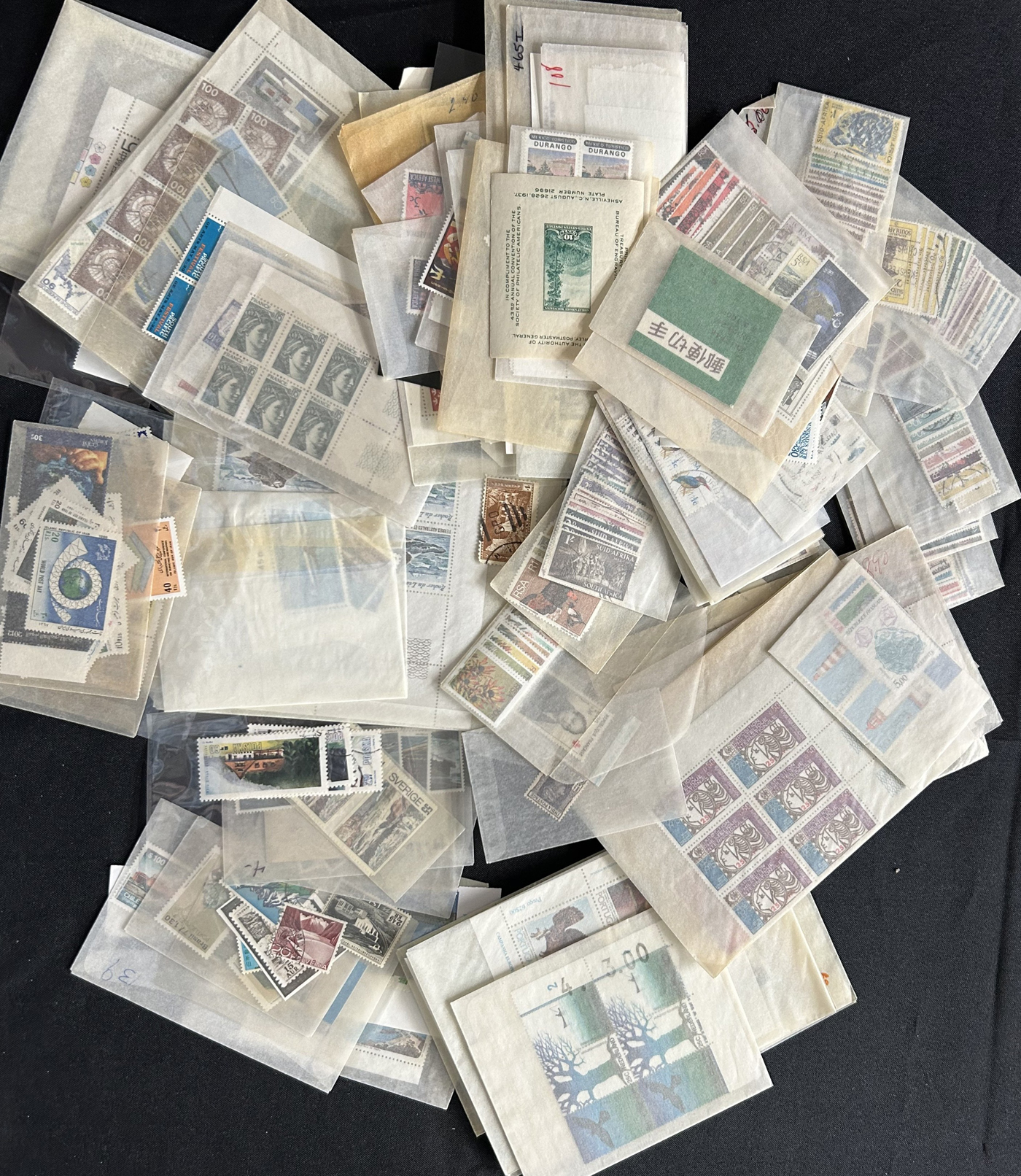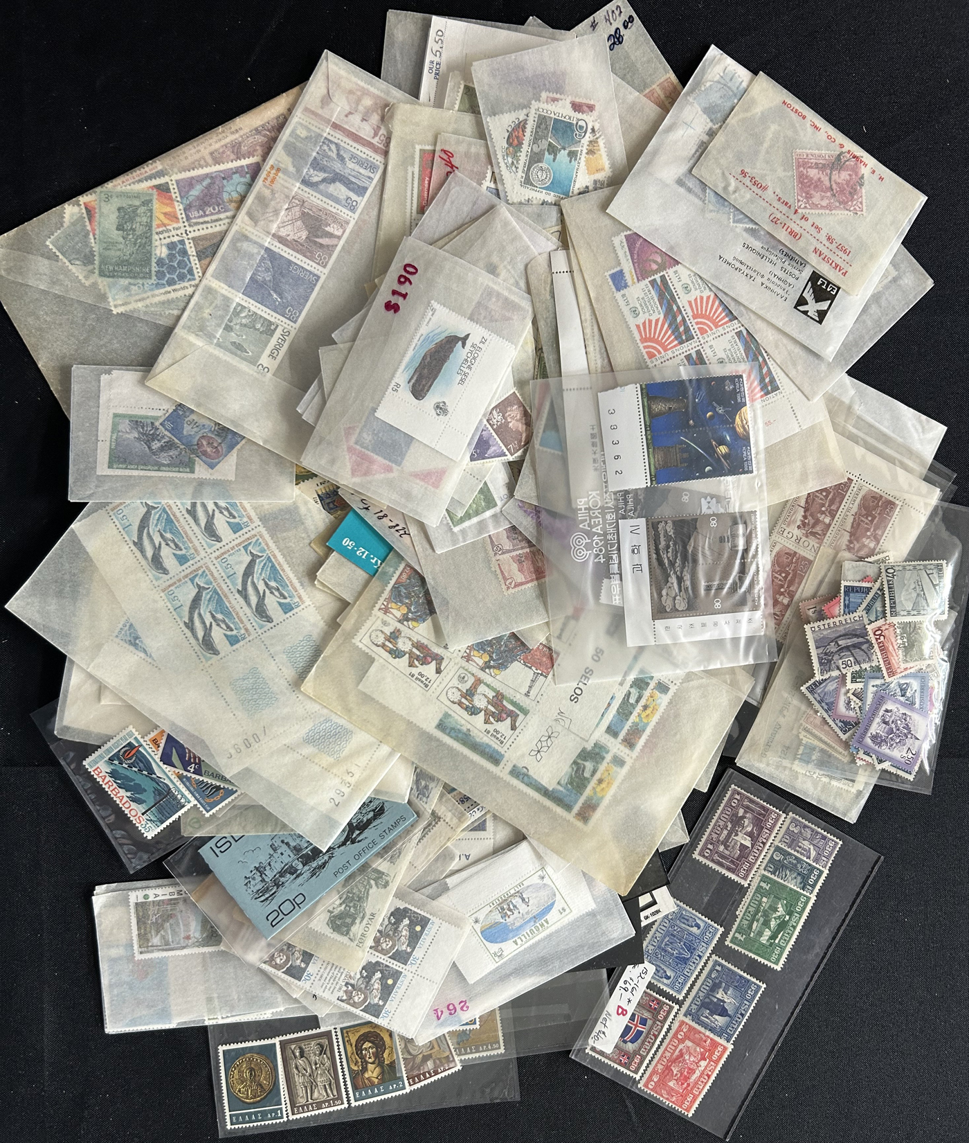 1682 O/og/nh   imageBox Filled with Hundreds of Worldwide Sets, Singles, etc. mostly in glassines, with a very wide representation of different countries (not much British Commonwealth - offered separately), with singles, sets, some souvenir sheets, booklets, blocks and multiples, approval books, some unsorted mixes, etc. Overall good condition, with many better sets throughout. Our 4 photographs show the entirety of the lot. (Scan 1) (Scan 2) (Scan 3) (Scan 4) (All Scans)