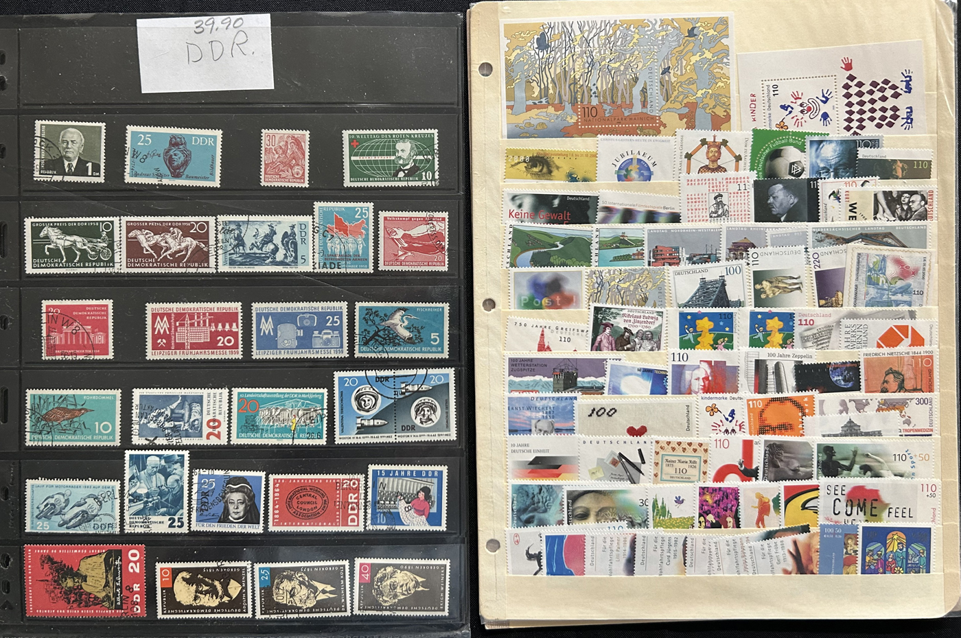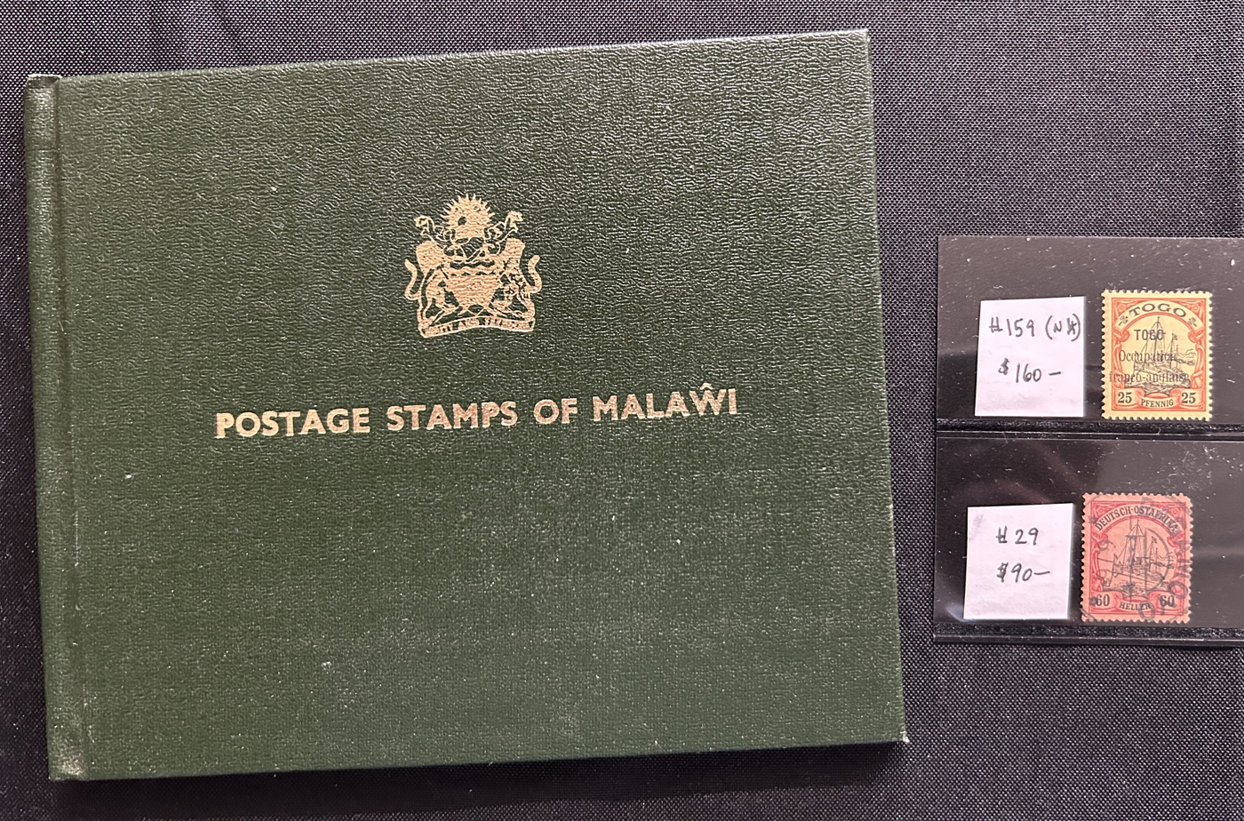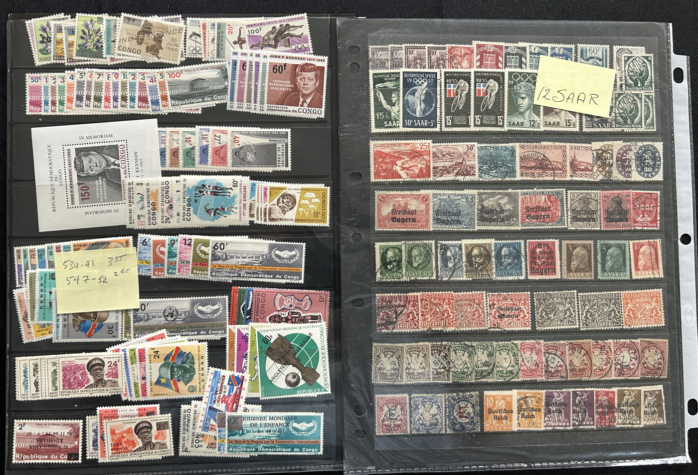 1683 O/og/nh   imageLarge Holding of Valuable Worldwide Material Filling a Banker's Box, an album contains 32 NH United States sheetlets or souvenir sheets (2005-2008, U$235 face value), a small box full of USA mint blocks from the 1940s to 1960s, a Togo #159 (NH, $160), a German East Africa #9 (used, $90), an envelope full and a stock sheet of modern NH Germany, 8 stock pages of mint and used Germany and DDR, 2 stock pages of mint and used Saar and Bavaria, a page with 15 early Greece (c.v. of 110 but collected for better postmarks), a 15 page stockbook filled with mint and used Switzerland (to the 1990s), 4 stock sheets crammed full of mint Democratic Republic of Congo, People's Republic of Congo (2013 Scott c.v. of $853), a 1988 presentation folder from Malawi with 4 NH sets, an album filled with many hundreds of mint and used stamps (1940s to 2000s) mounted by topic, a collection of interesting air mail-related cinderella labels on 10 pages, a collection of southern African countries on over 100 album pages, 5 stockbooks with thousands of mint and used stamps from all over the world, with sets, souvenir sheets, etc., a Lesotho 1988-89 NH collection (older c.v. of $77), a collection of stamps of the world cancelled at CAPEX 78 by each post office, and a few other items. Overall good quality. Pictures show a small overview. (Scan 1) (Scan 2) (Scan 3) (Scan 4) (Scan 5) (Scan 6) (Scan 7) (Scan 8) (Scan 9) (Scan 10) (Scan 11) (Scan 12) (Scan 13) (Scan 14) (Scan 15) (Scan 16) (Scan 17) (Scan 18) (Scan 19) (Scan 20) (All Scans)