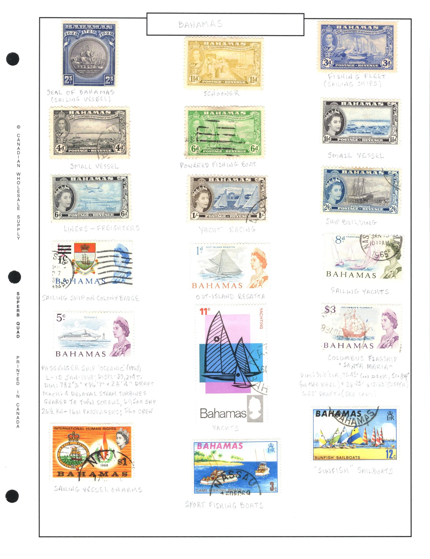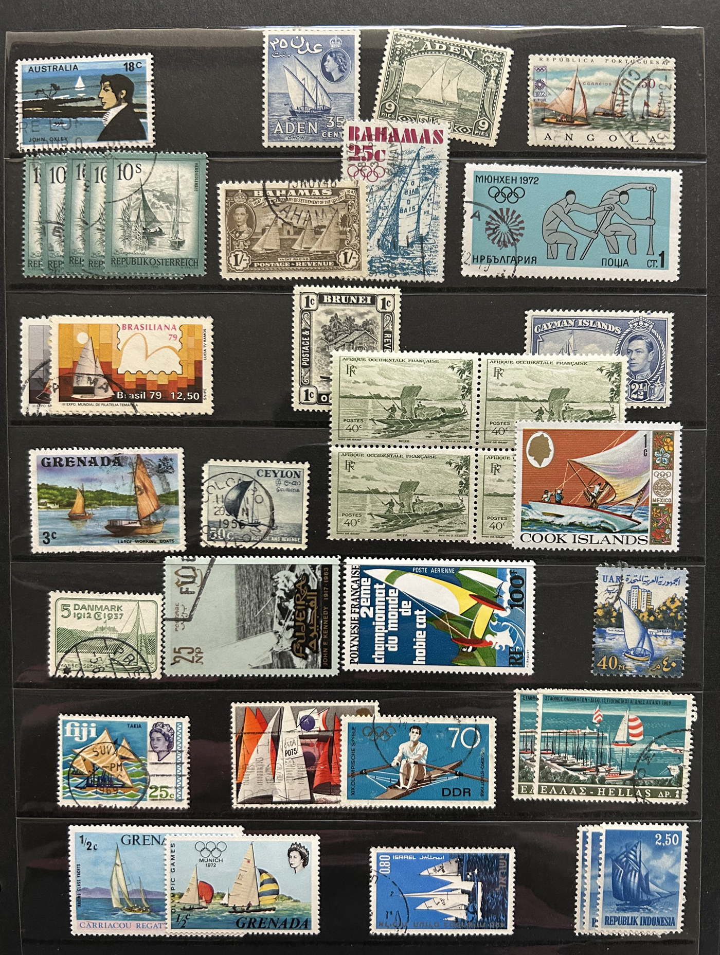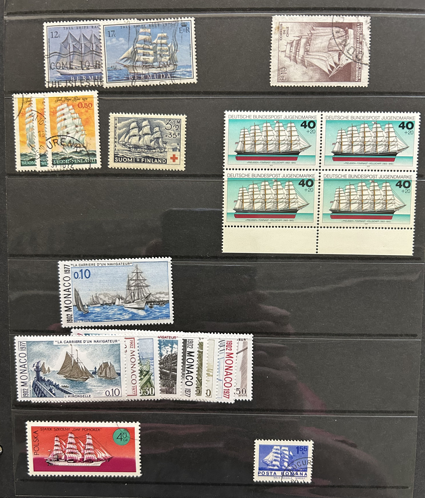 1688 O/og   imageLarge Collection of Ships on Stamps Topical, consisting of three distinct collections: the first is a specialized "Survival and Rescue from the Water" on about 45 special pages with lots of additional write-ups, etc., with hundreds of fund-raising labels, carriage stamps and other cinderella-type of stamps (singles, sets, sheetlets, souvenir sheets). The second is in an old-time (1948) "Ships on Stamps" special album containing perhaps half of the used stamps proposed by the album, all arranged by country (noted a VFLH Canada 50c Bluenose). The third is a lifetime collection containing thousands of mint and used stamps neatly mounted on pages filling two thick binders, all arranged by country, noting several better sets from a great variety of different countries. A wonderful offering, see pictures for a very small representative peek from each collection. (Scan 1) (Scan 2) (Scan 3) (Scan 4) (Scan 5) (Scan 6) (Scan 7) (Scan 8) (Scan 9) (Scan 10) (Scan 11) (Scan 12) (Scan 13) (Scan 14) (Scan 15) (Scan 16) (Scan 17) (Scan 18) (Scan 19) (Scan 20) (Scan 21) (Scan 22) (Scan 23) (Scan 24) (Scan 25) (Scan 26) (Scan 27) (Scan 28) (All Scans)