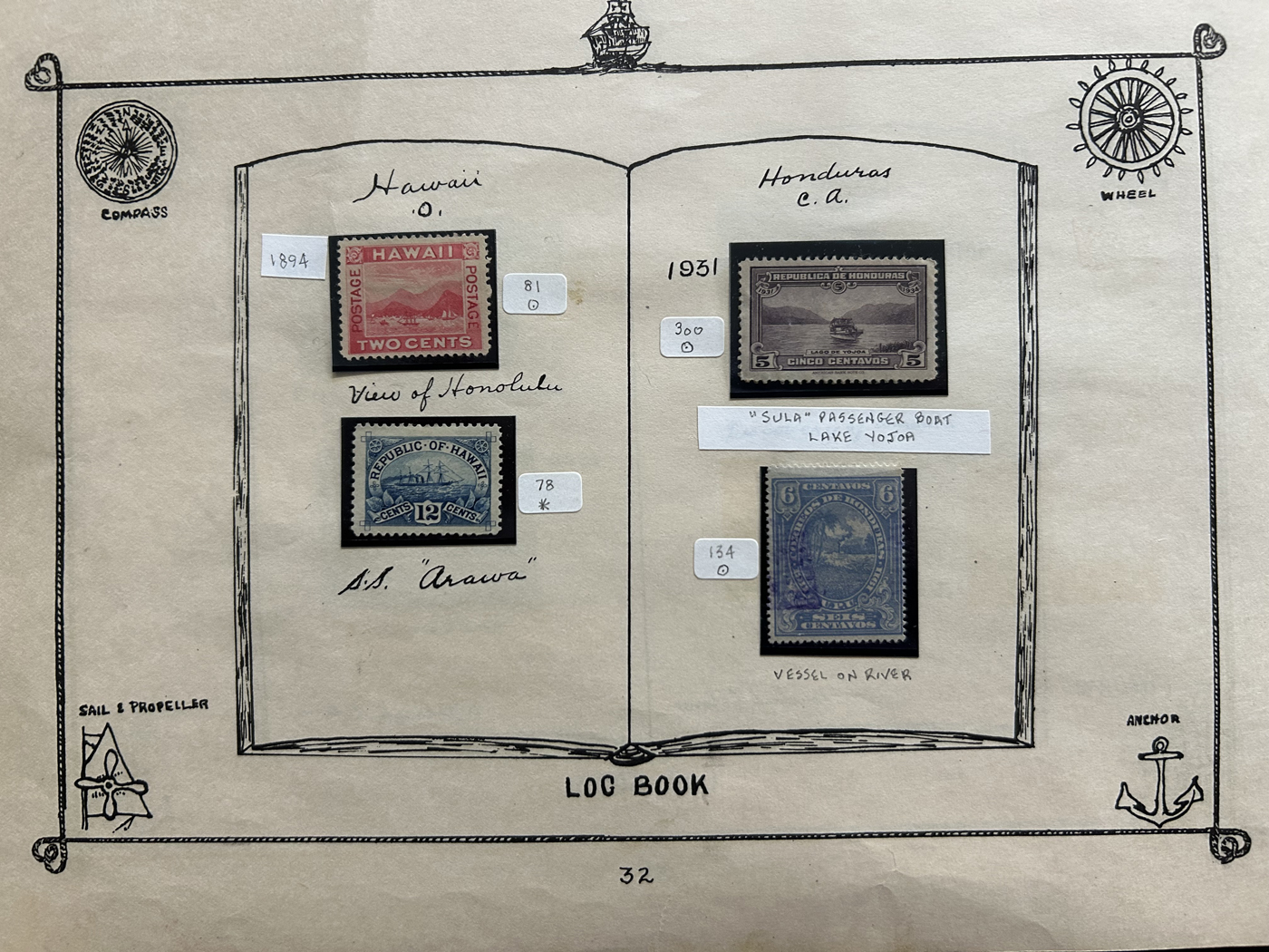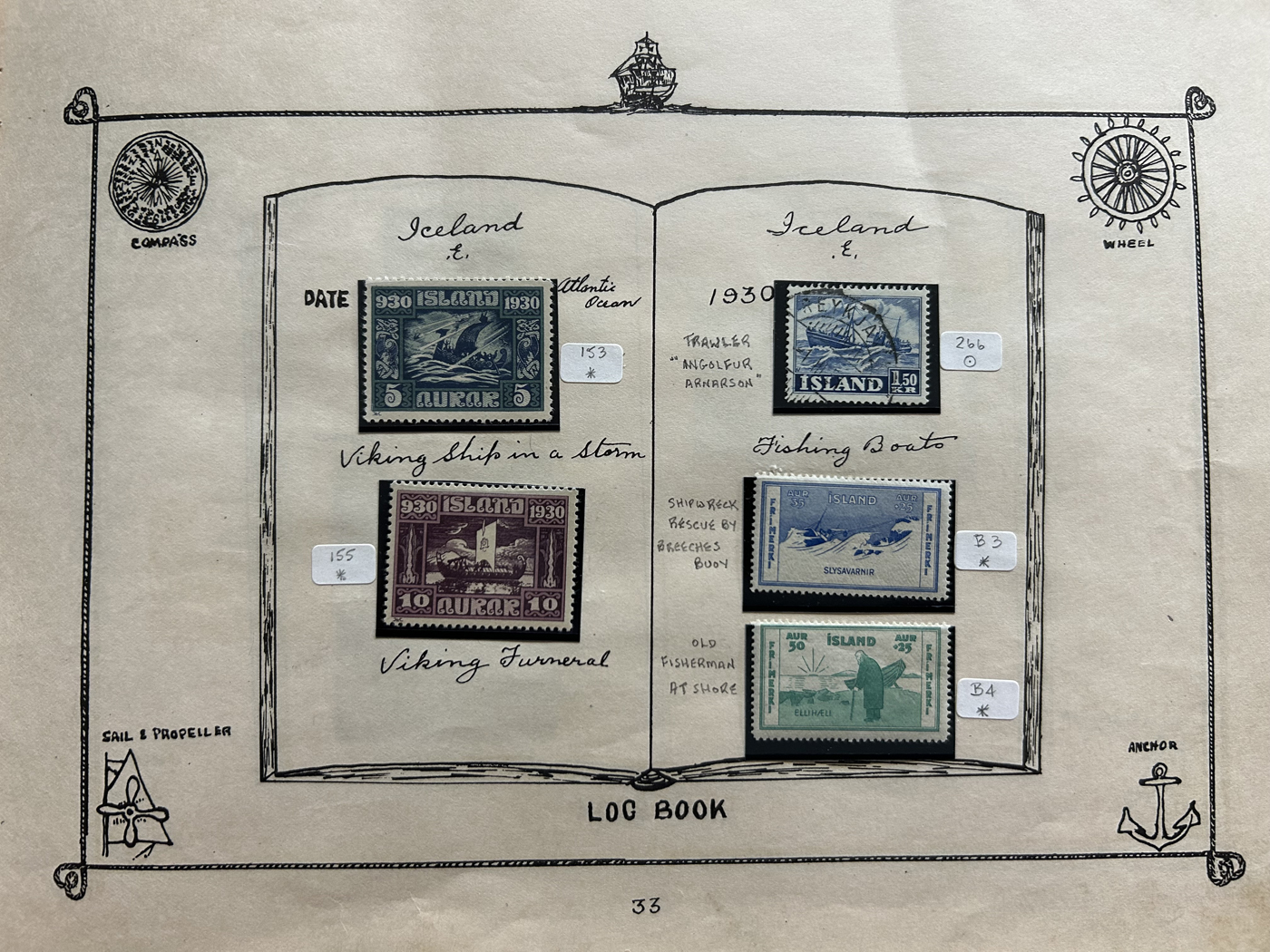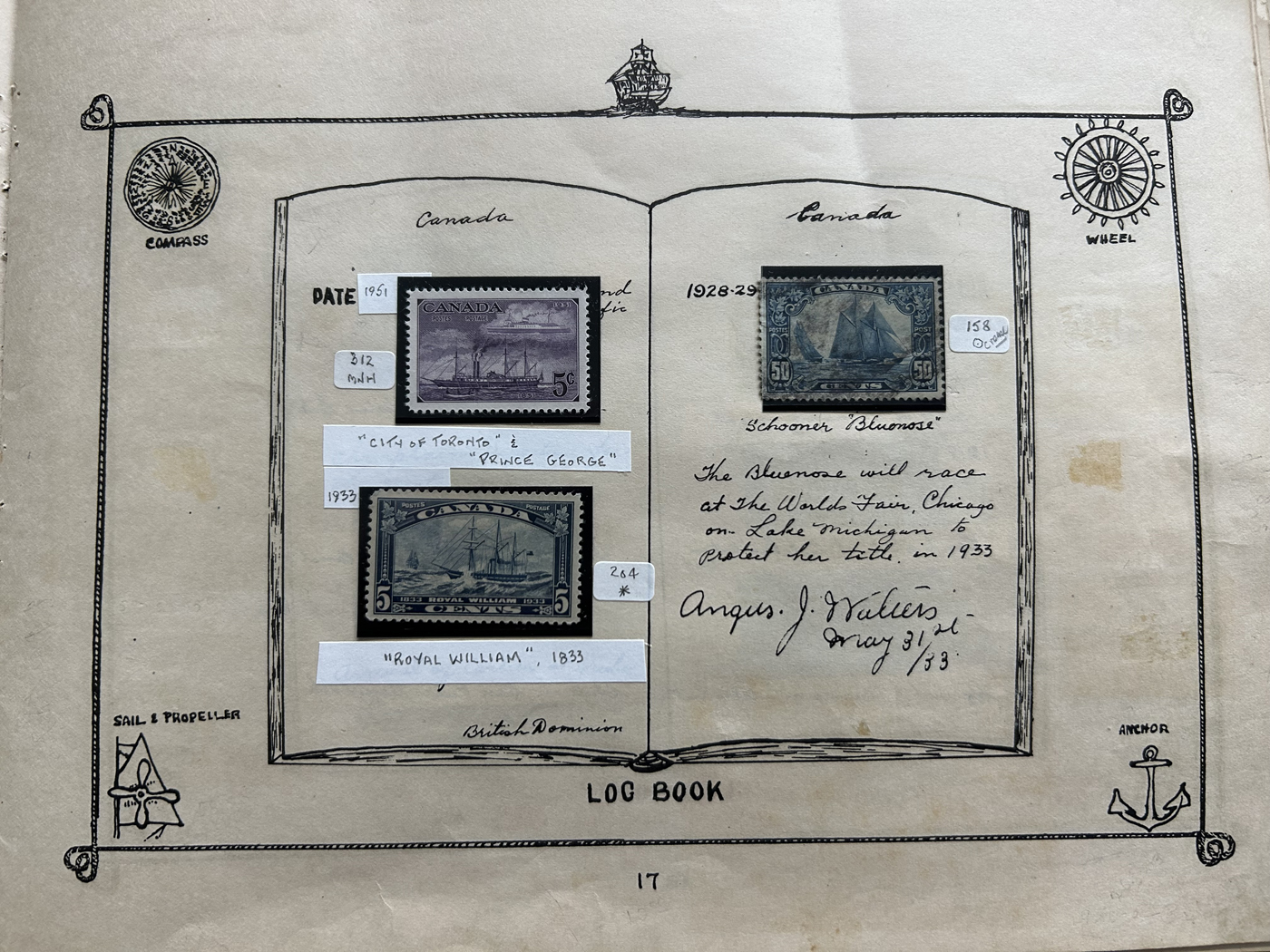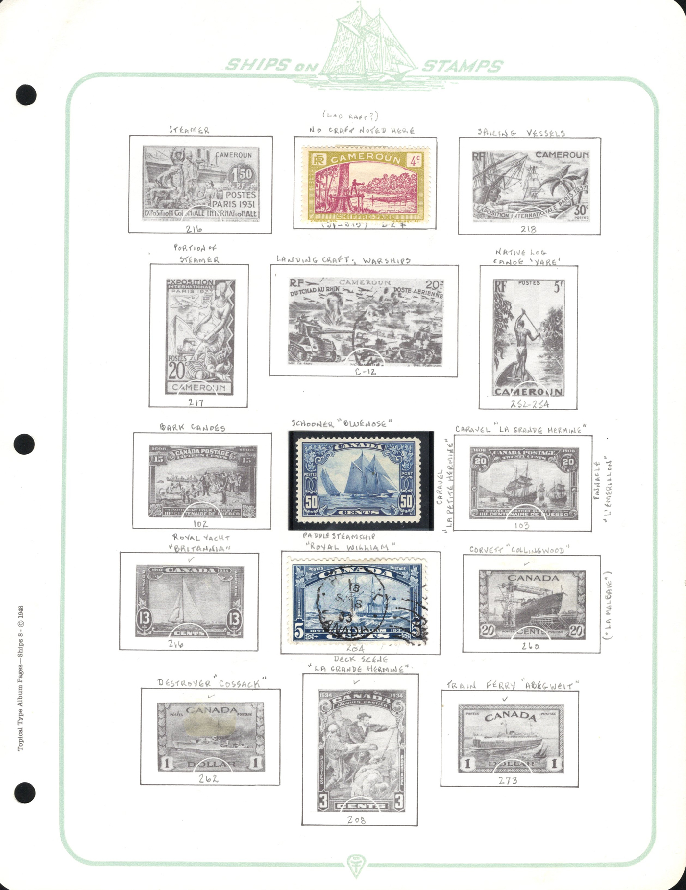1689 O/og/nh   imageOld Time Collection of Ships on Stamp, in a 1933 "Ship's Log Stamp Album" containing 244 different mint and used stamps from about 55 different countries. Overall nice quality (saw a Canada 50c Bluenose with a crease), see pictures to get a glimpse of this interesting collection. (Scan 1) (Scan 2) (Scan 3) (Scan 4) (Scan 5) (Scan 6) (Scan 7) (Scan 8) (Scan 9) (Scan 10) (All Scans)