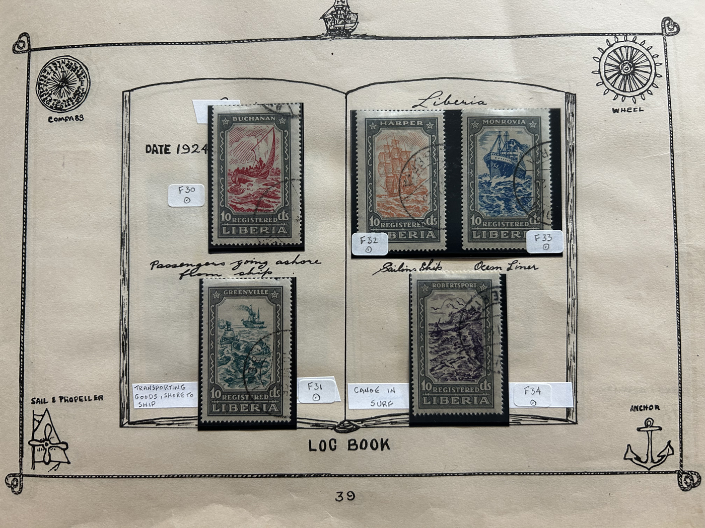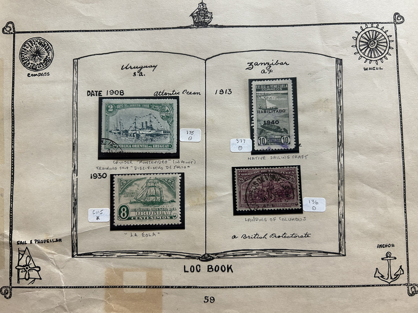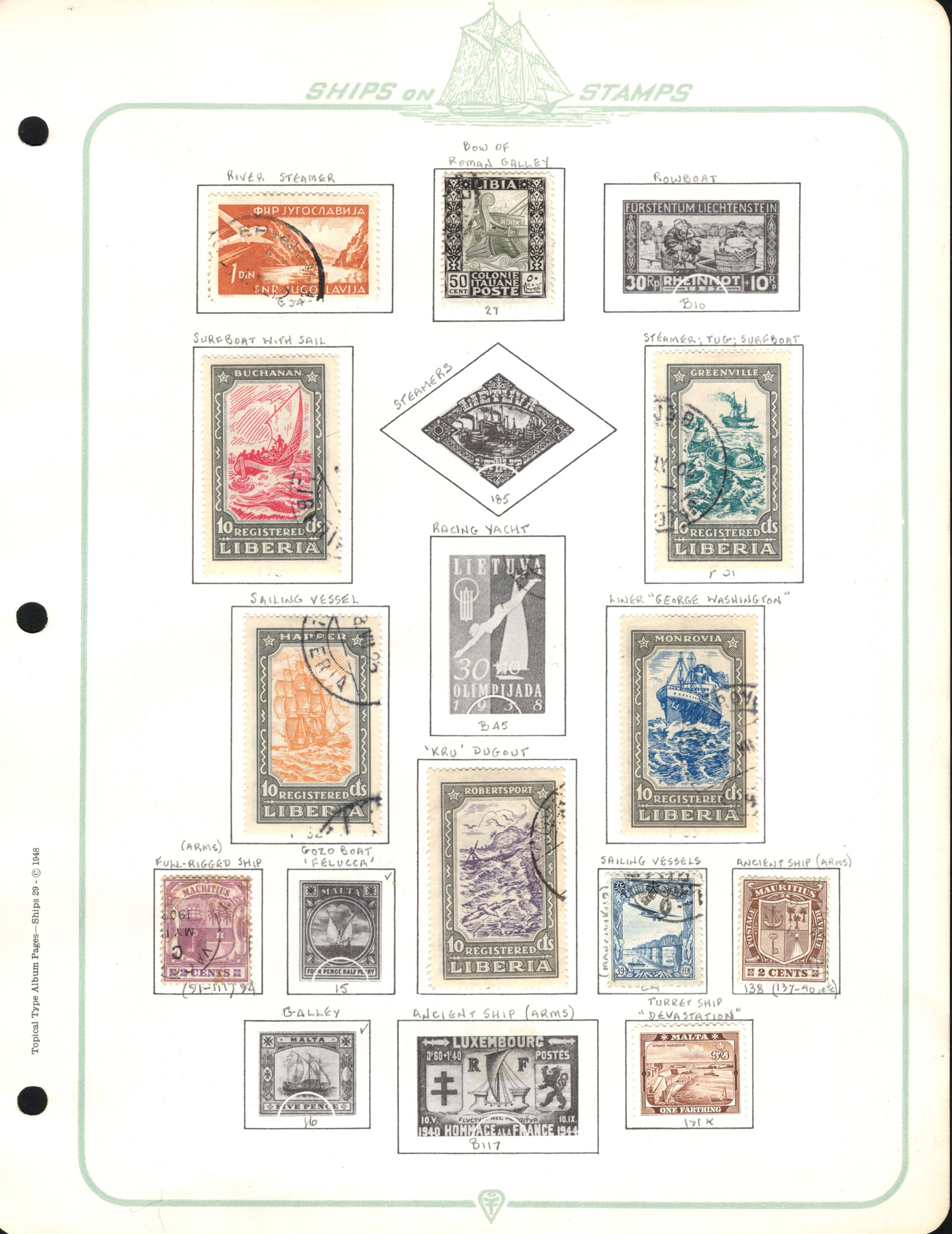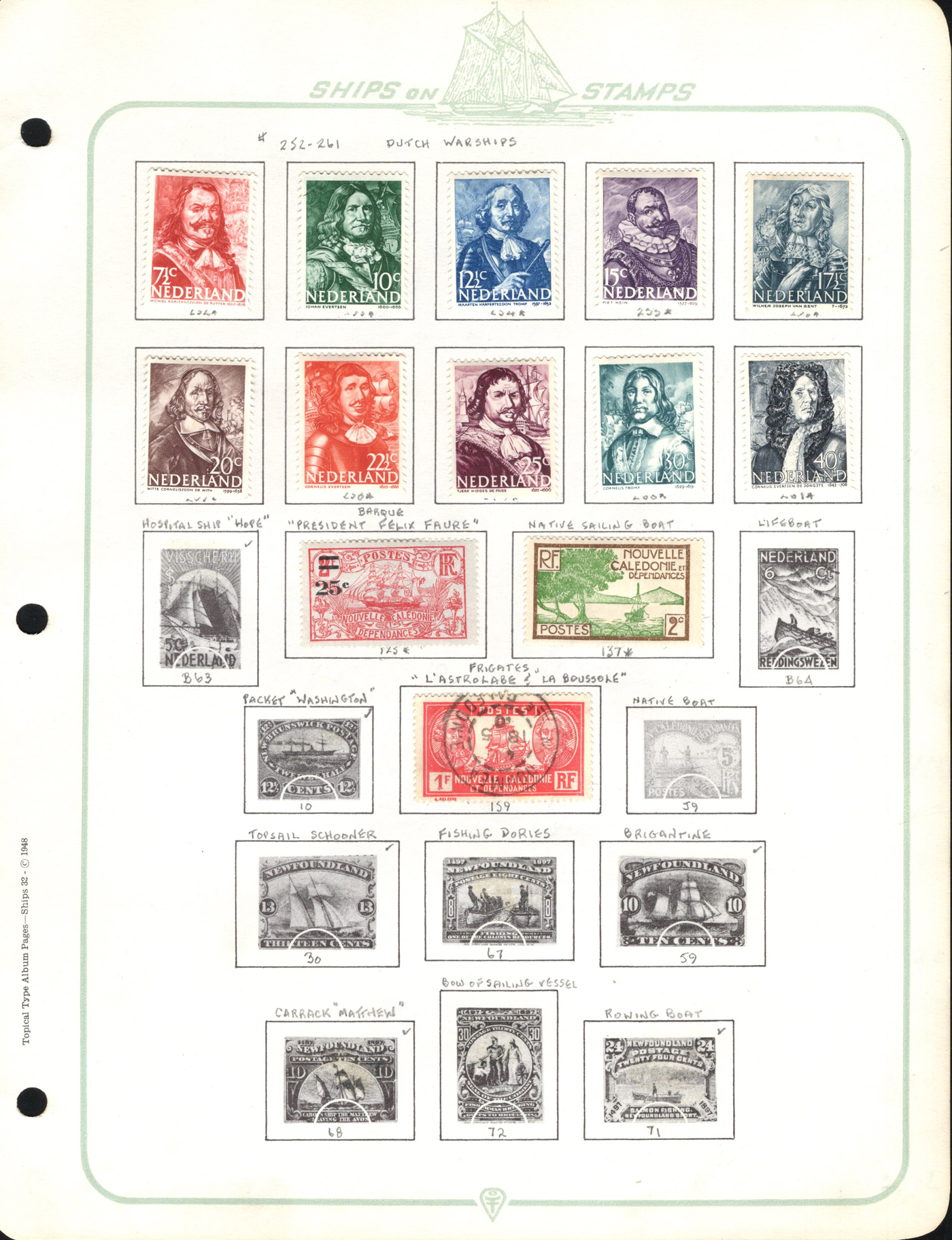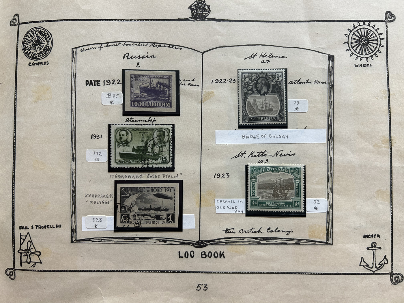 1689 O/og/nh   imageOld Time Collection of Ships on Stamp, in a 1933 "Ship's Log Stamp Album" containing 244 different mint and used stamps from about 55 different countries. Overall nice quality (saw a Canada 50c Bluenose with a crease), see pictures to get a glimpse of this interesting collection. (Scan 1) (Scan 2) (Scan 3) (Scan 4) (Scan 5) (Scan 6) (Scan 7) (Scan 8) (Scan 9) (Scan 10) (All Scans)