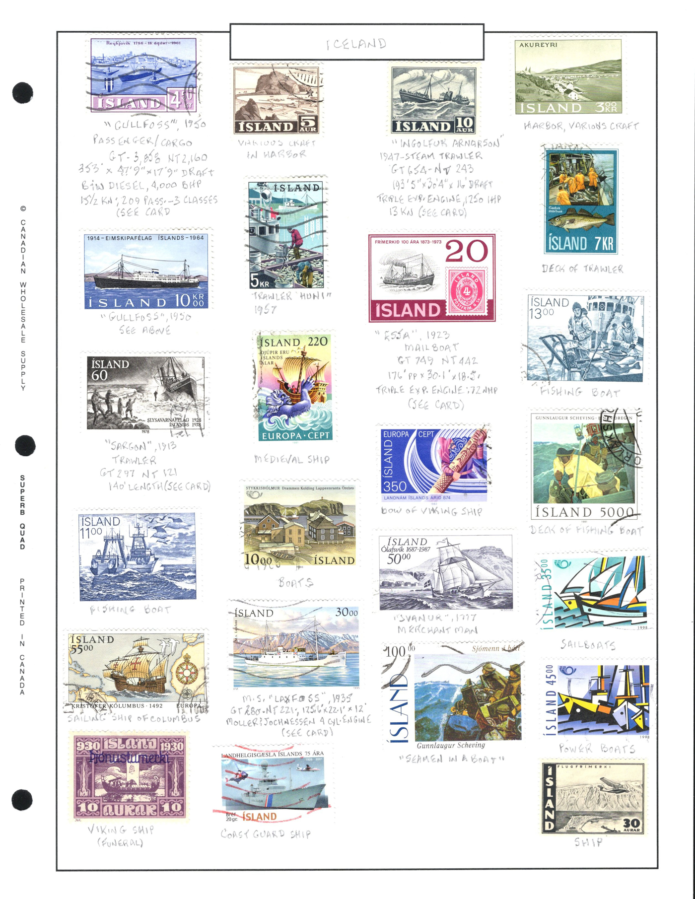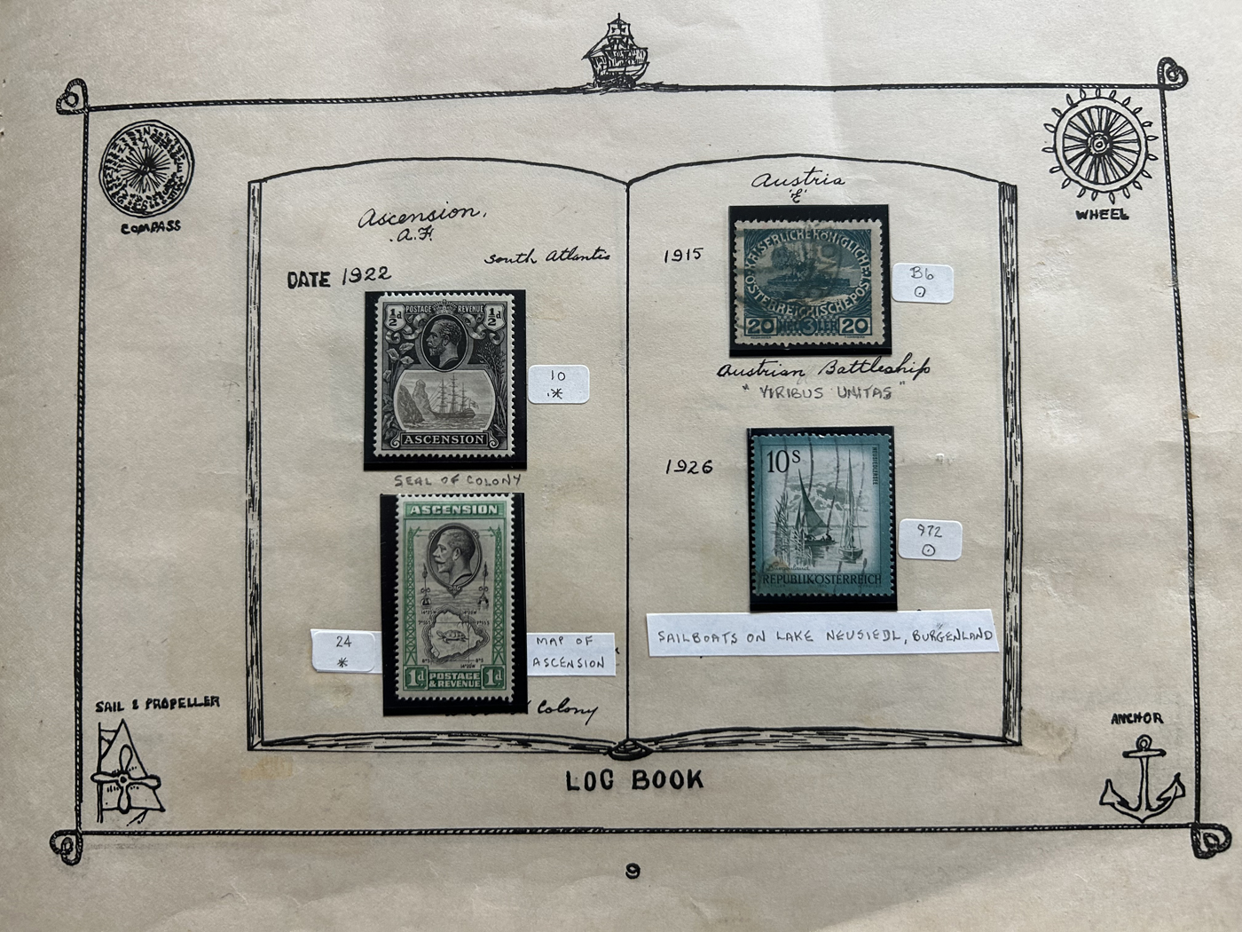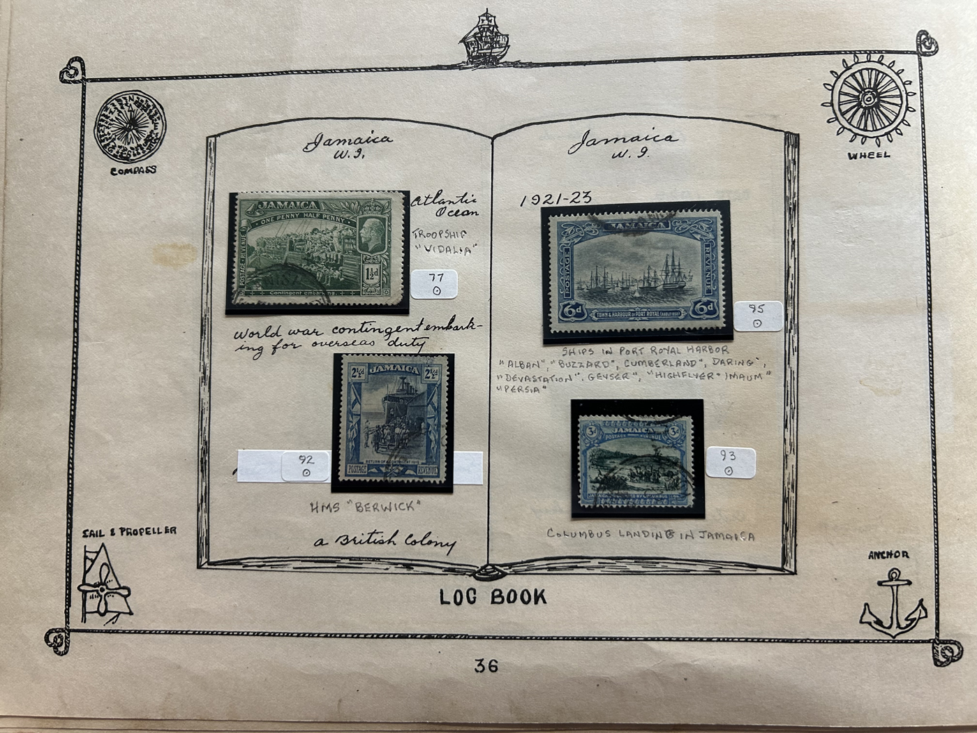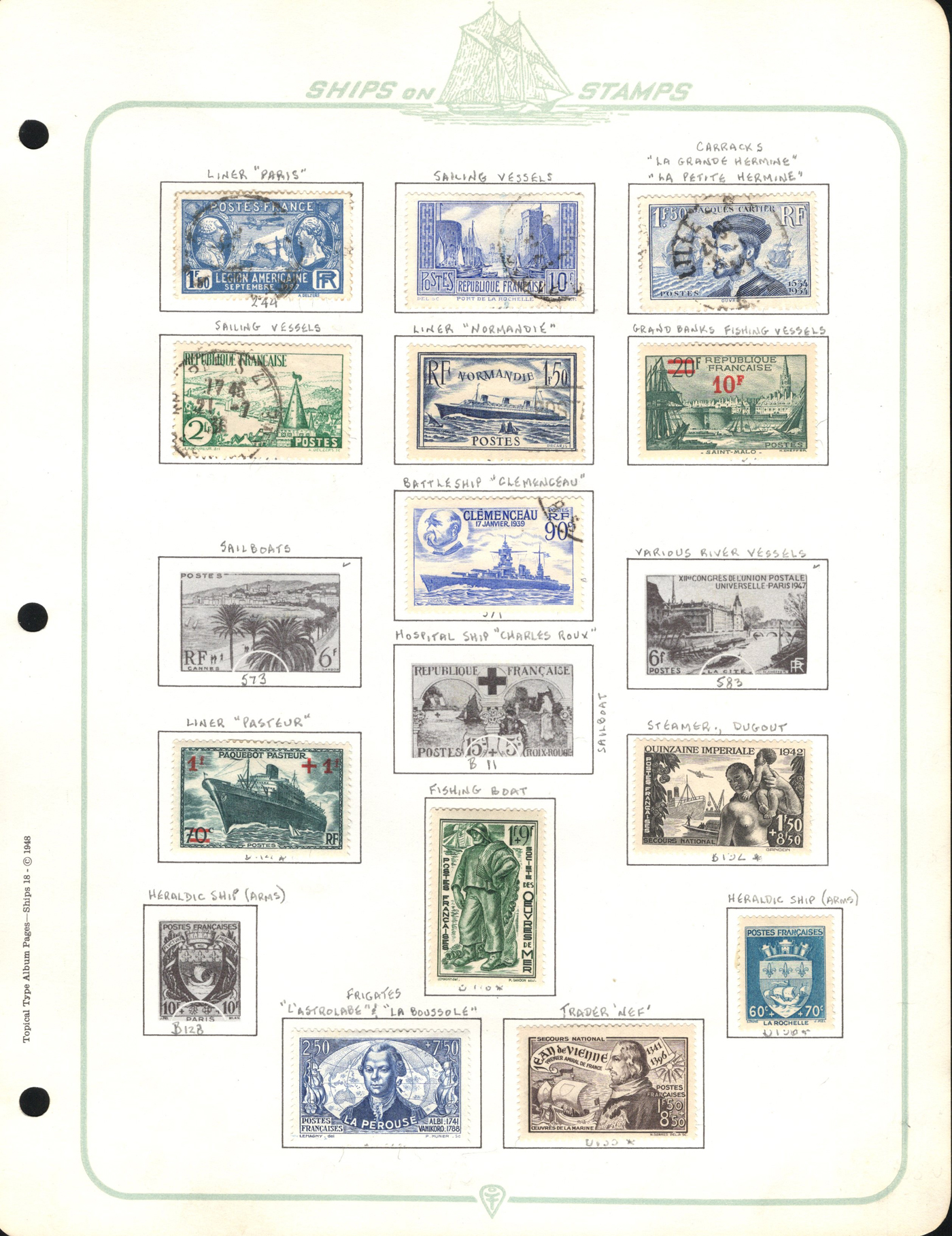 1689 O/og/nh   imageOld Time Collection of Ships on Stamp, in a 1933 "Ship's Log Stamp Album" containing 244 different mint and used stamps from about 55 different countries. Overall nice quality (saw a Canada 50c Bluenose with a crease), see pictures to get a glimpse of this interesting collection. (Scan 1) (Scan 2) (Scan 3) (Scan 4) (Scan 5) (Scan 6) (Scan 7) (Scan 8) (Scan 9) (Scan 10) (All Scans)